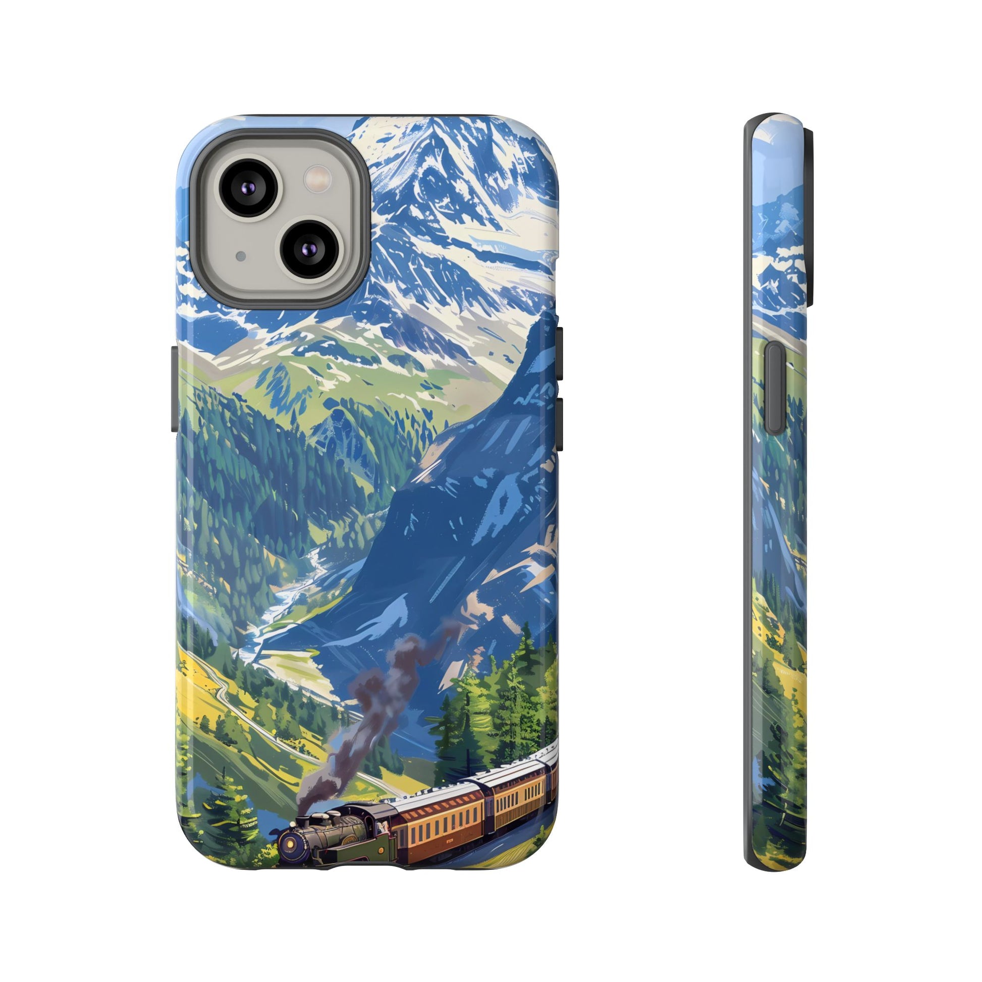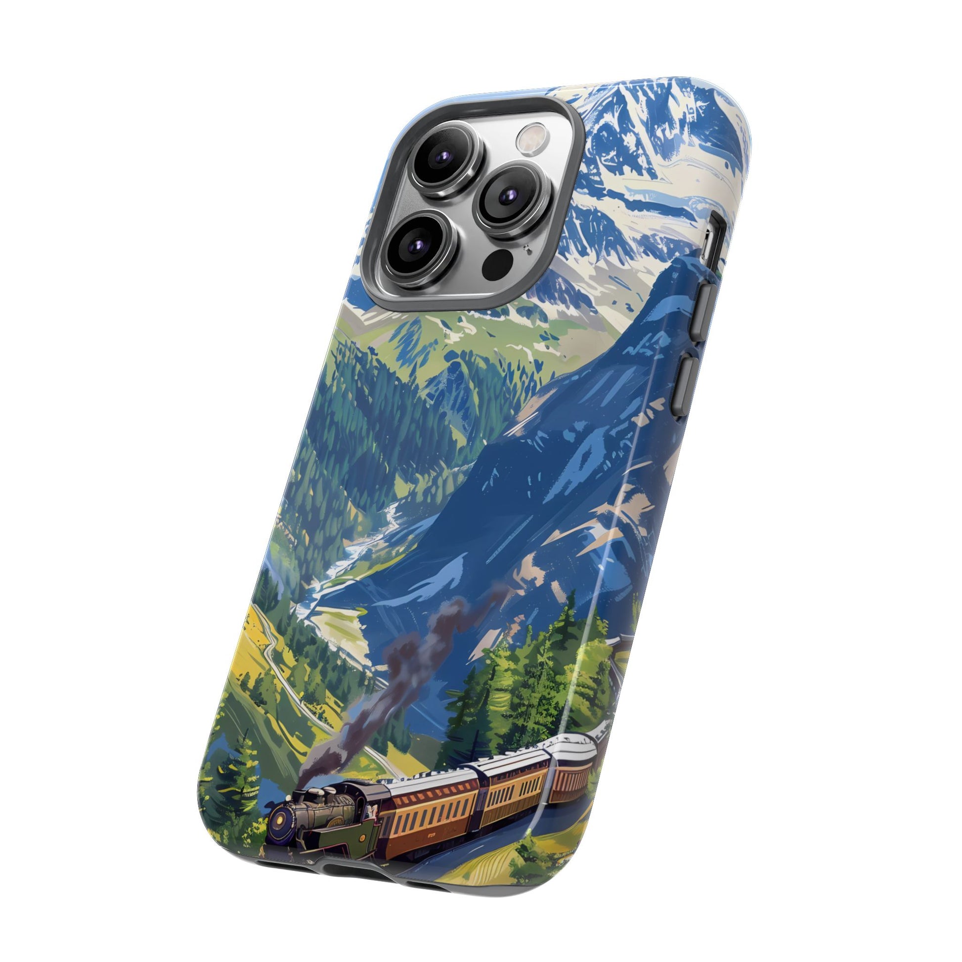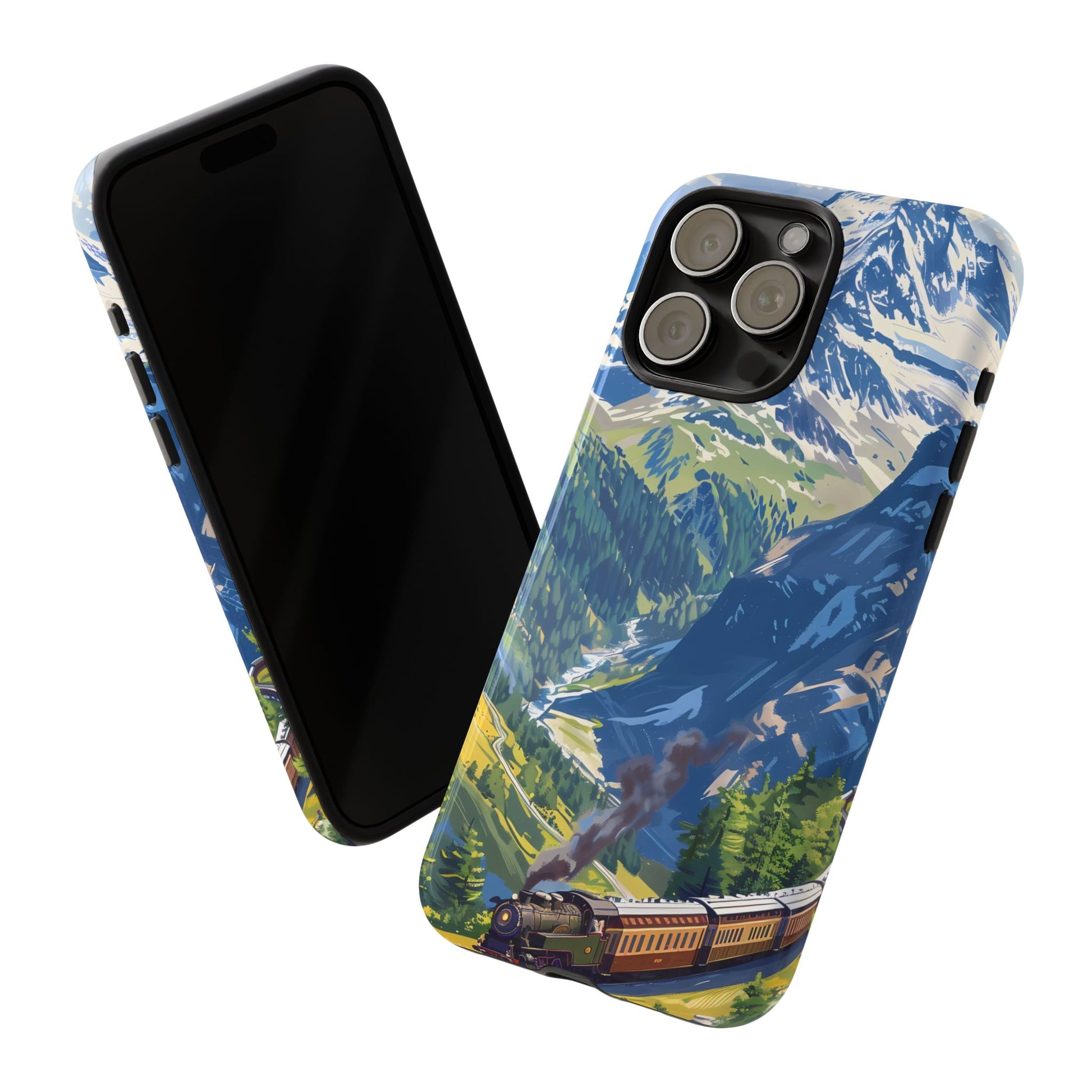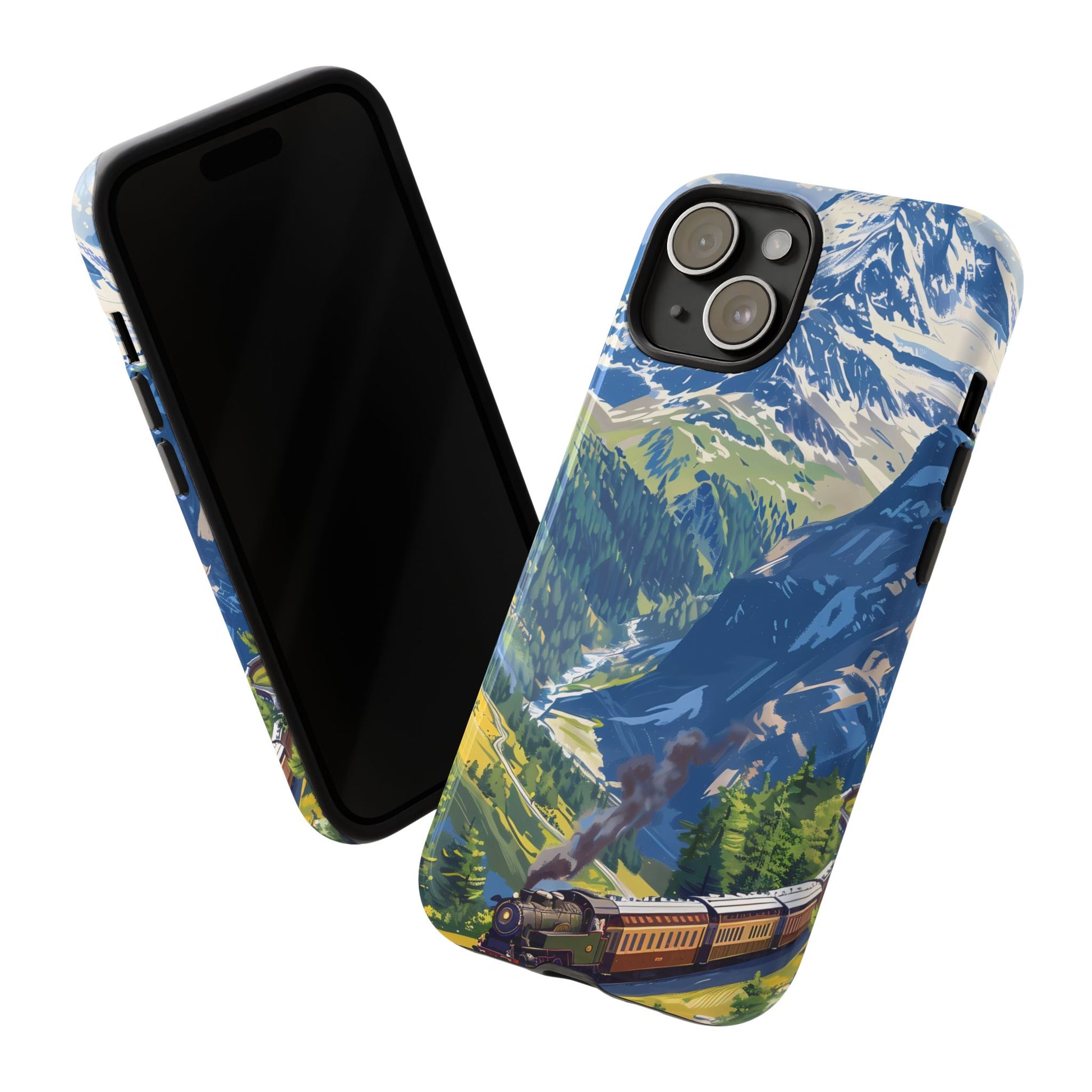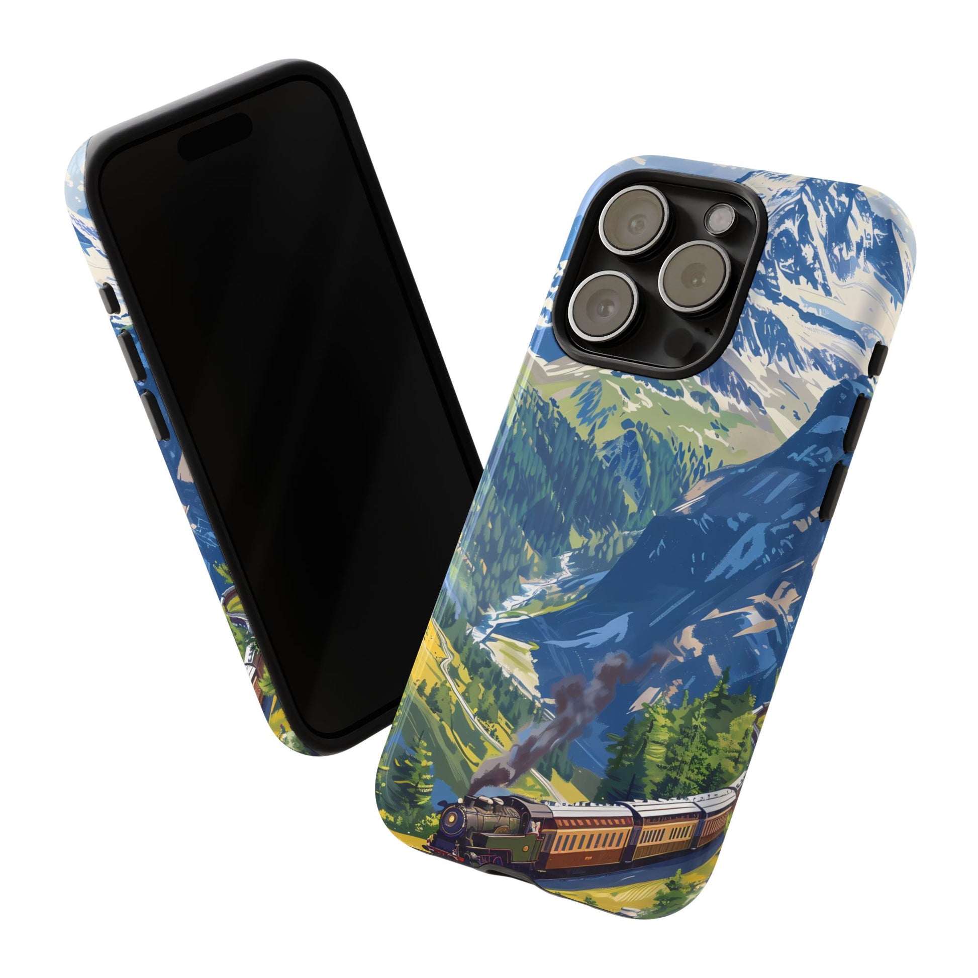 Capture the essence of luxury travel with this stunning cell phone cover featuring the iconic Orient Express journeying through the breathtaking Swiss Alps. The detailed illustration brings the grandeur of the mountains and the elegance of the train to life, making it a perfect choice for those who appreciate classic adventure.