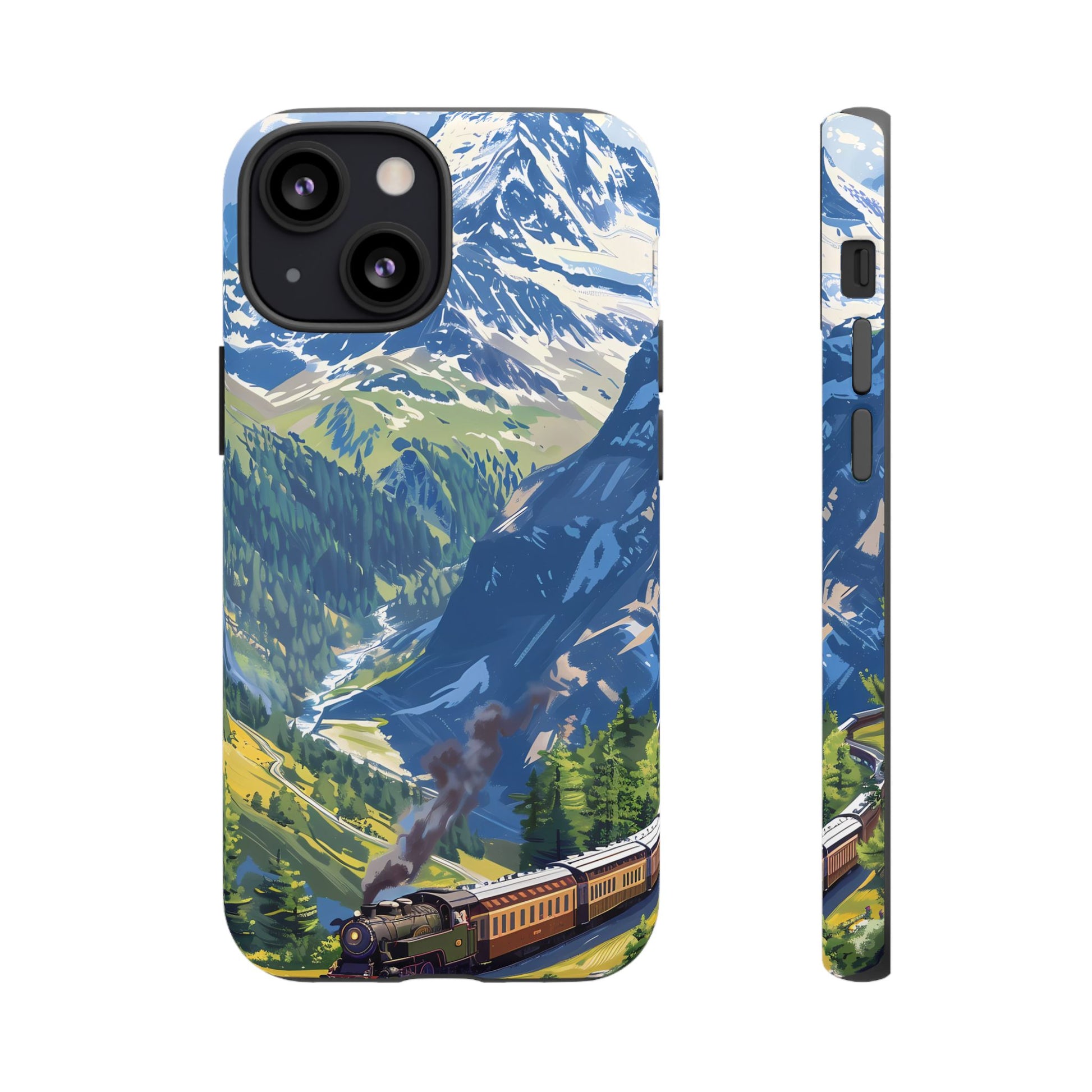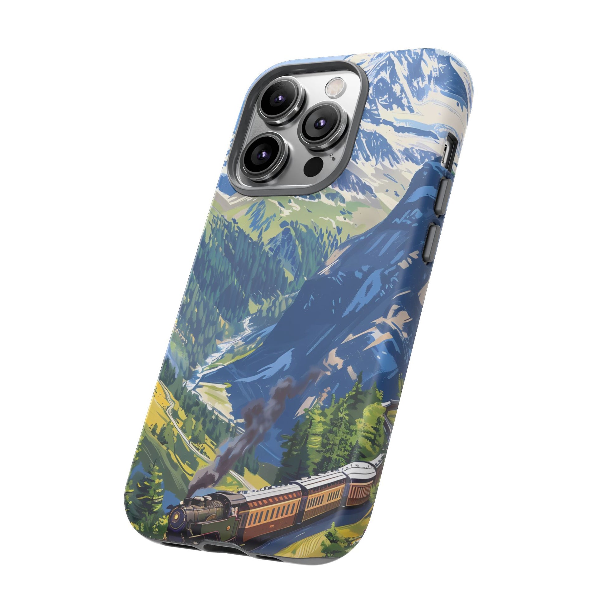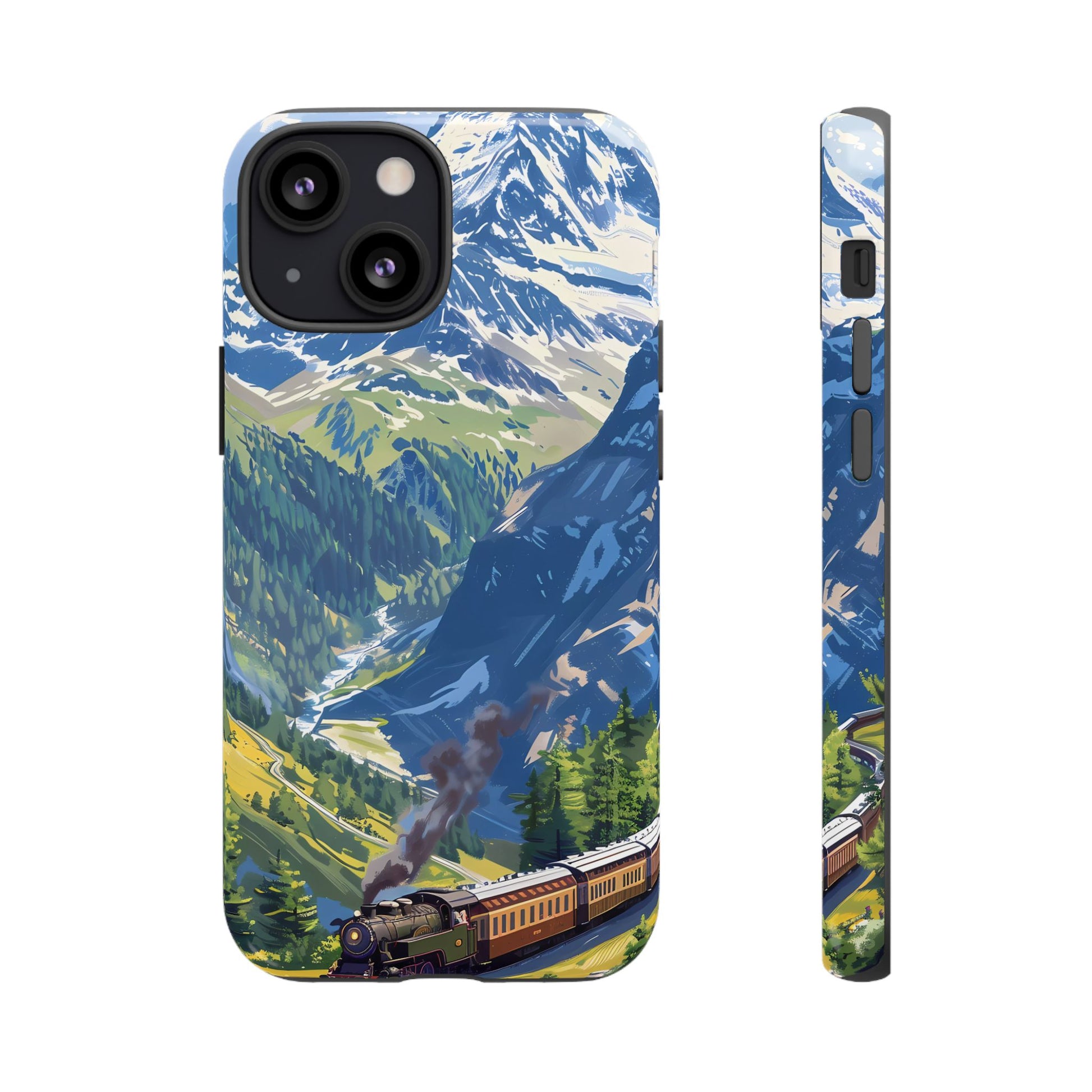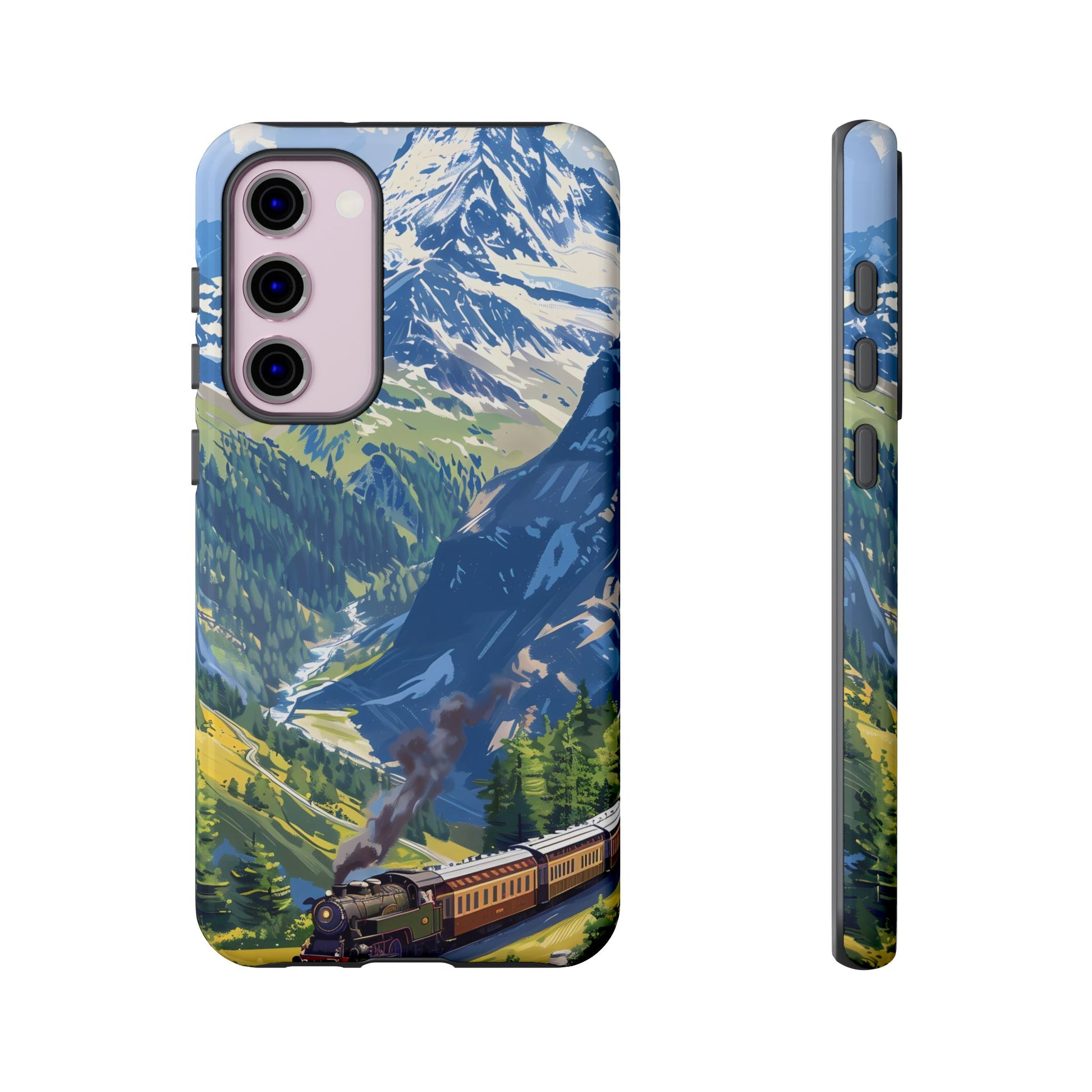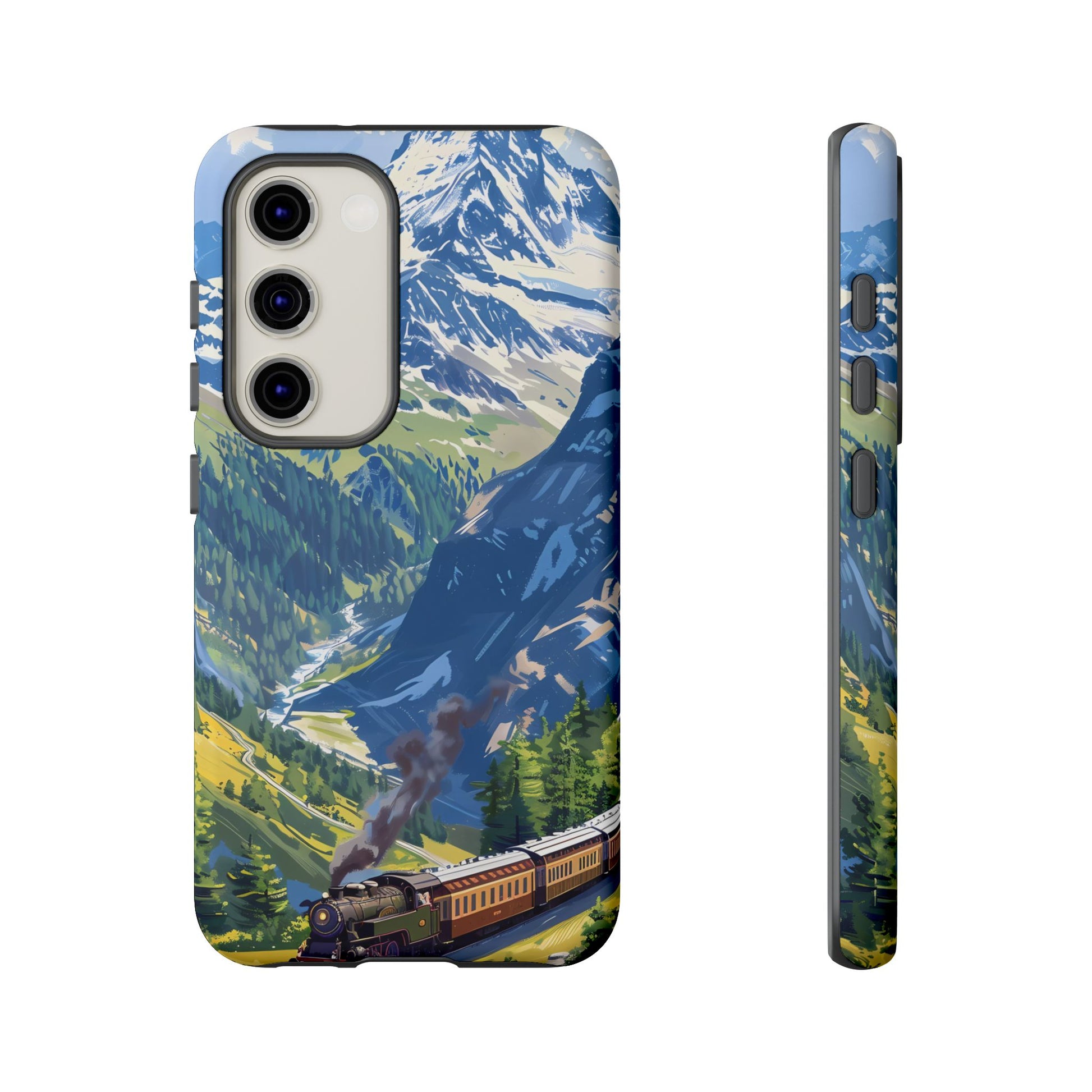 Capture the essence of luxury travel with this stunning cell phone cover featuring the iconic Orient Express journeying through the breathtaking Swiss Alps. The detailed illustration brings the grandeur of the mountains and the elegance of the train to life, making it a perfect choice for those who appreciate classic adventure.