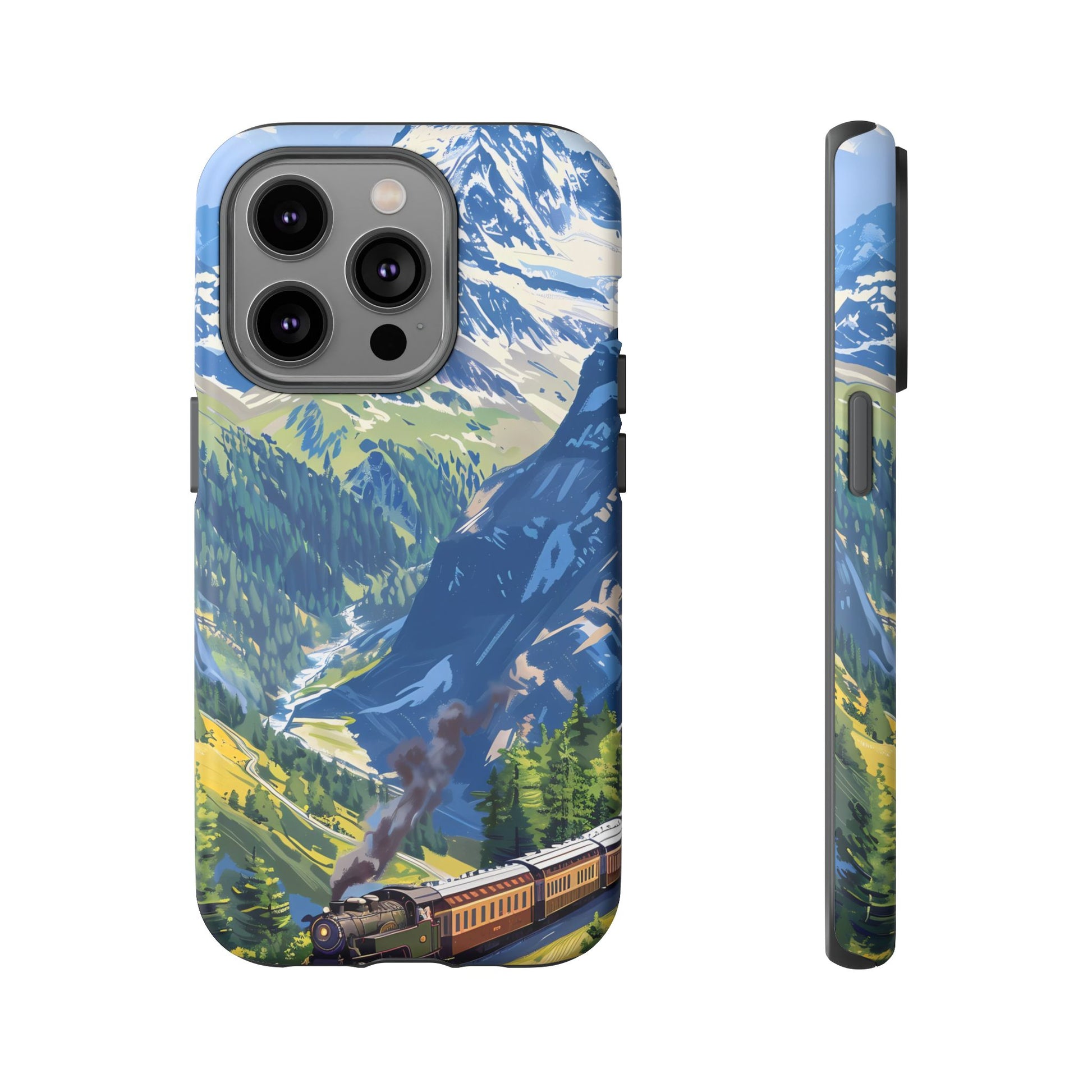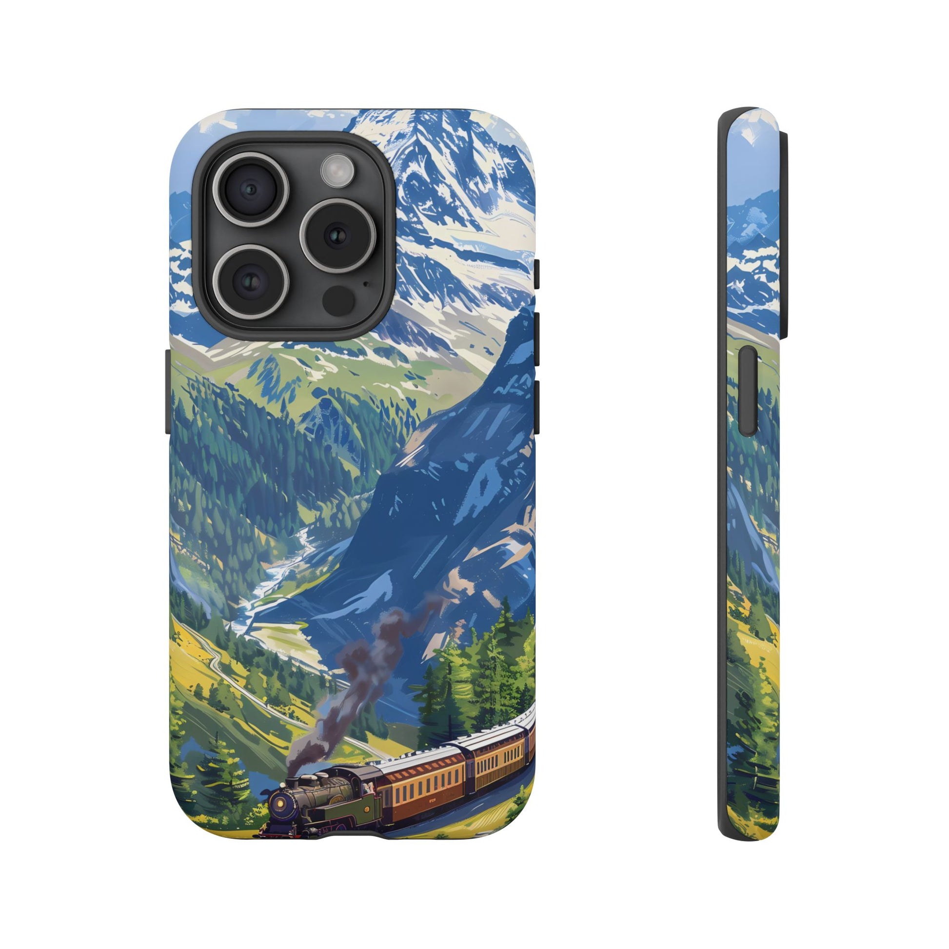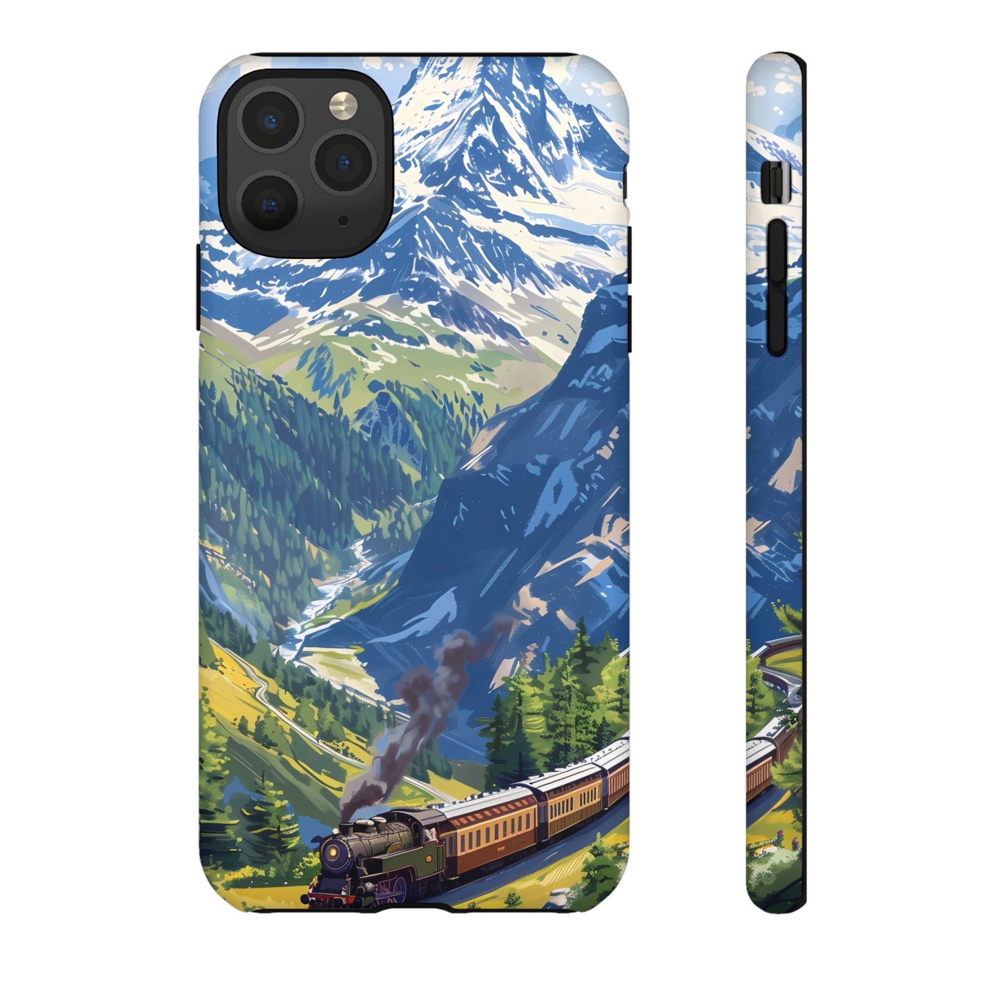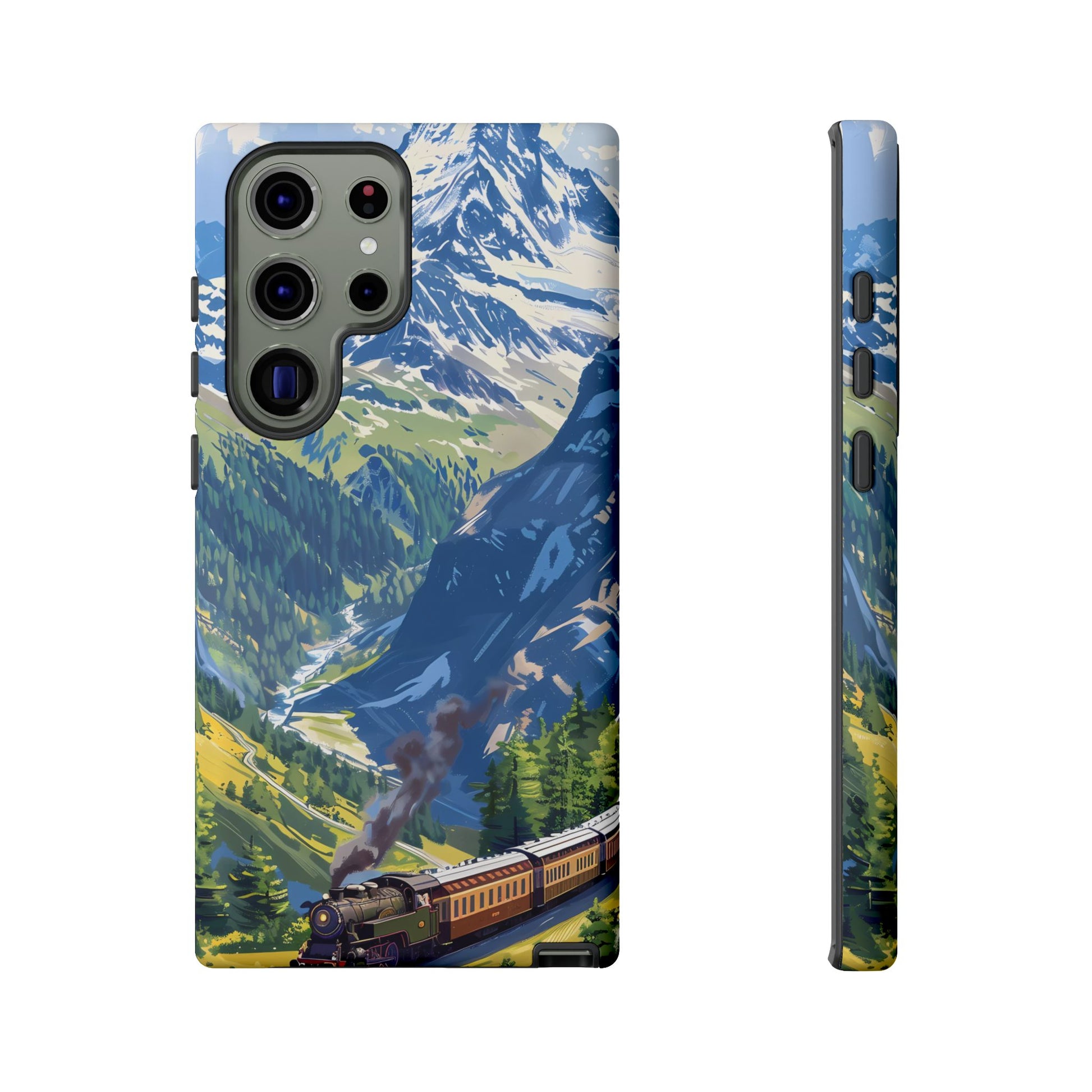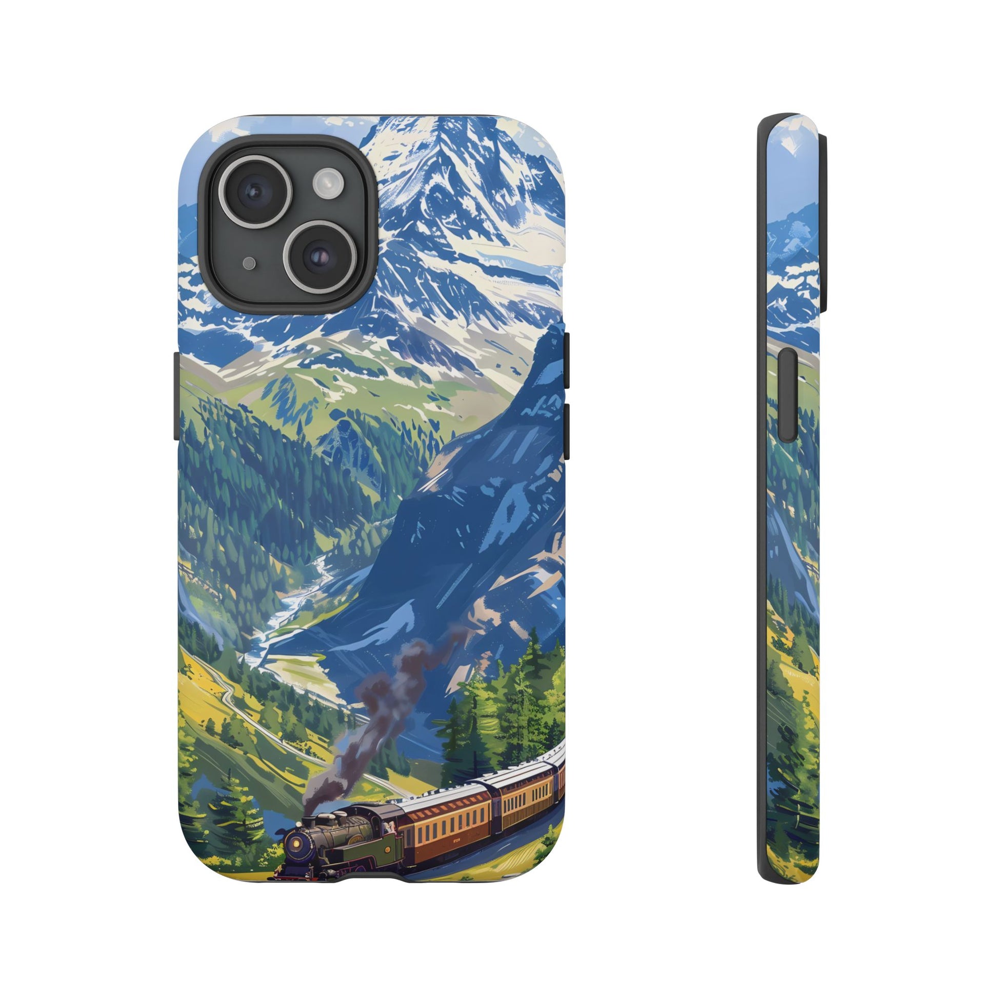 Capture the essence of luxury travel with this stunning cell phone cover featuring the iconic Orient Express journeying through the breathtaking Swiss Alps. The detailed illustration brings the grandeur of the mountains and the elegance of the train to life, making it a perfect choice for those who appreciate classic adventure.