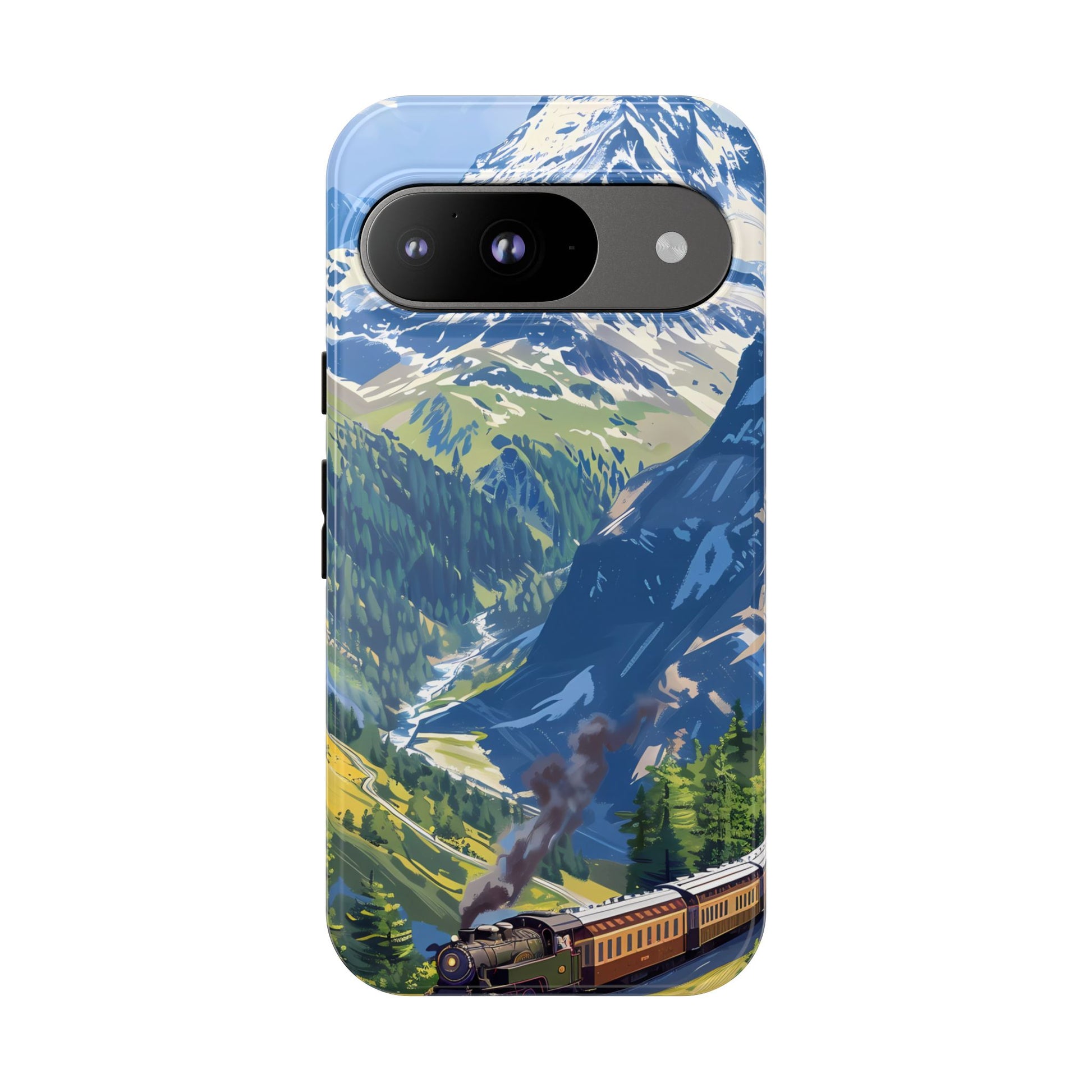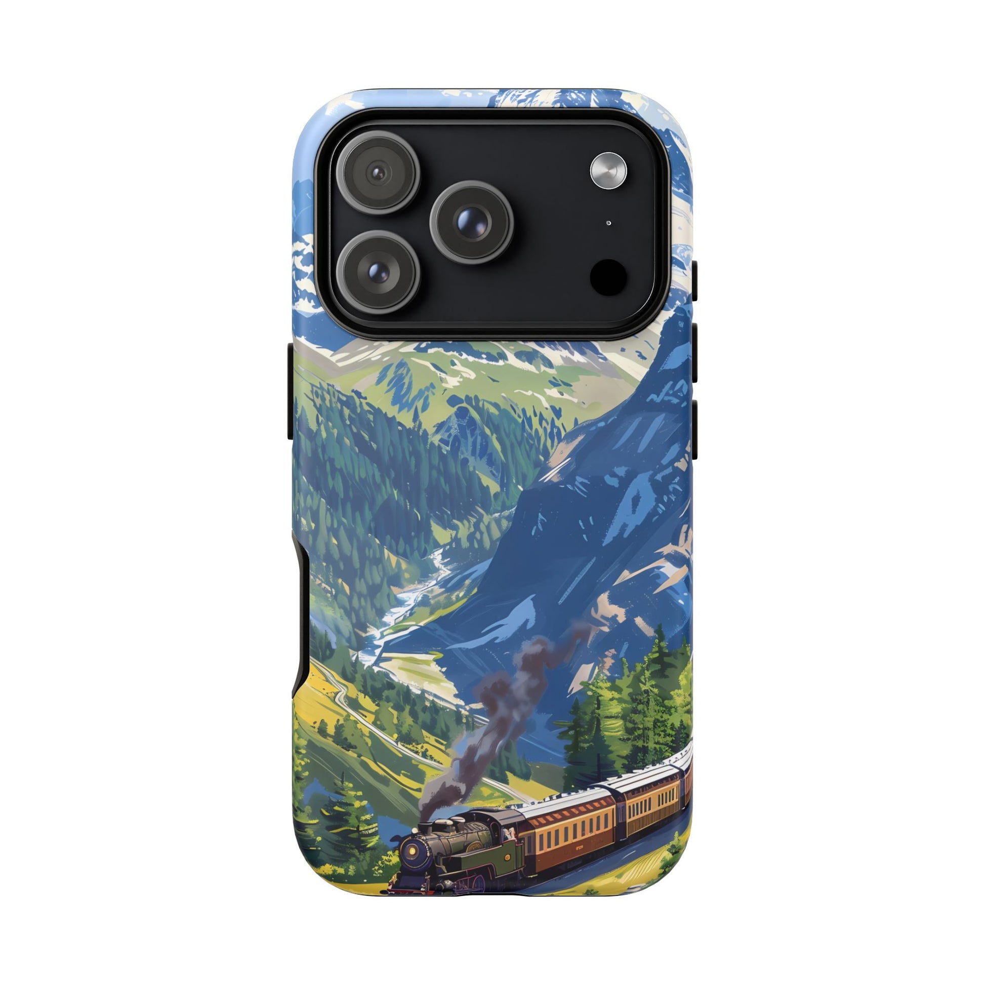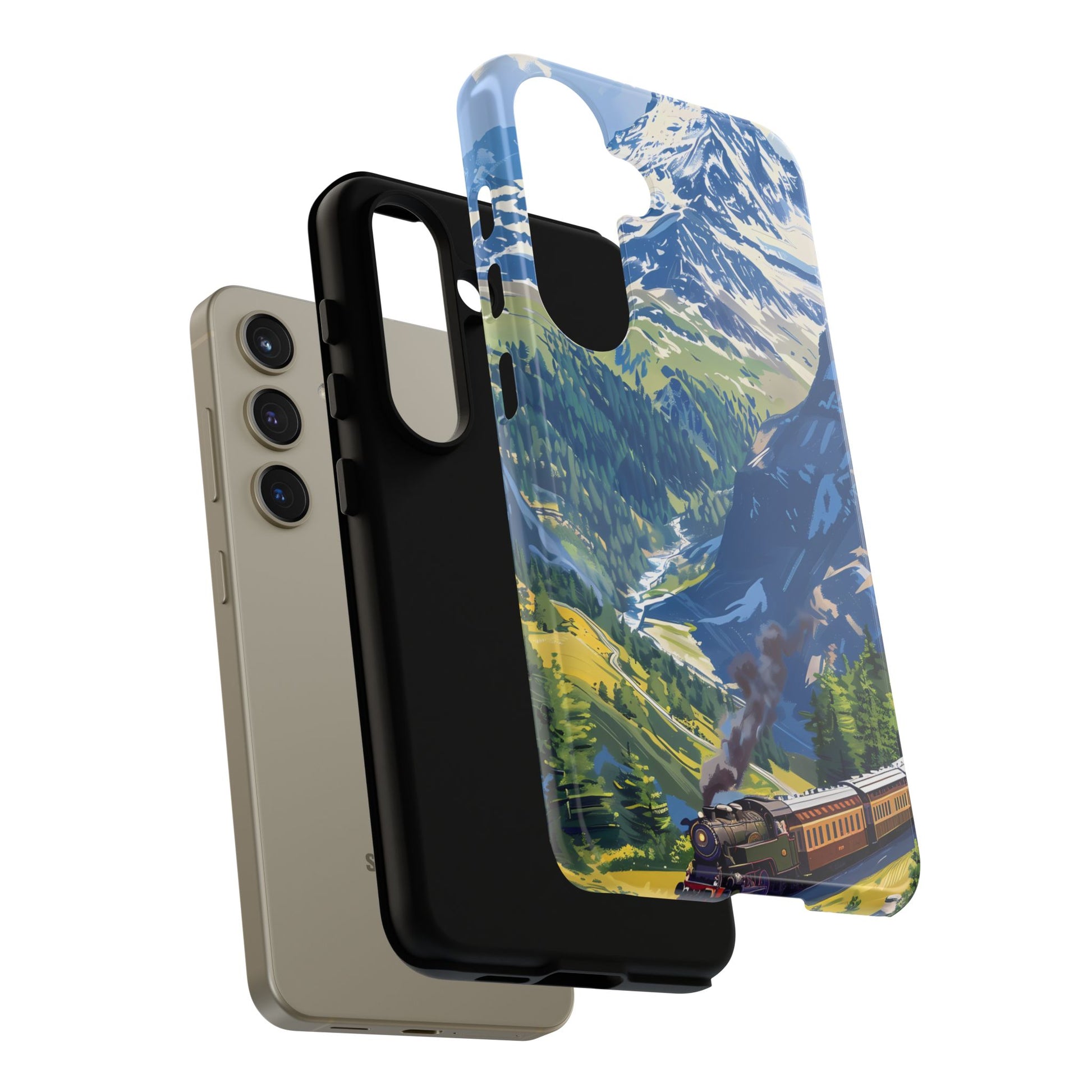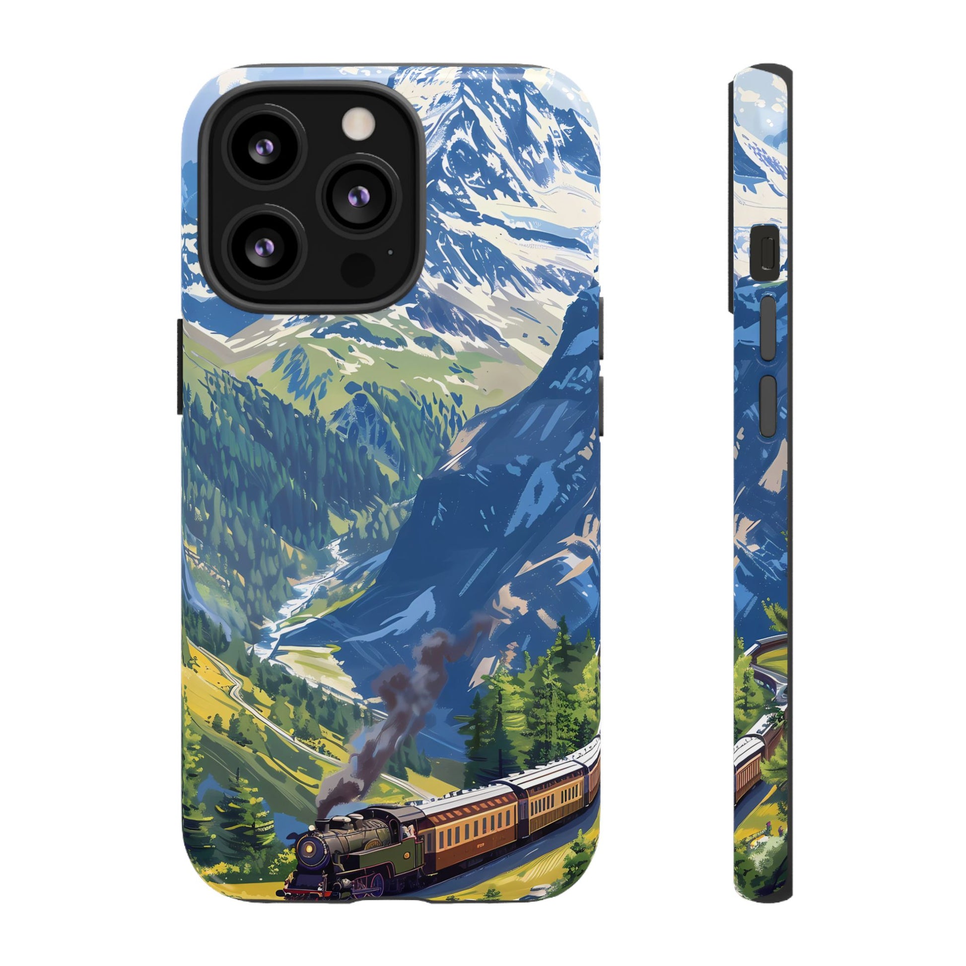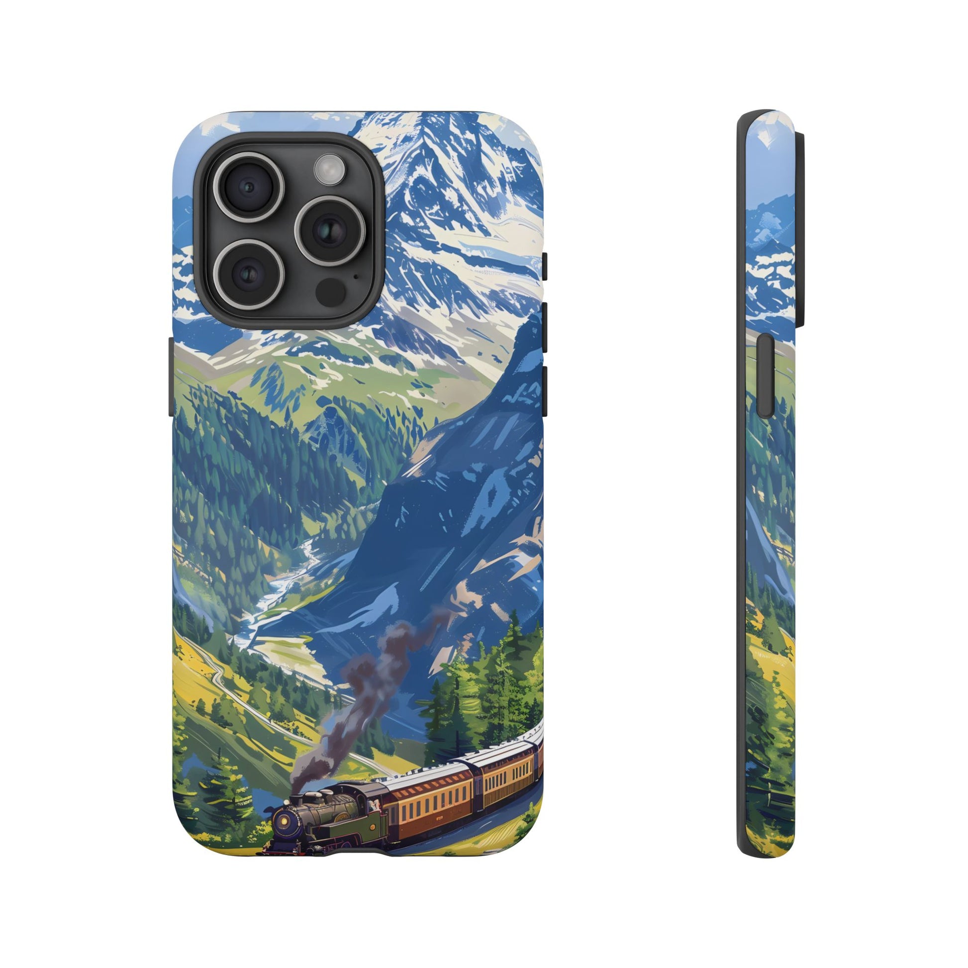 Capture the essence of luxury travel with this stunning cell phone cover featuring the iconic Orient Express journeying through the breathtaking Swiss Alps. The detailed illustration brings the grandeur of the mountains and the elegance of the train to life, making it a perfect choice for those who appreciate classic adventure.