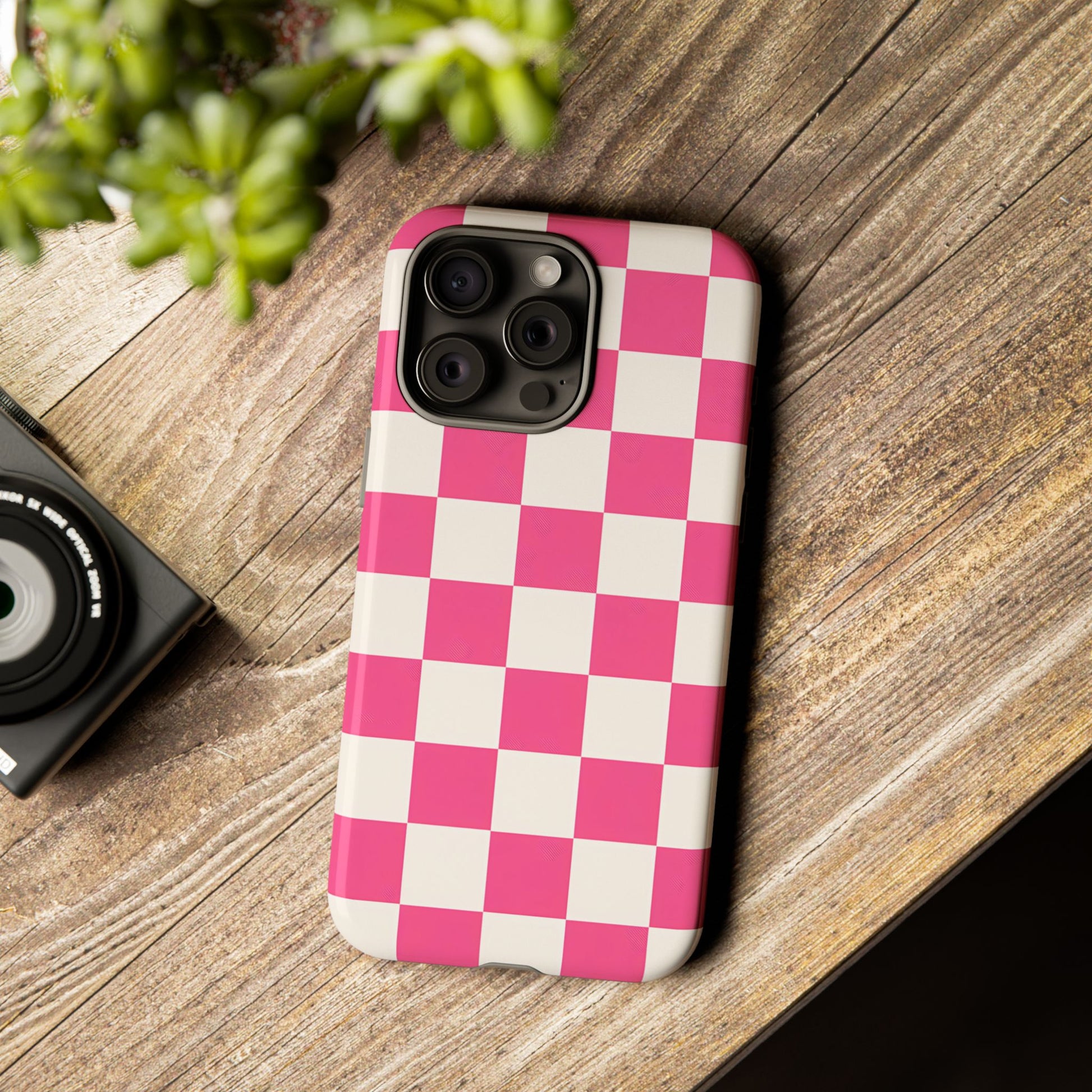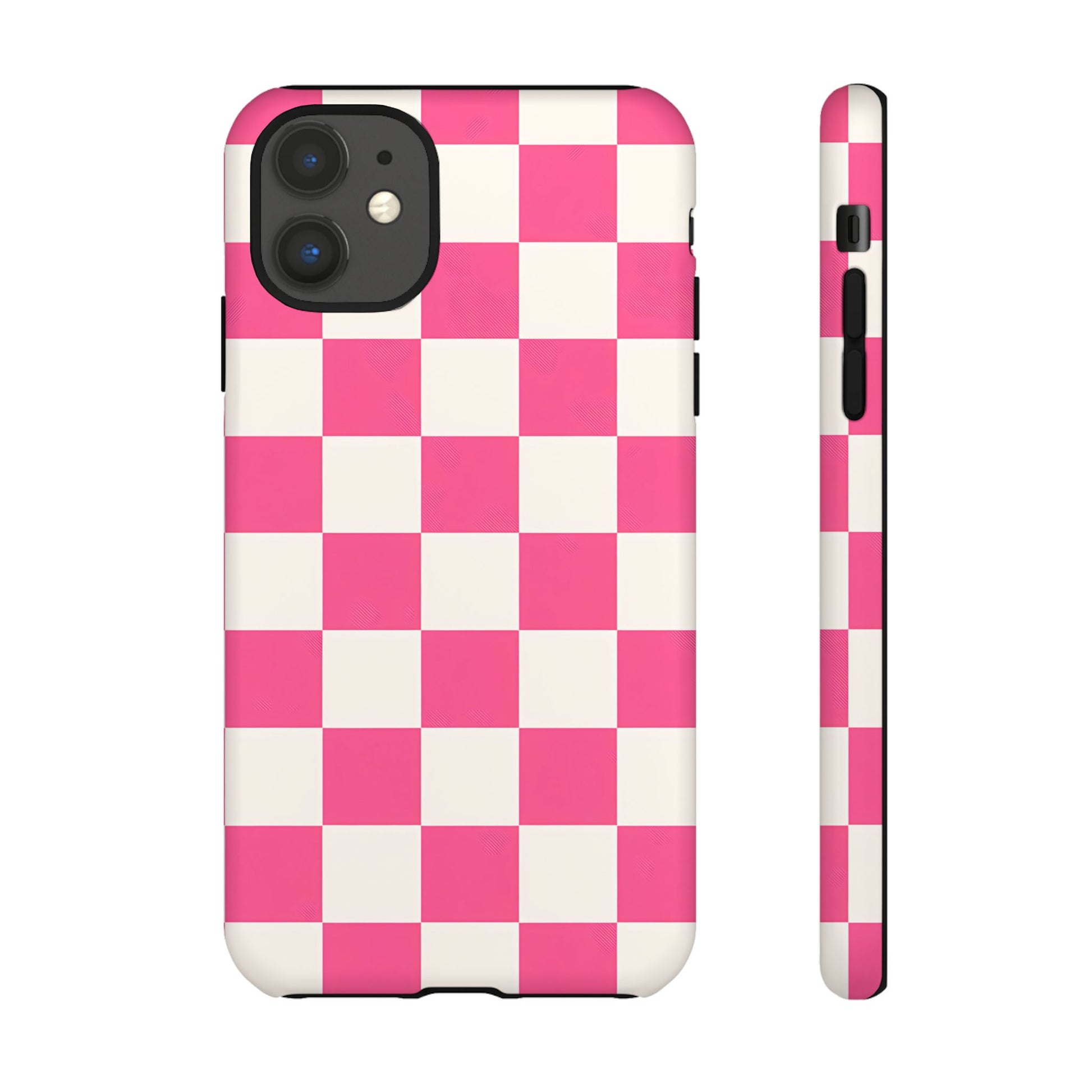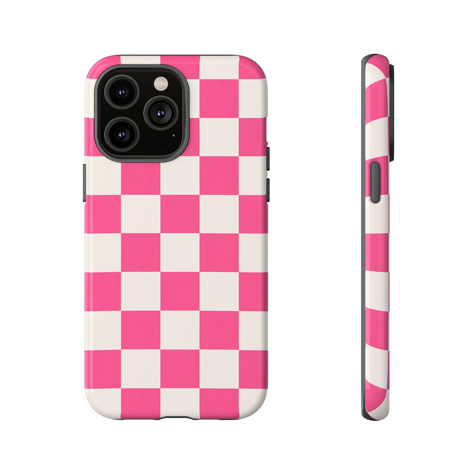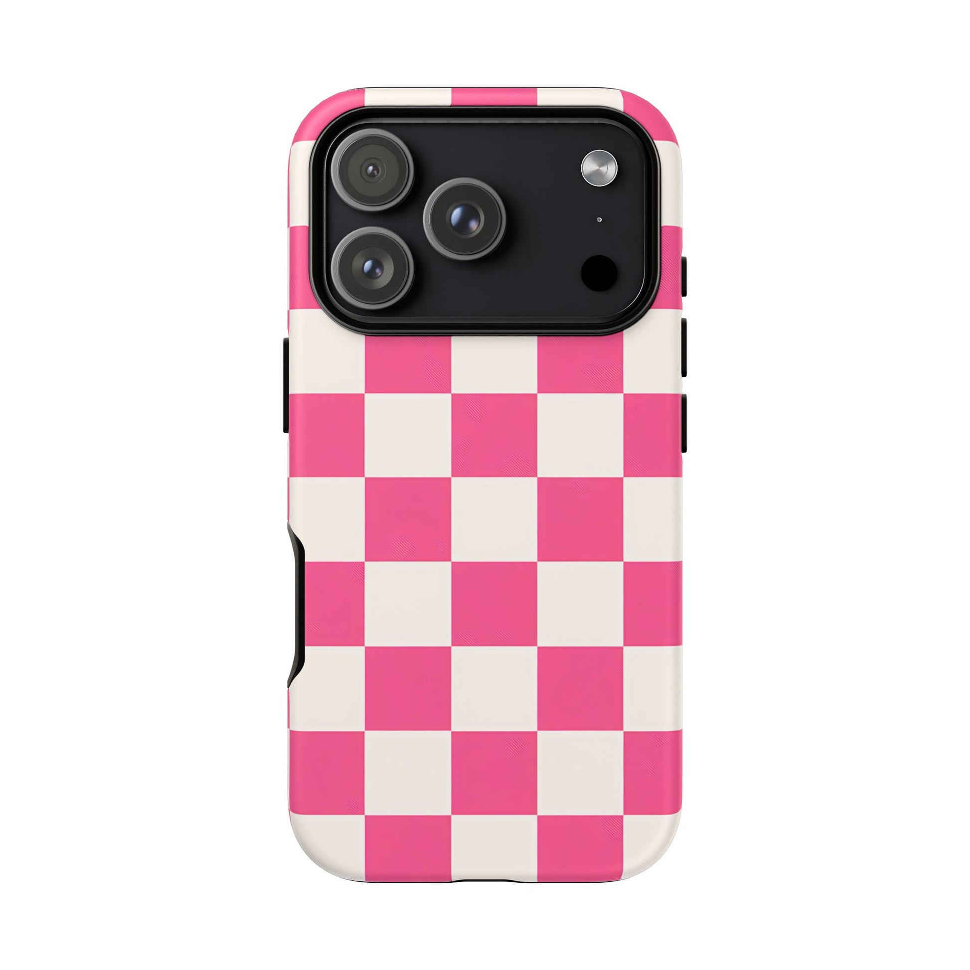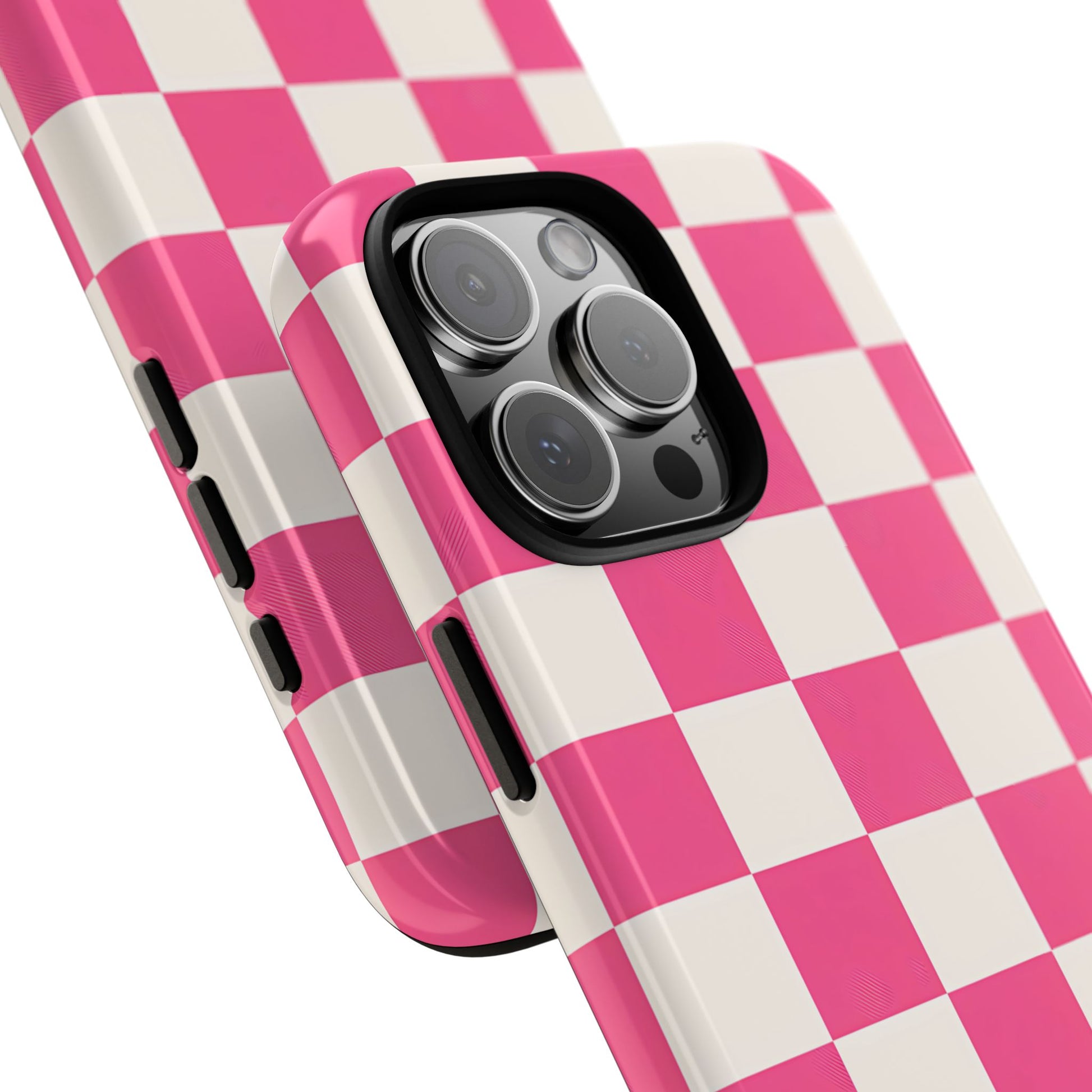 Bright pink and white checks create a sweet and spirited spin on the traditional grid. This playful pattern radiates youthful charm and pop flair