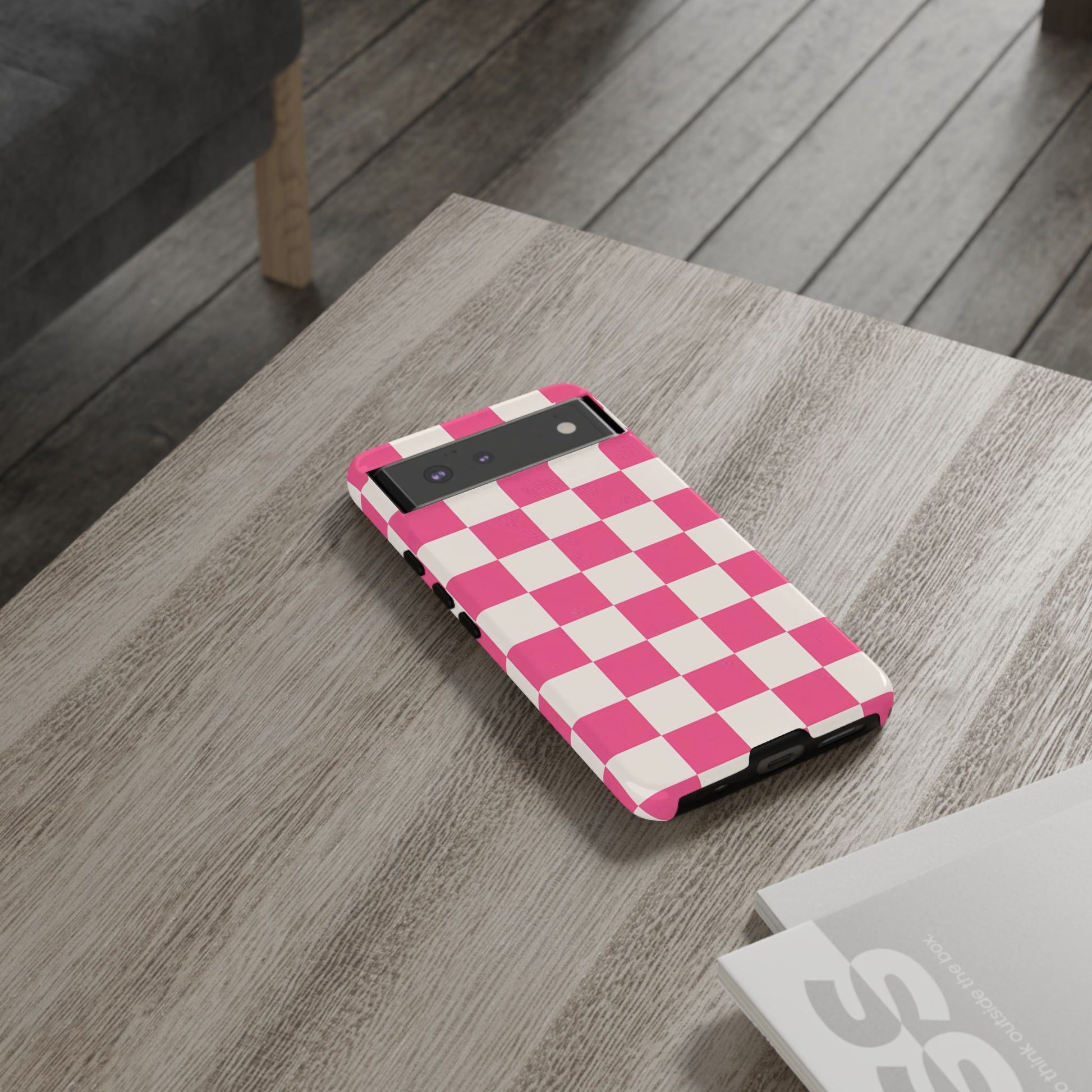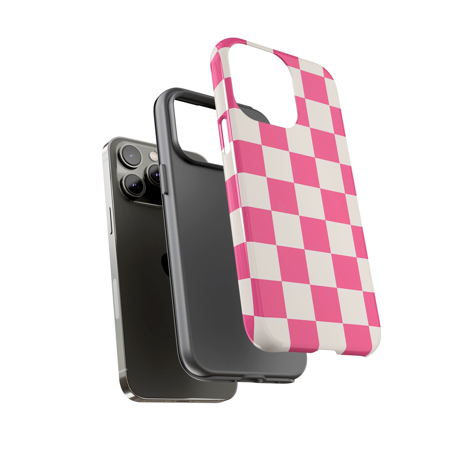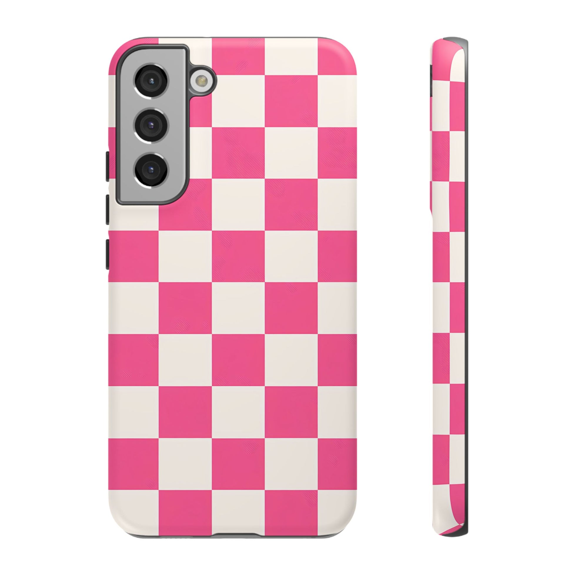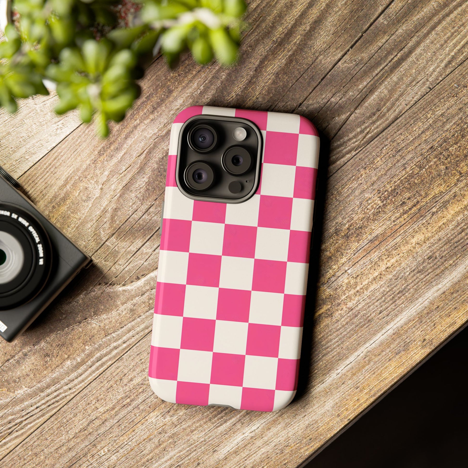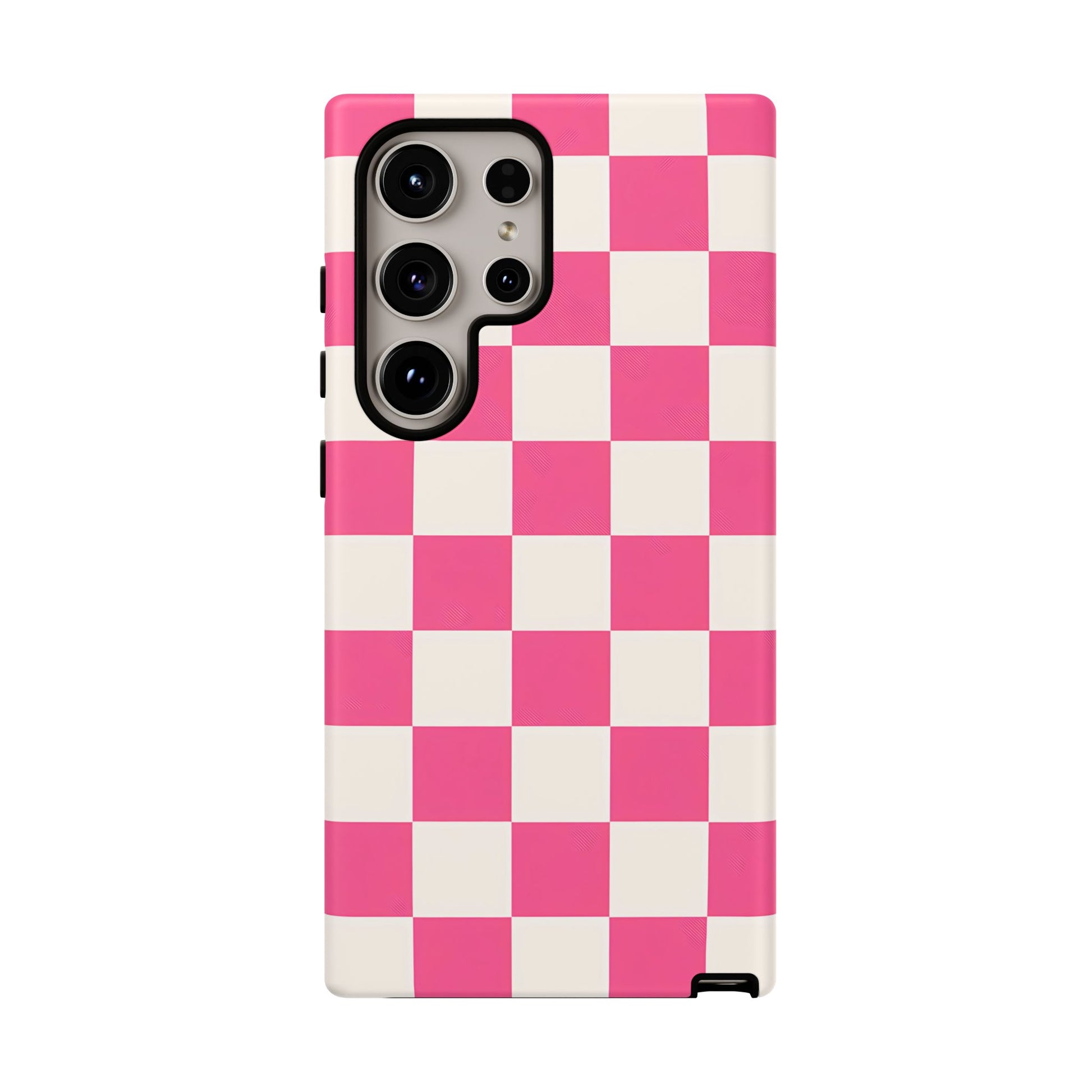 Bright pink and white checks create a sweet and spirited spin on the traditional grid. This playful pattern radiates youthful charm and pop flair