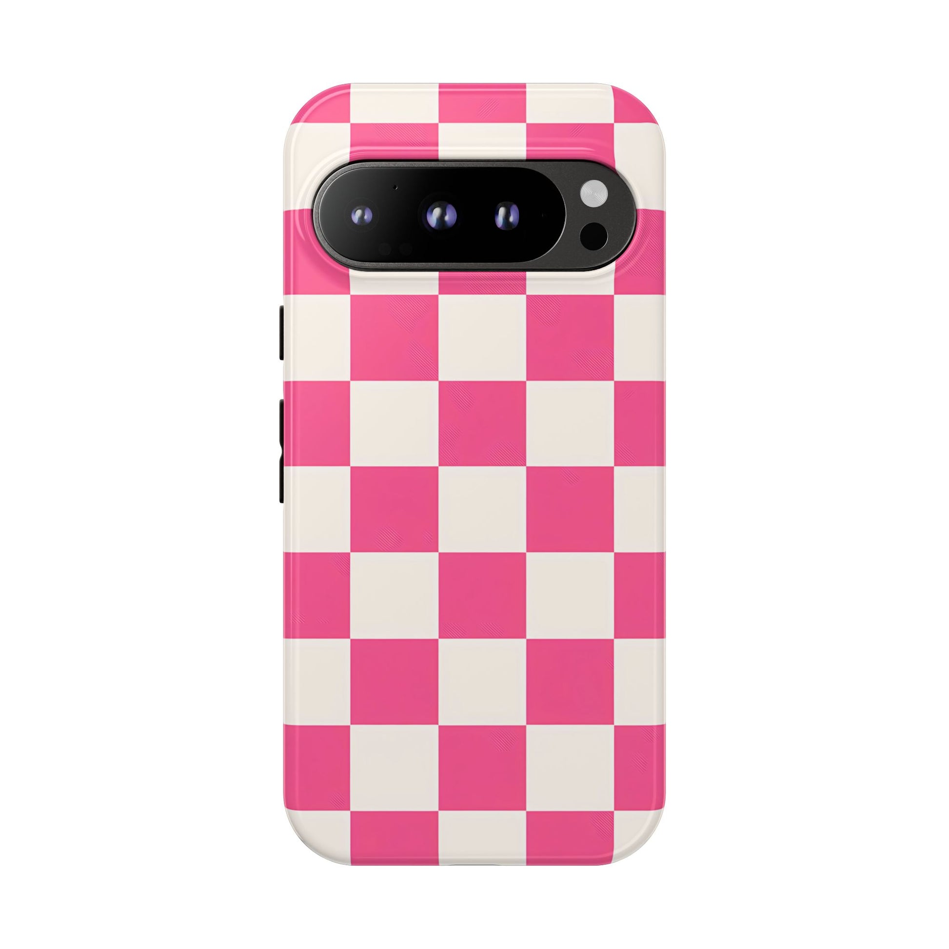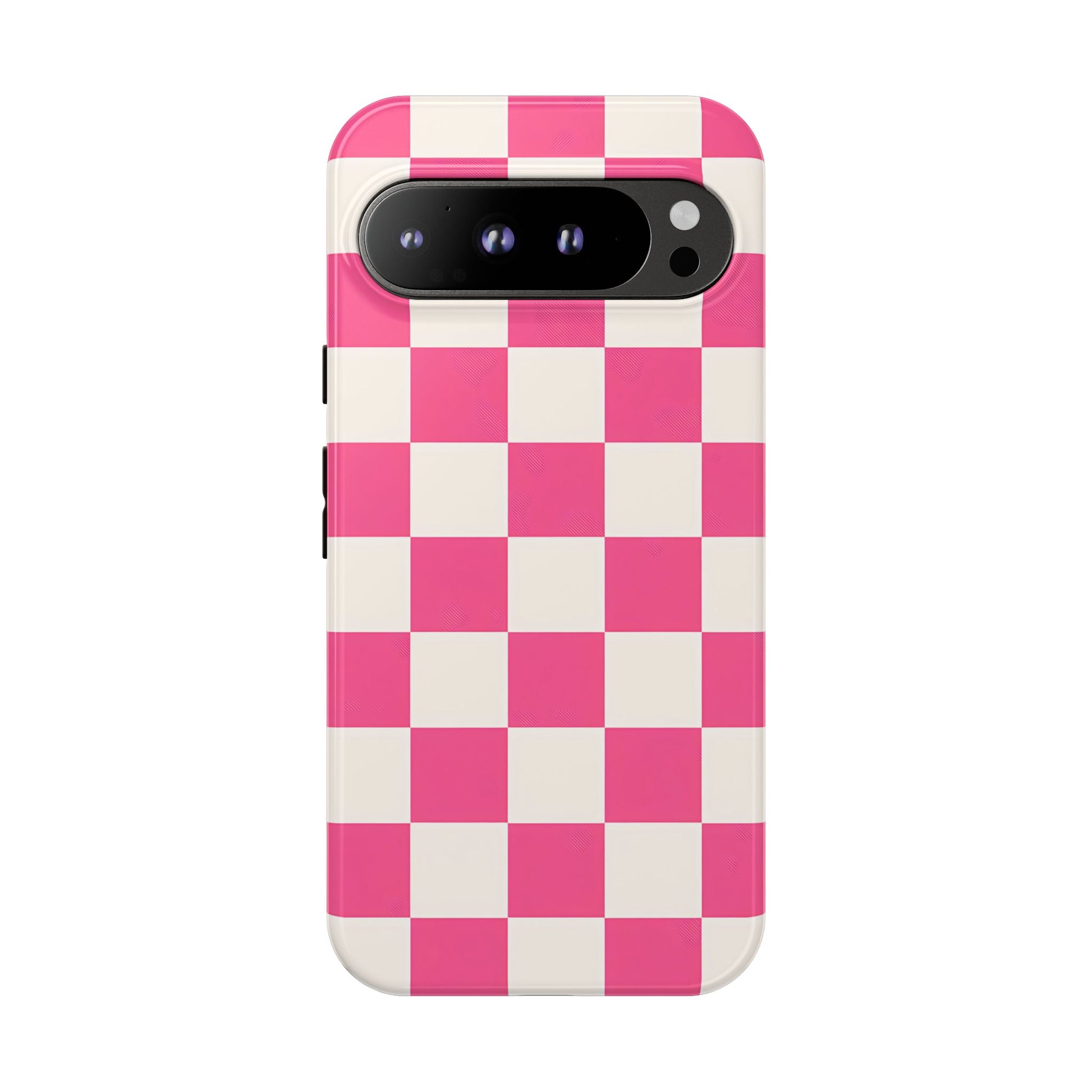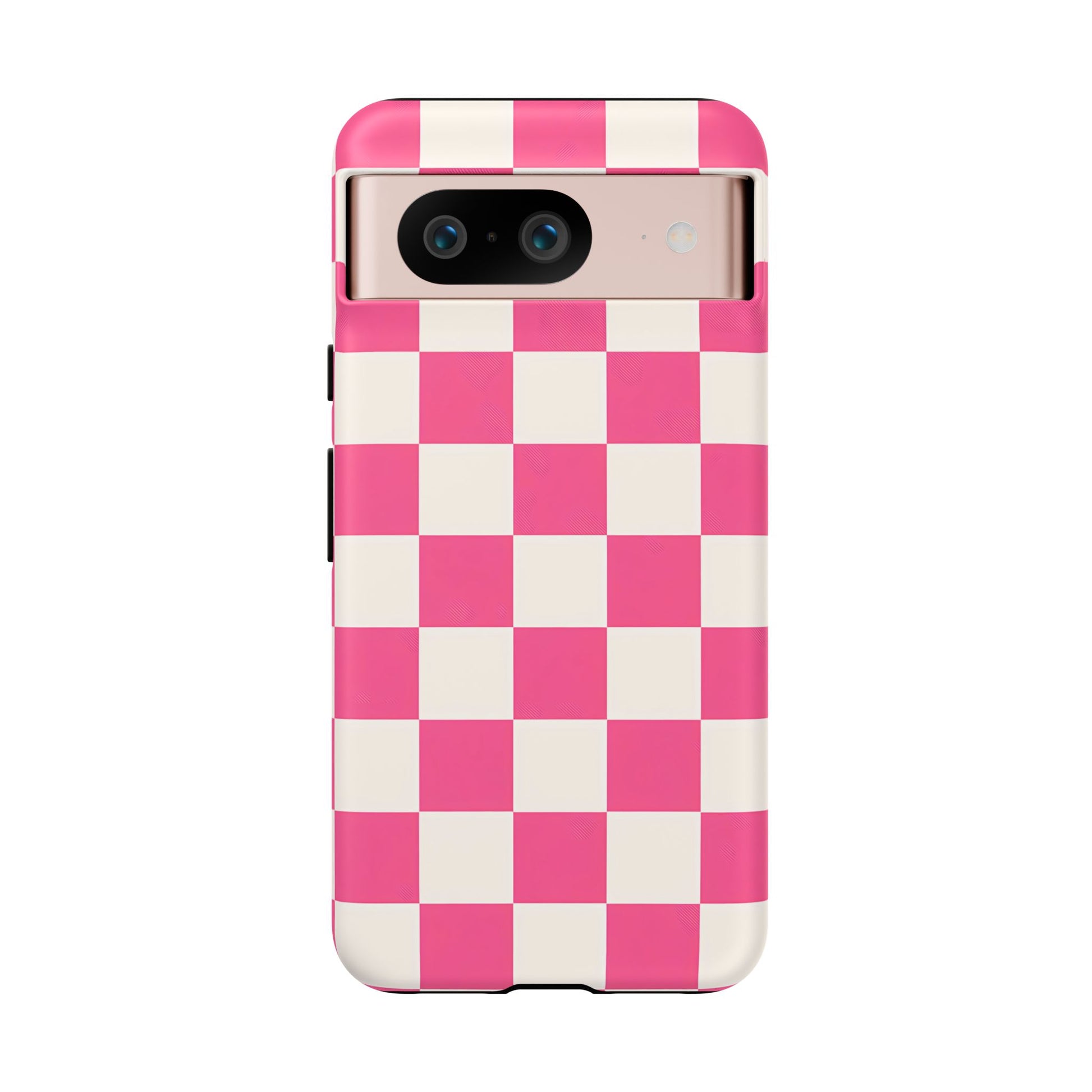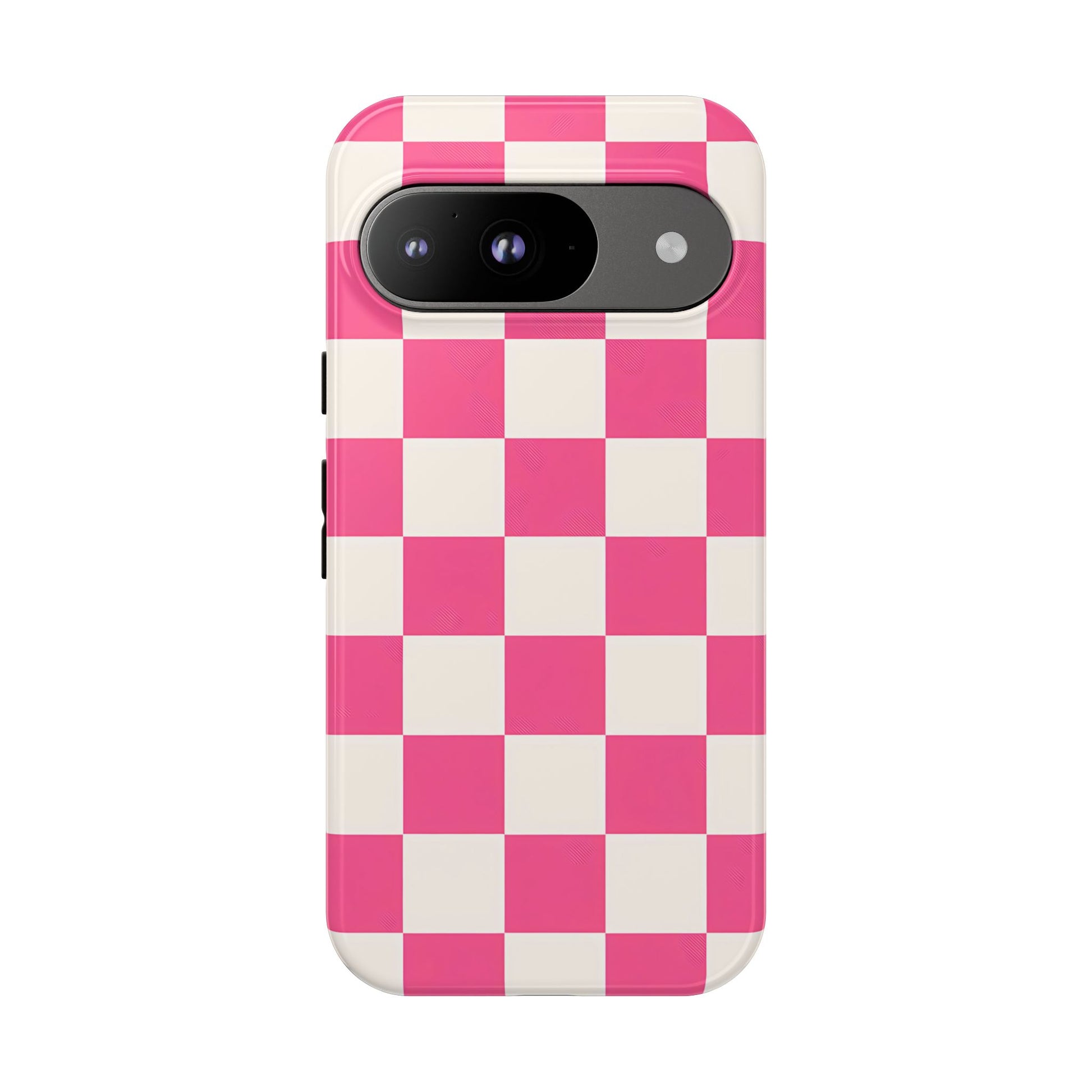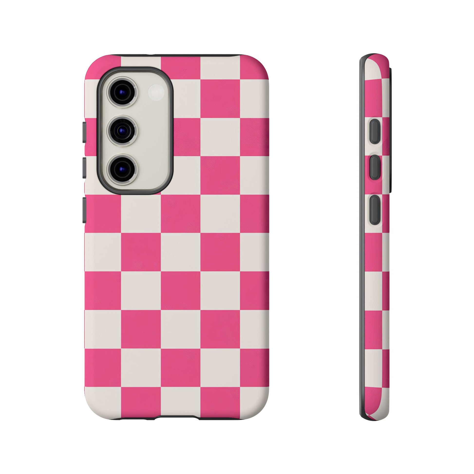 Bright pink and white checks create a sweet and spirited spin on the traditional grid. This playful pattern radiates youthful charm and pop flair