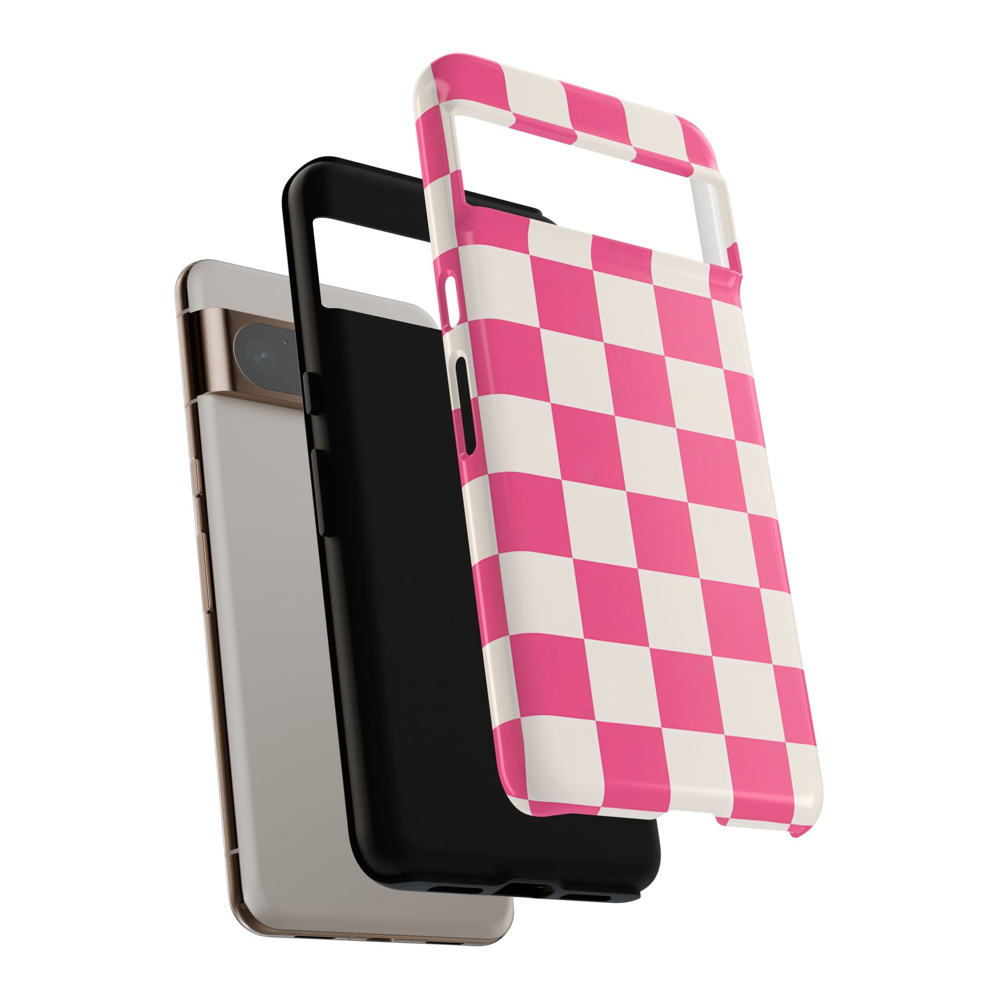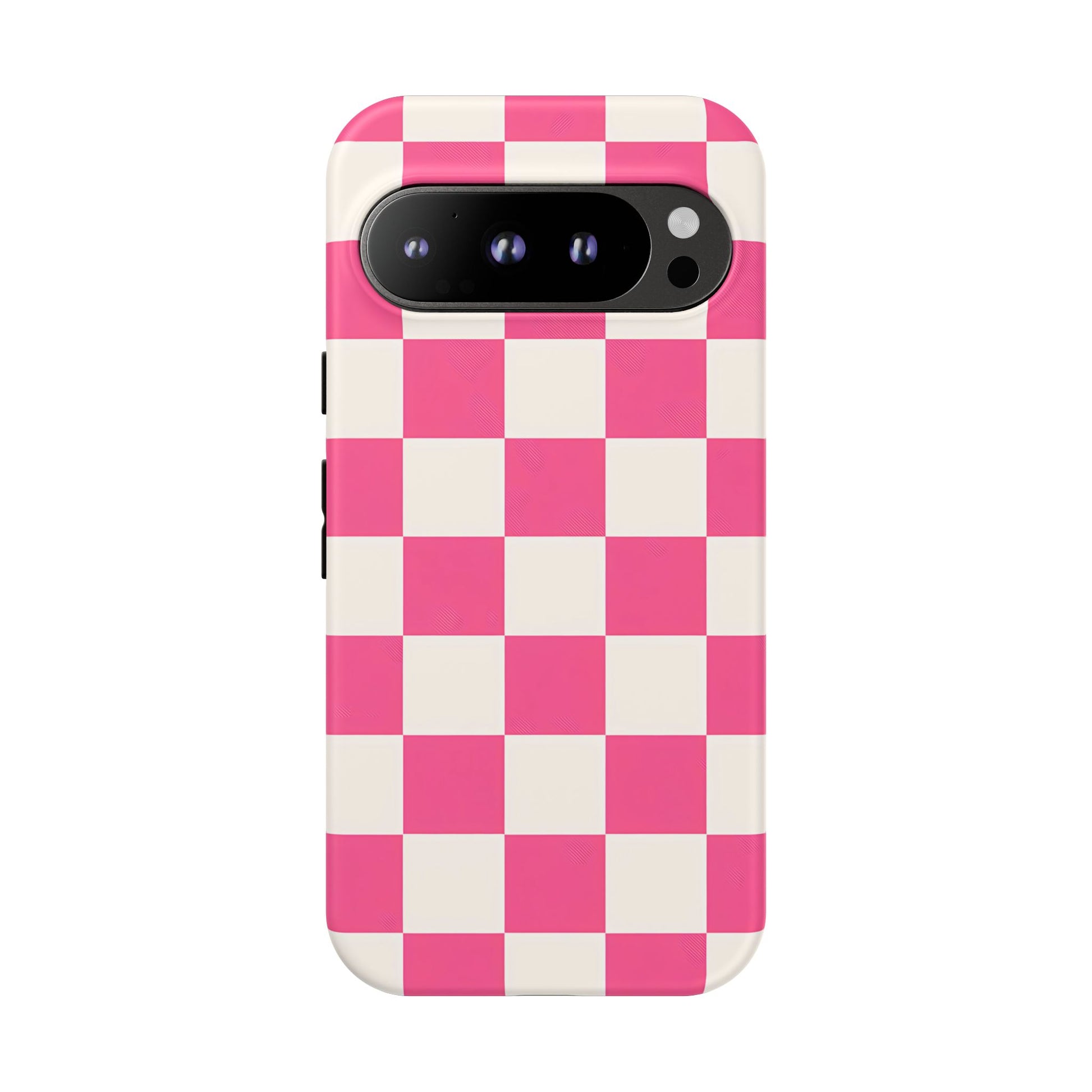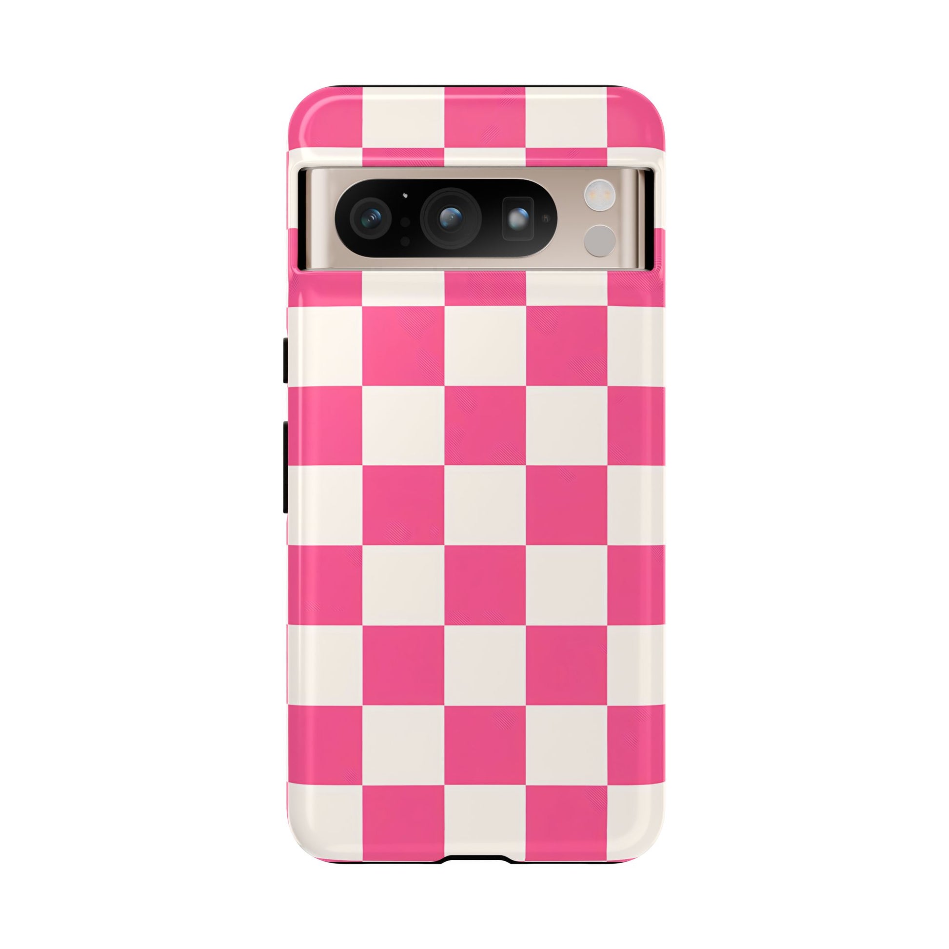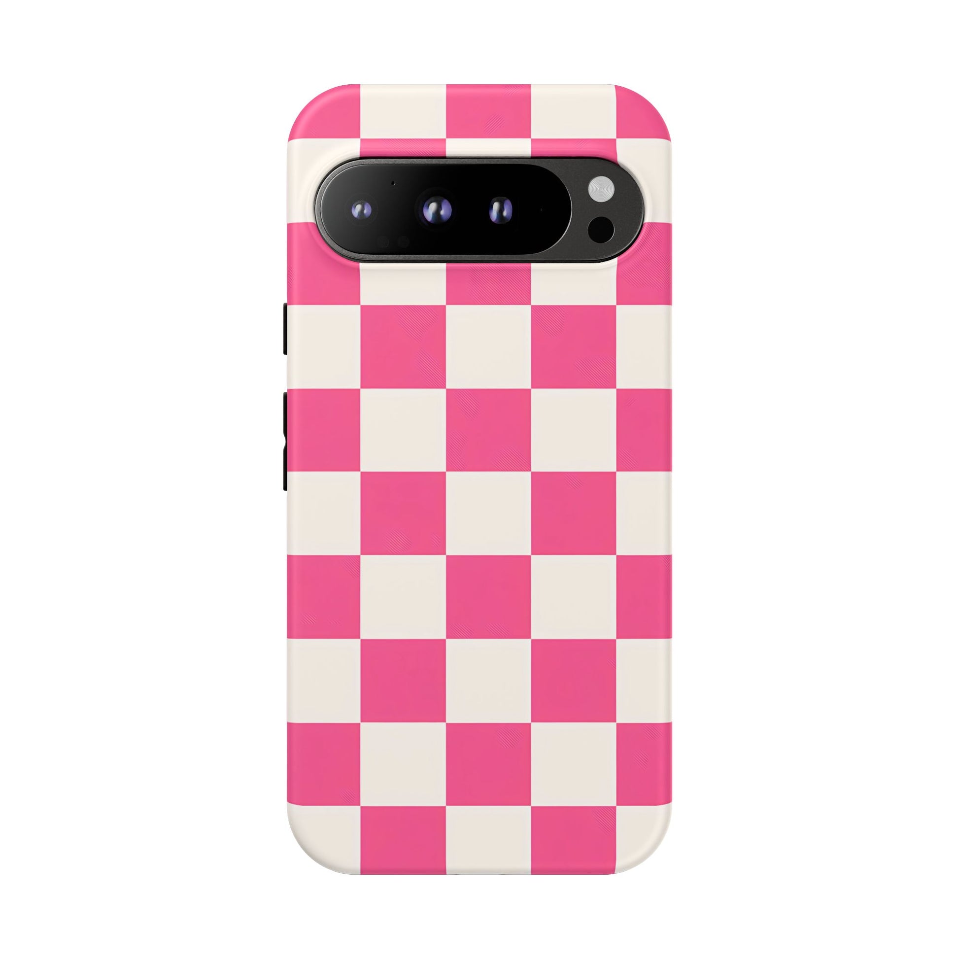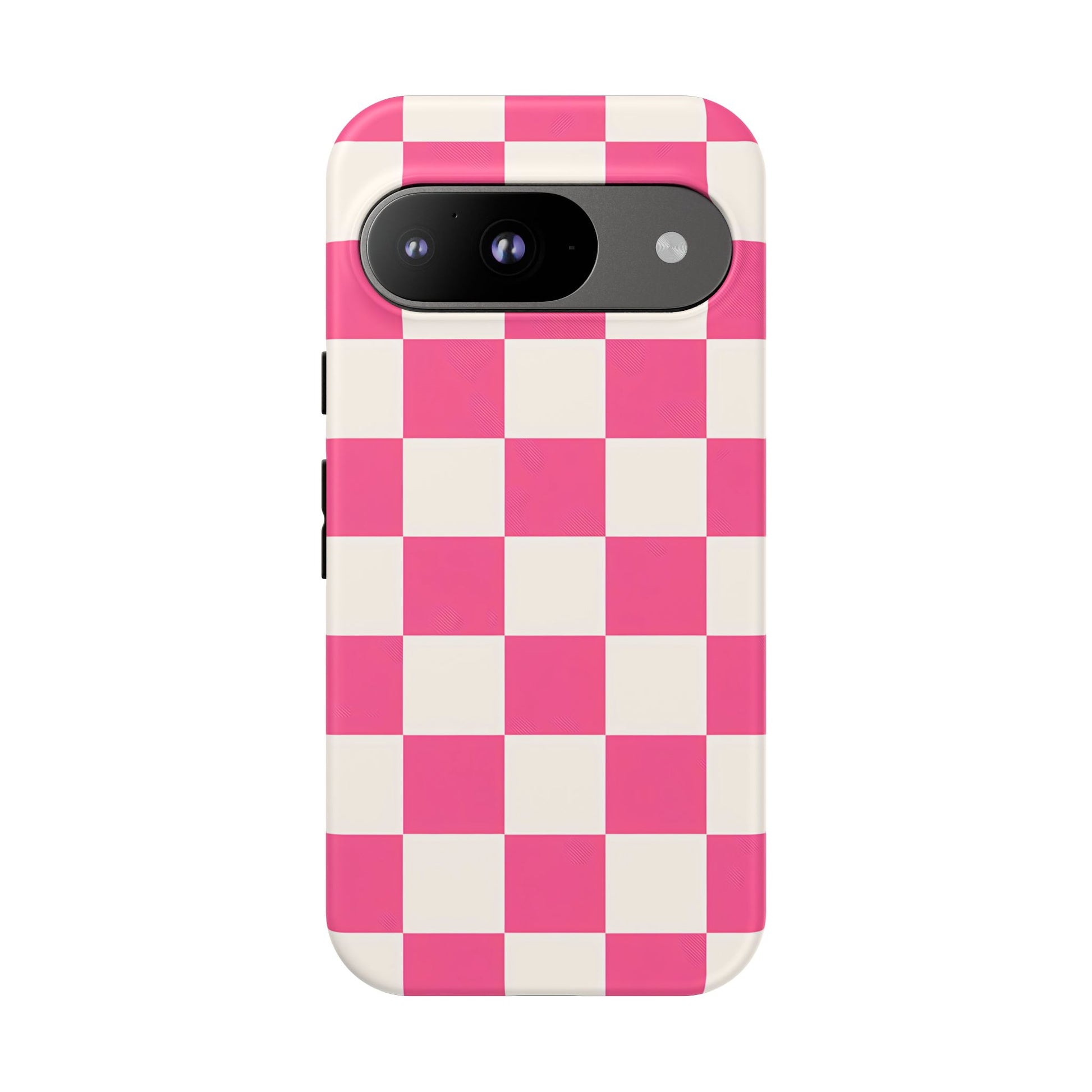 Bright pink and white checks create a sweet and spirited spin on the traditional grid. This playful pattern radiates youthful charm and pop flair