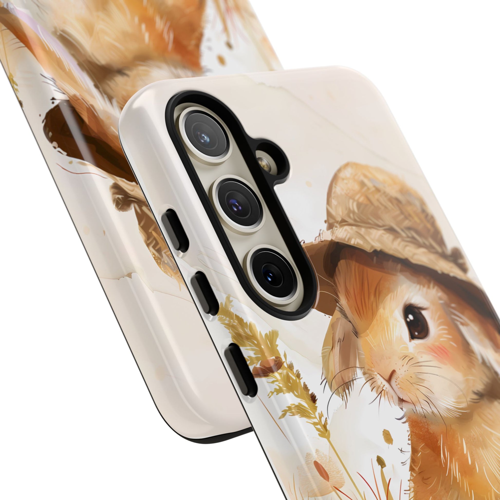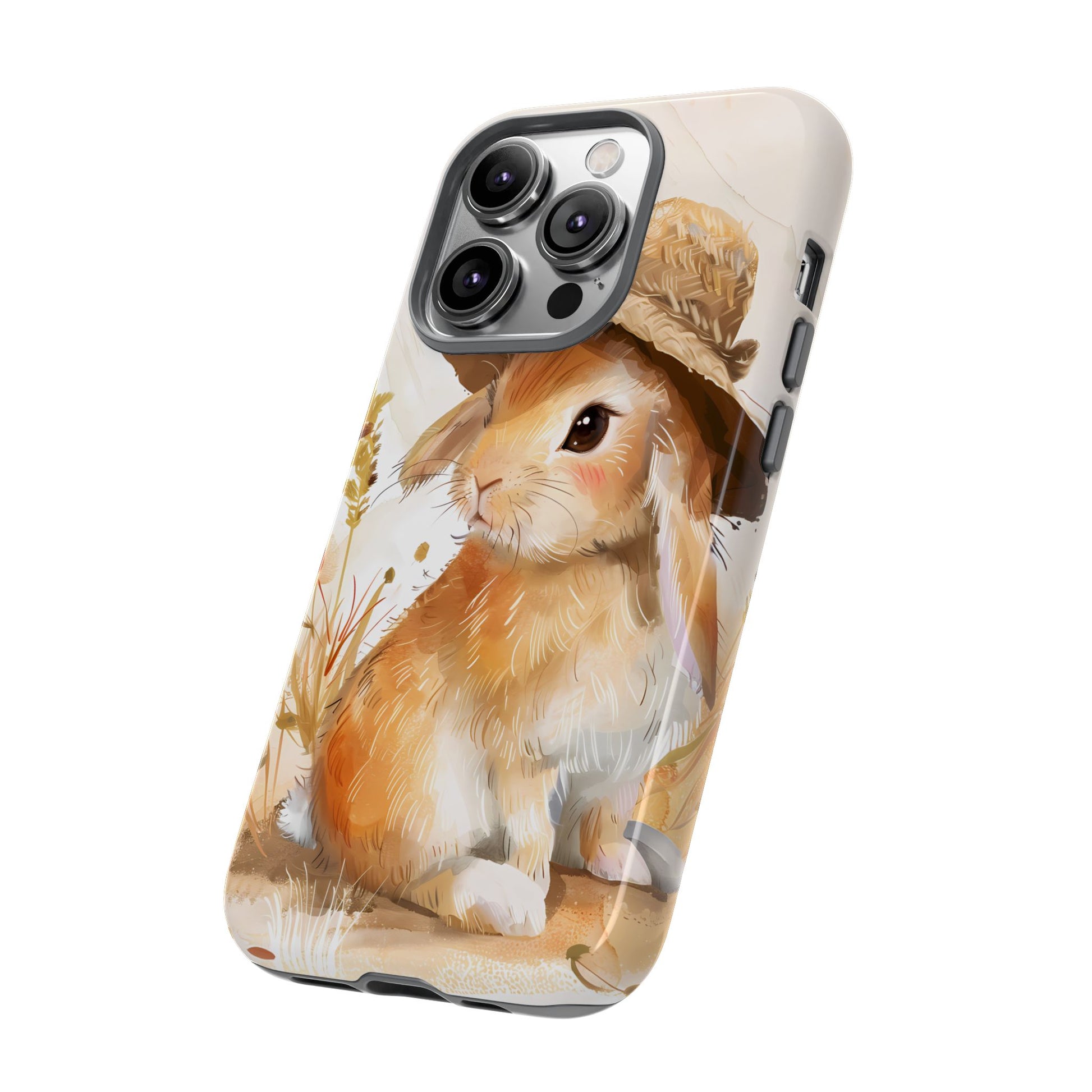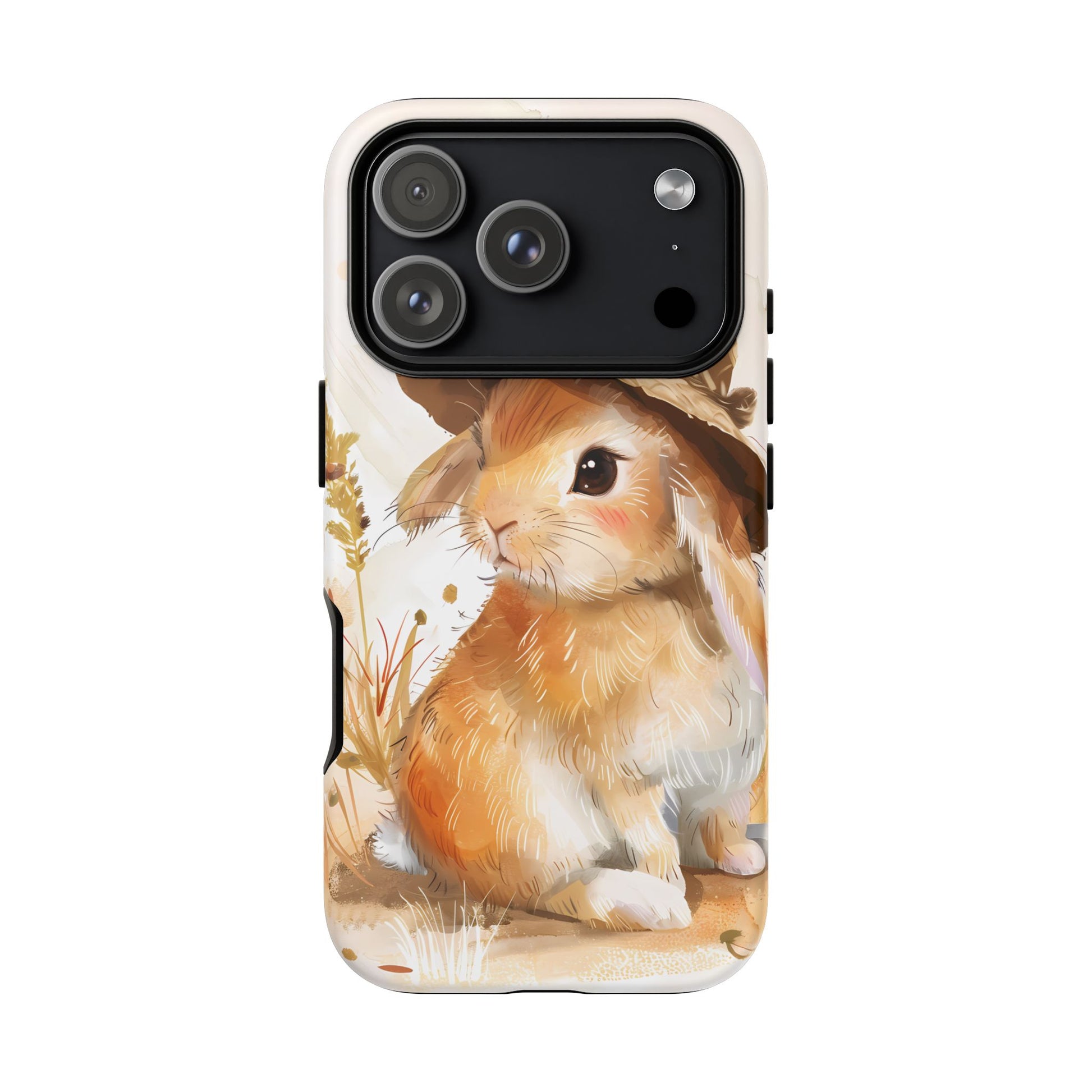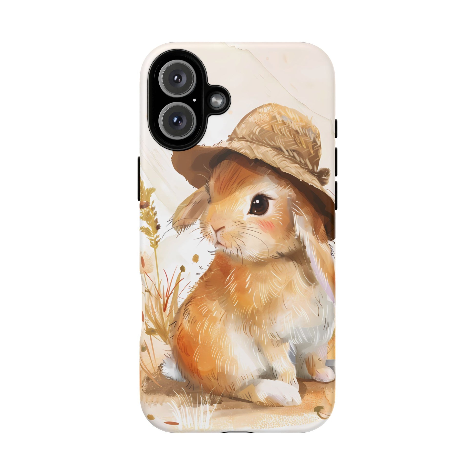 Hop into whimsy with our Bunny Bonnet Bliss Case! This adorable design features a cute bunny wearing a hat, rendered in delicate watercolor style against a crisp white background. Bring a touch of charm and playfulness to your phone with this lovable accessory.
