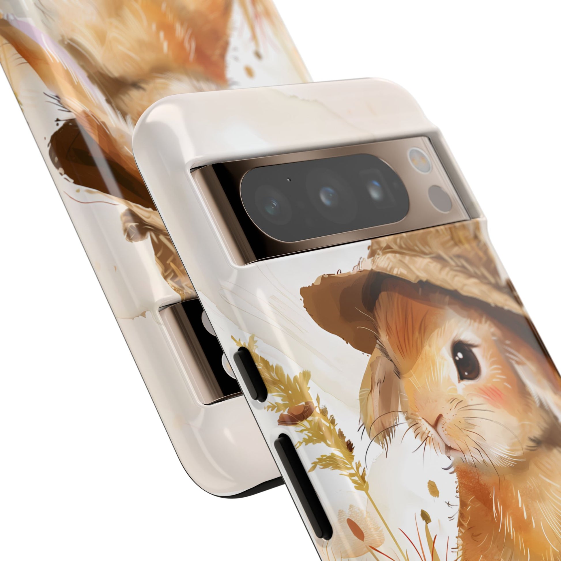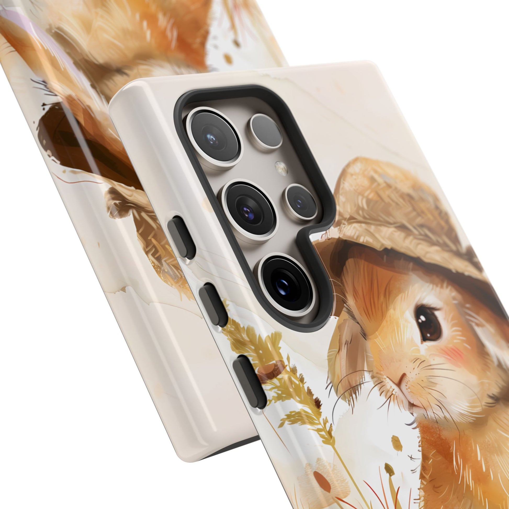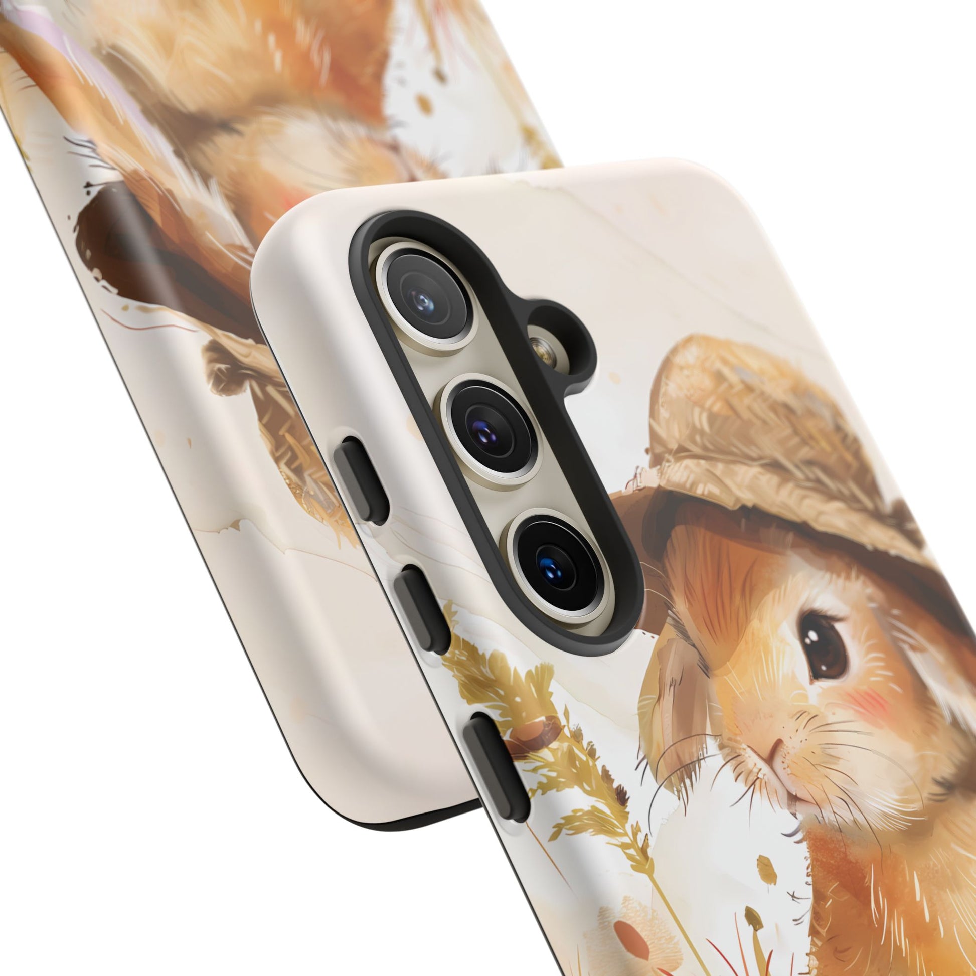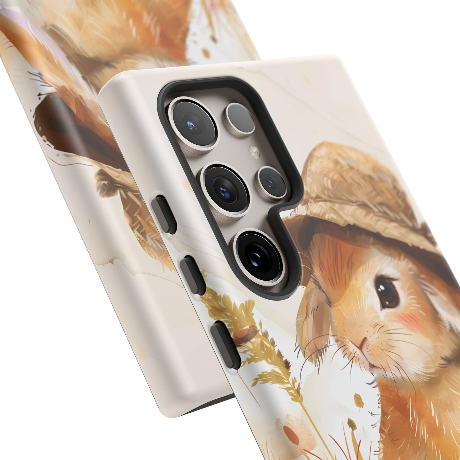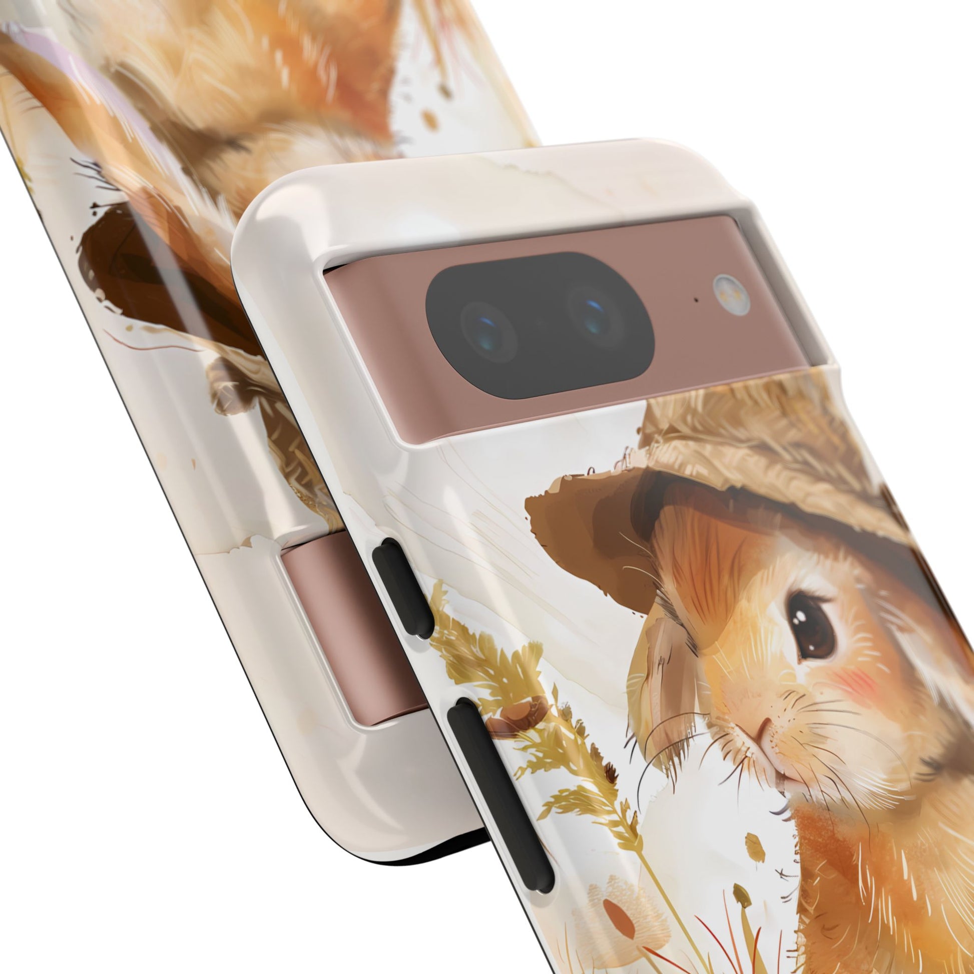 Hop into whimsy with our Bunny Bonnet Bliss Case! This adorable design features a cute bunny wearing a hat, rendered in delicate watercolor style against a crisp white background. Bring a touch of charm and playfulness to your phone with this lovable accessory.