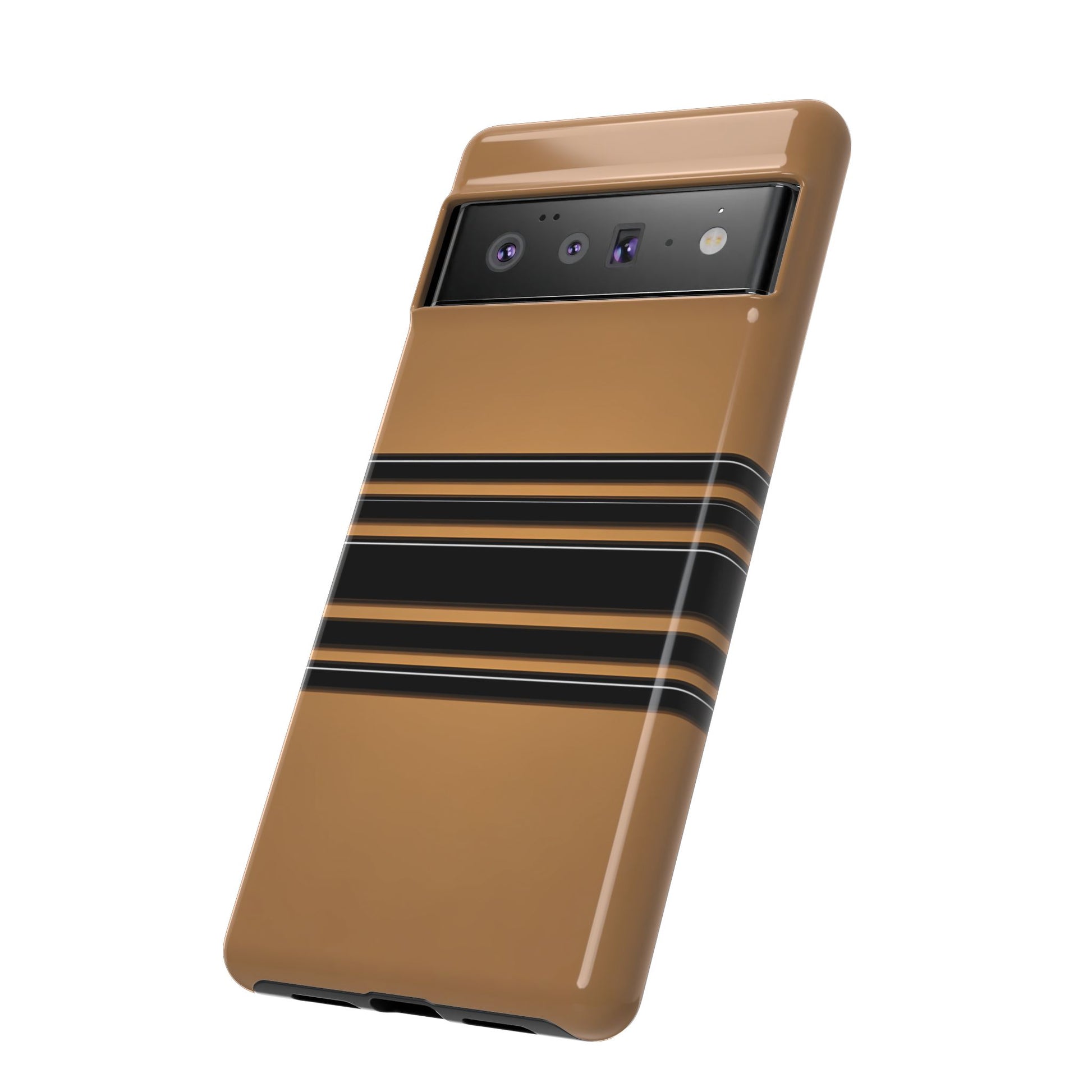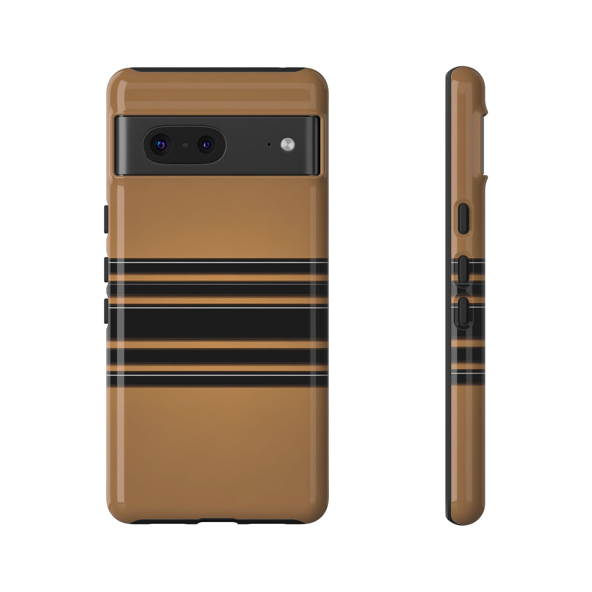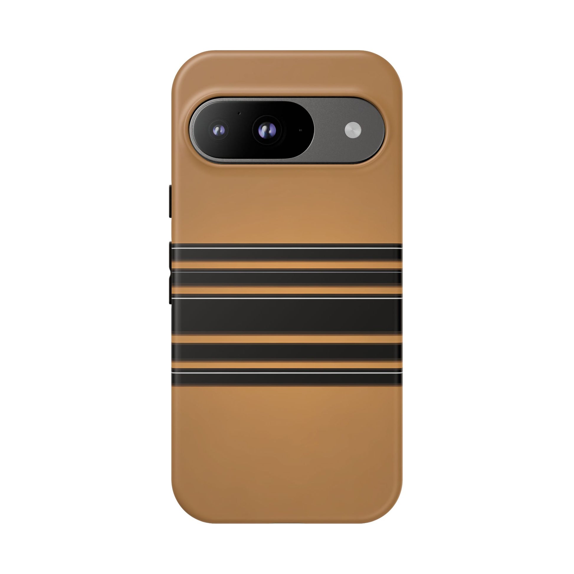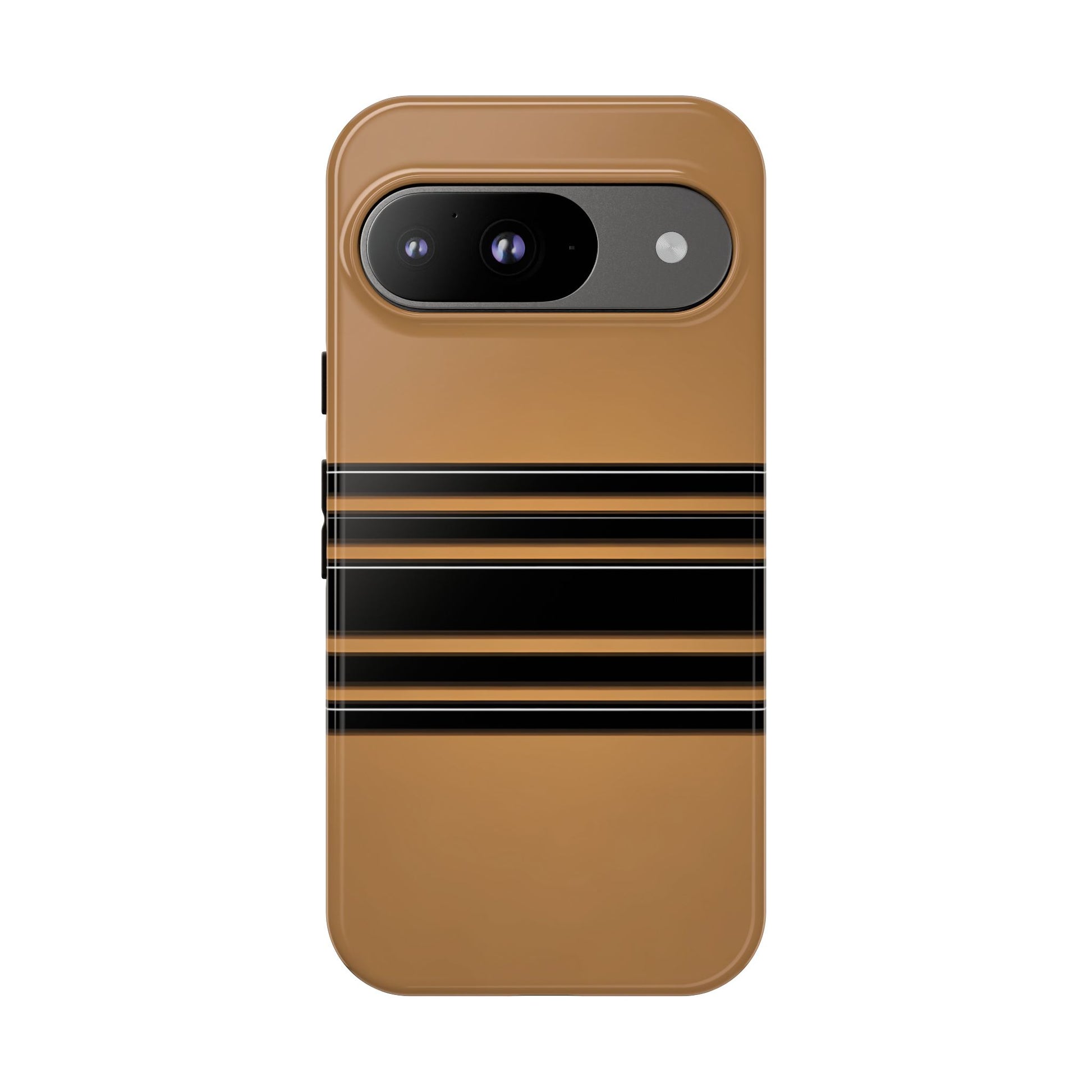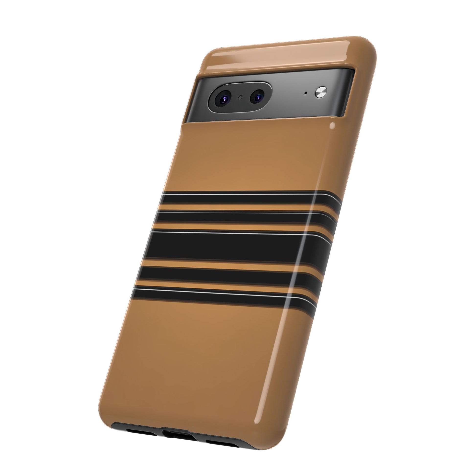A crisp horizontal stripe centered on a smooth chocolate background for a bold, minimalist look.
