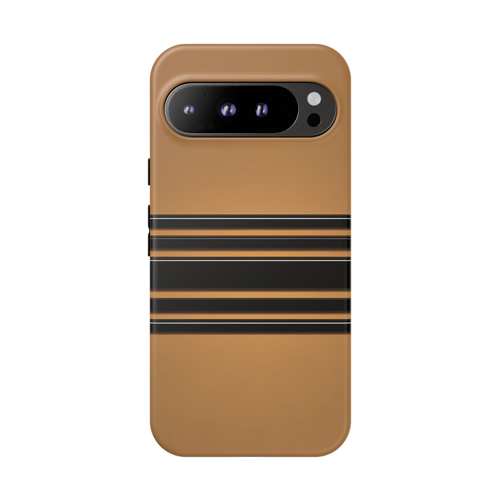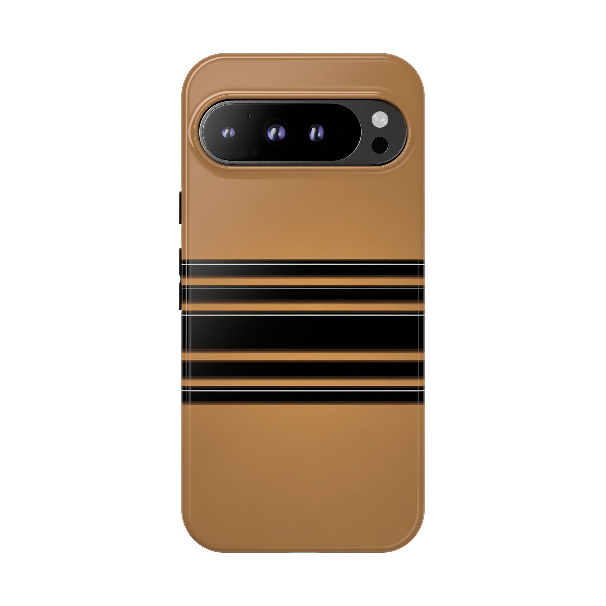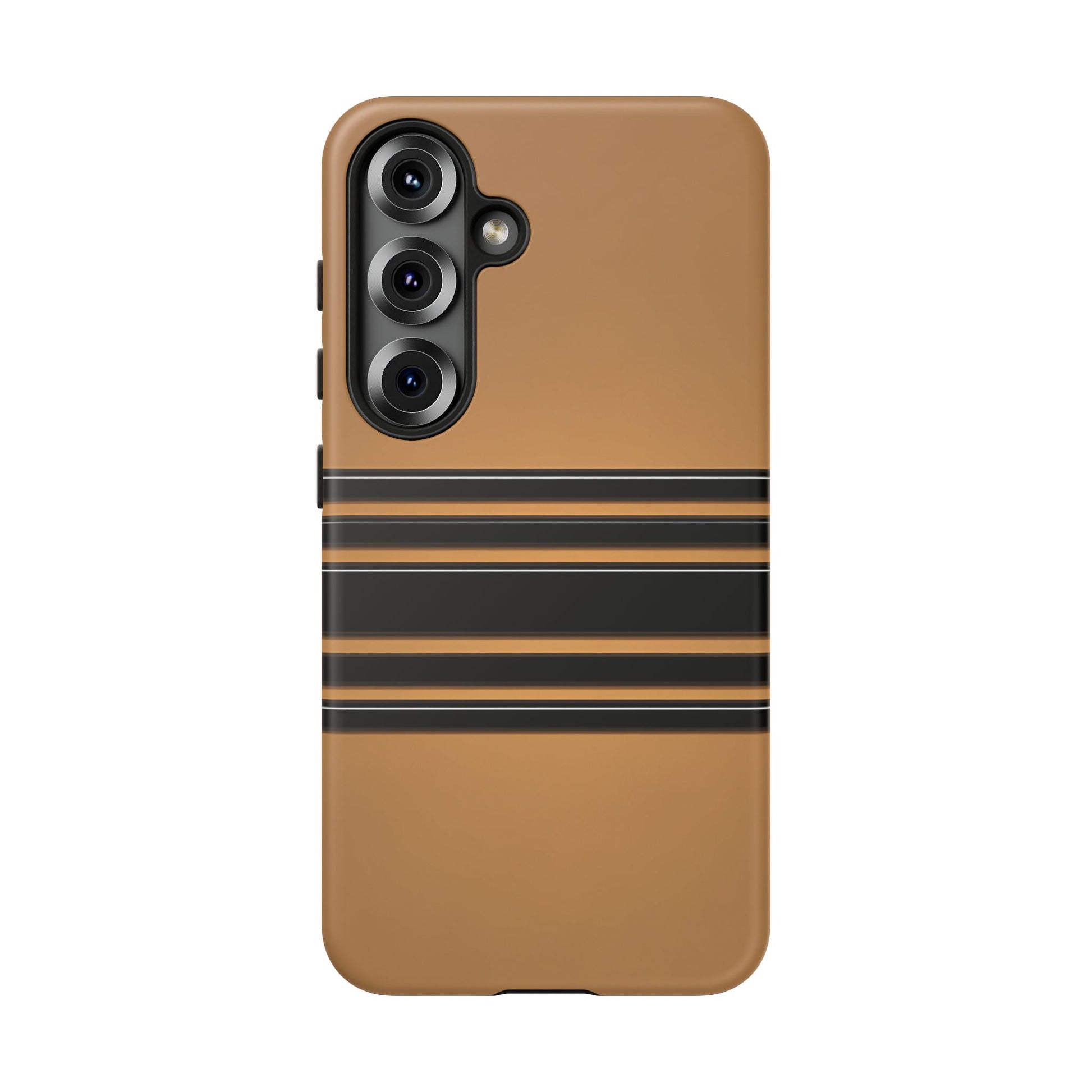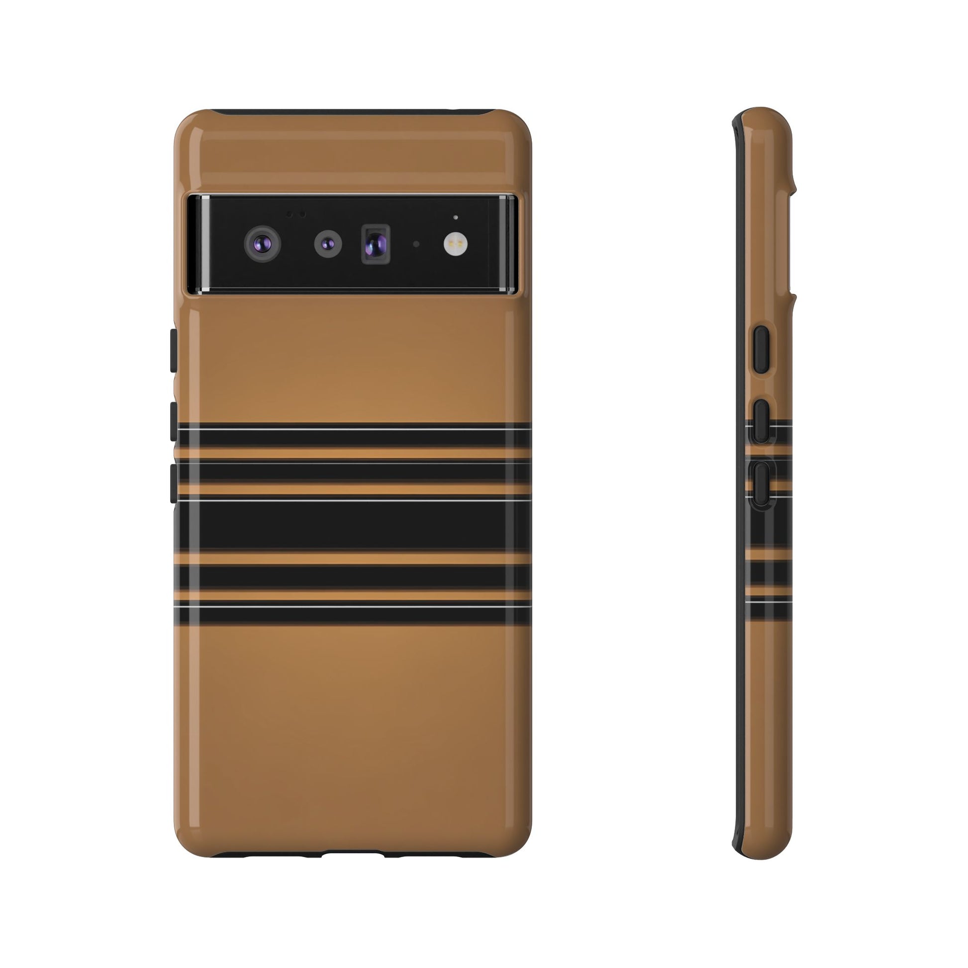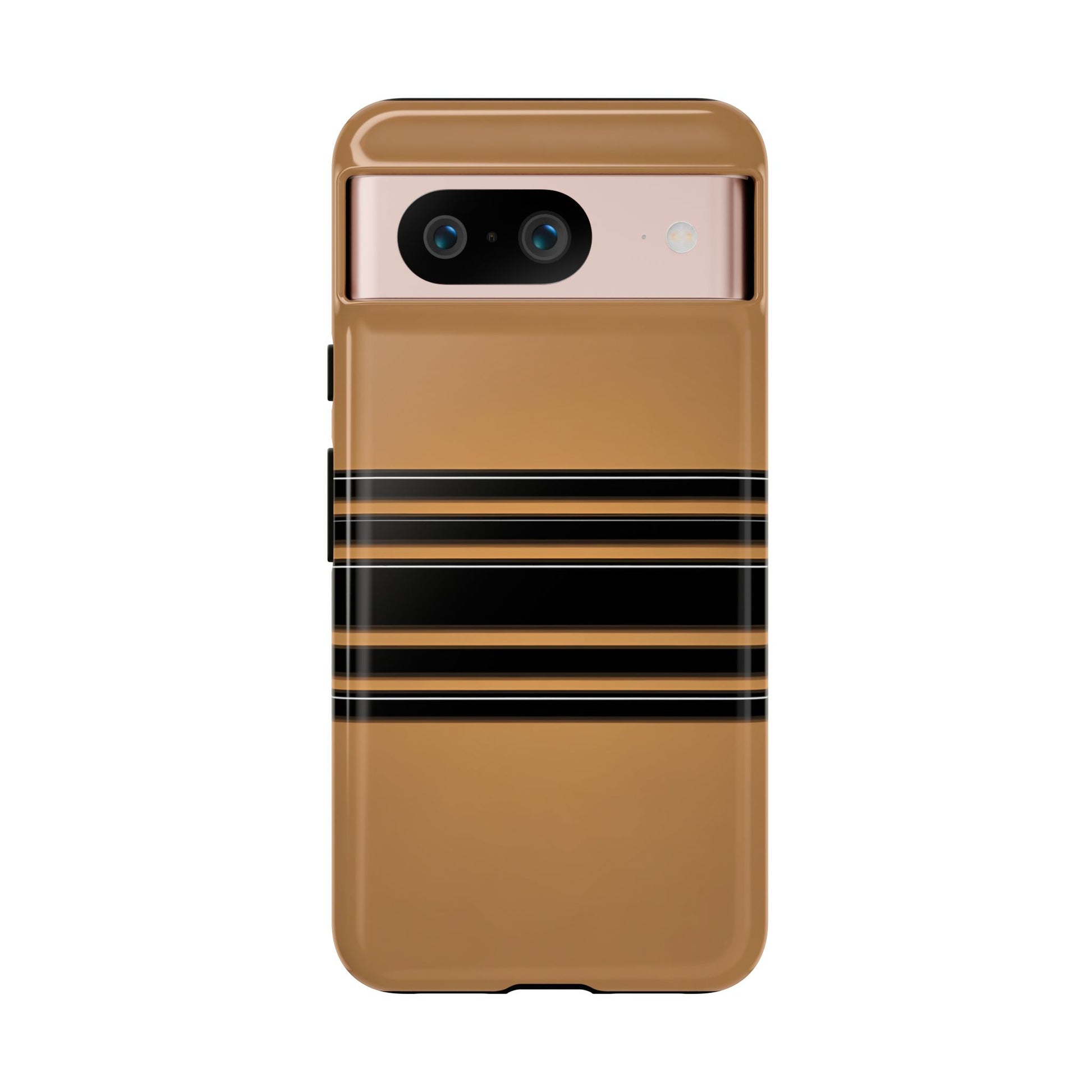 A crisp horizontal stripe centered on a smooth chocolate background for a bold, minimalist look.