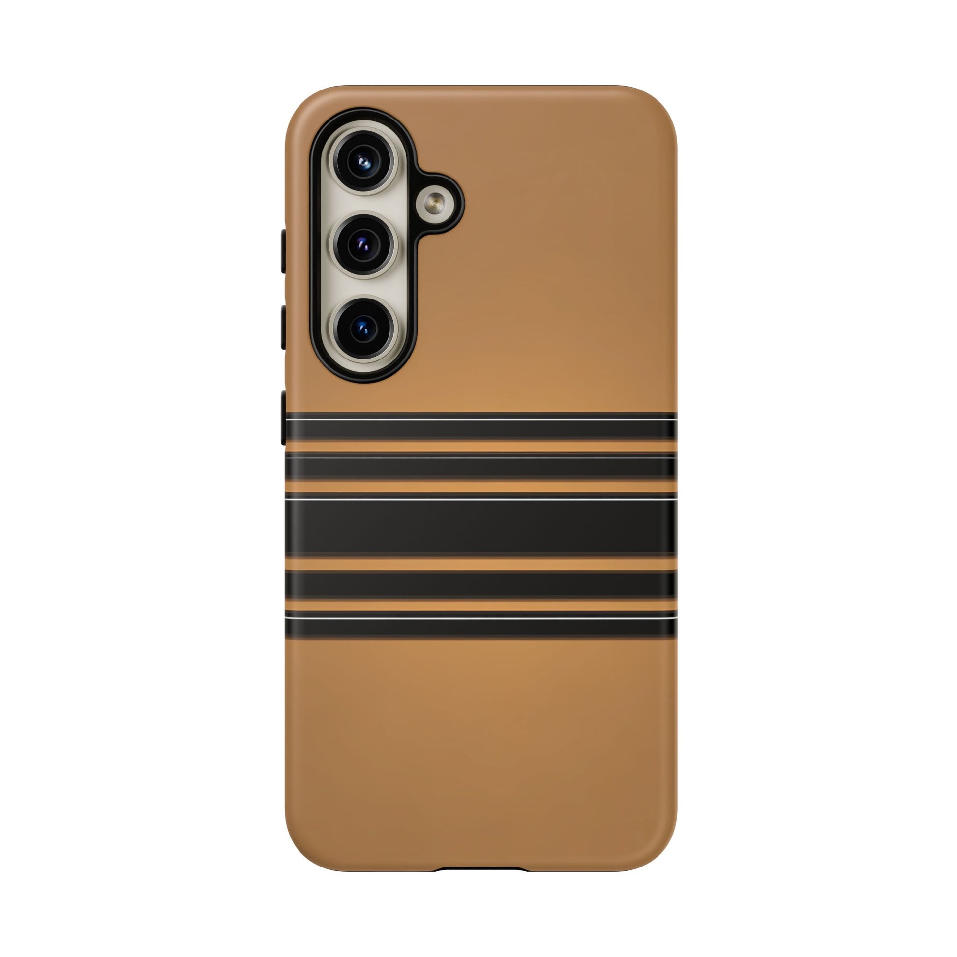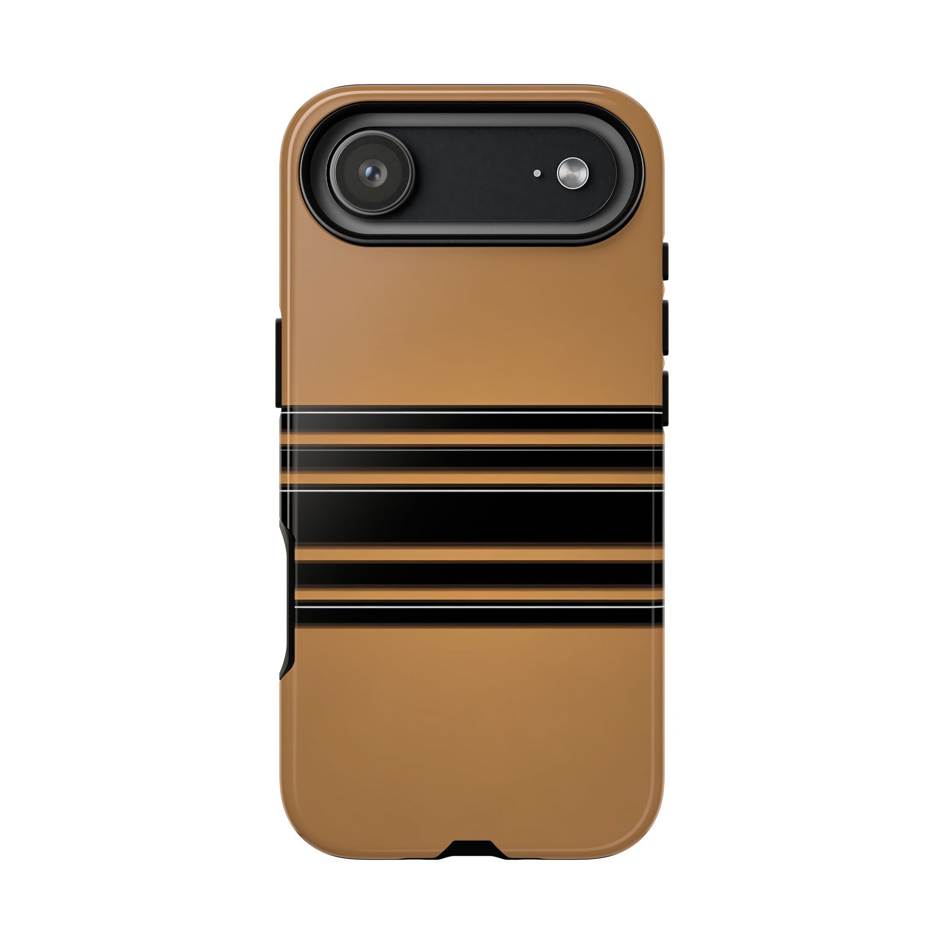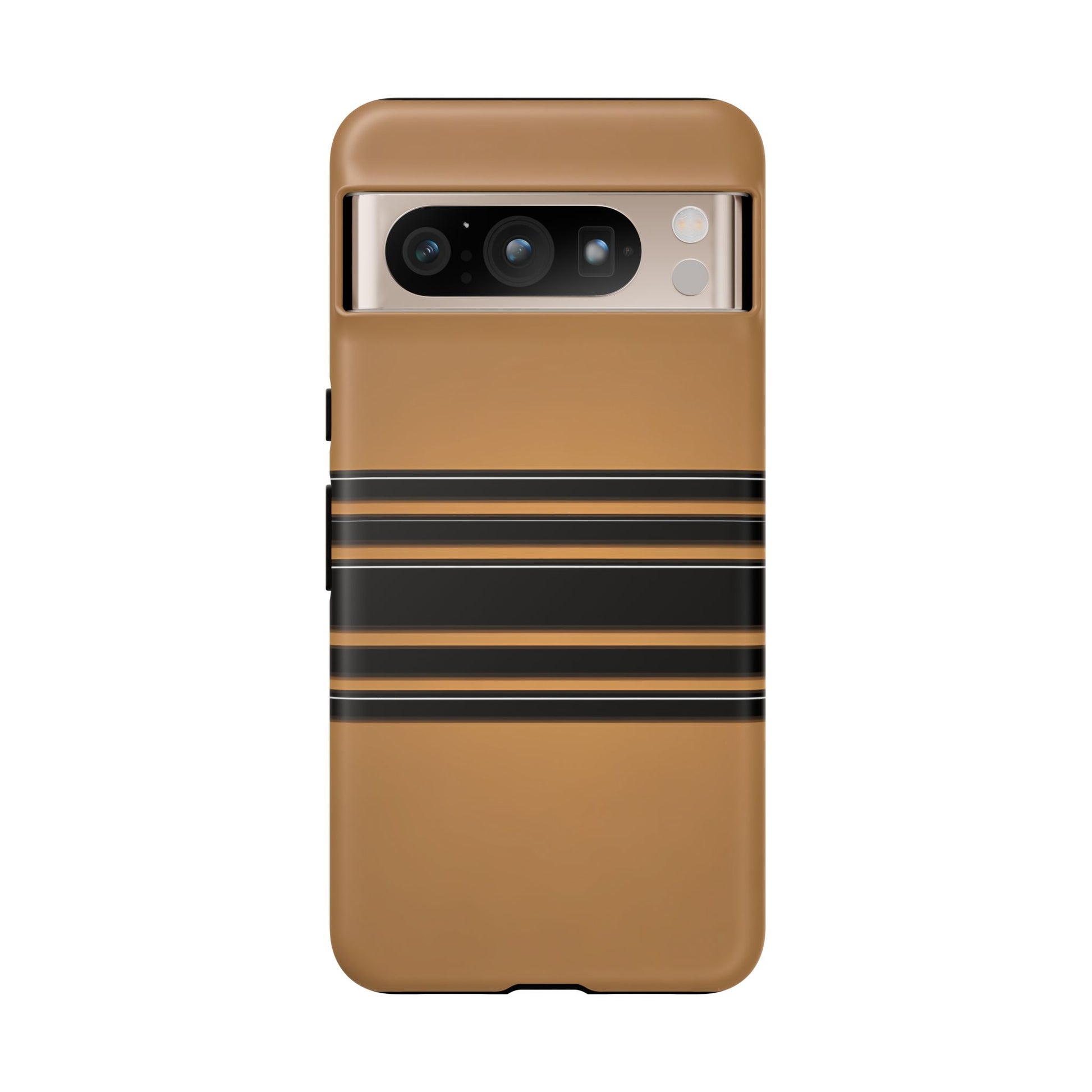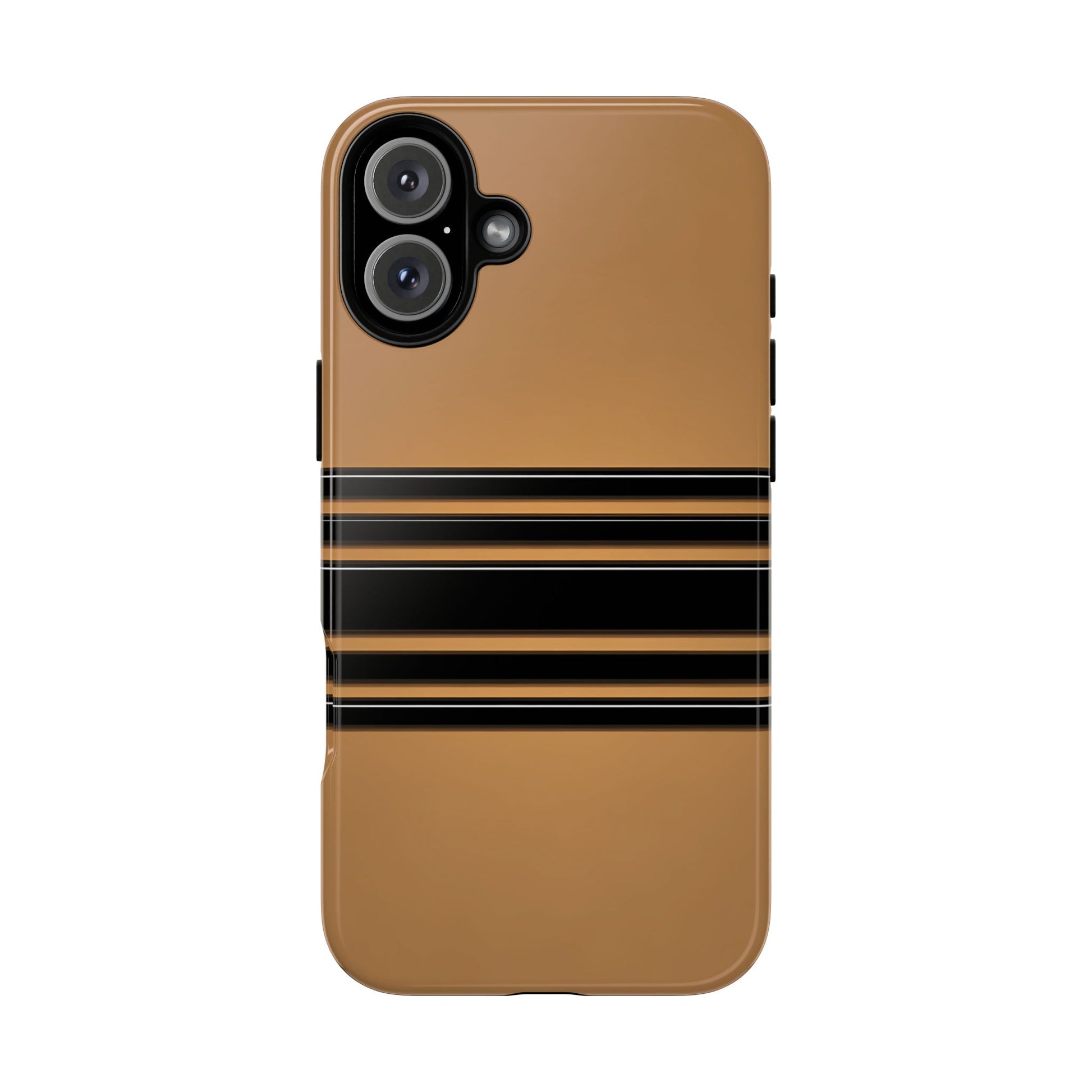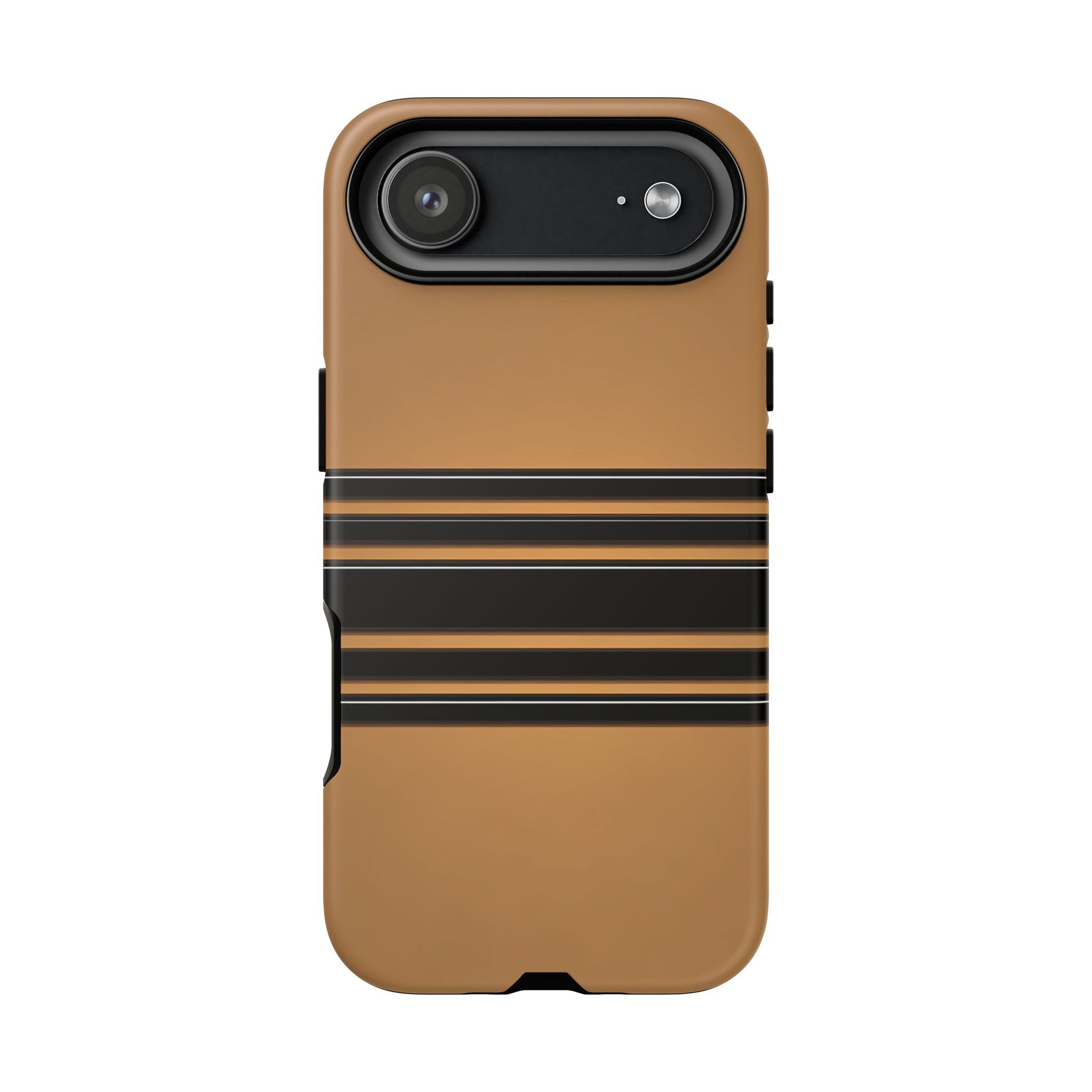 A crisp horizontal stripe centered on a smooth chocolate background for a bold, minimalist look.