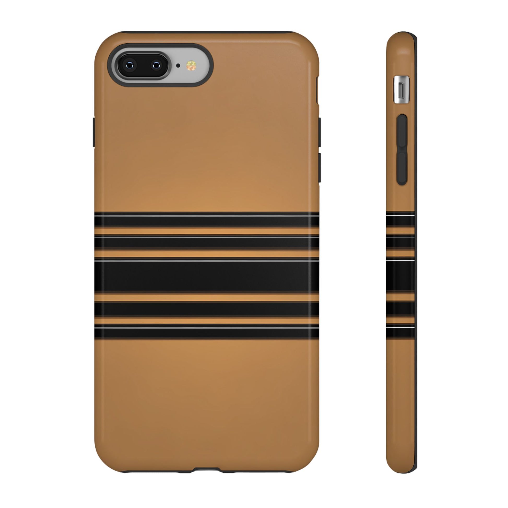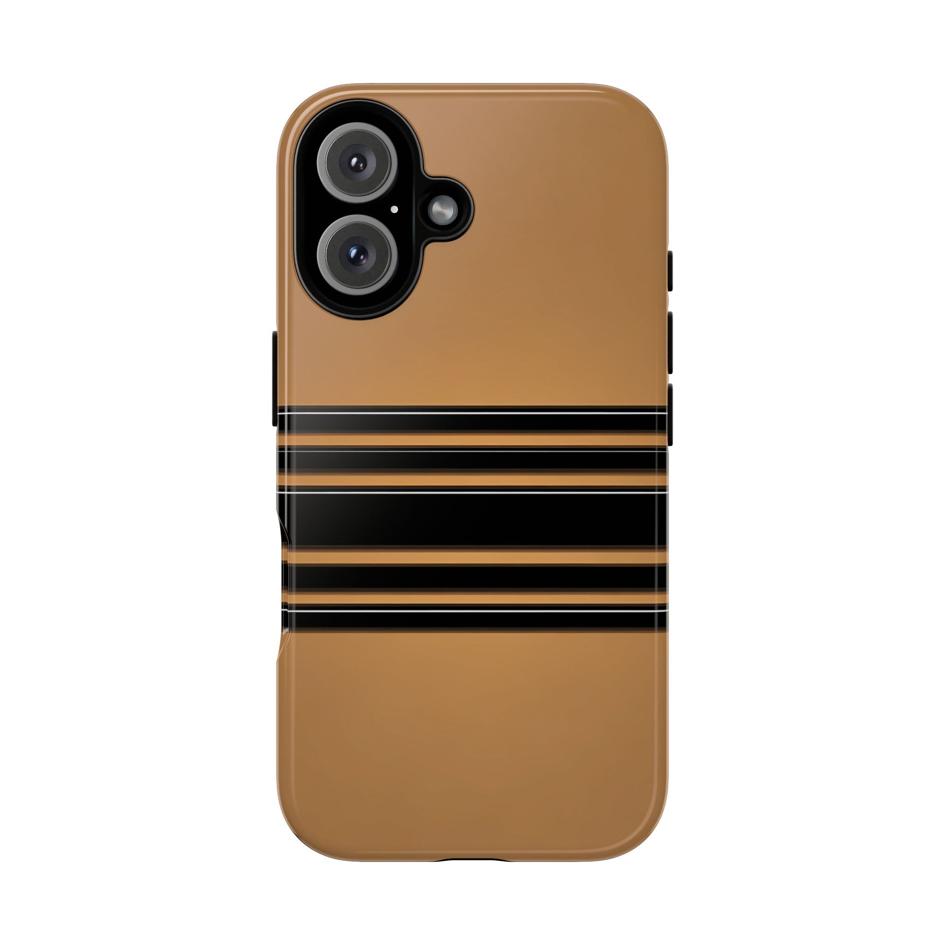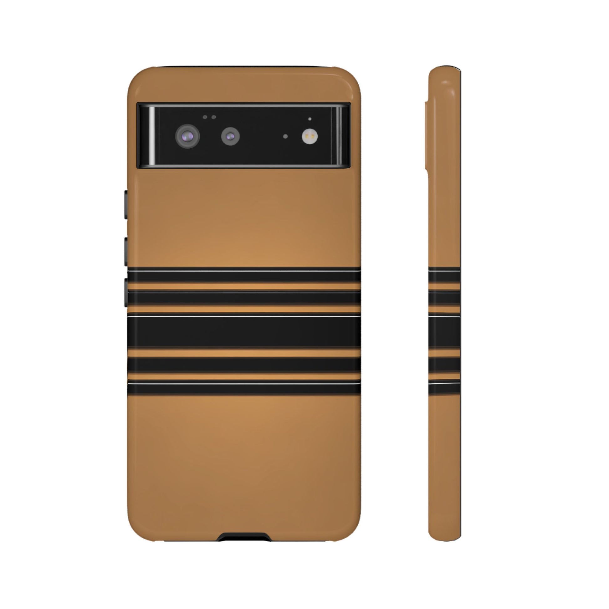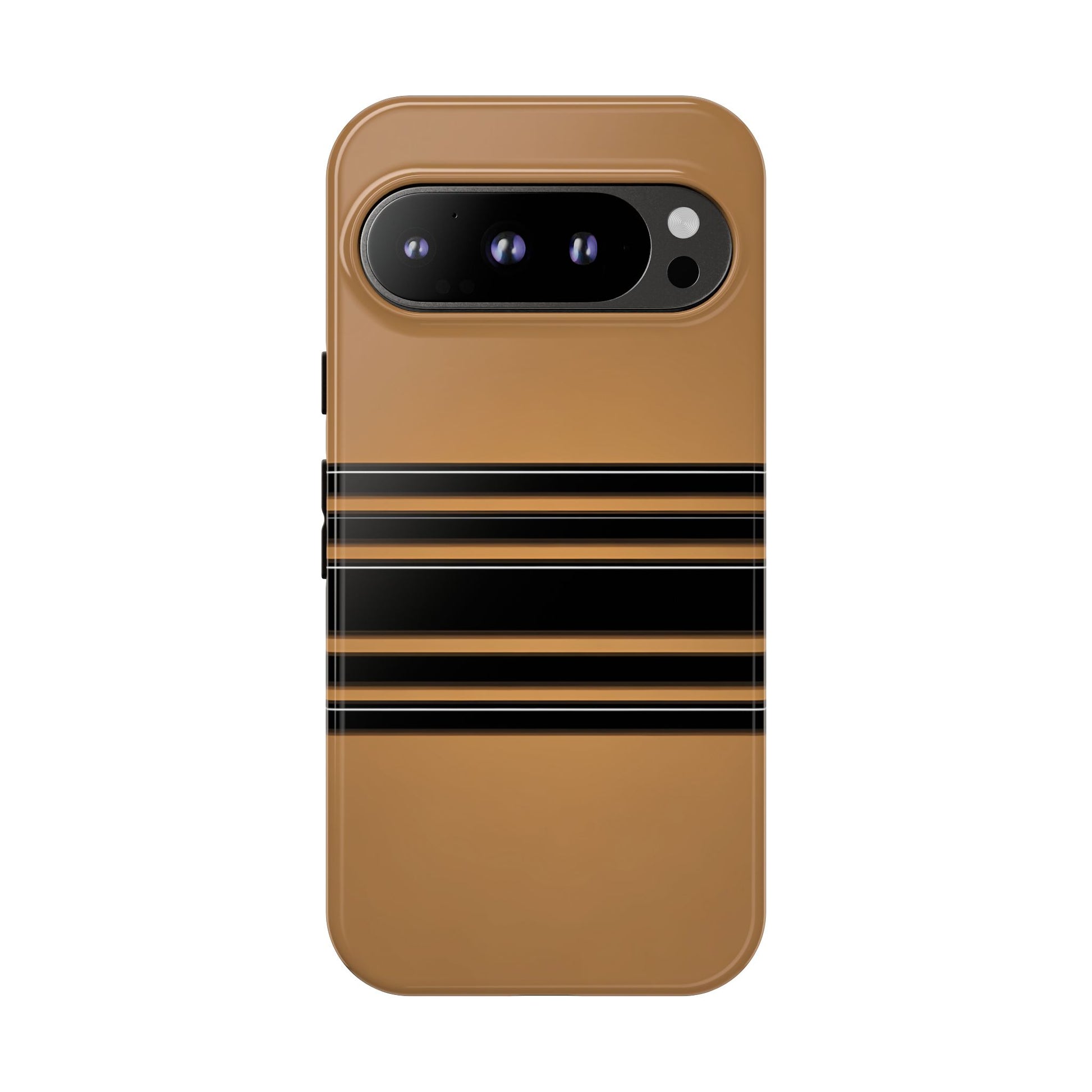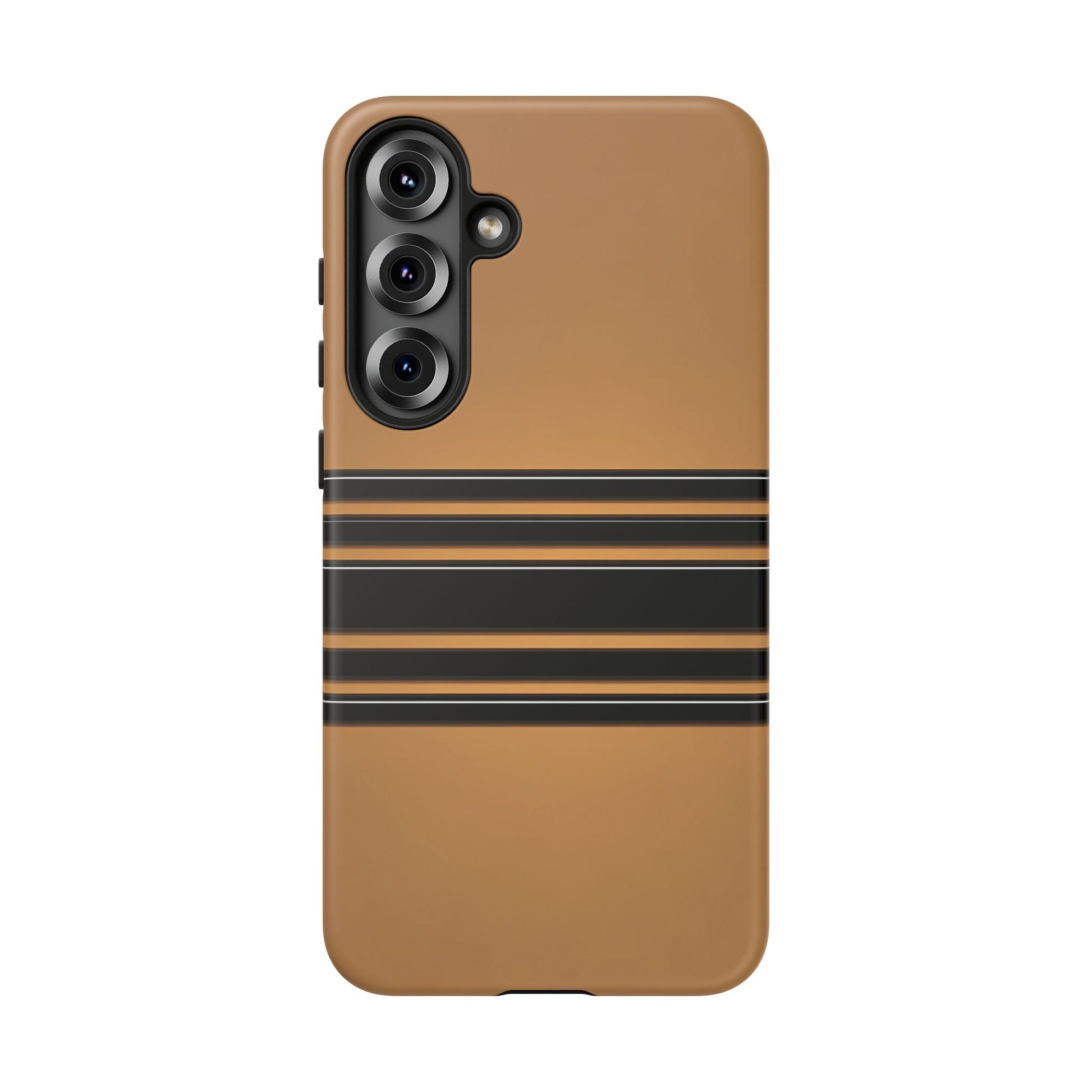 A crisp horizontal stripe centered on a smooth chocolate background for a bold, minimalist look.