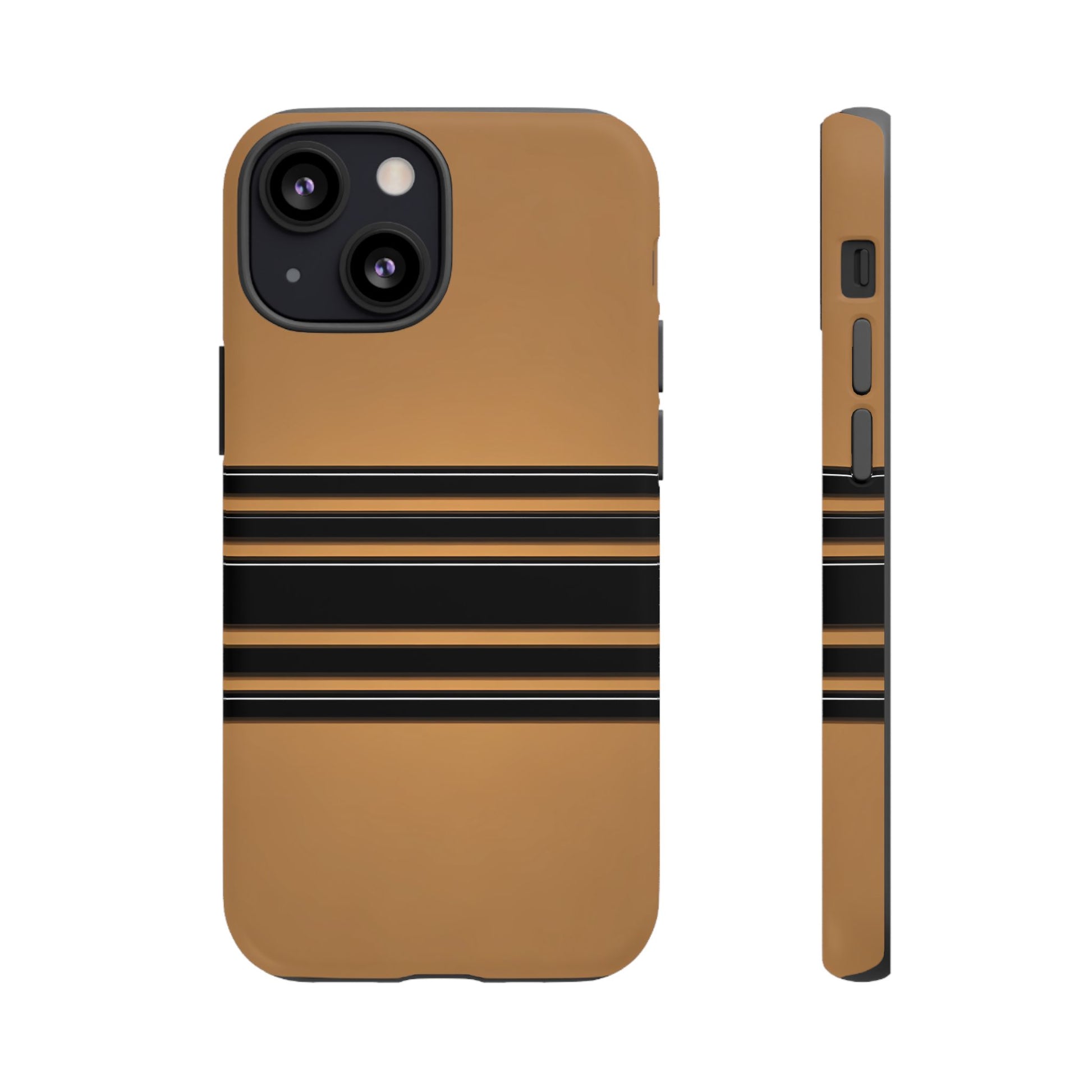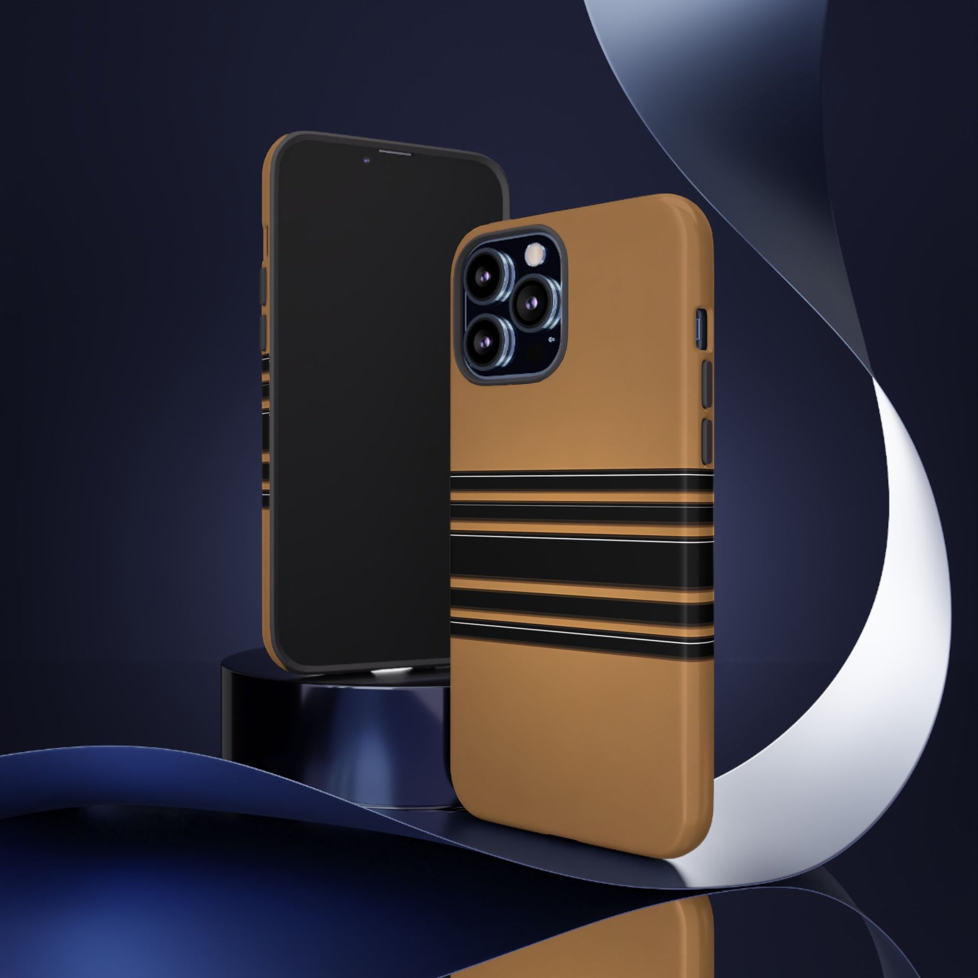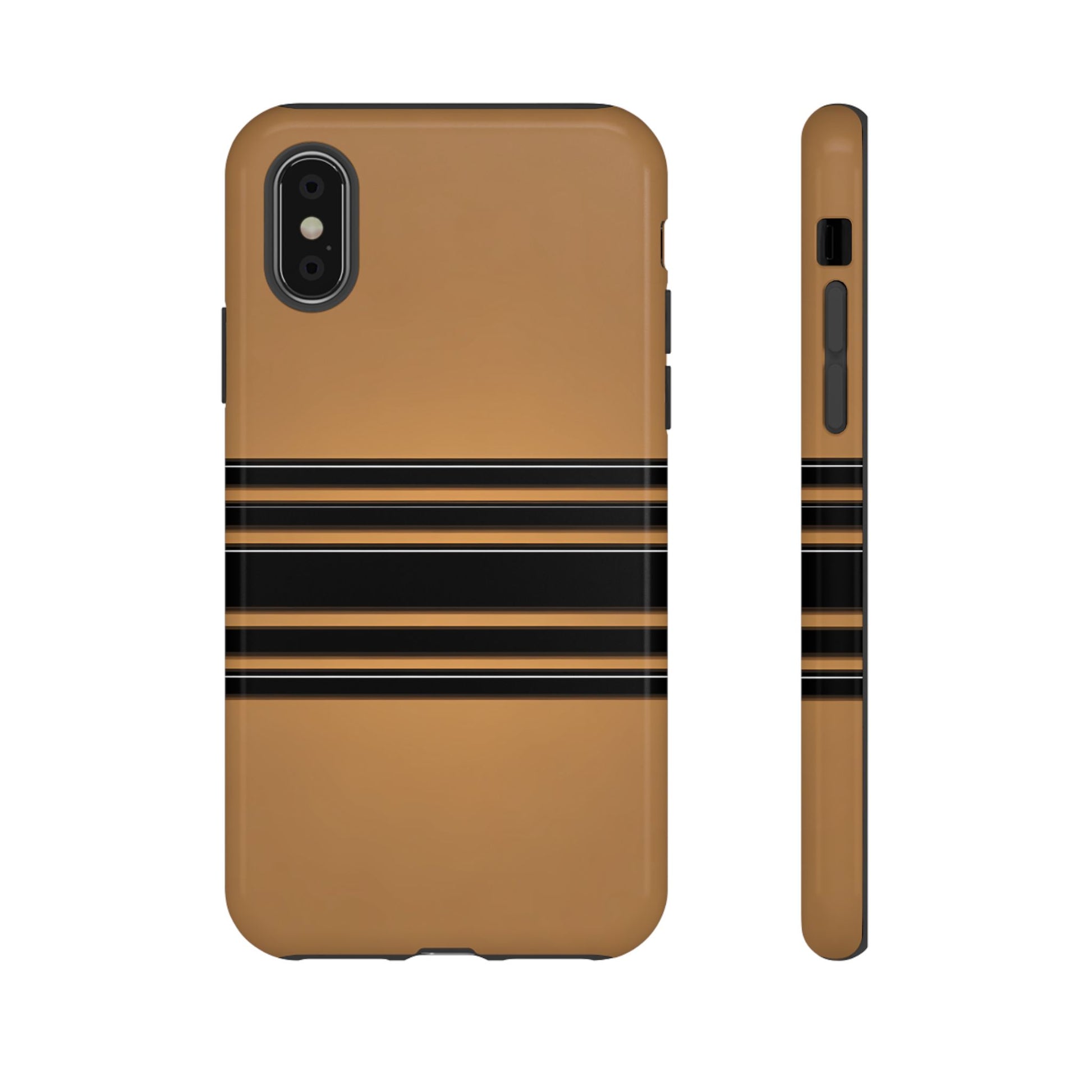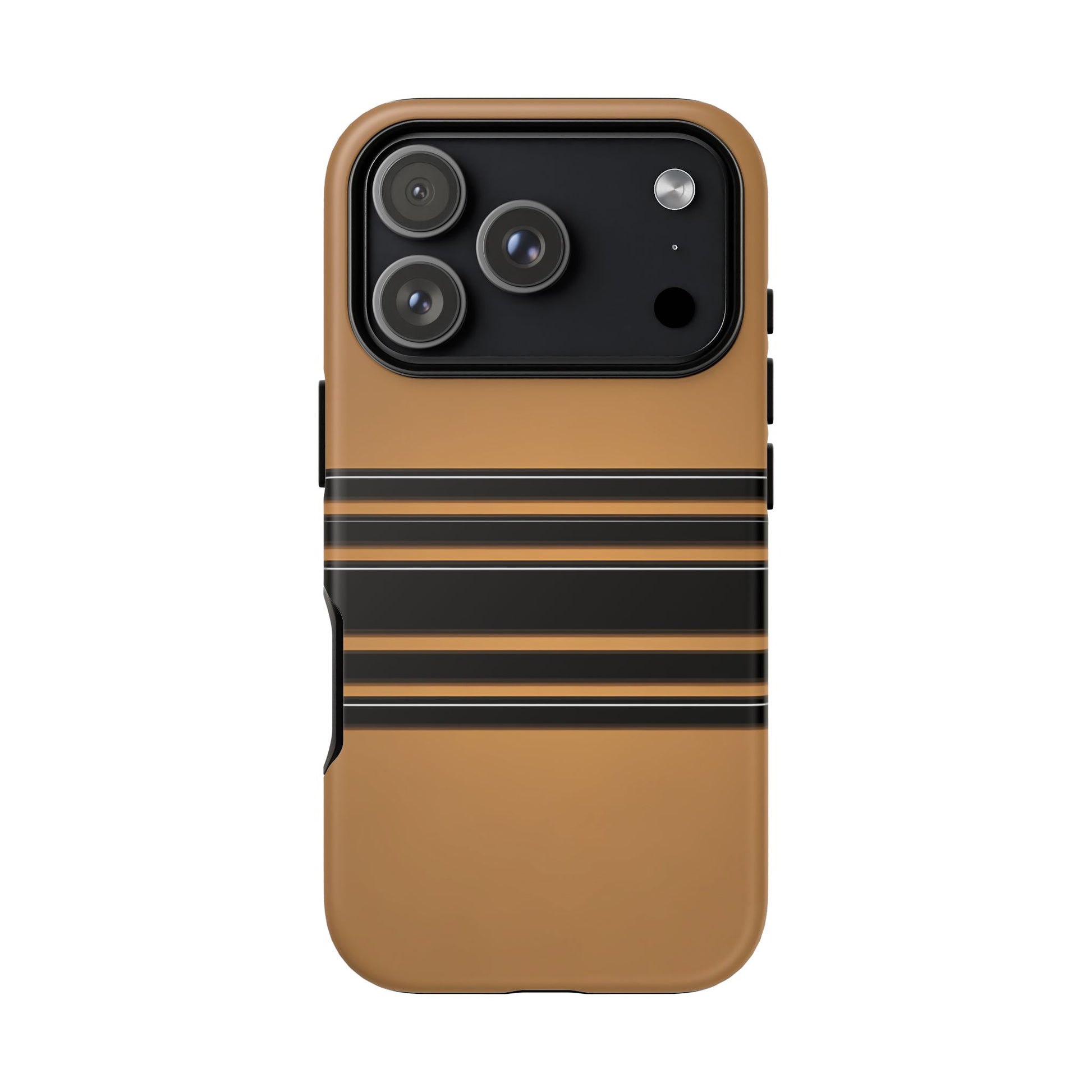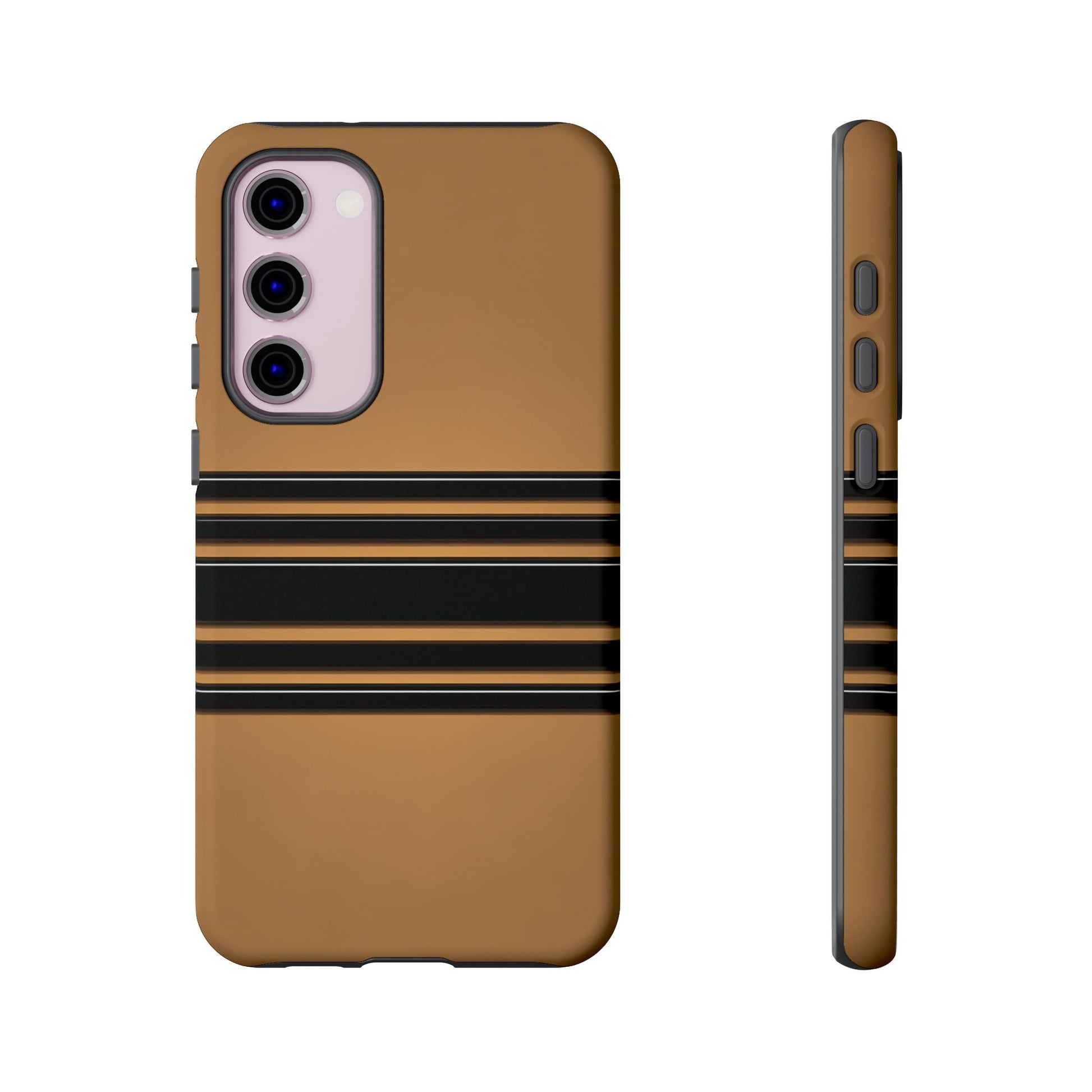 A crisp horizontal stripe centered on a smooth chocolate background for a bold, minimalist look.
