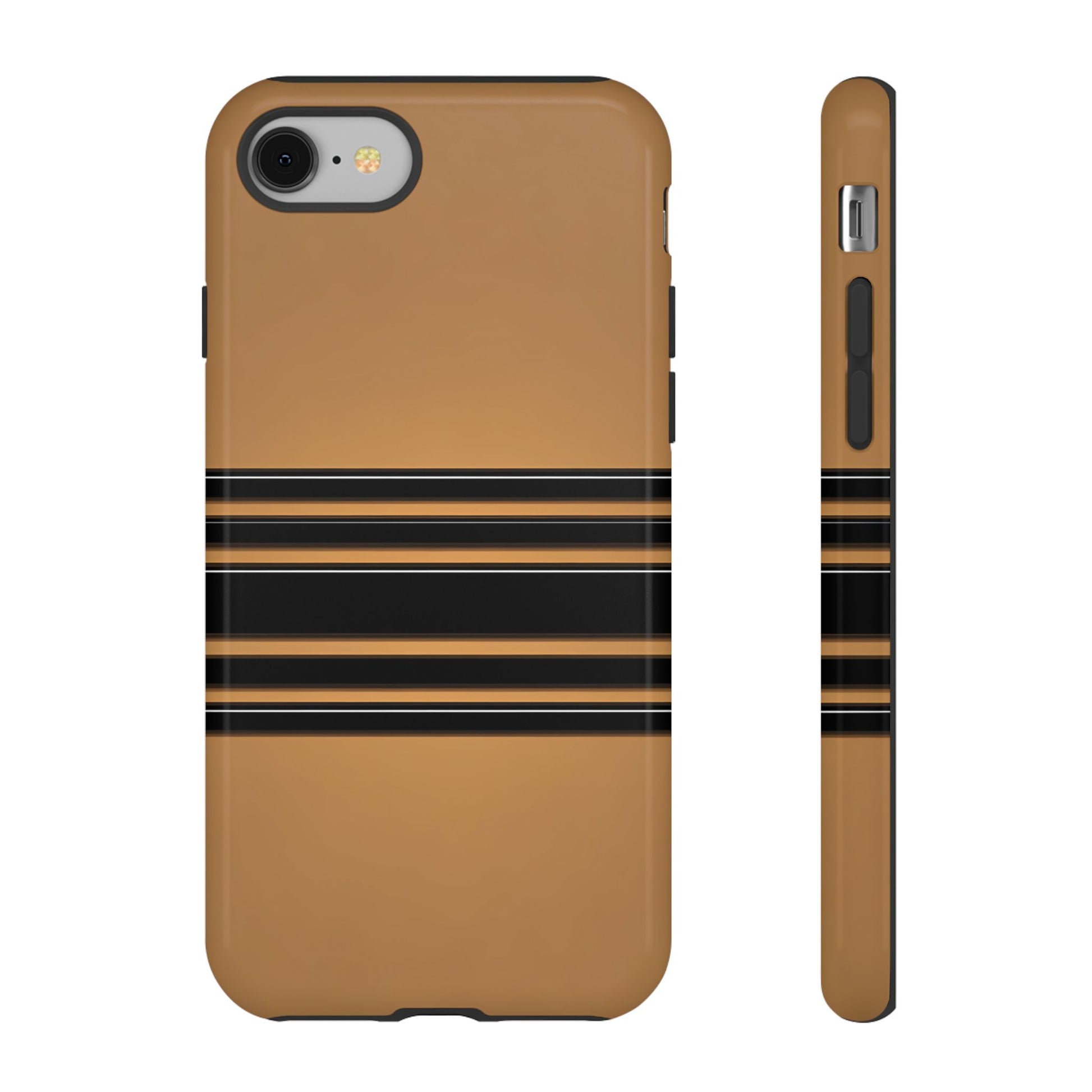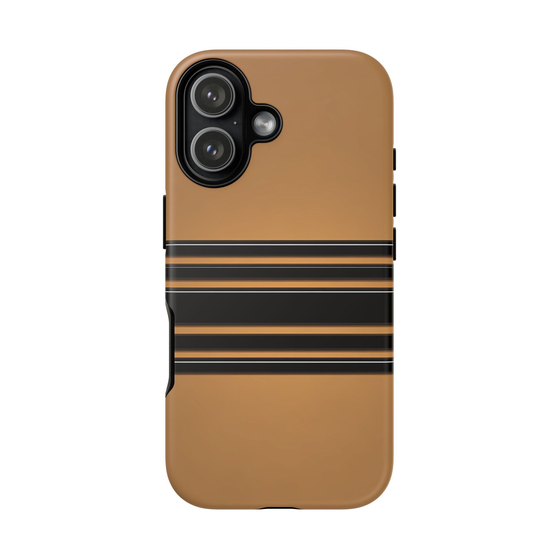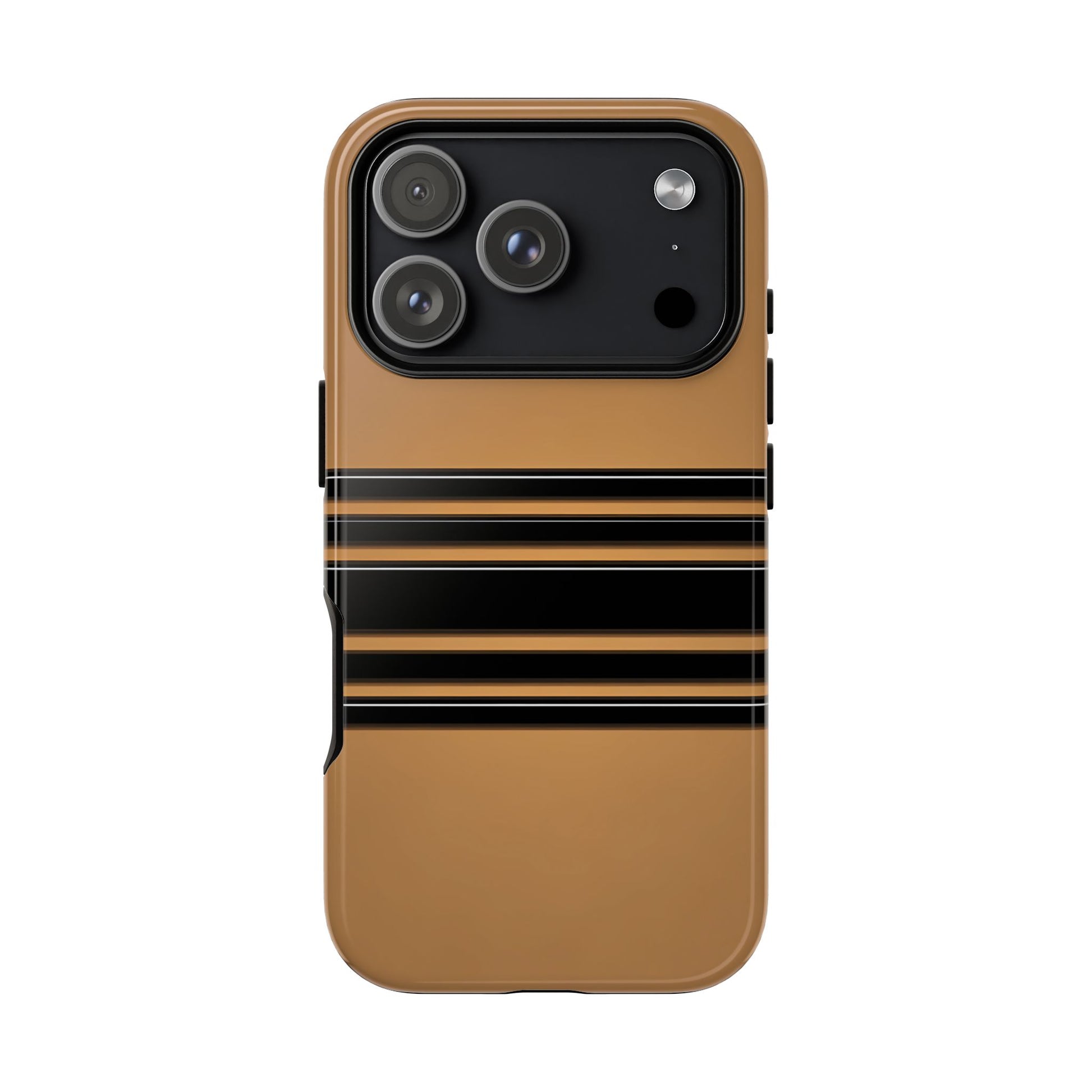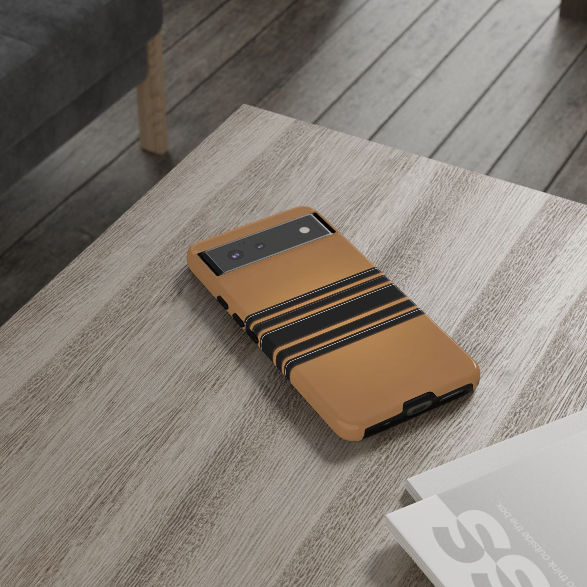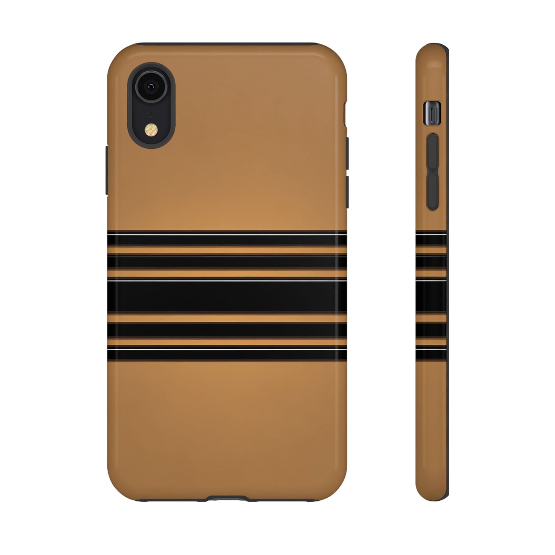 A crisp horizontal stripe centered on a smooth chocolate background for a bold, minimalist look.