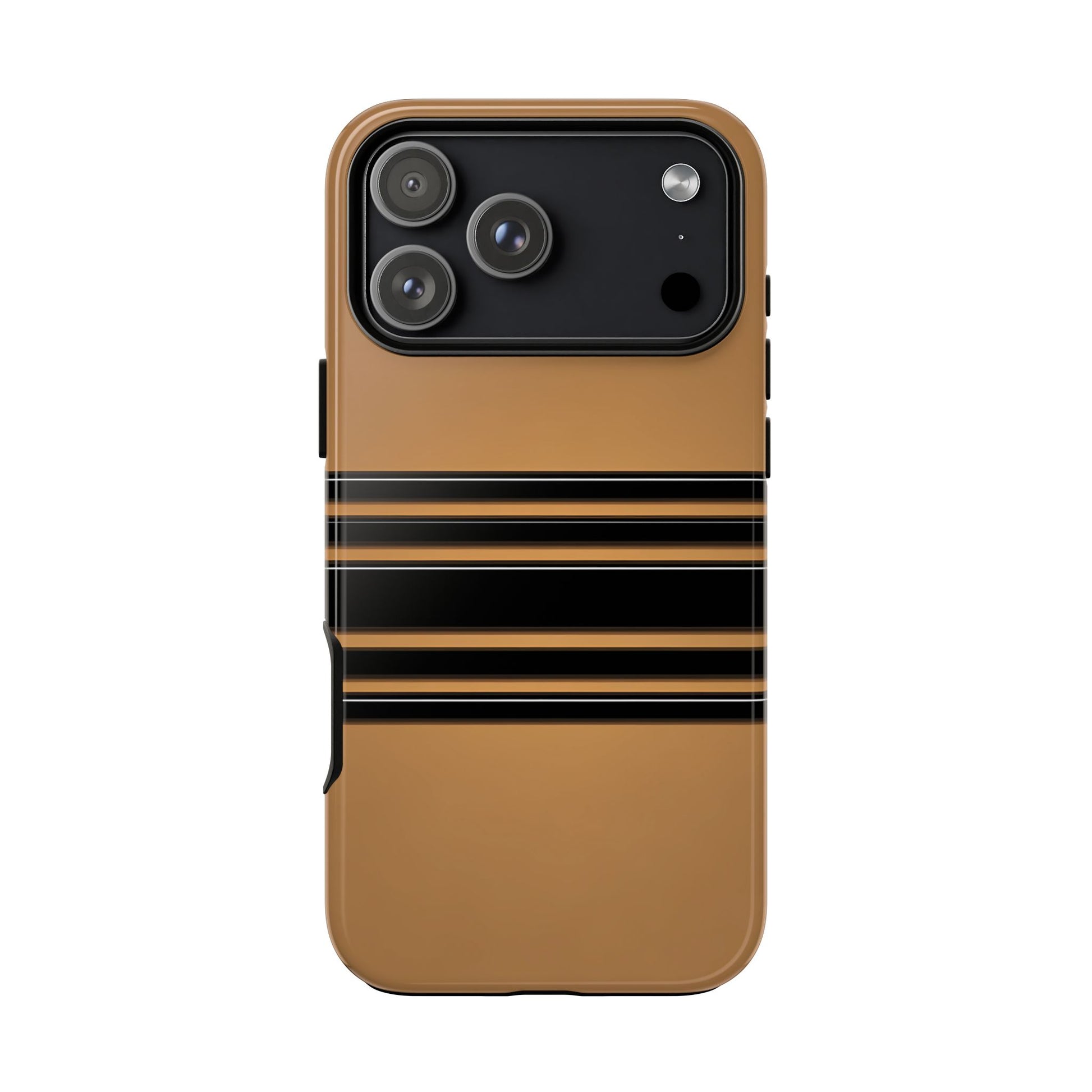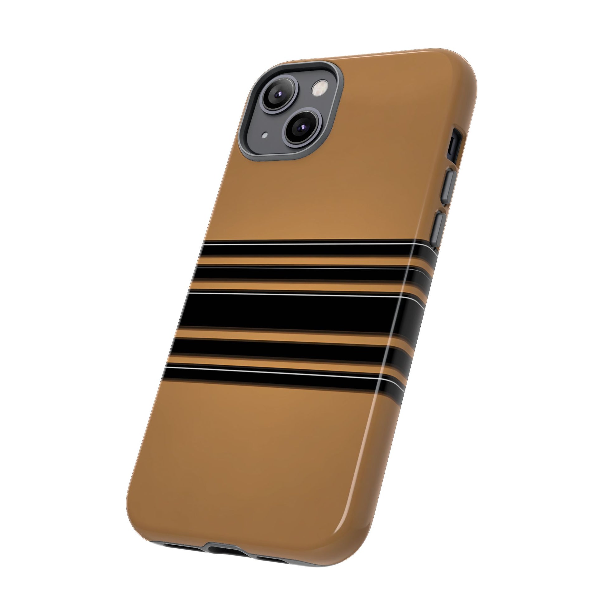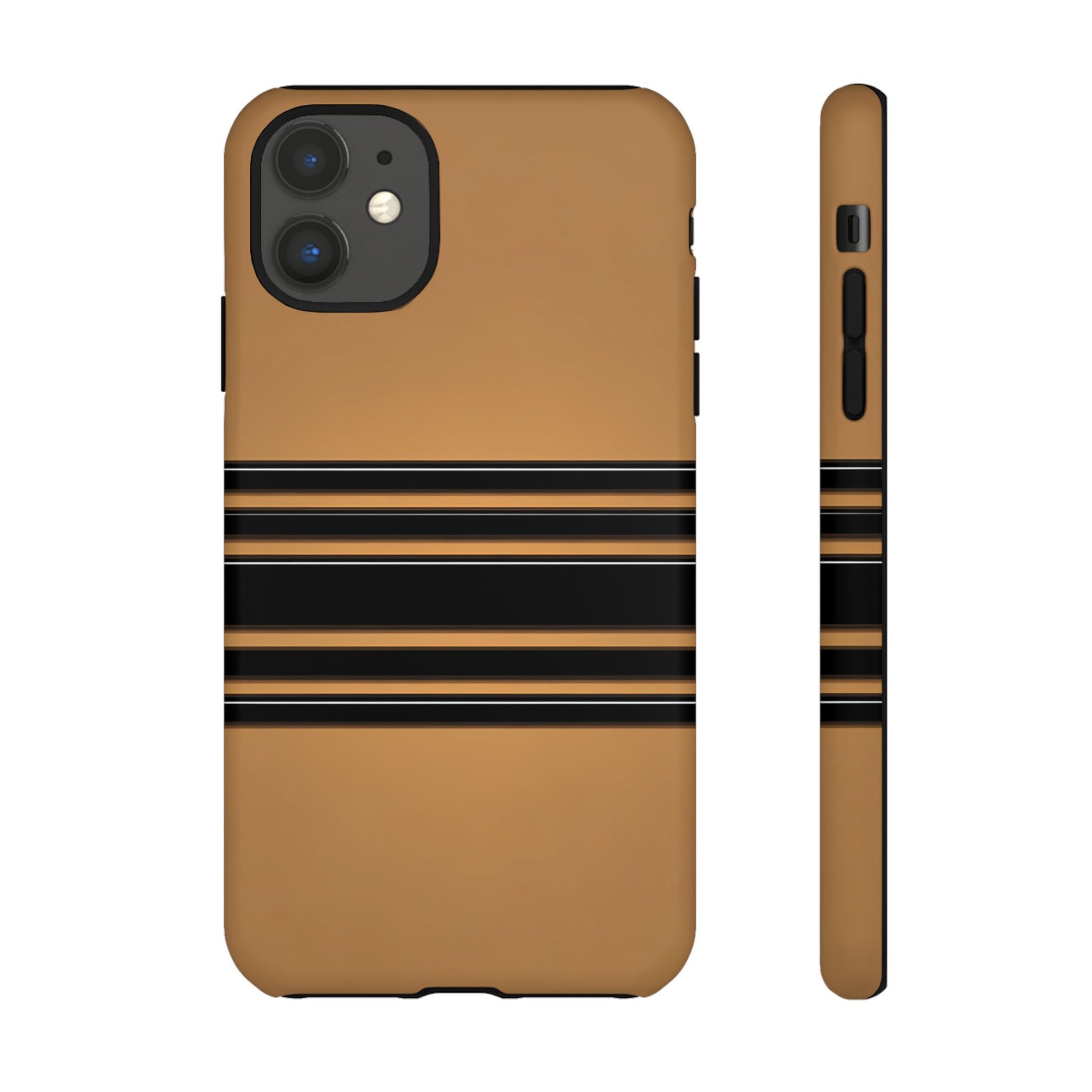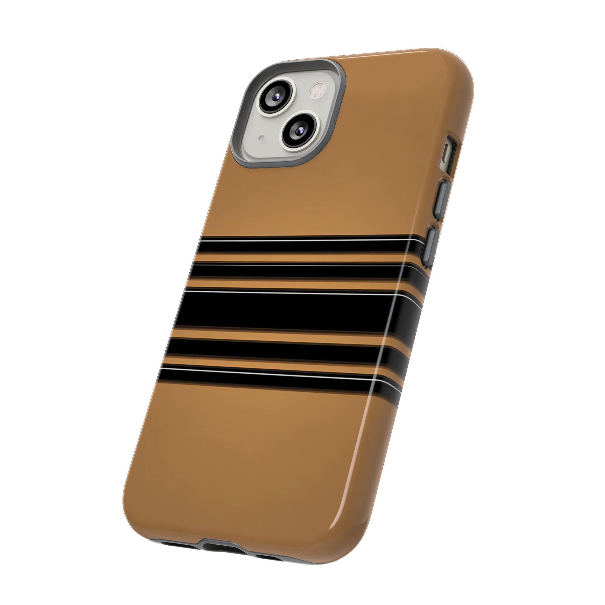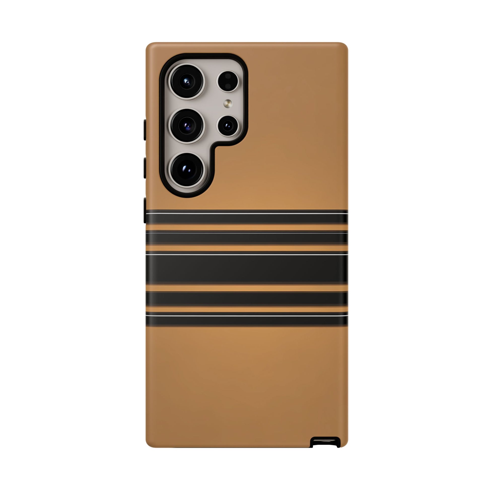 A crisp horizontal stripe centered on a smooth chocolate background for a bold, minimalist look.