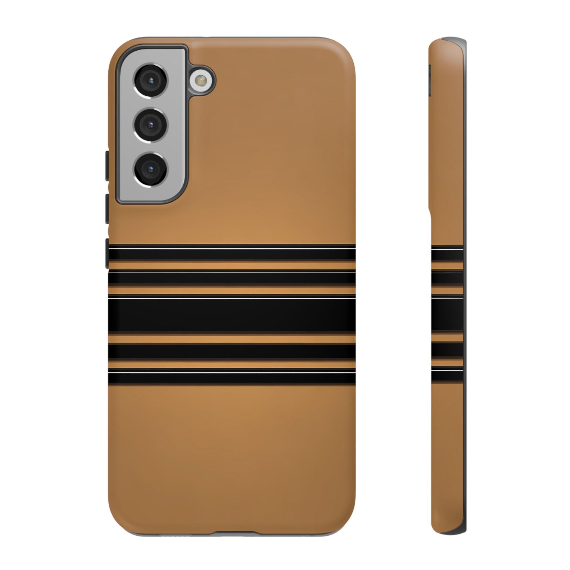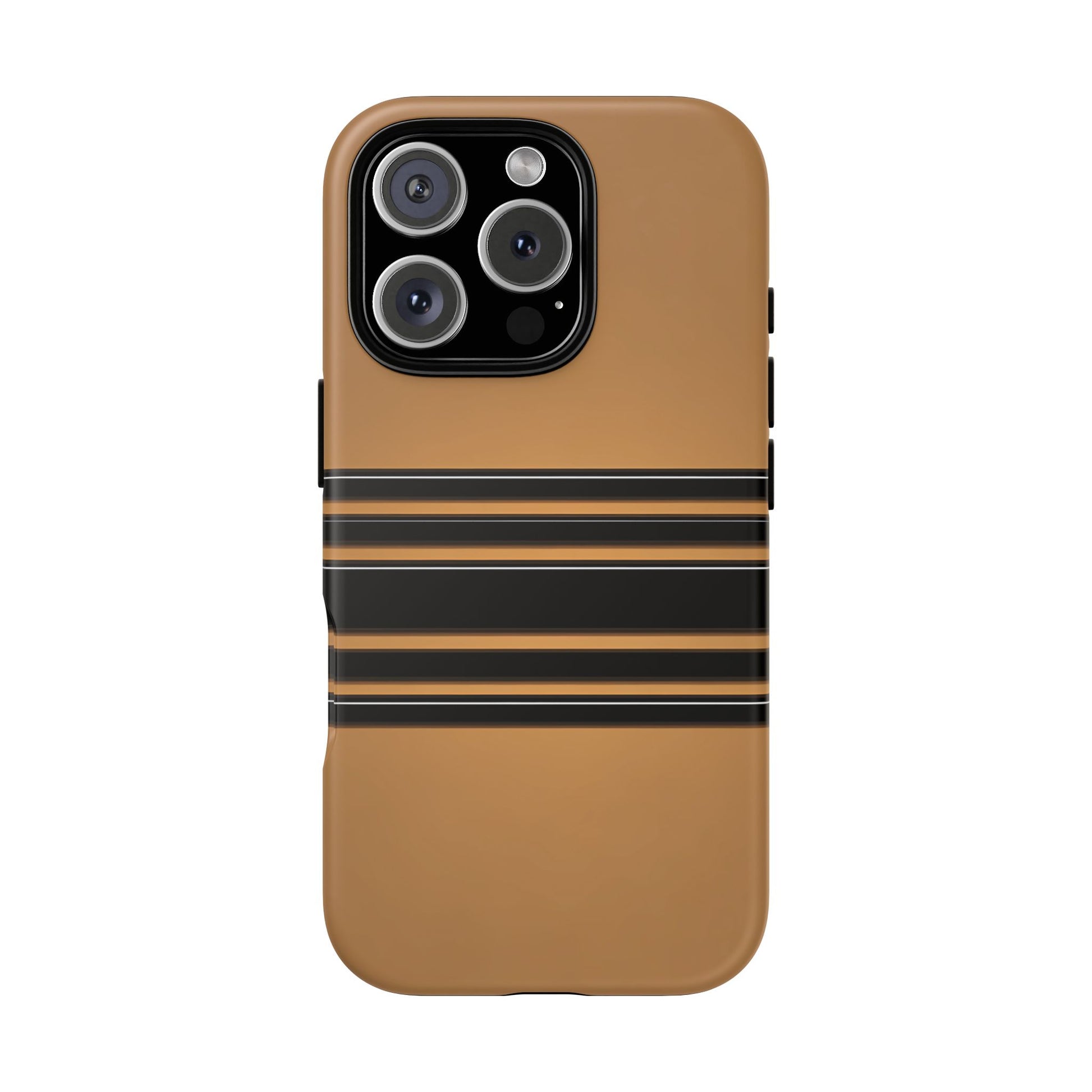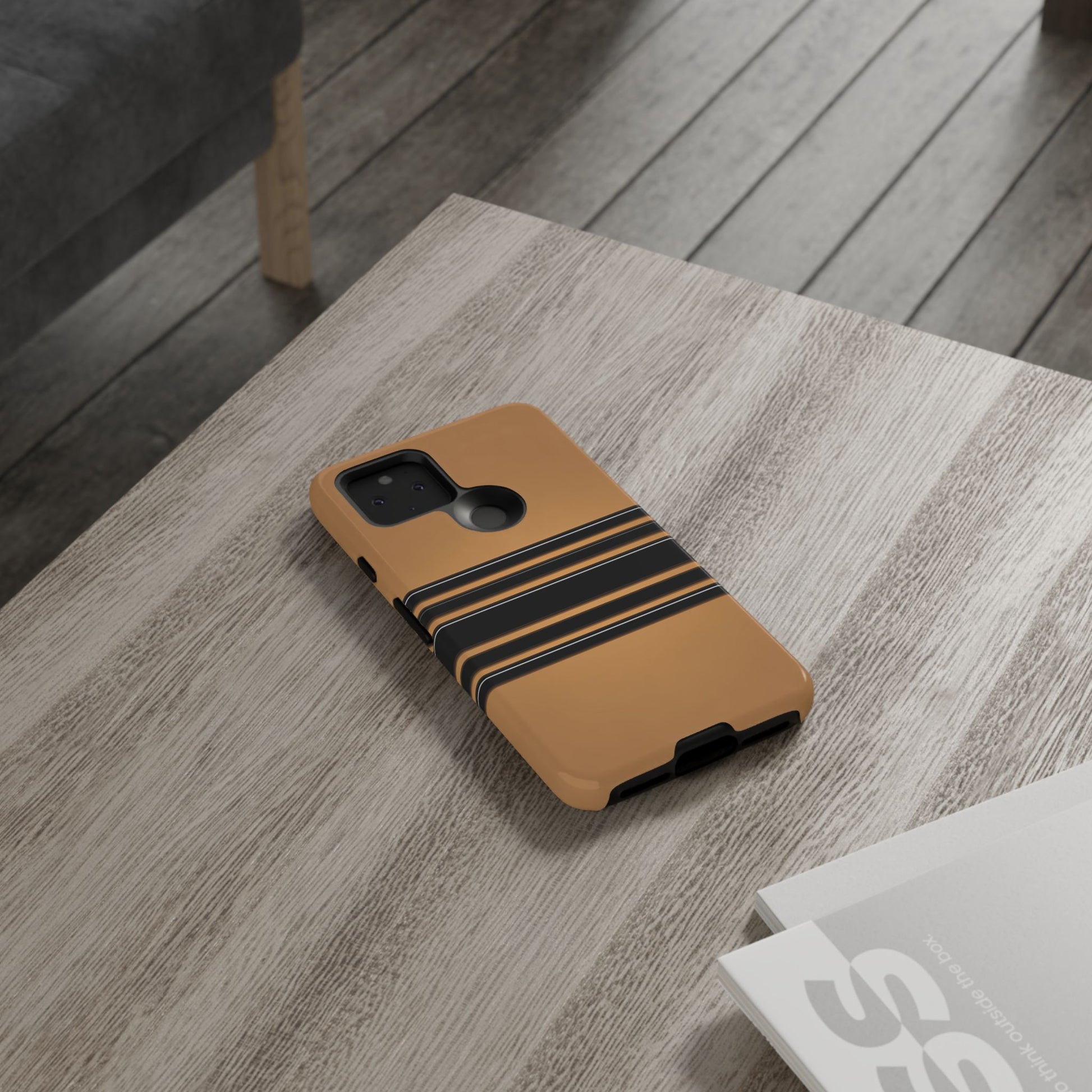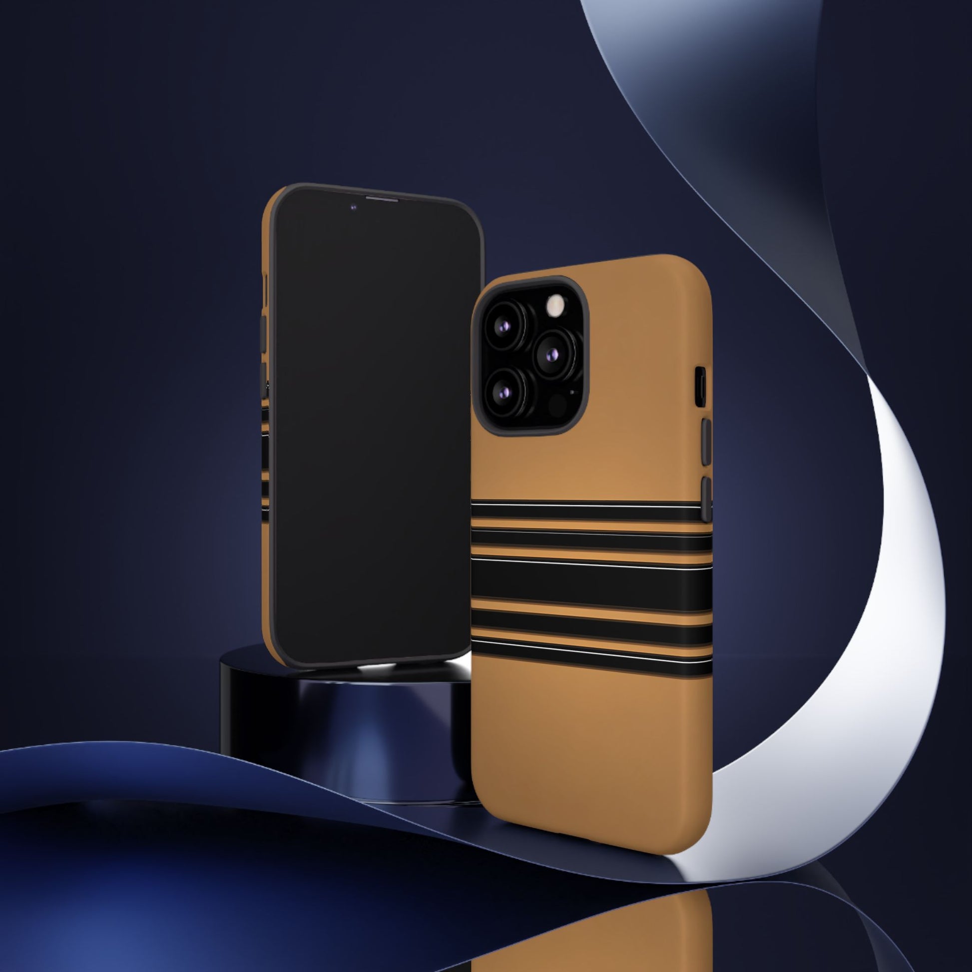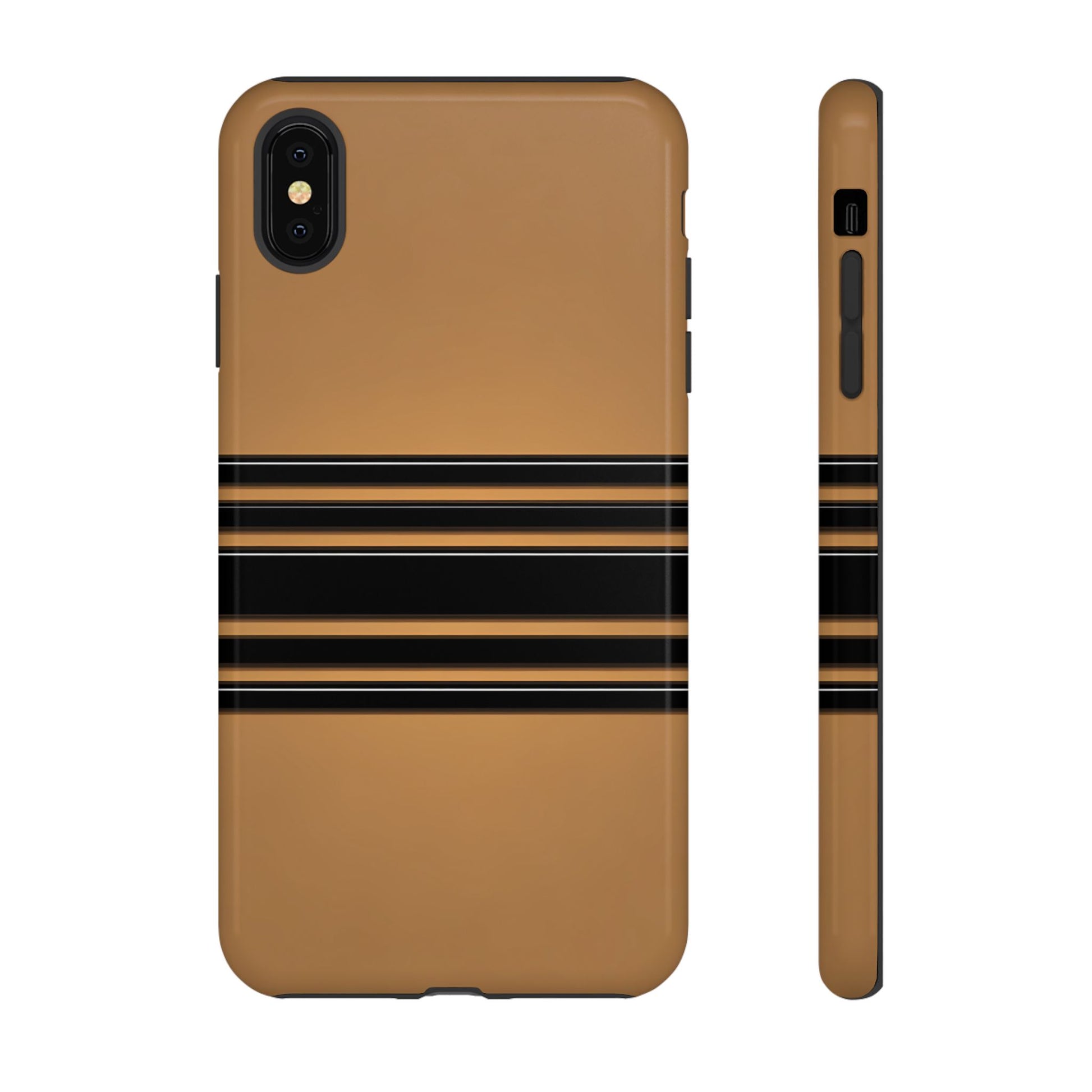 A crisp horizontal stripe centered on a smooth chocolate background for a bold, minimalist look.