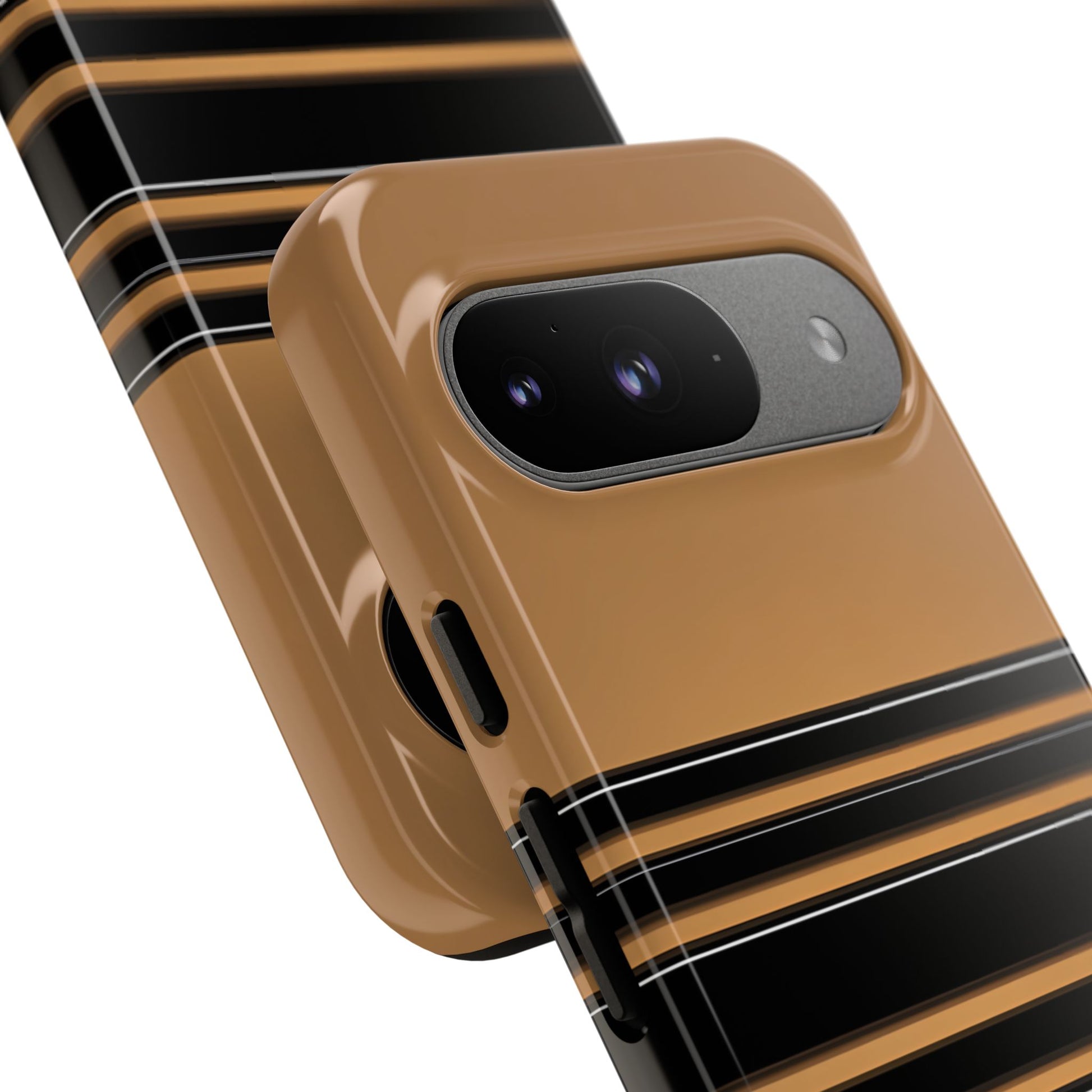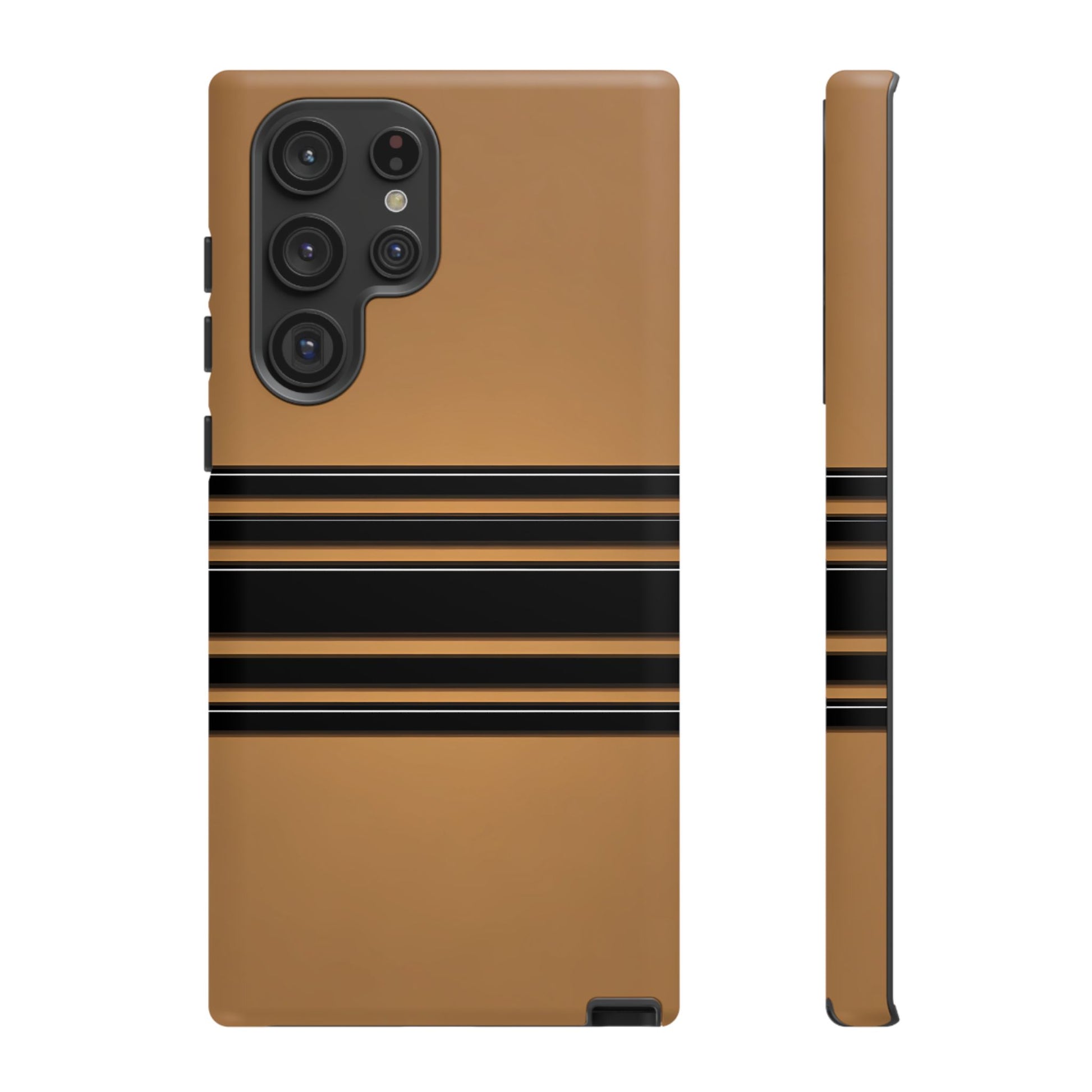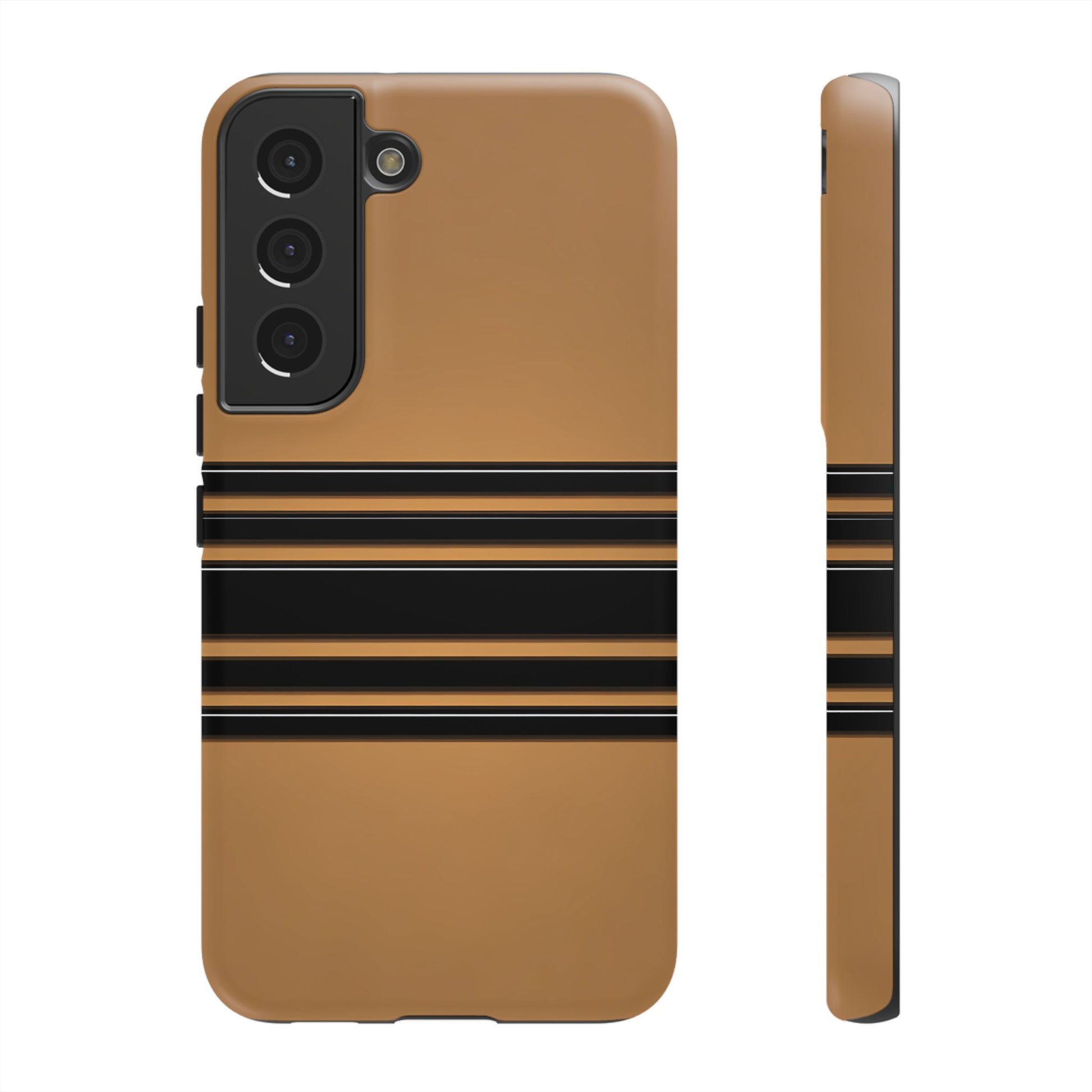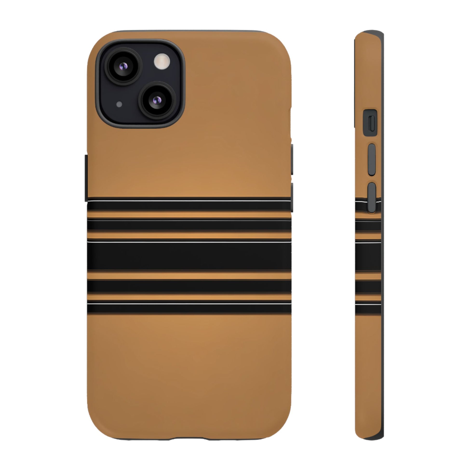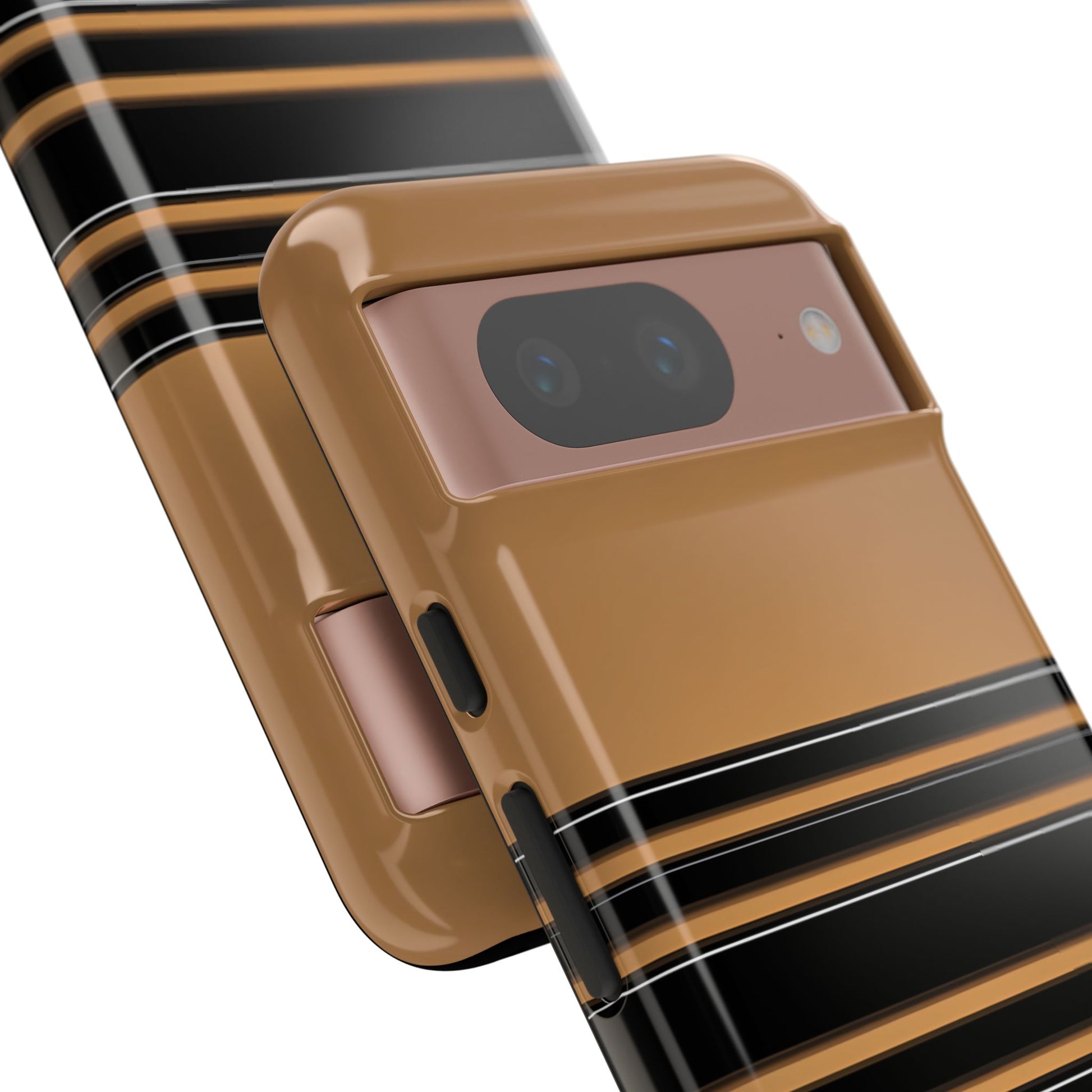 A crisp horizontal stripe centered on a smooth chocolate background for a bold, minimalist look.