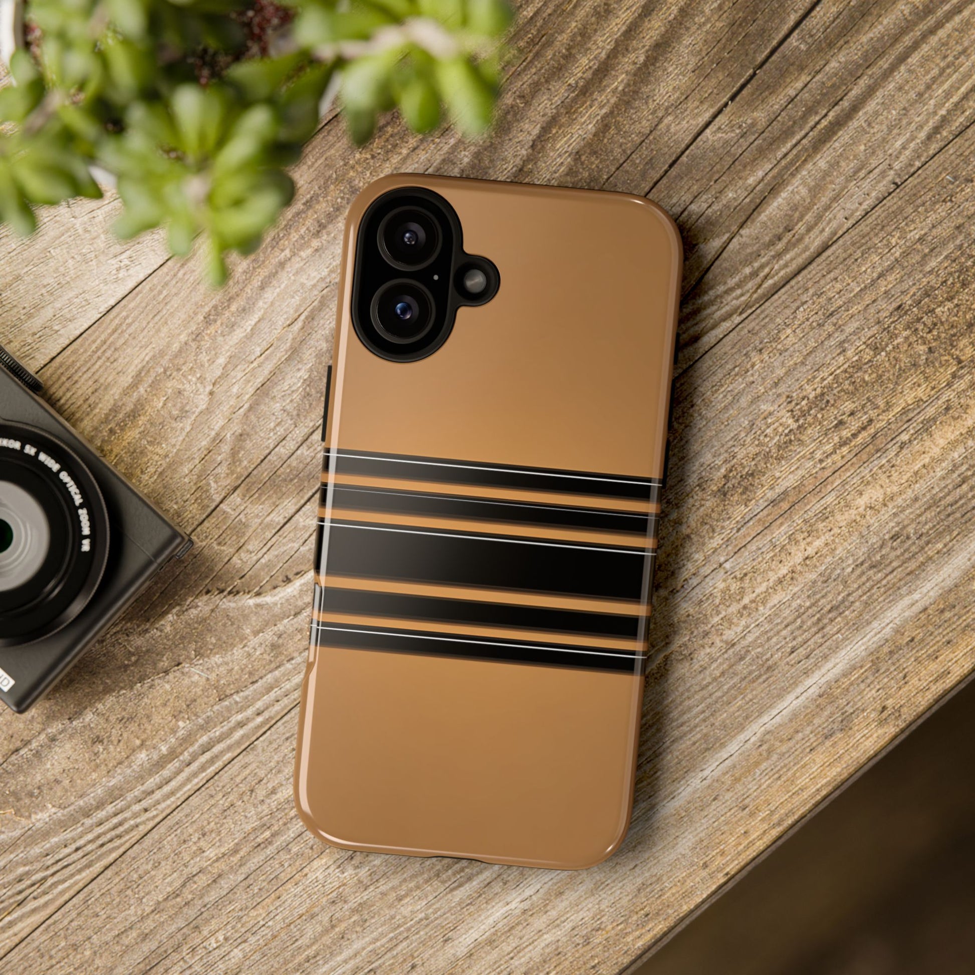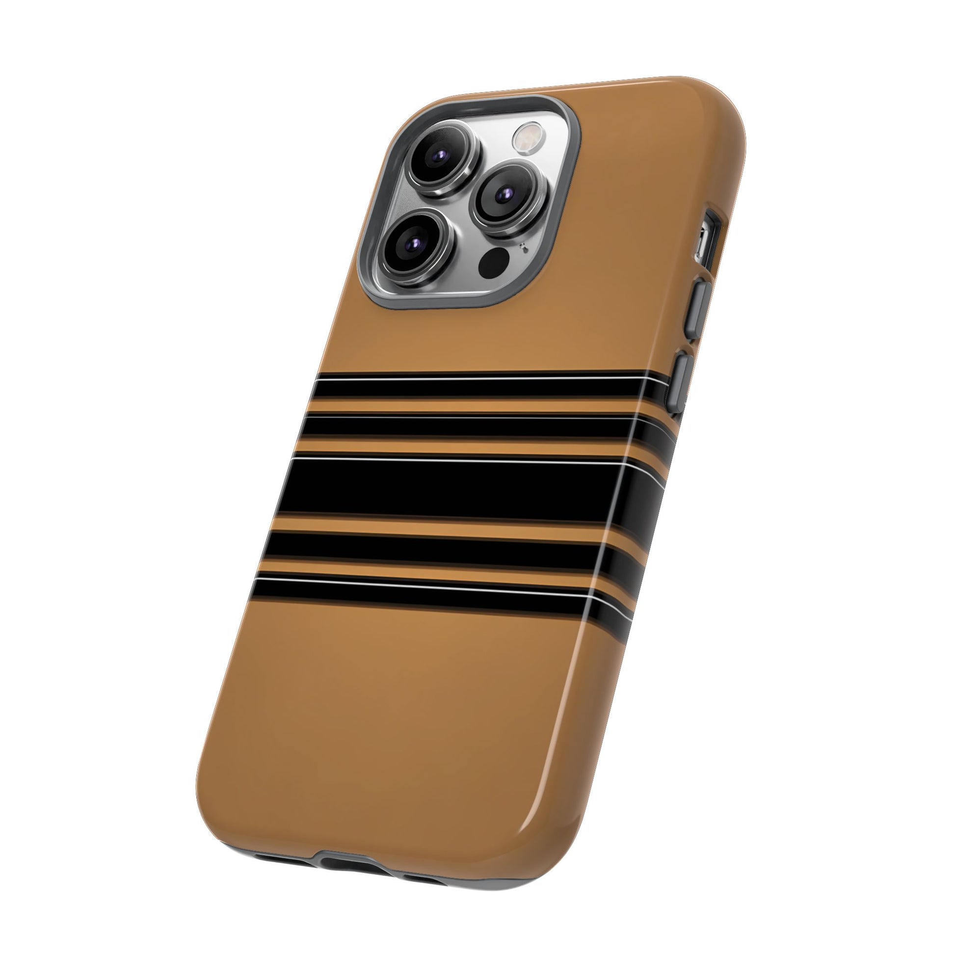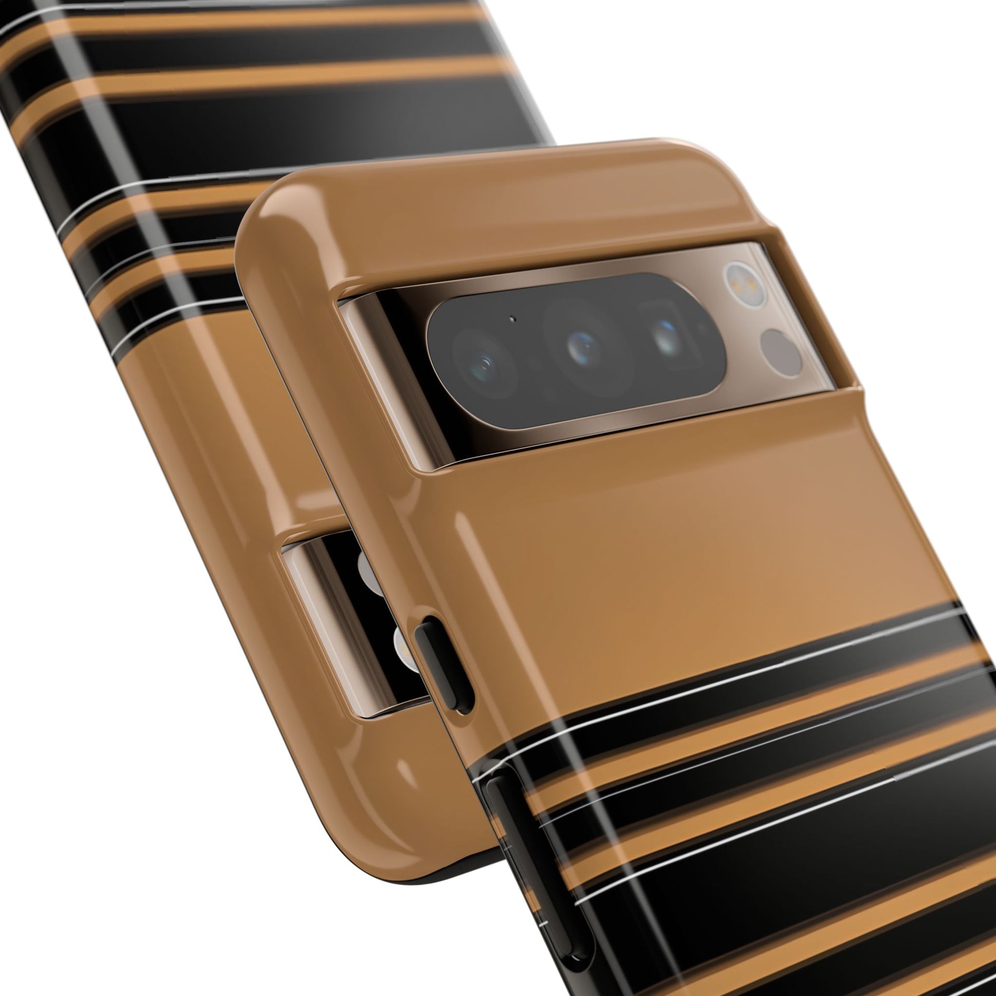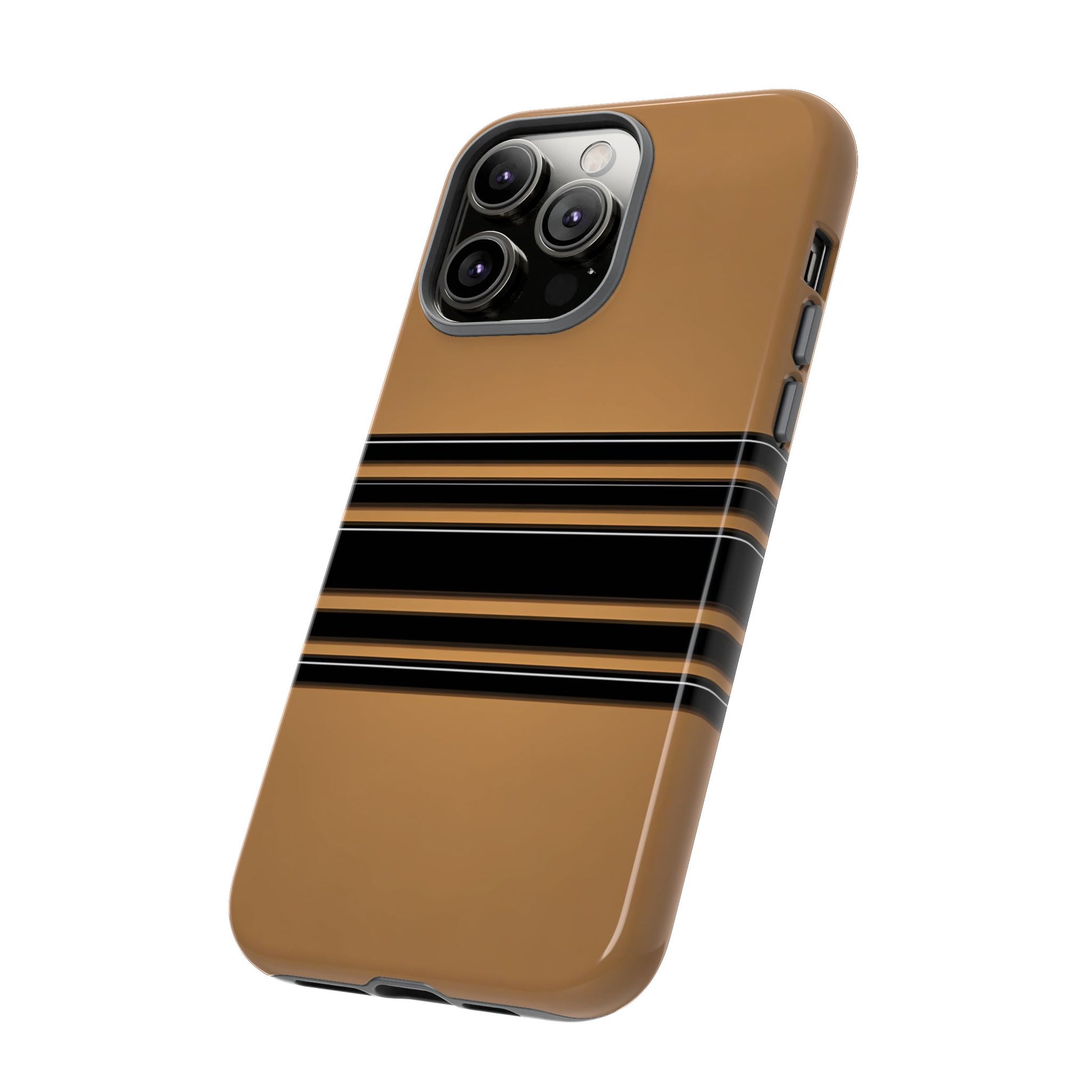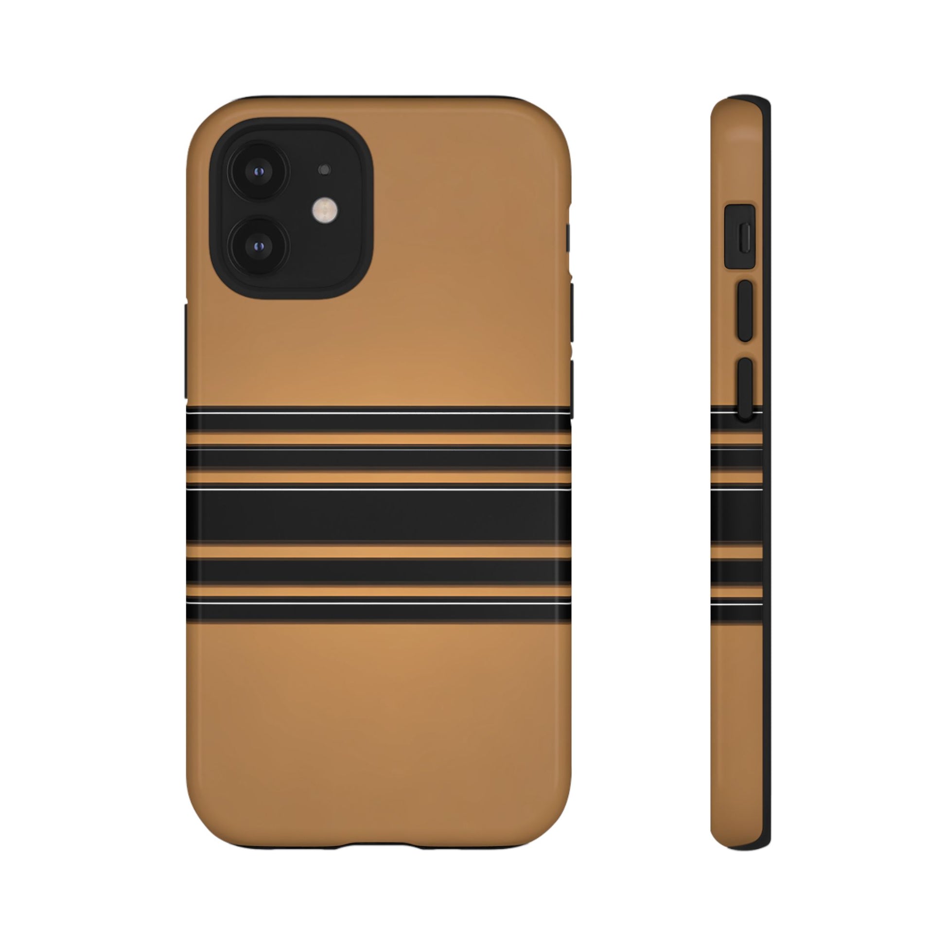 A crisp horizontal stripe centered on a smooth chocolate background for a bold, minimalist look.