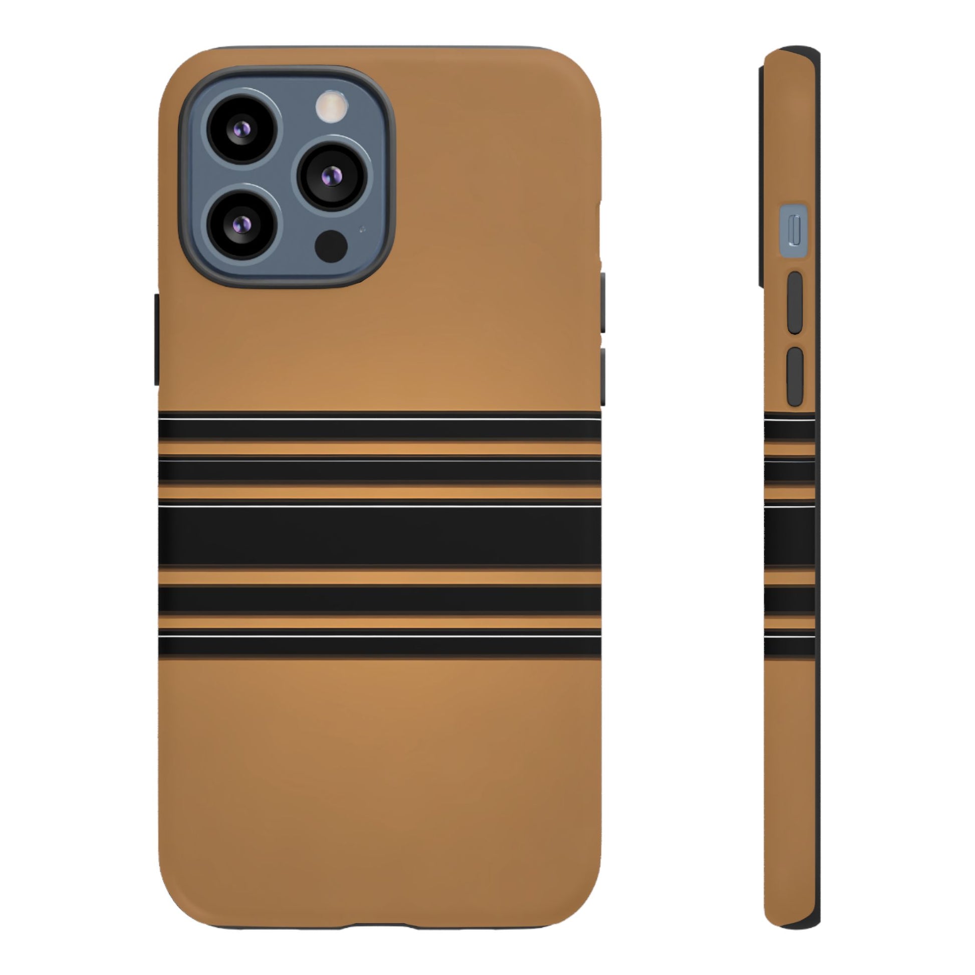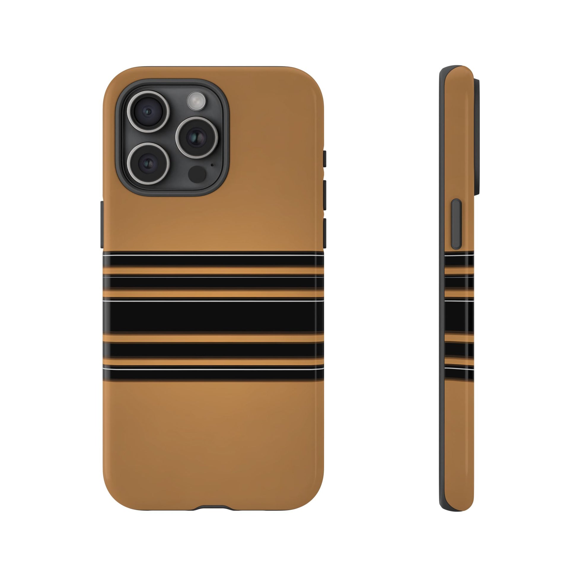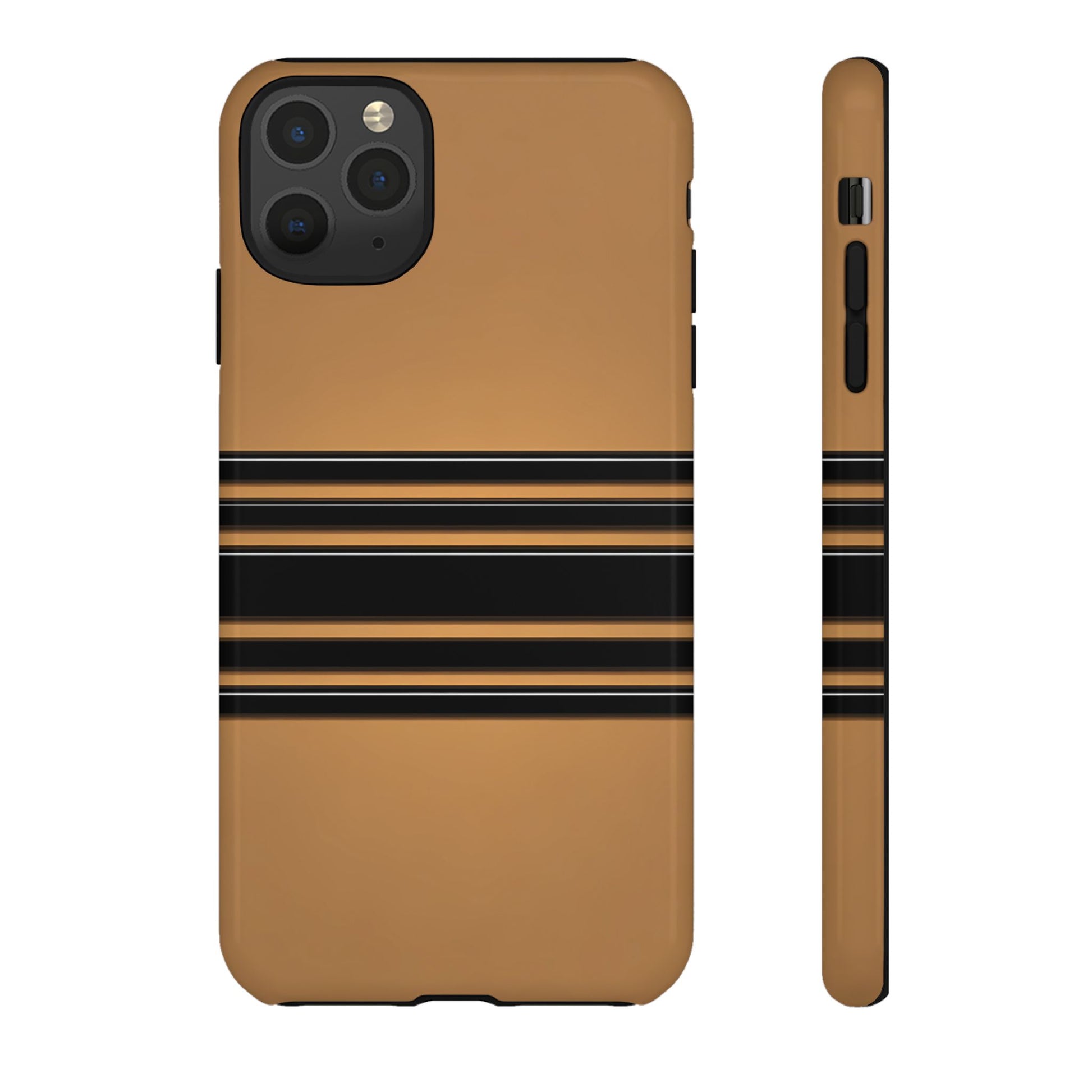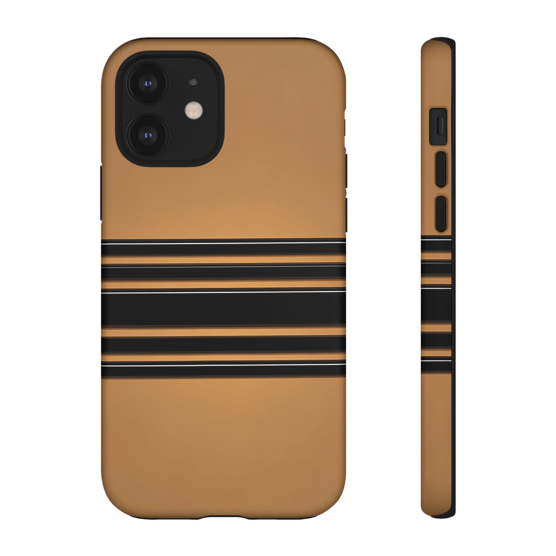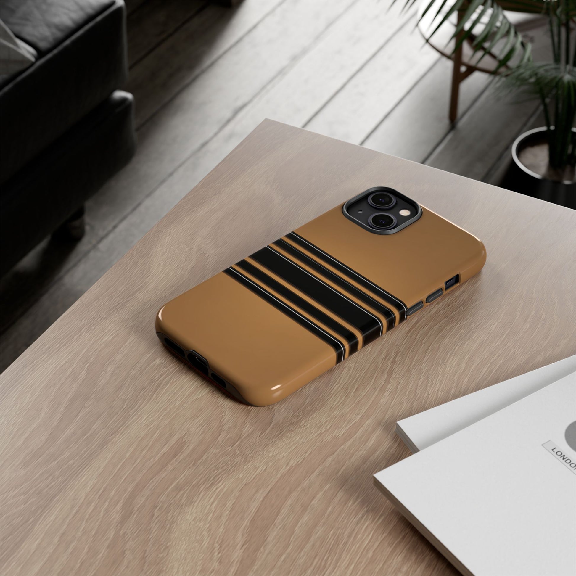 A crisp horizontal stripe centered on a smooth chocolate background for a bold, minimalist look.