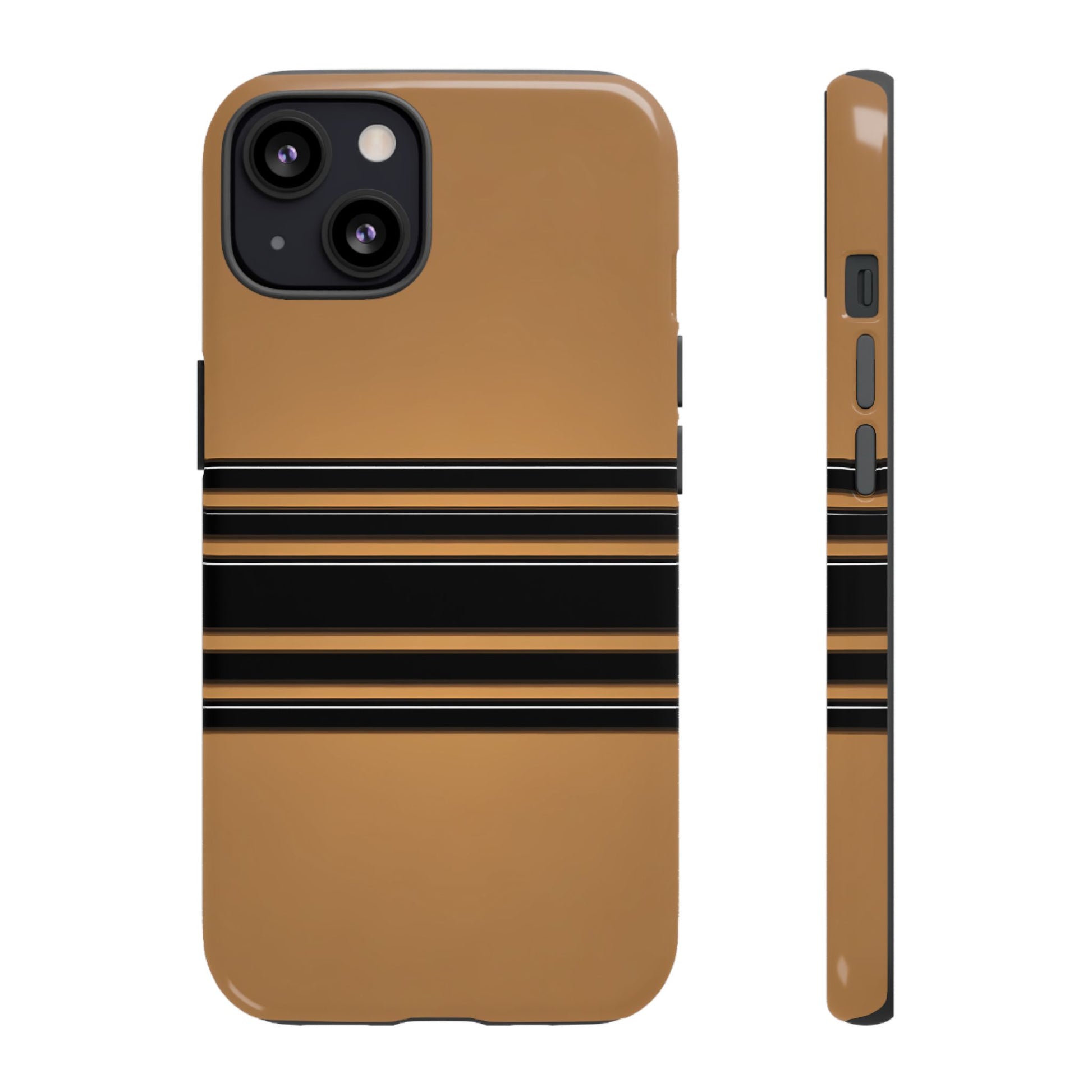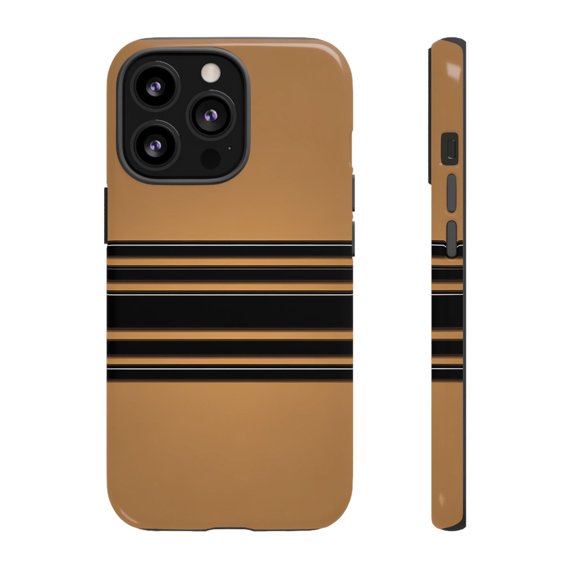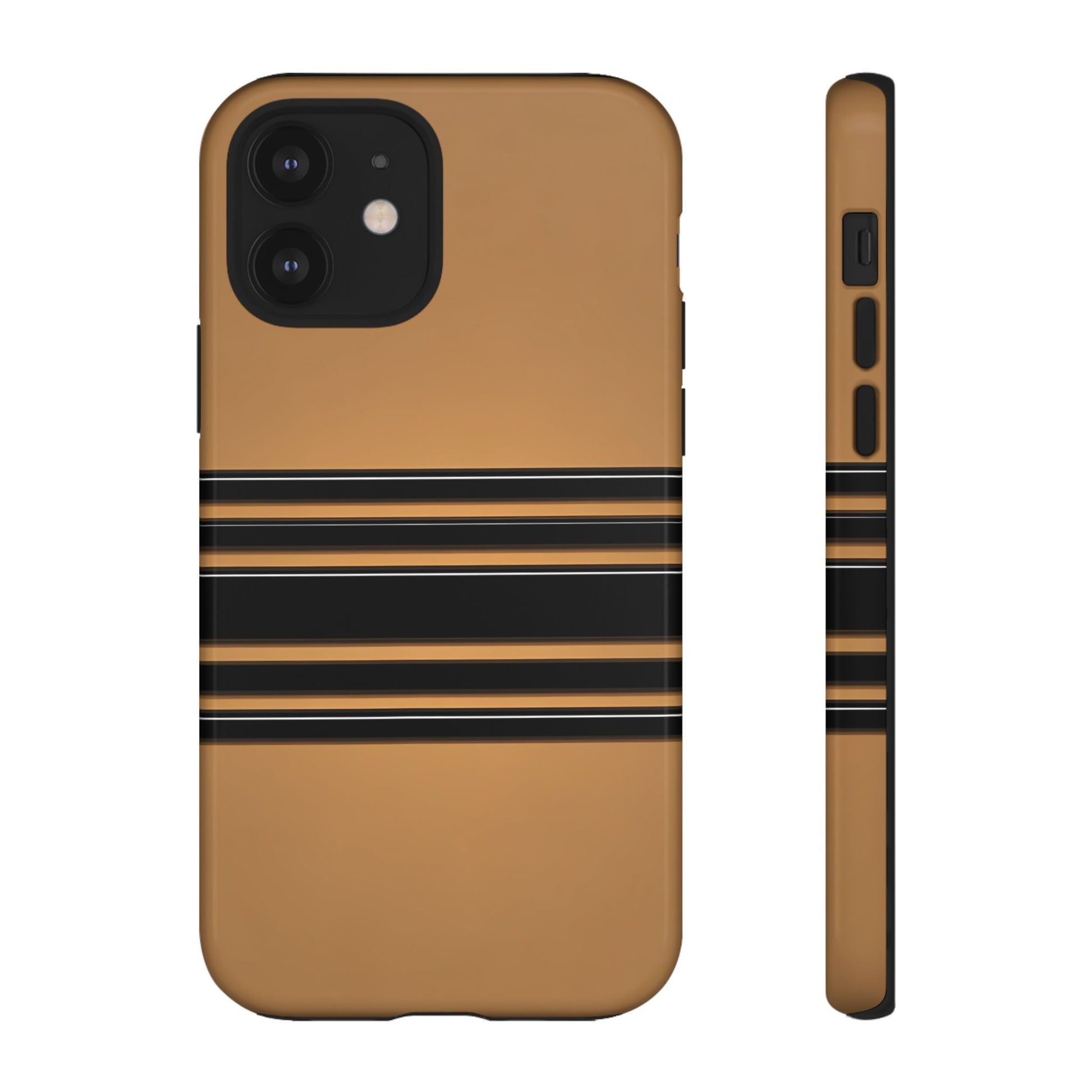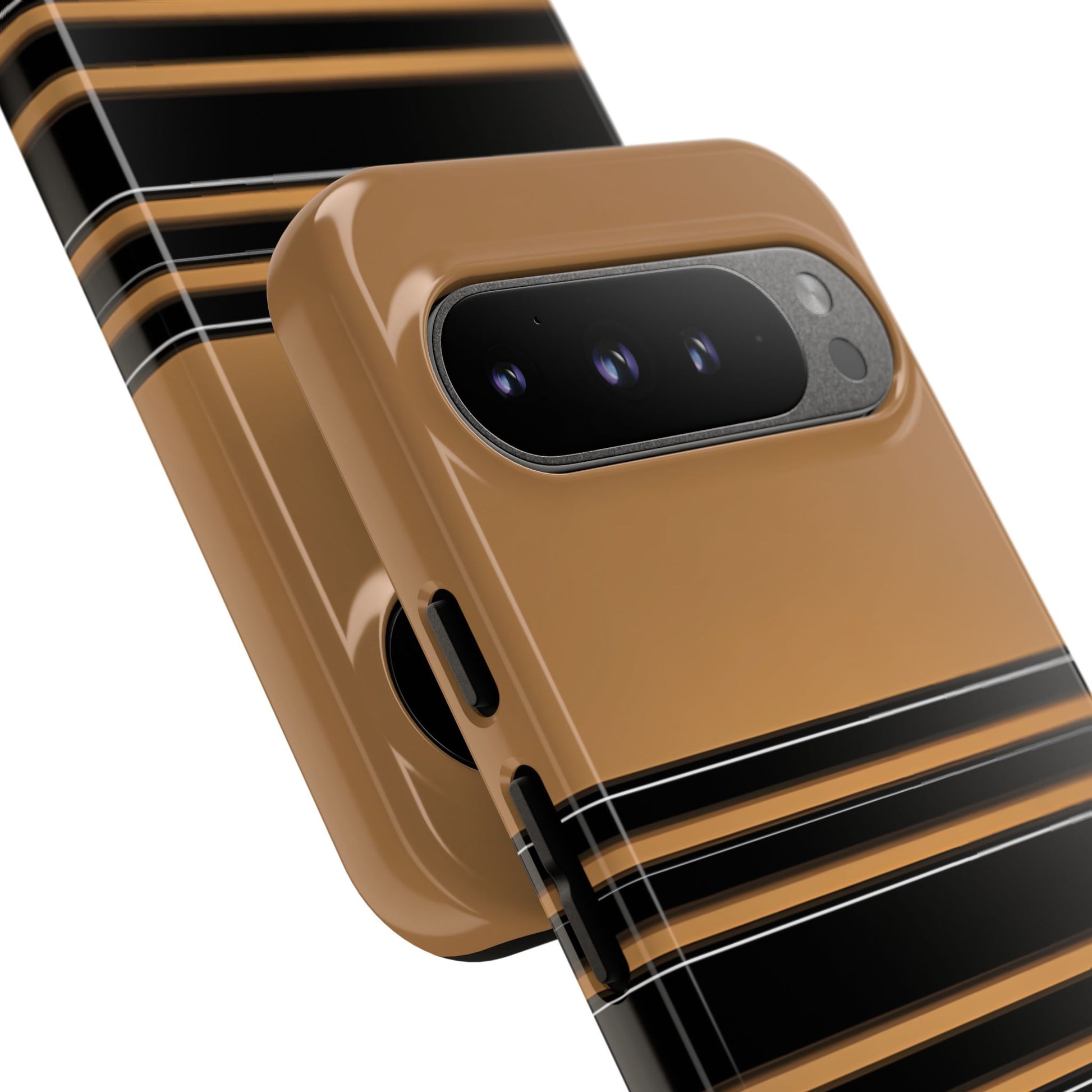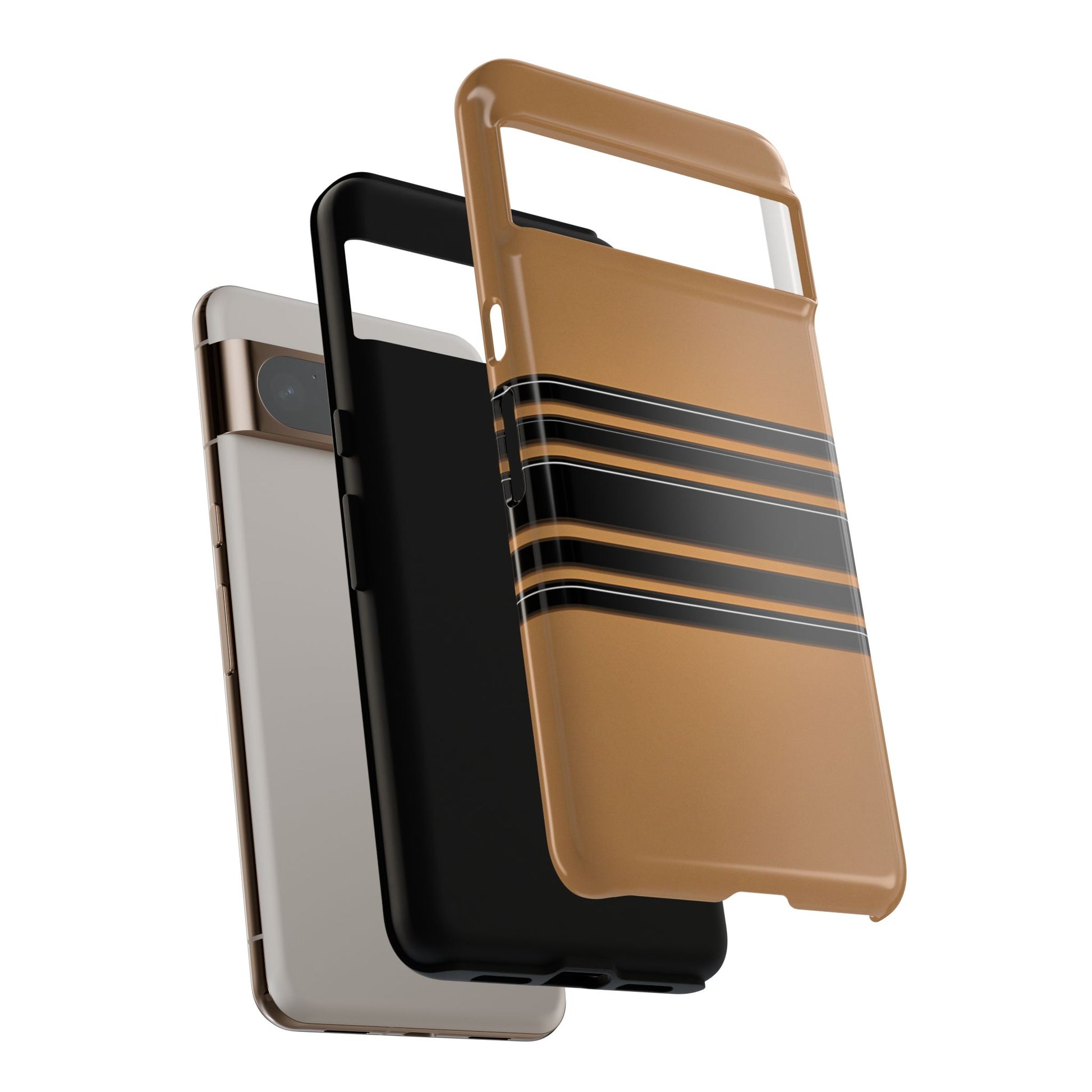 A crisp horizontal stripe centered on a smooth chocolate background for a bold, minimalist look.