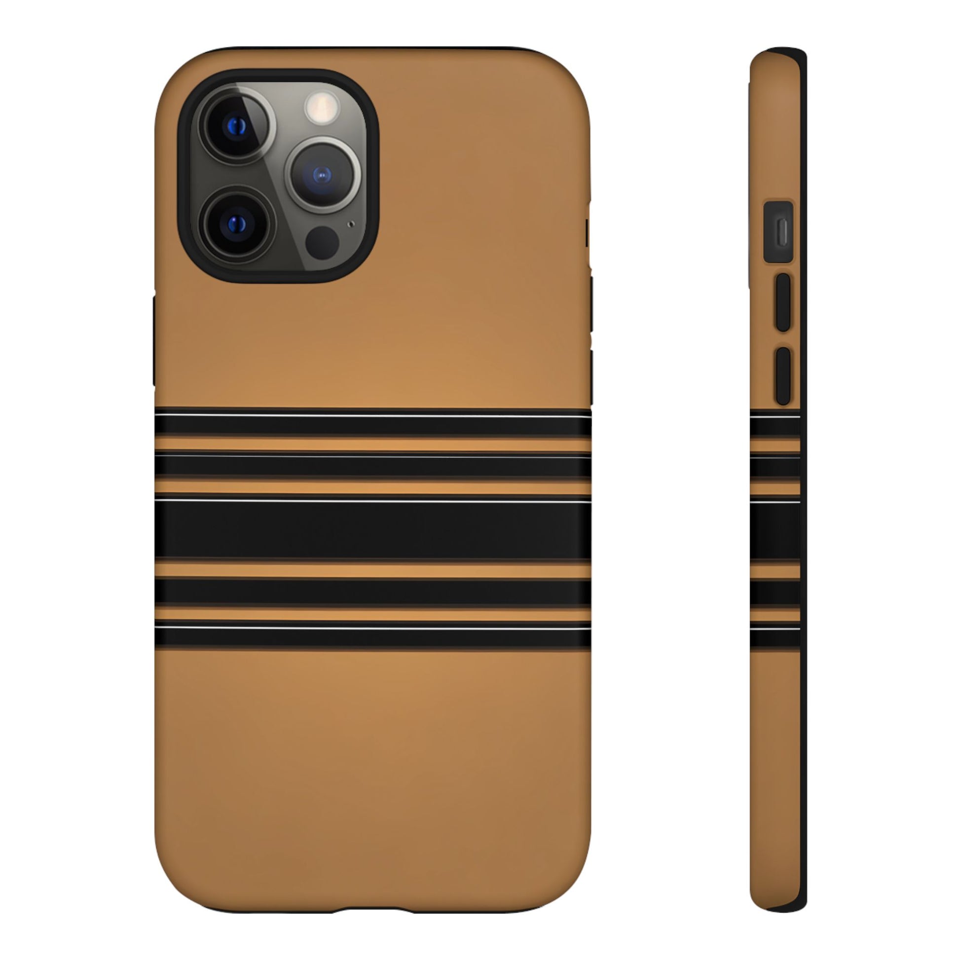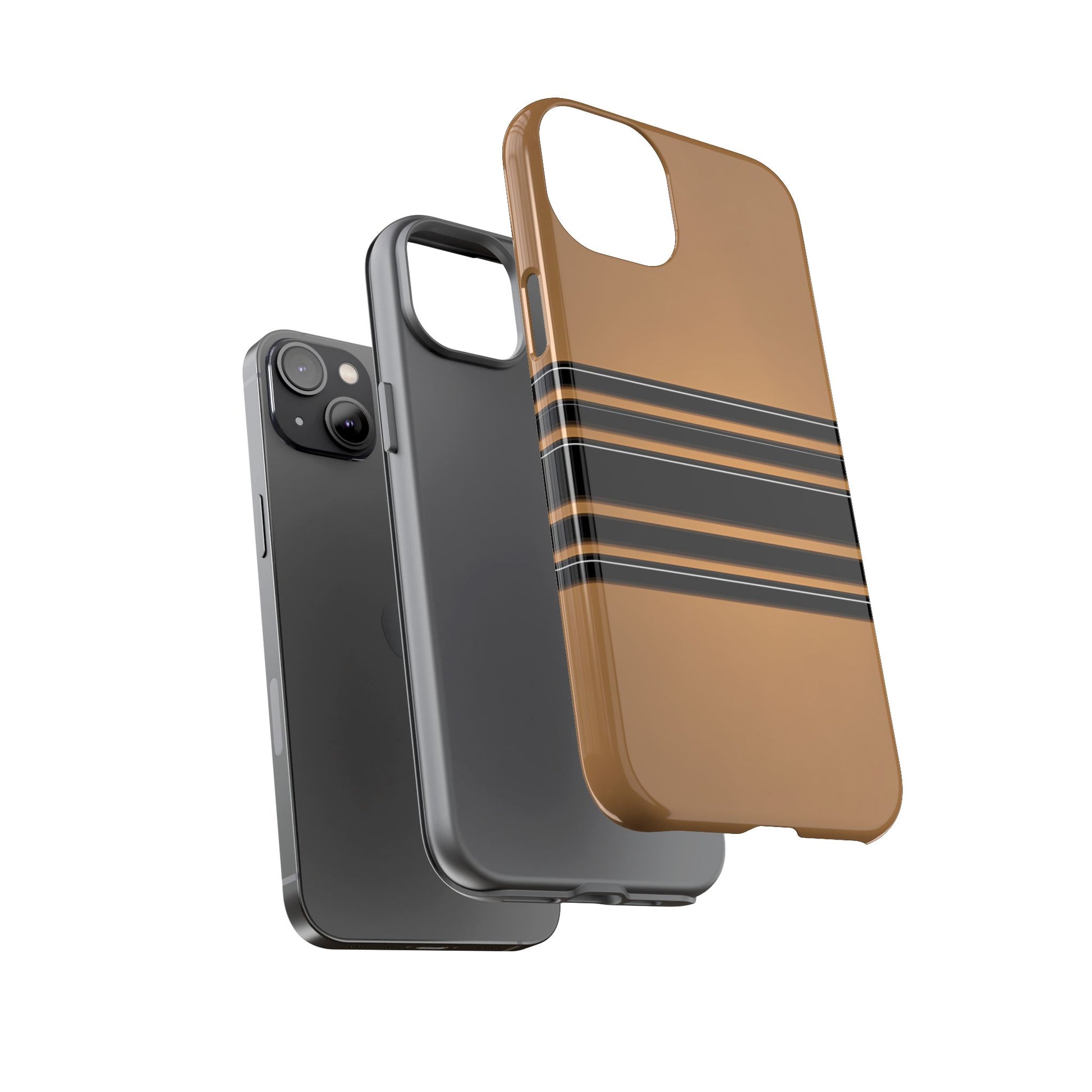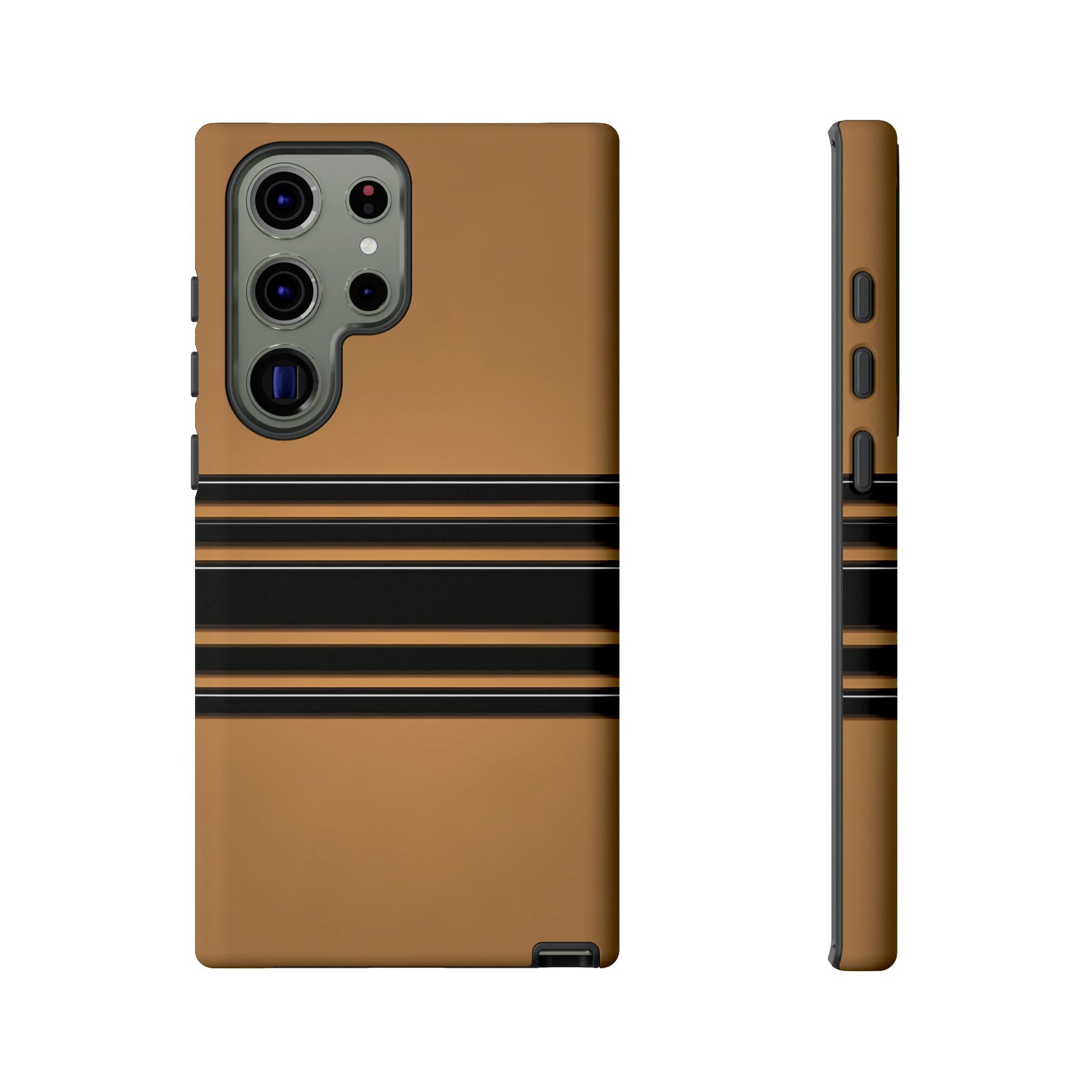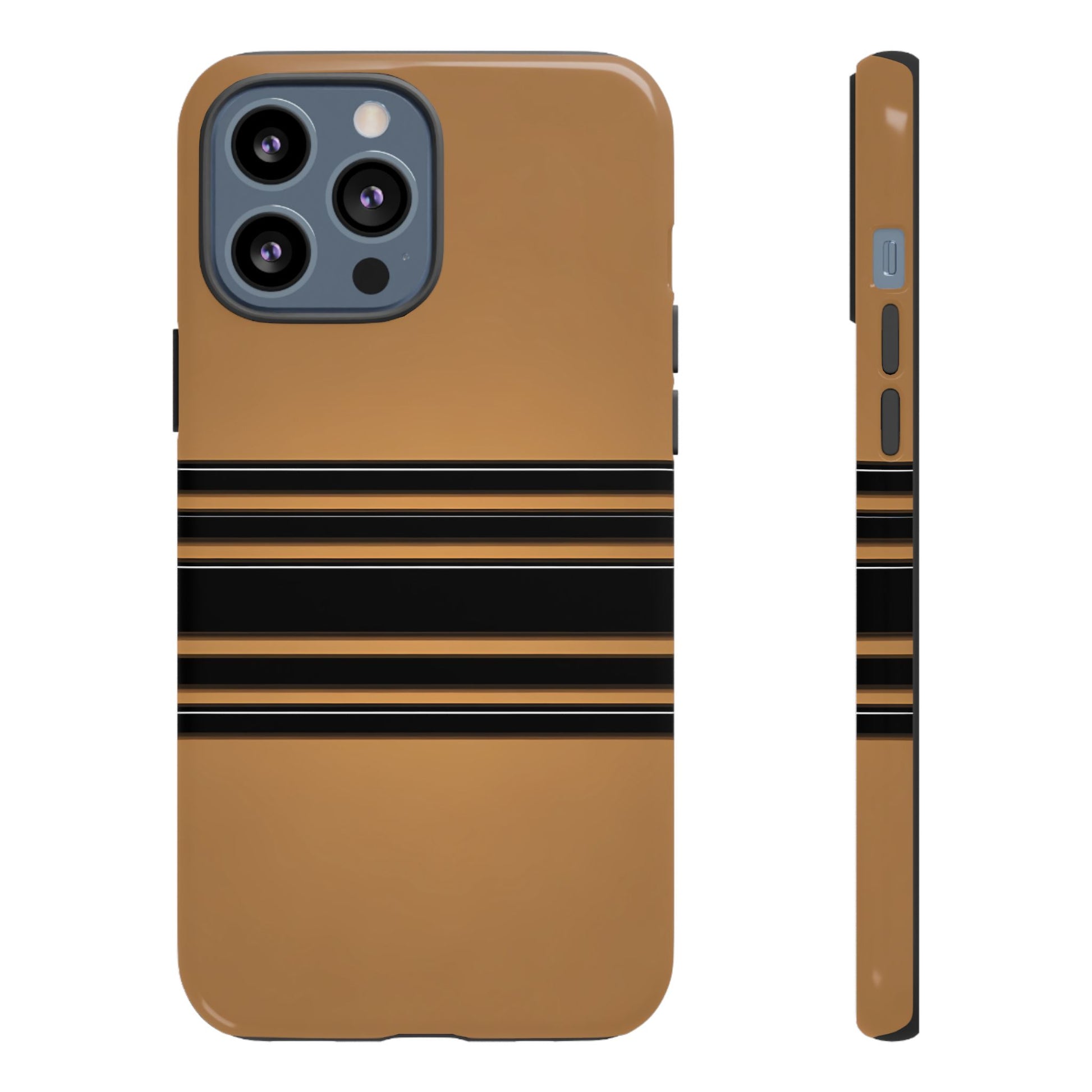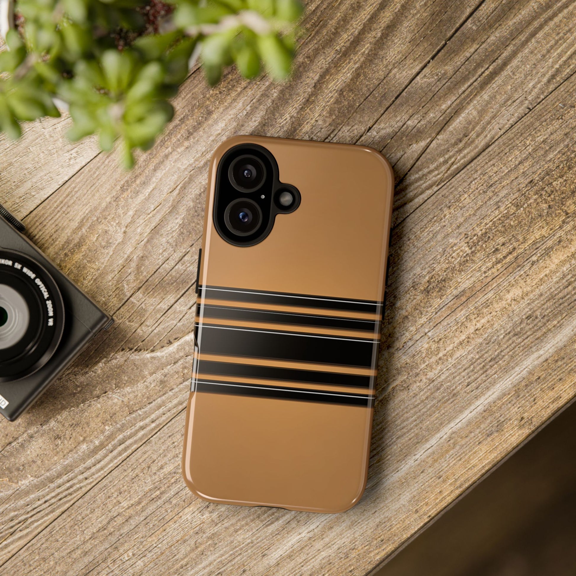 A crisp horizontal stripe centered on a smooth chocolate background for a bold, minimalist look.