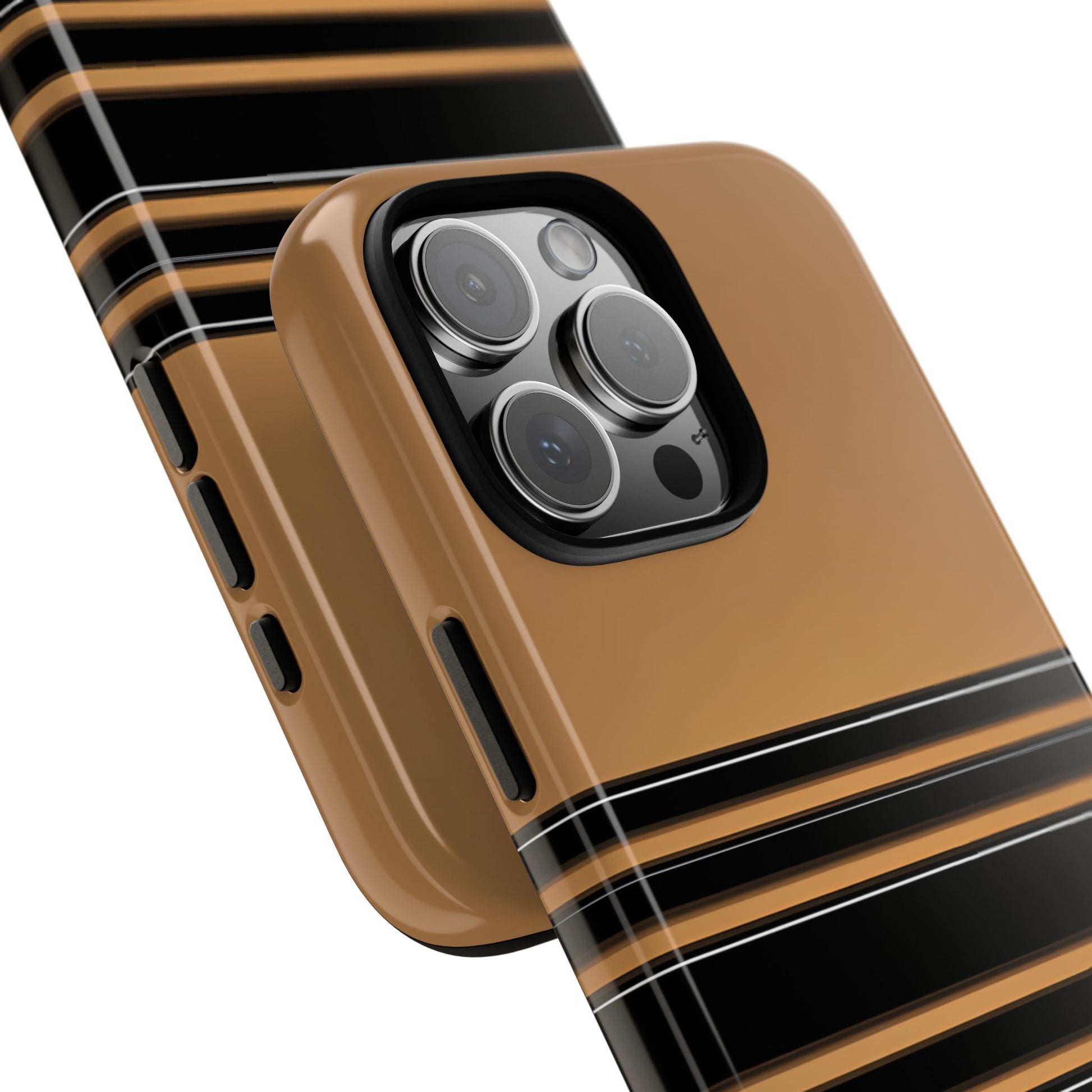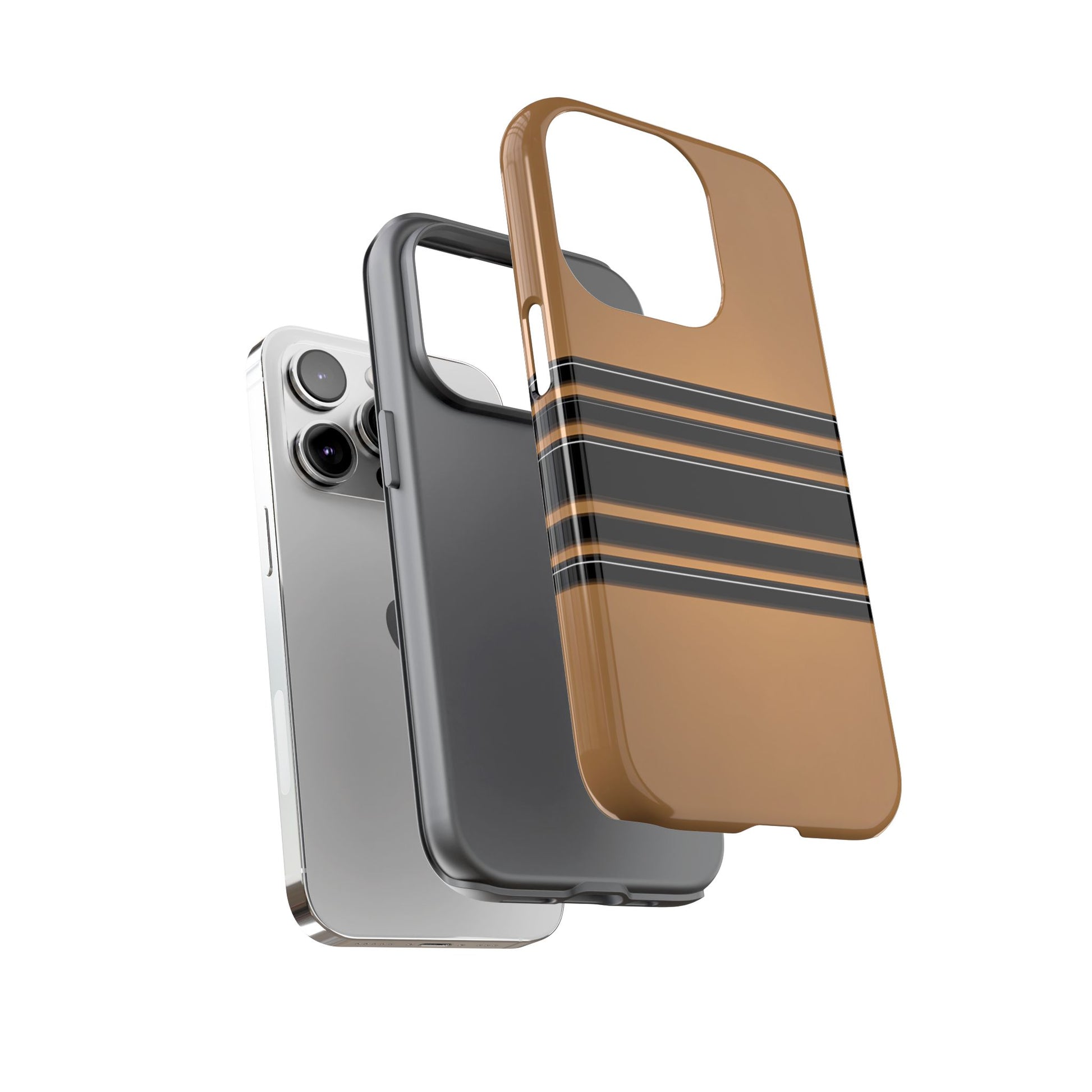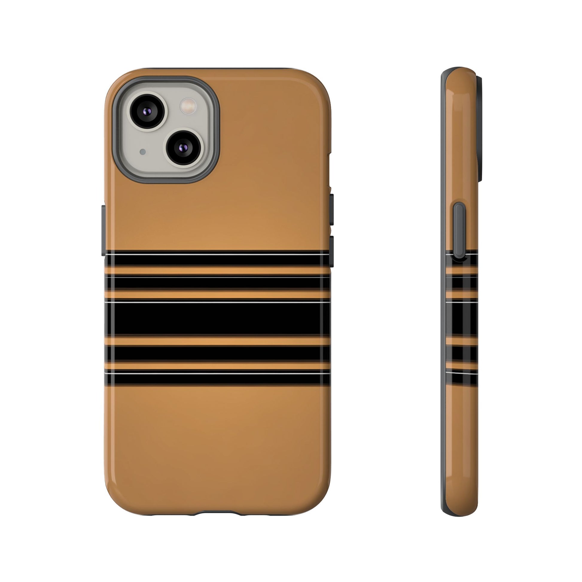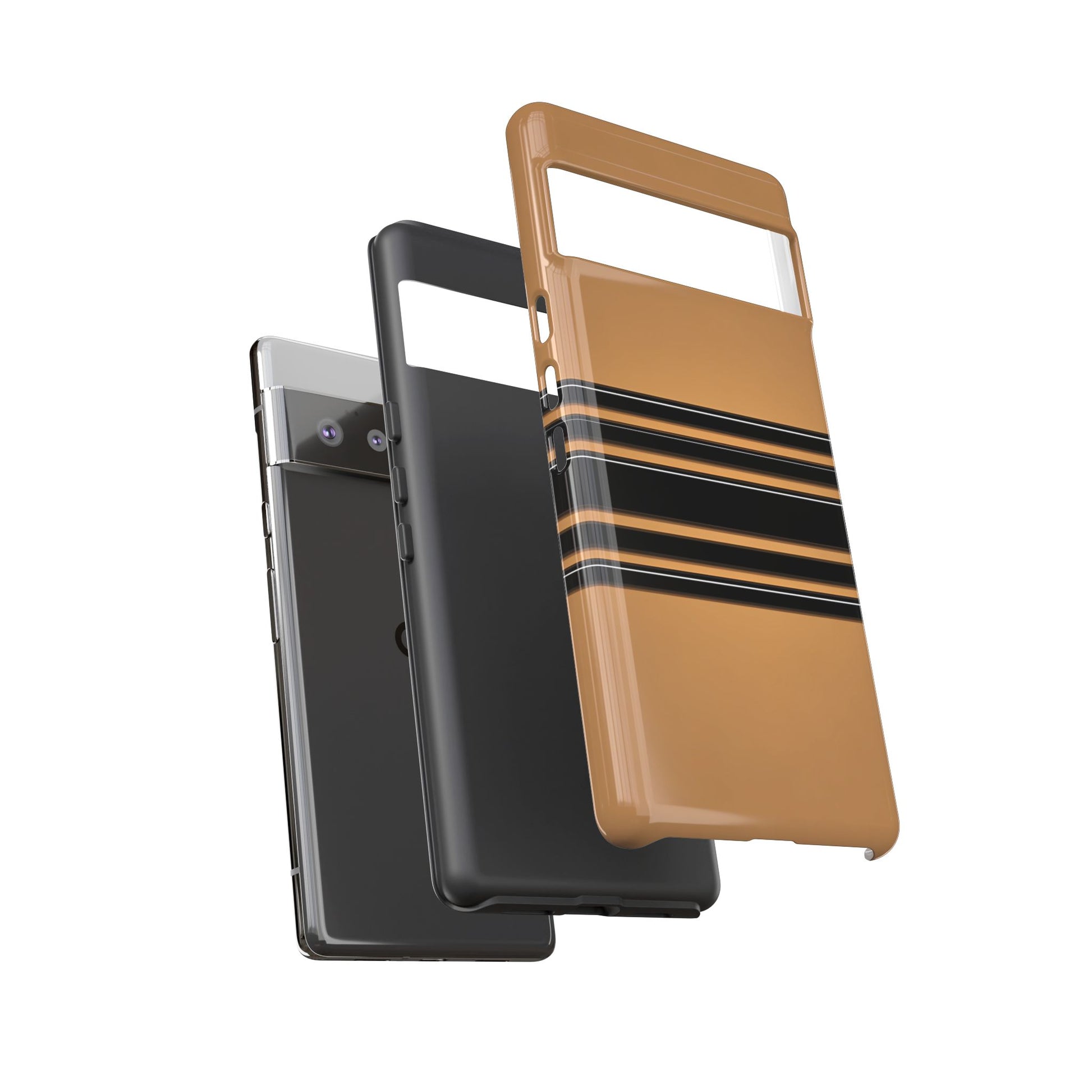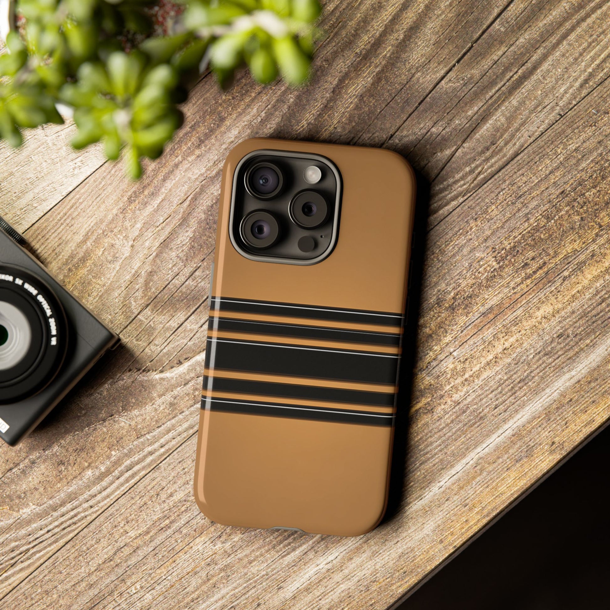 A crisp horizontal stripe centered on a smooth chocolate background for a bold, minimalist look.