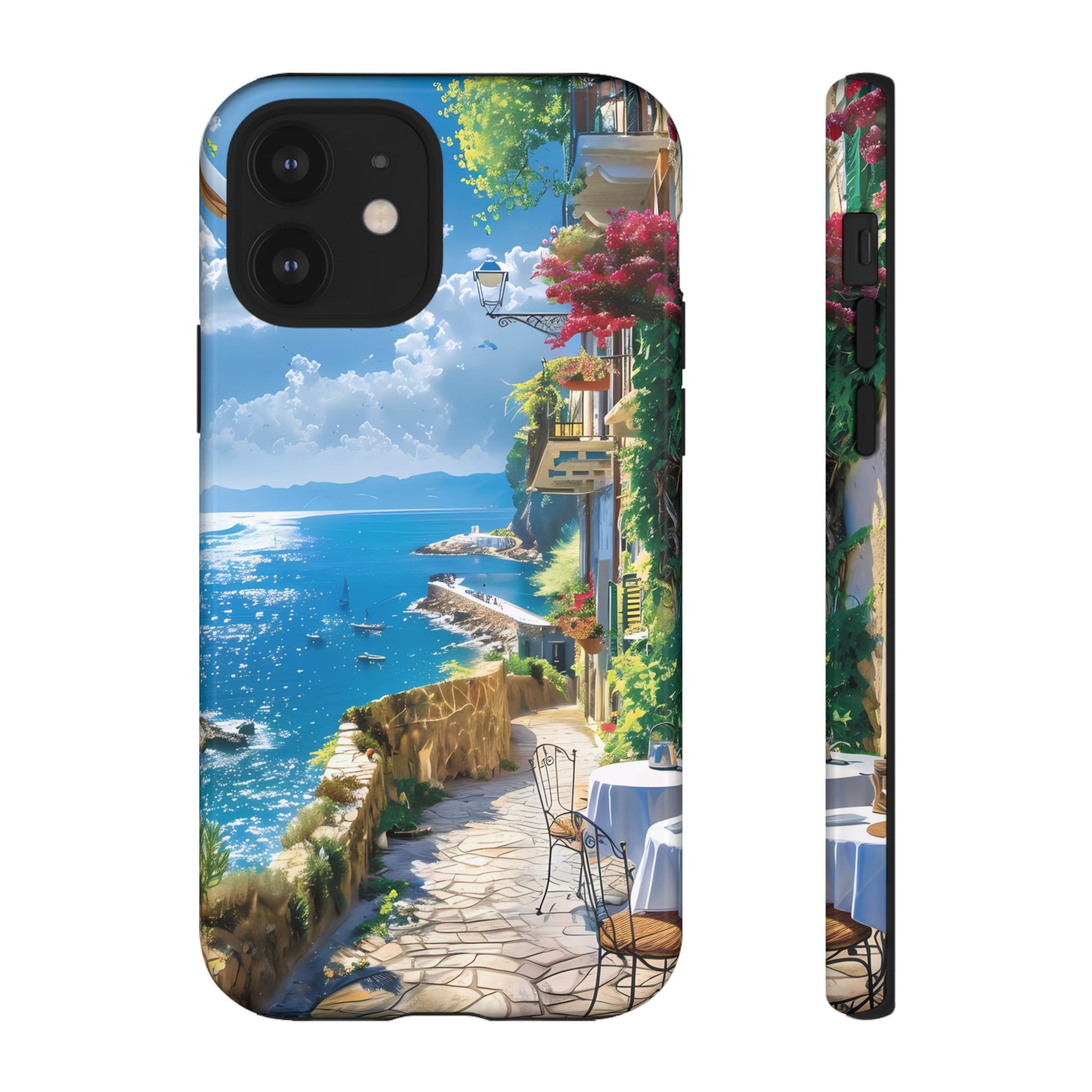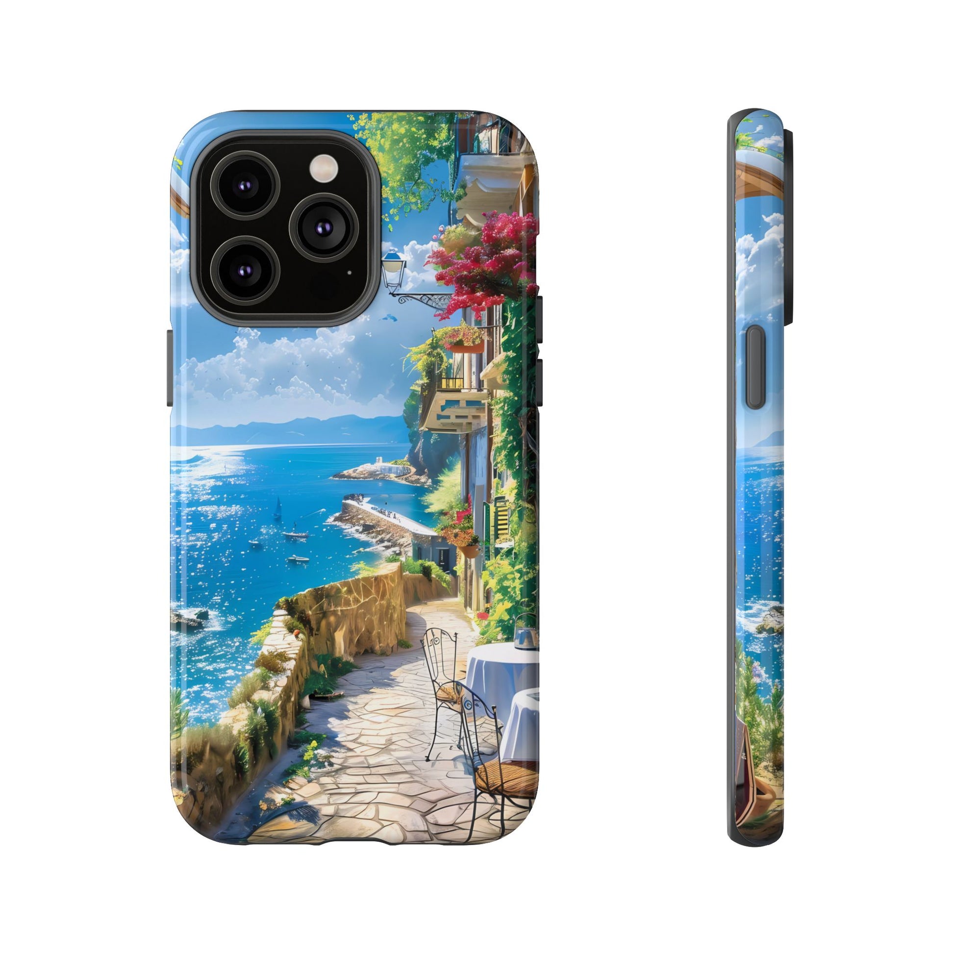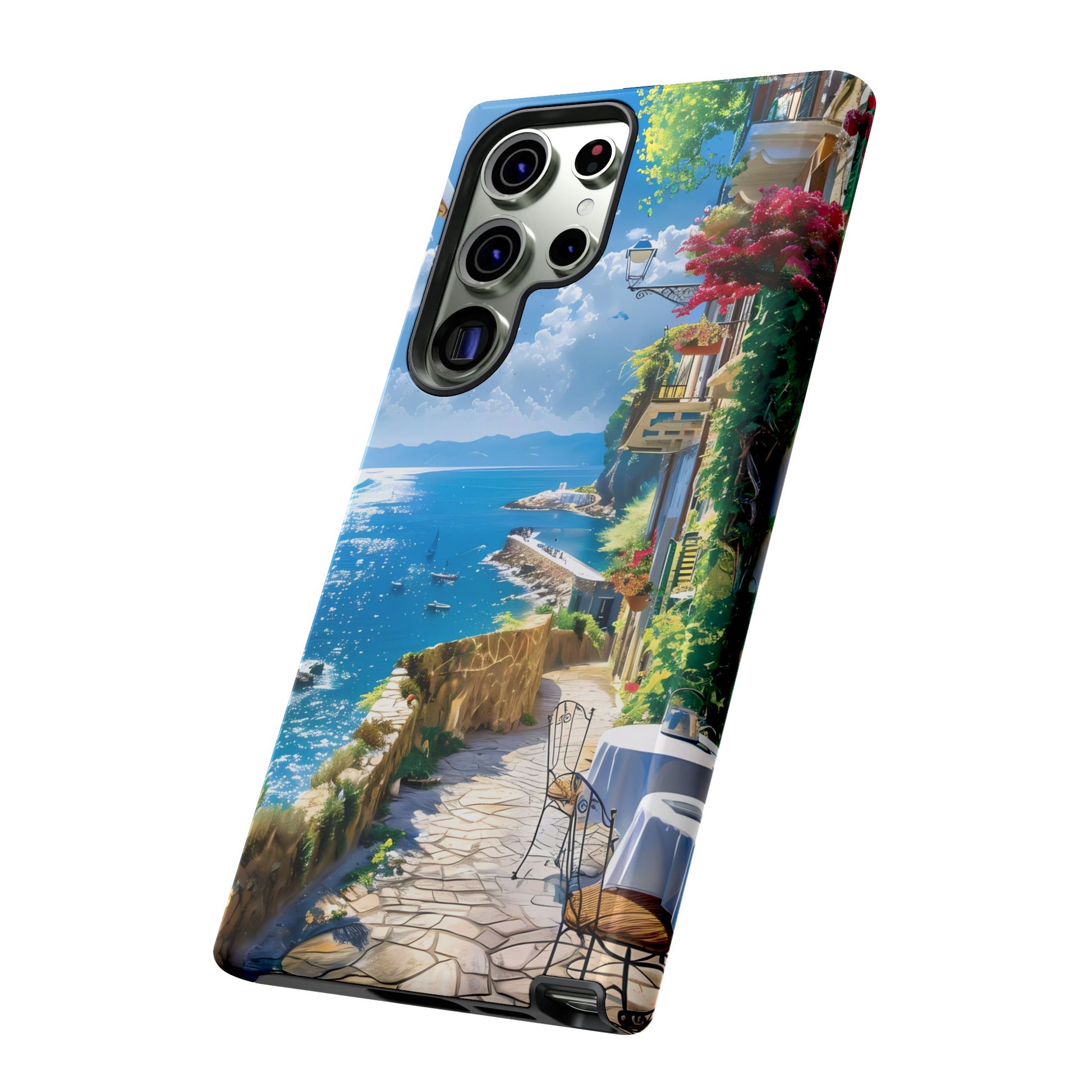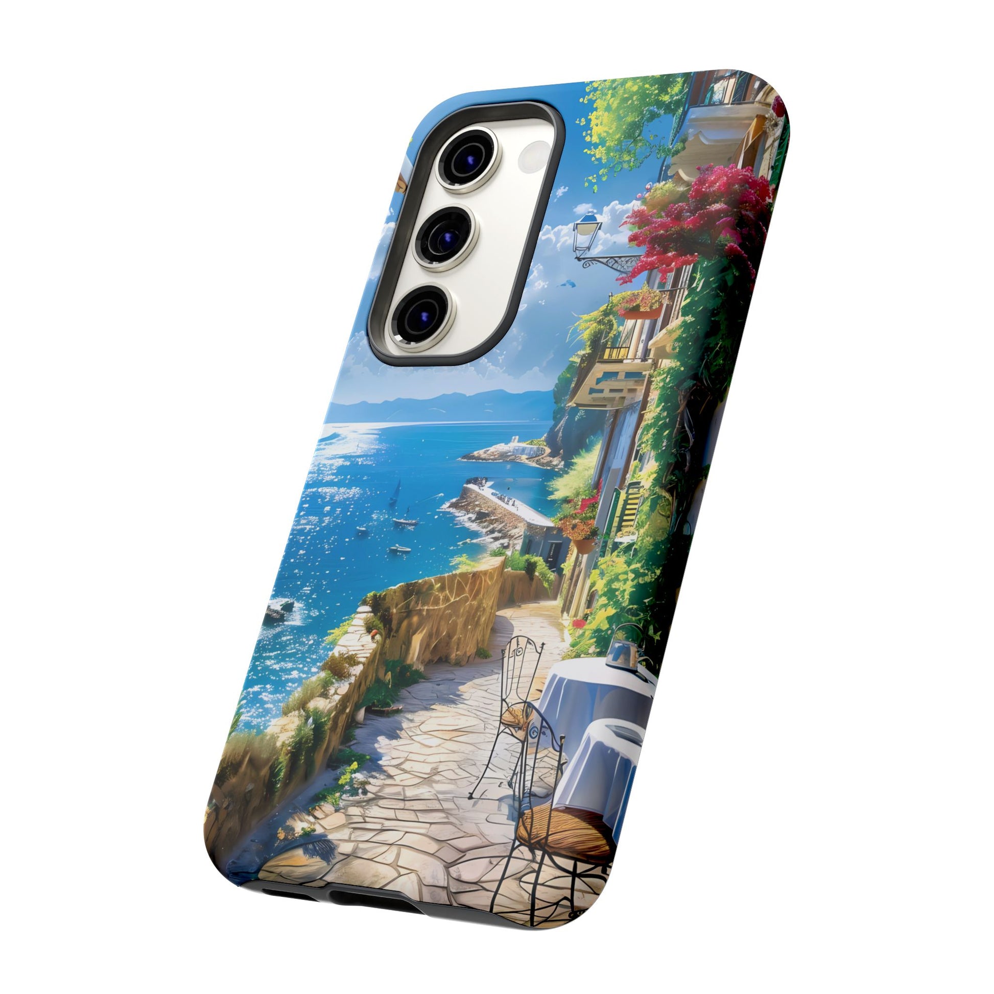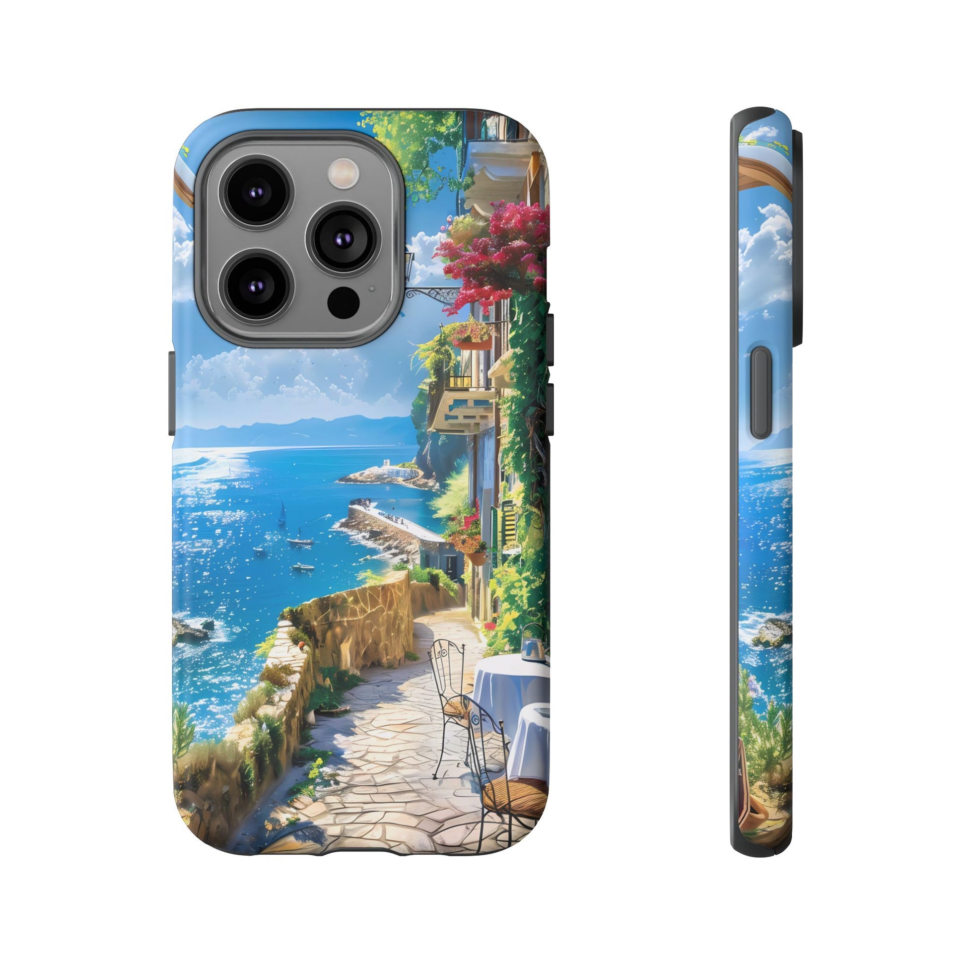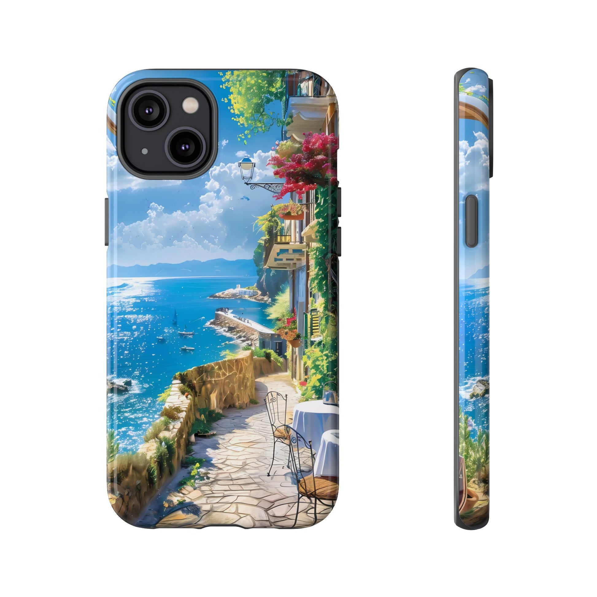Immerse yourself in the Mediterranean ambiance with this design featuring an outdoor restaurant with a breathtaking ocean view. By day, enjoy the bright, airy setting with elegant furnishings; by night, the scene transforms with soft, glowing lights that highlight the café's relaxed atmosphere