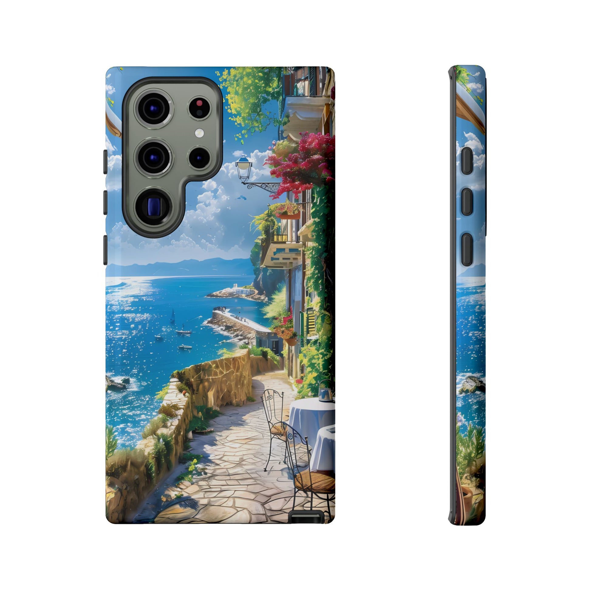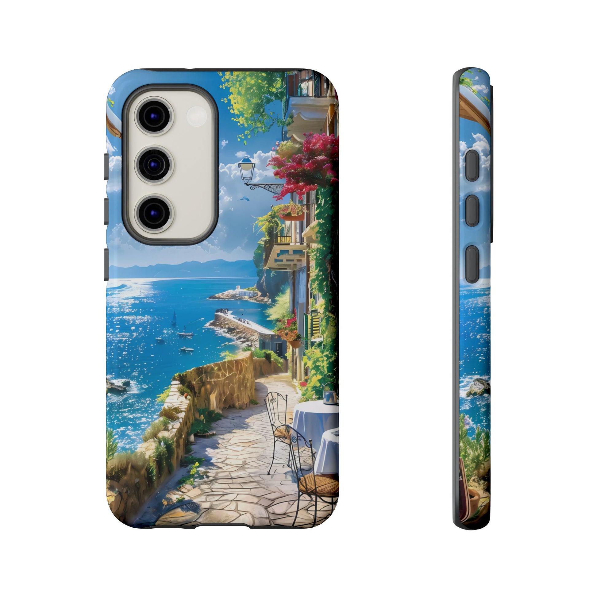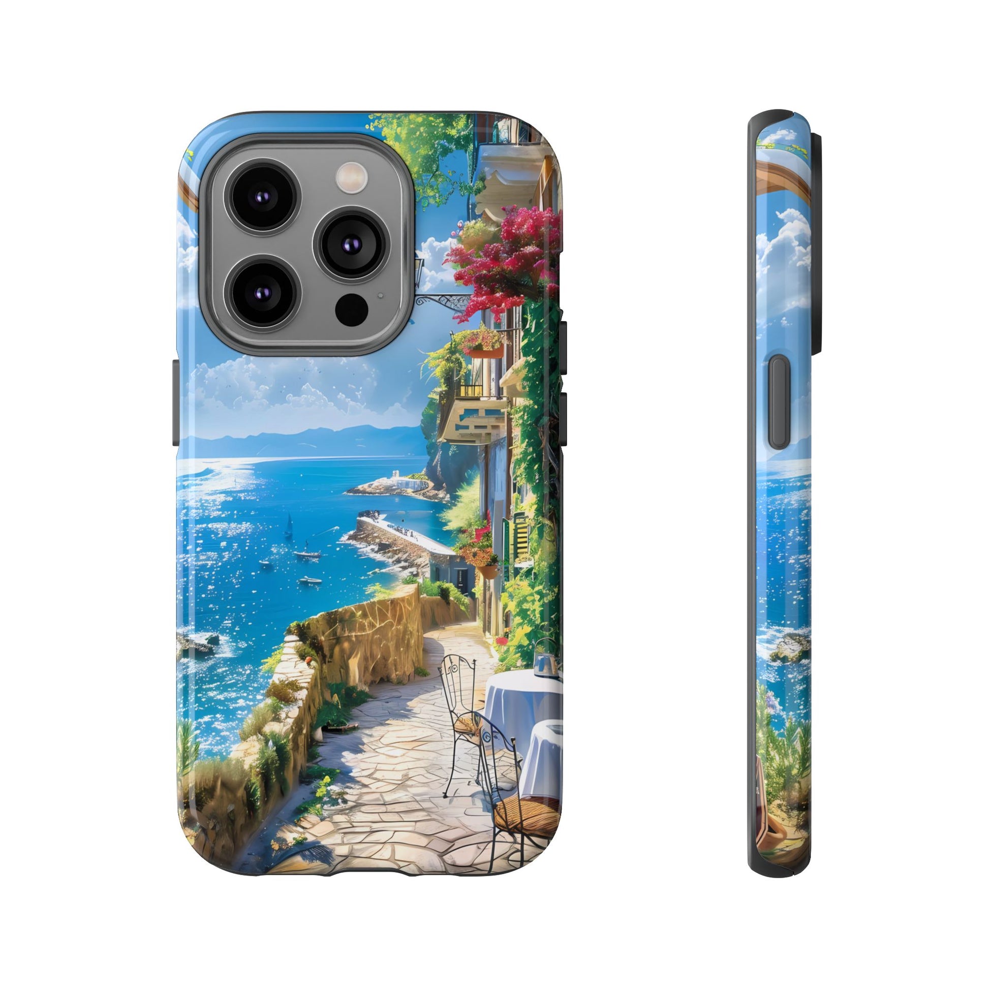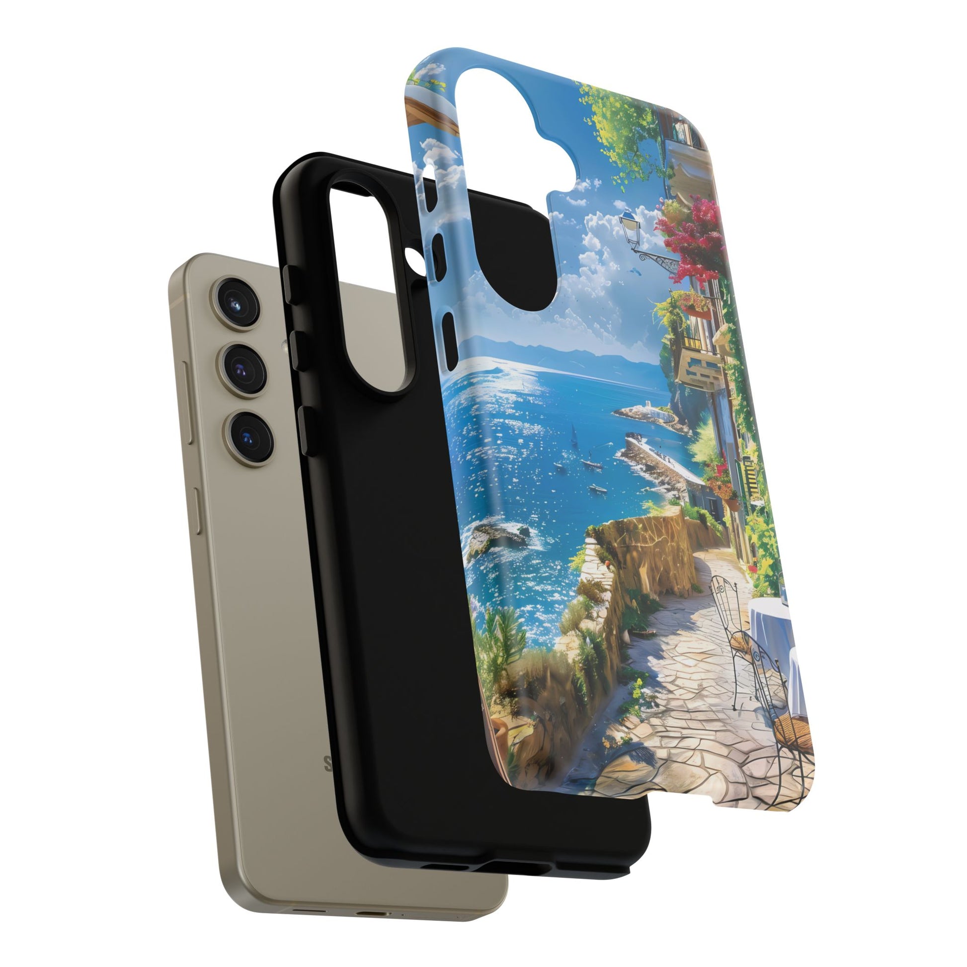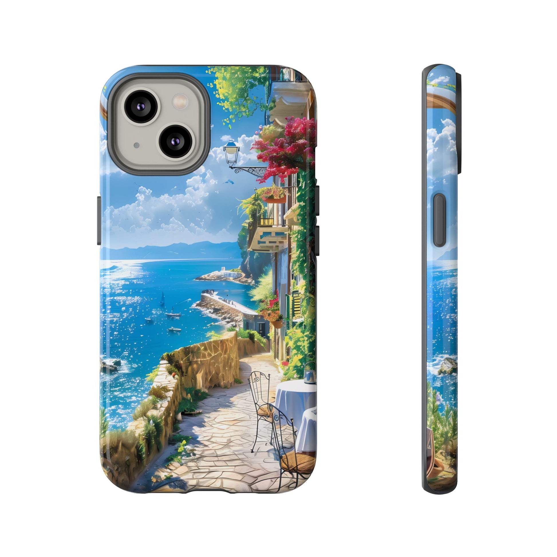 Immerse yourself in the Mediterranean ambiance with this design featuring an outdoor restaurant with a breathtaking ocean view. By day, enjoy the bright, airy setting with elegant furnishings; by night, the scene transforms with soft, glowing lights that highlight the café's relaxed atmosphere