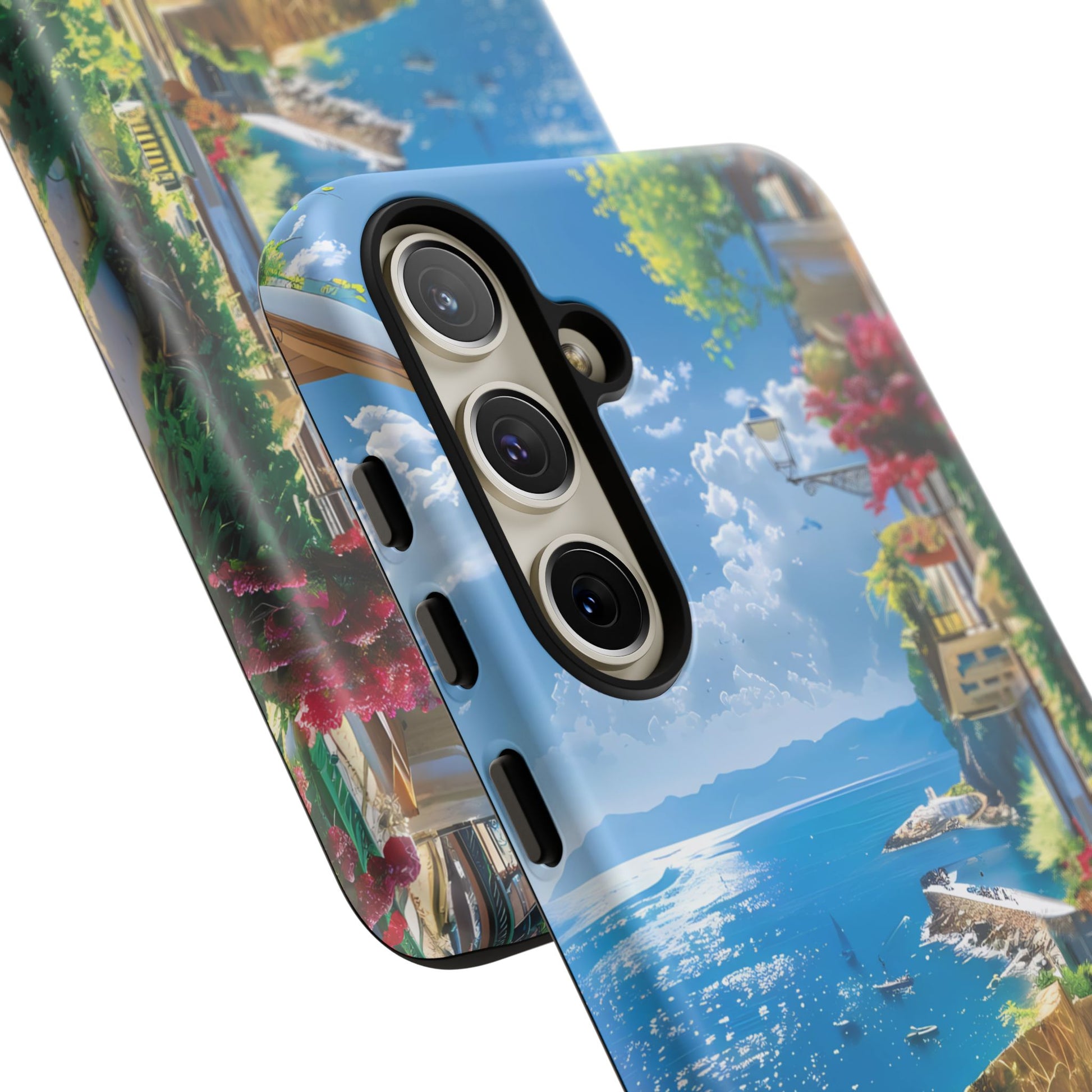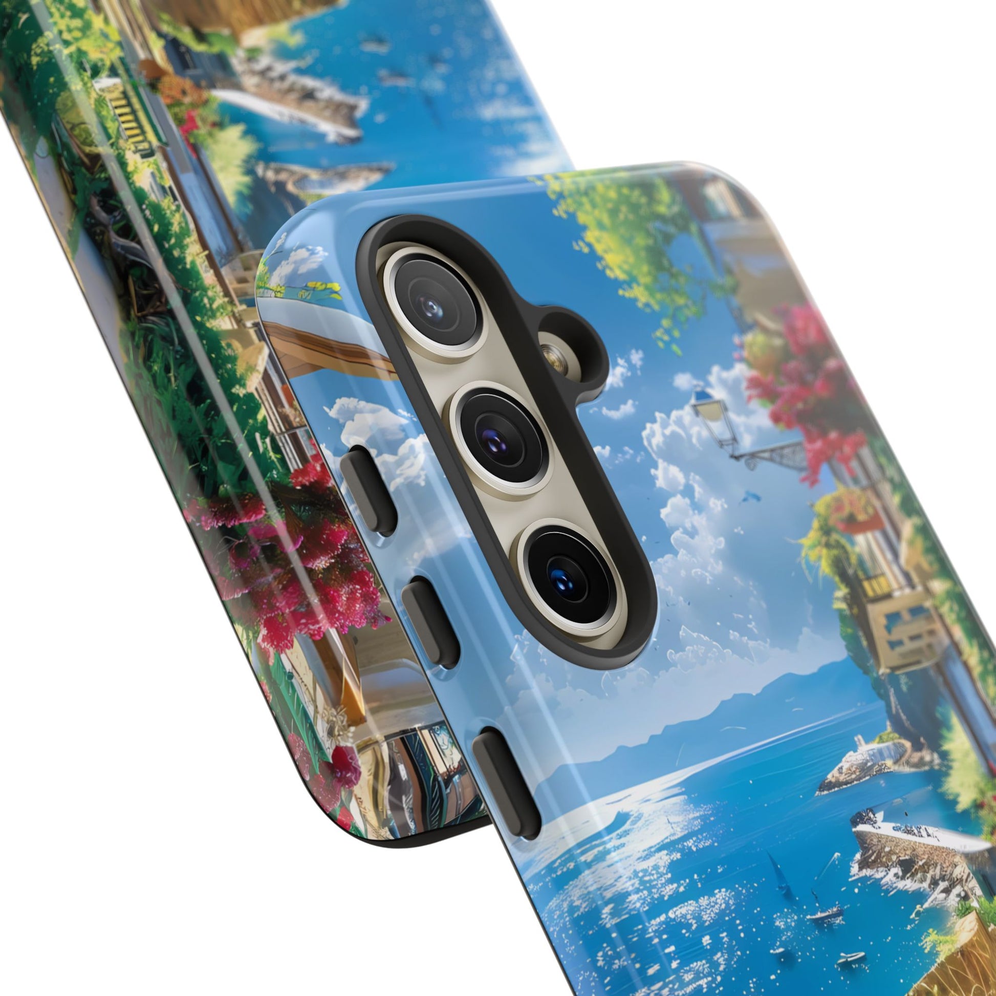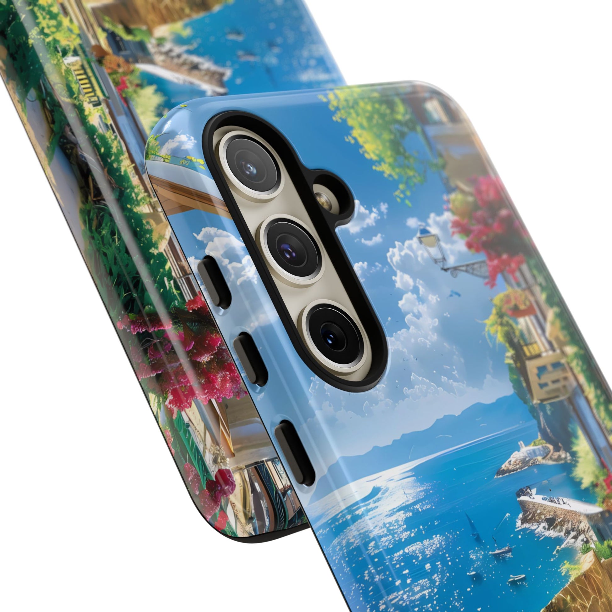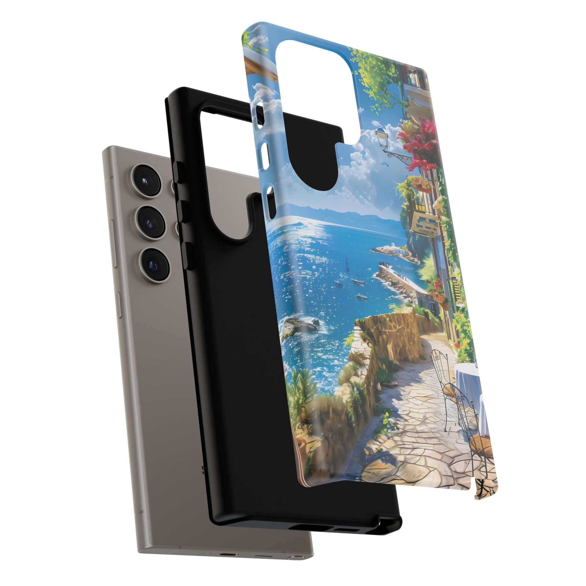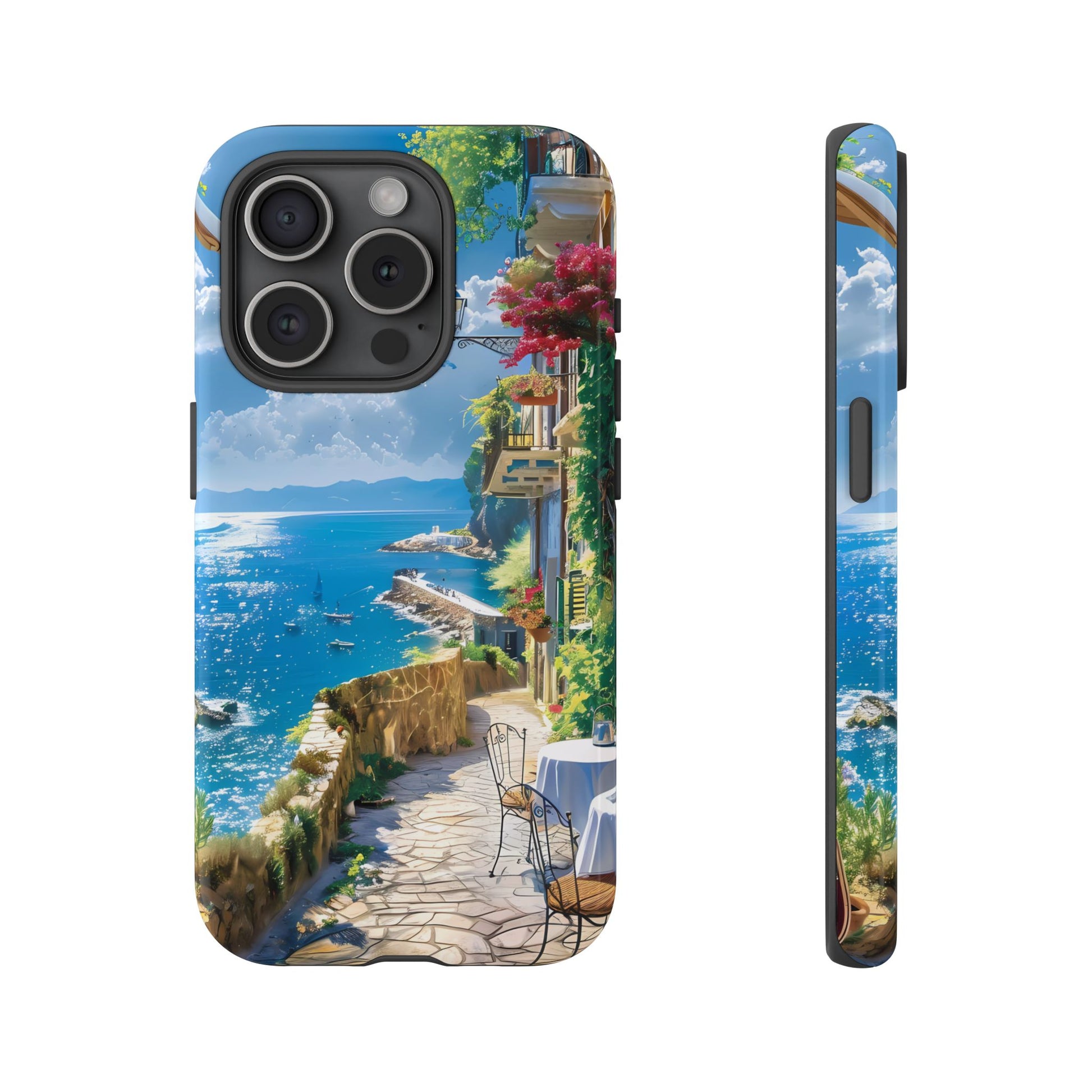 Immerse yourself in the Mediterranean ambiance with this design featuring an outdoor restaurant with a breathtaking ocean view. By day, enjoy the bright, airy setting with elegant furnishings; by night, the scene transforms with soft, glowing lights that highlight the café's relaxed atmosphere