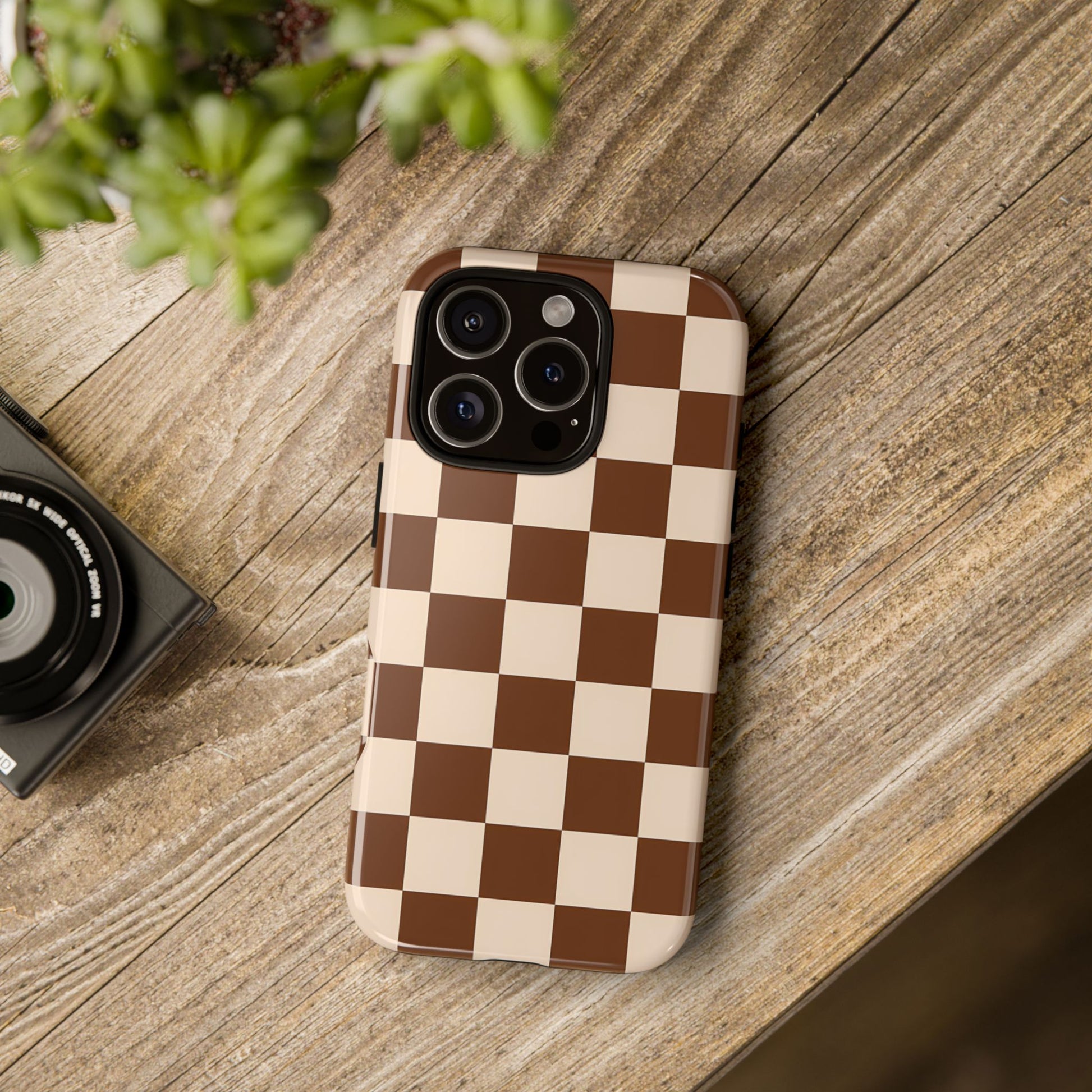 Rich chocolate brown and crisp white squares form a timeless checker pattern — warm, grounded, and effortlessly stylish in its simplicity.