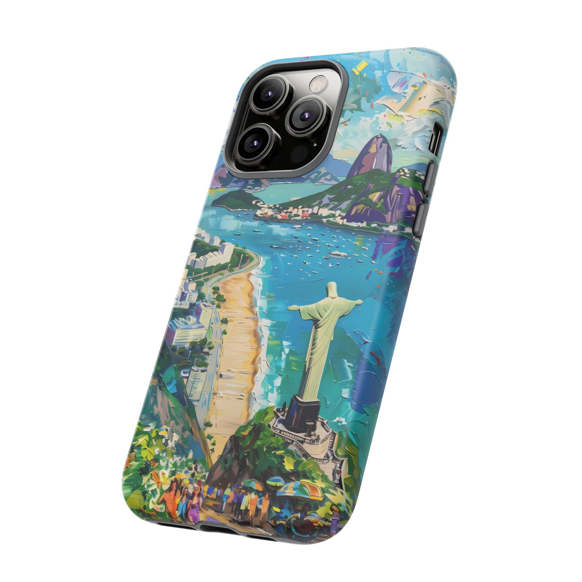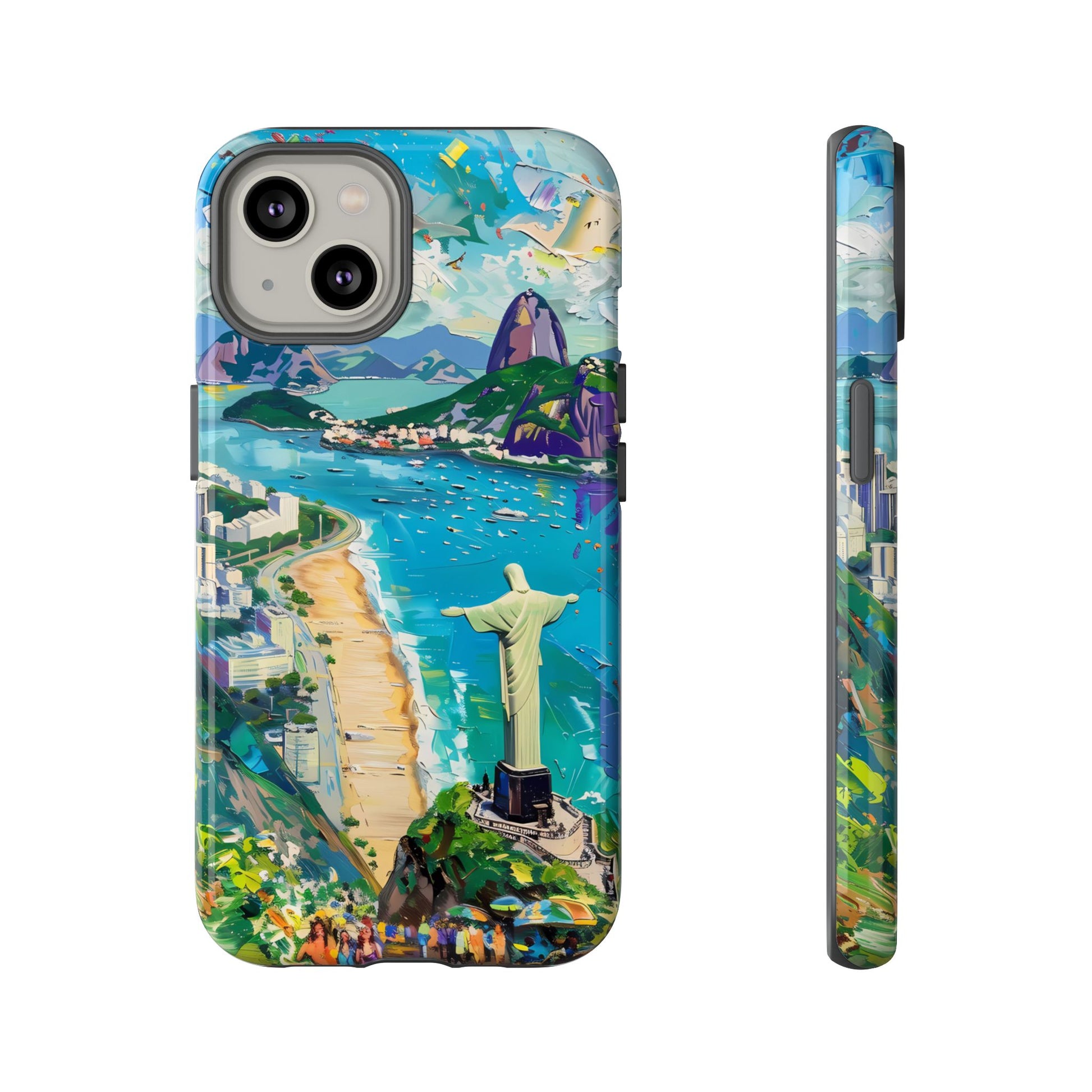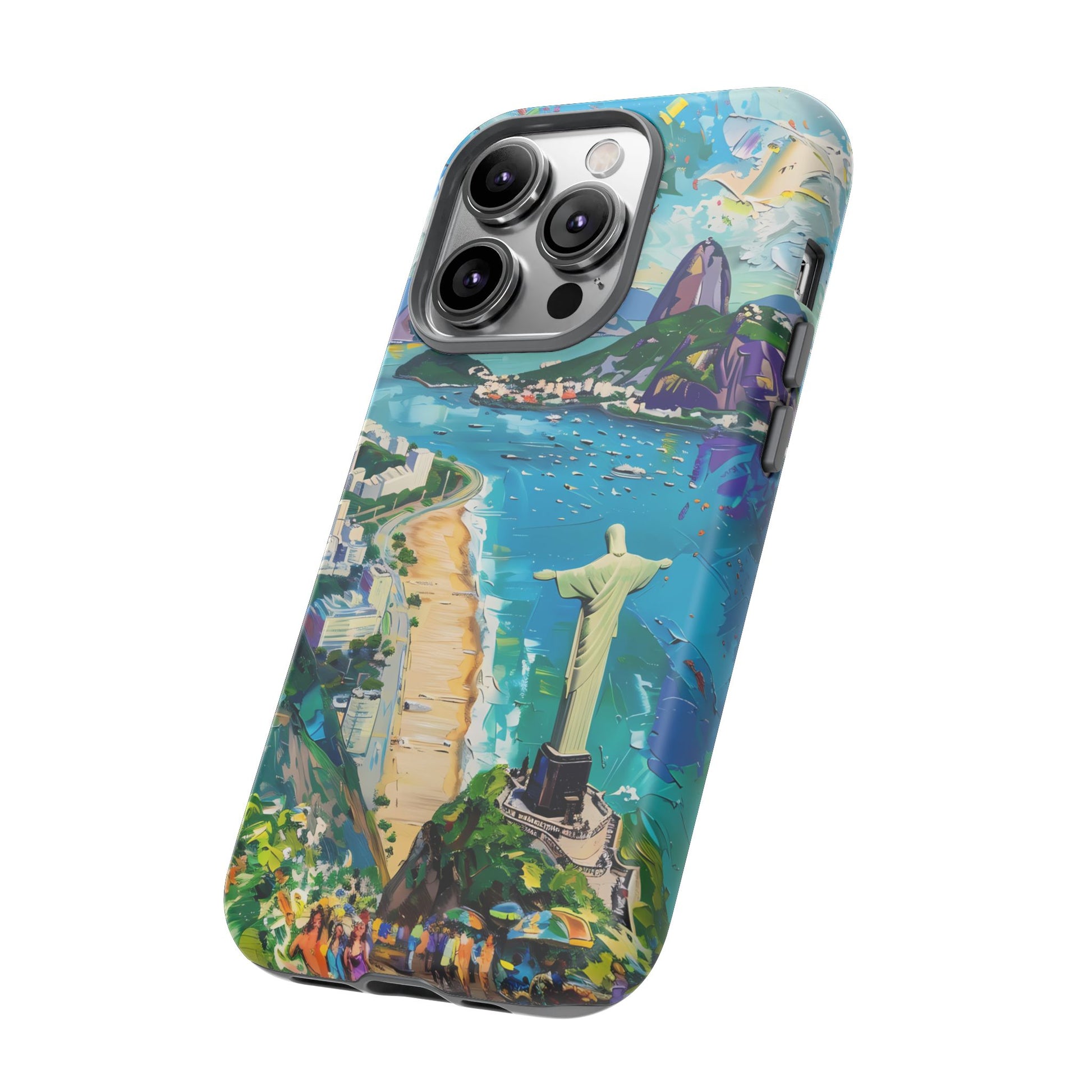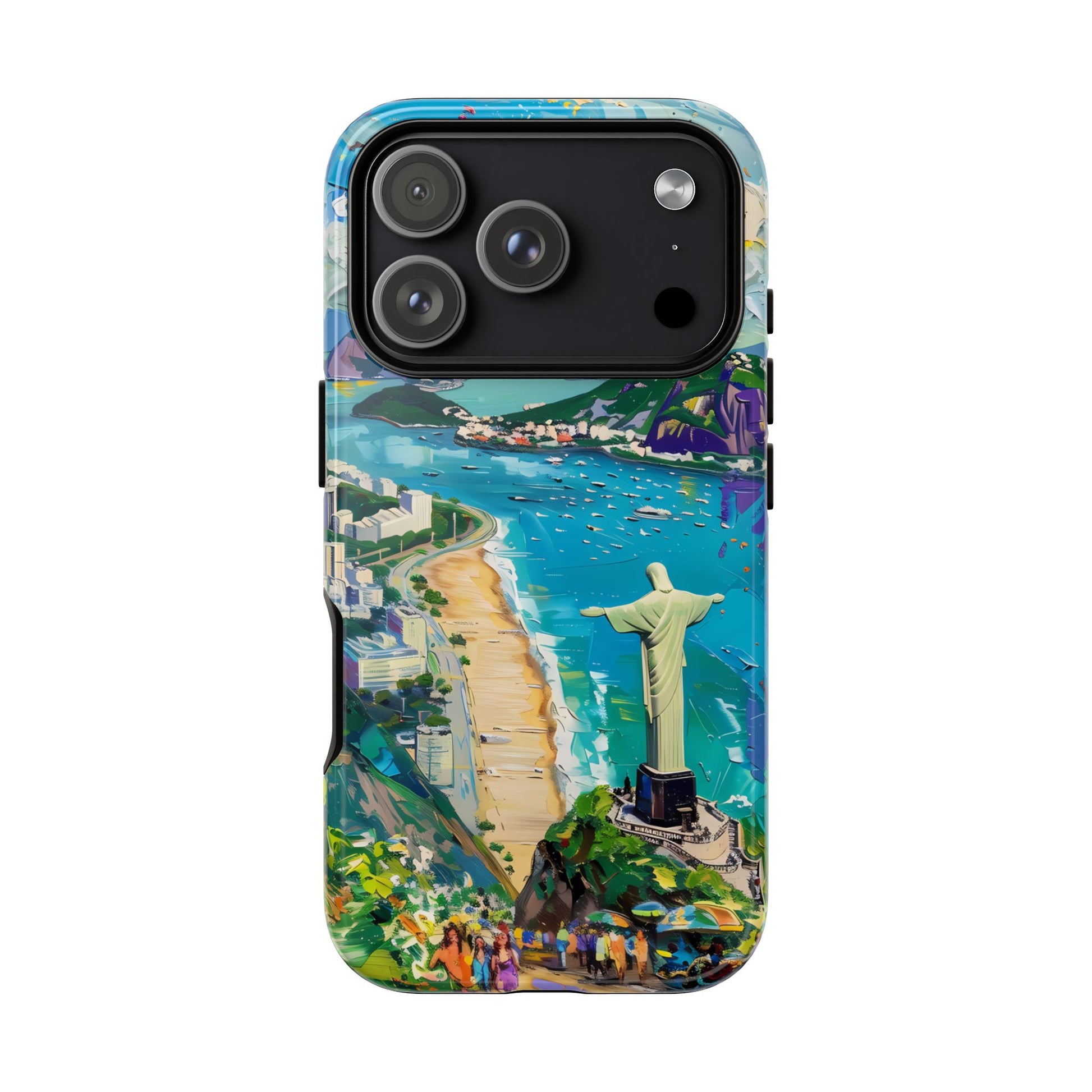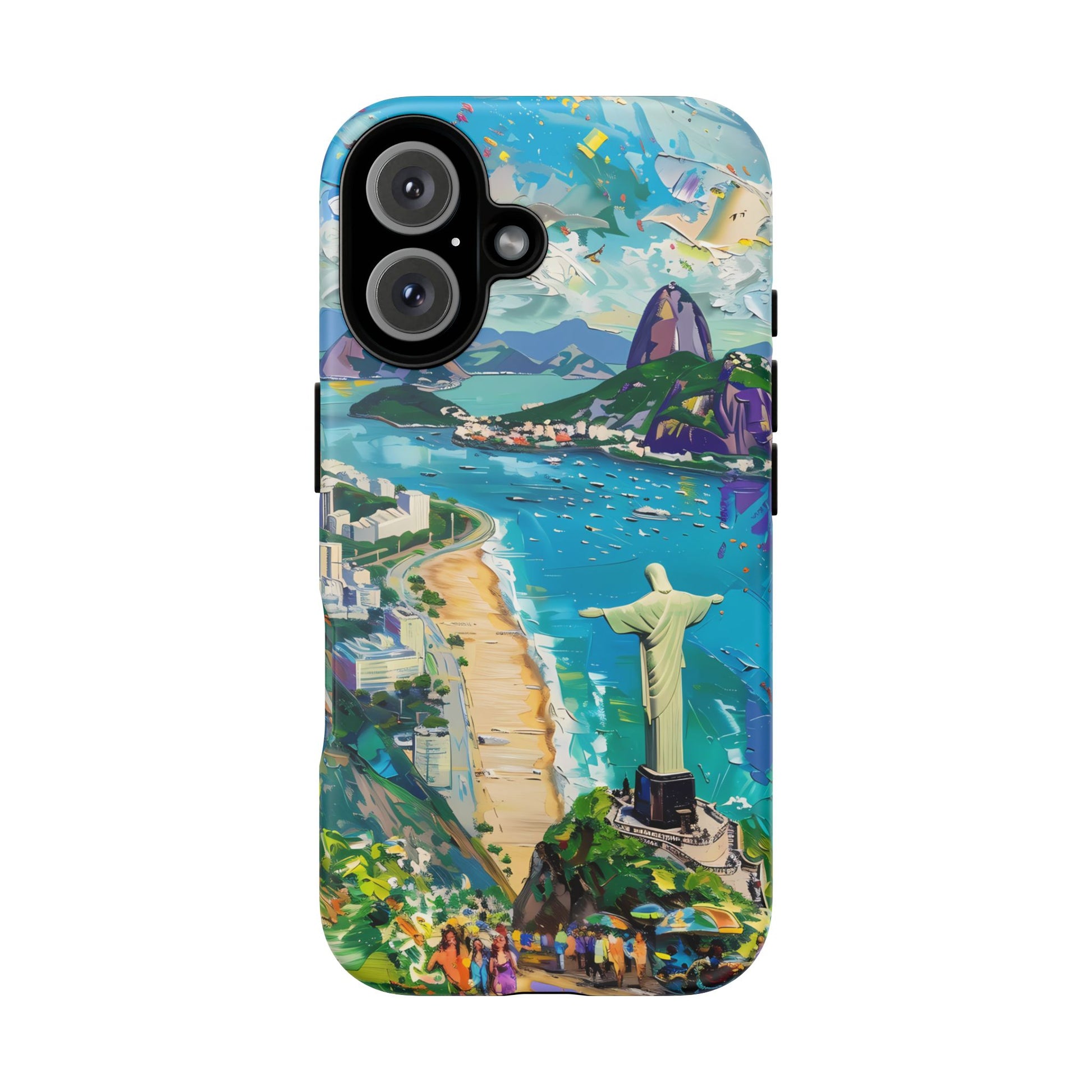 Step into the sun-drenched world of Rio de Janeiro with the "Copacabana Dreams" phone cover. This cover showcases a beautiful oil painting of the Christ the Redeemer statue overlooking the bustling Copacabana Beach, with vibrant Carnival scenes adding a splash of color and joy.