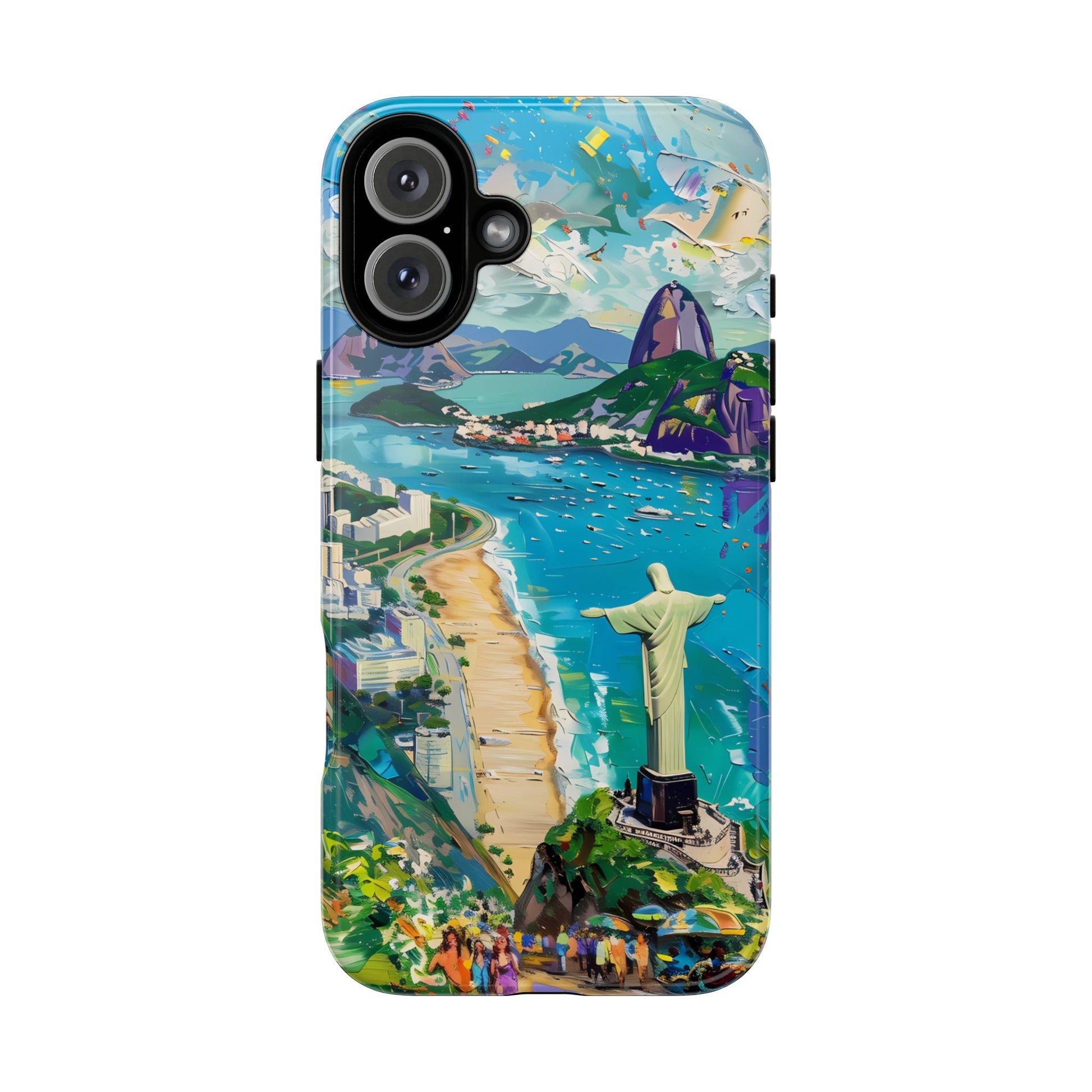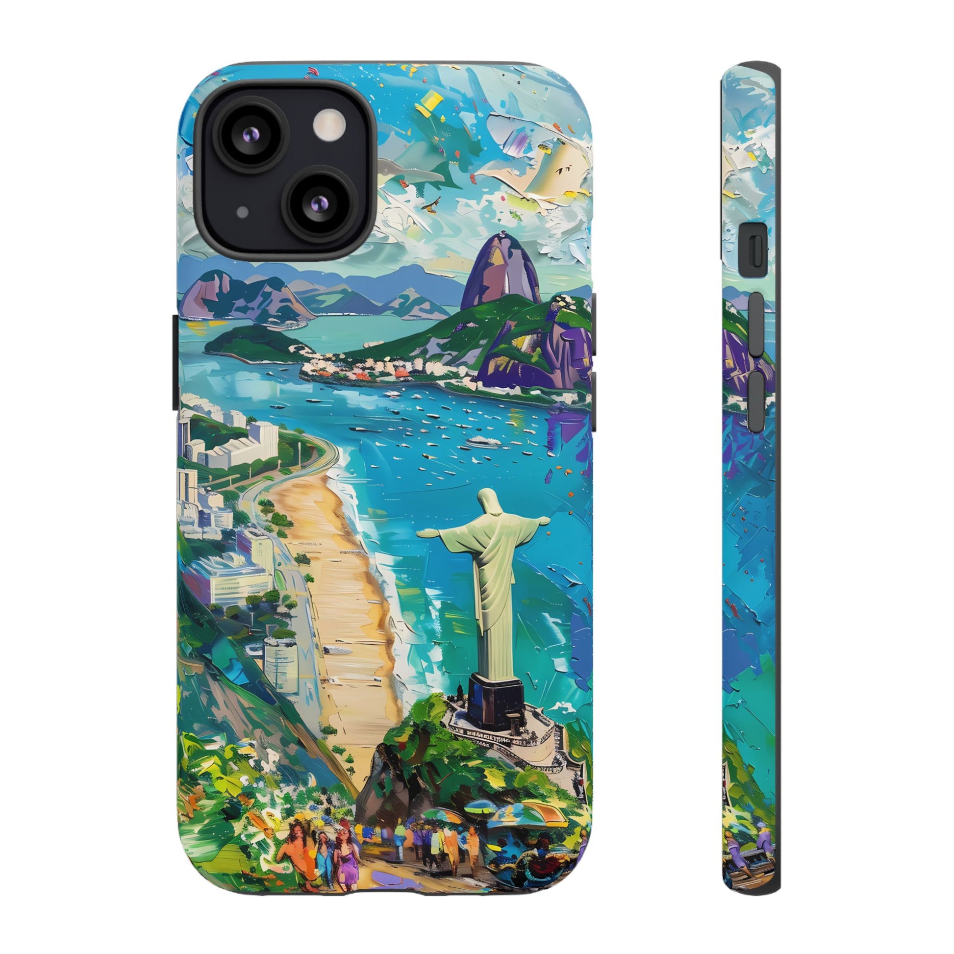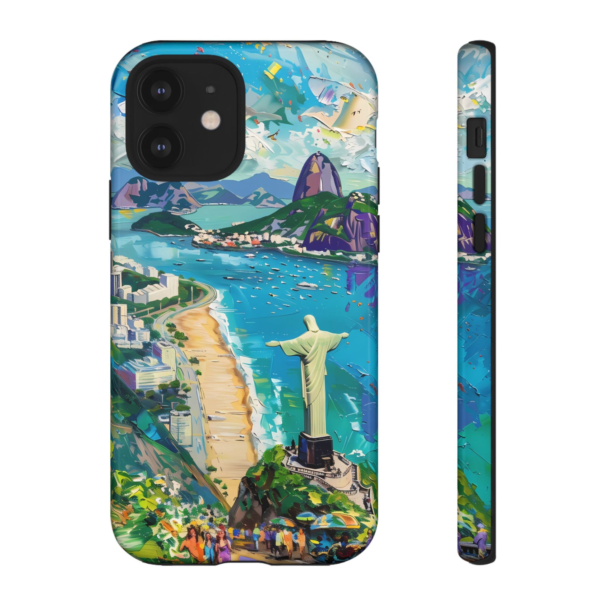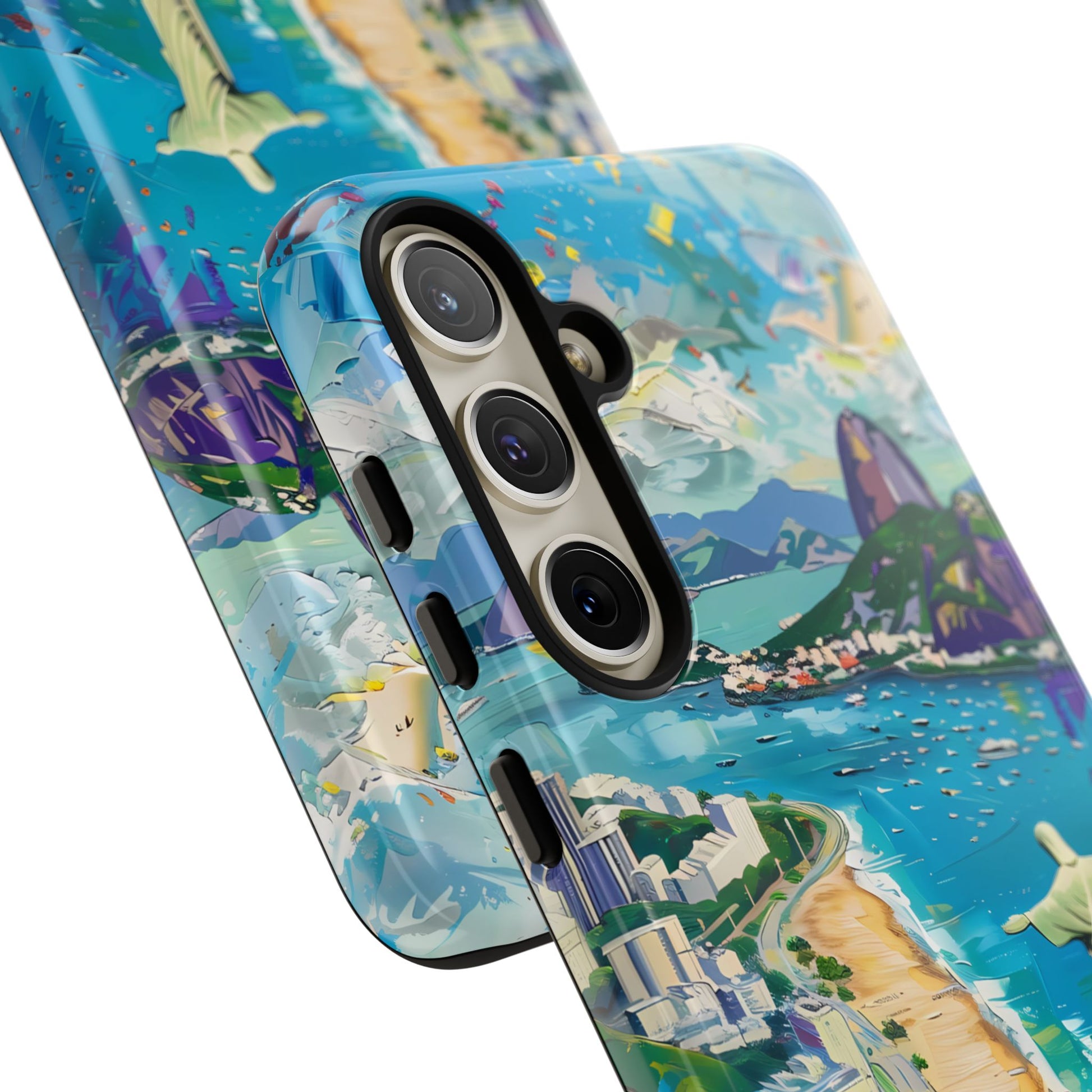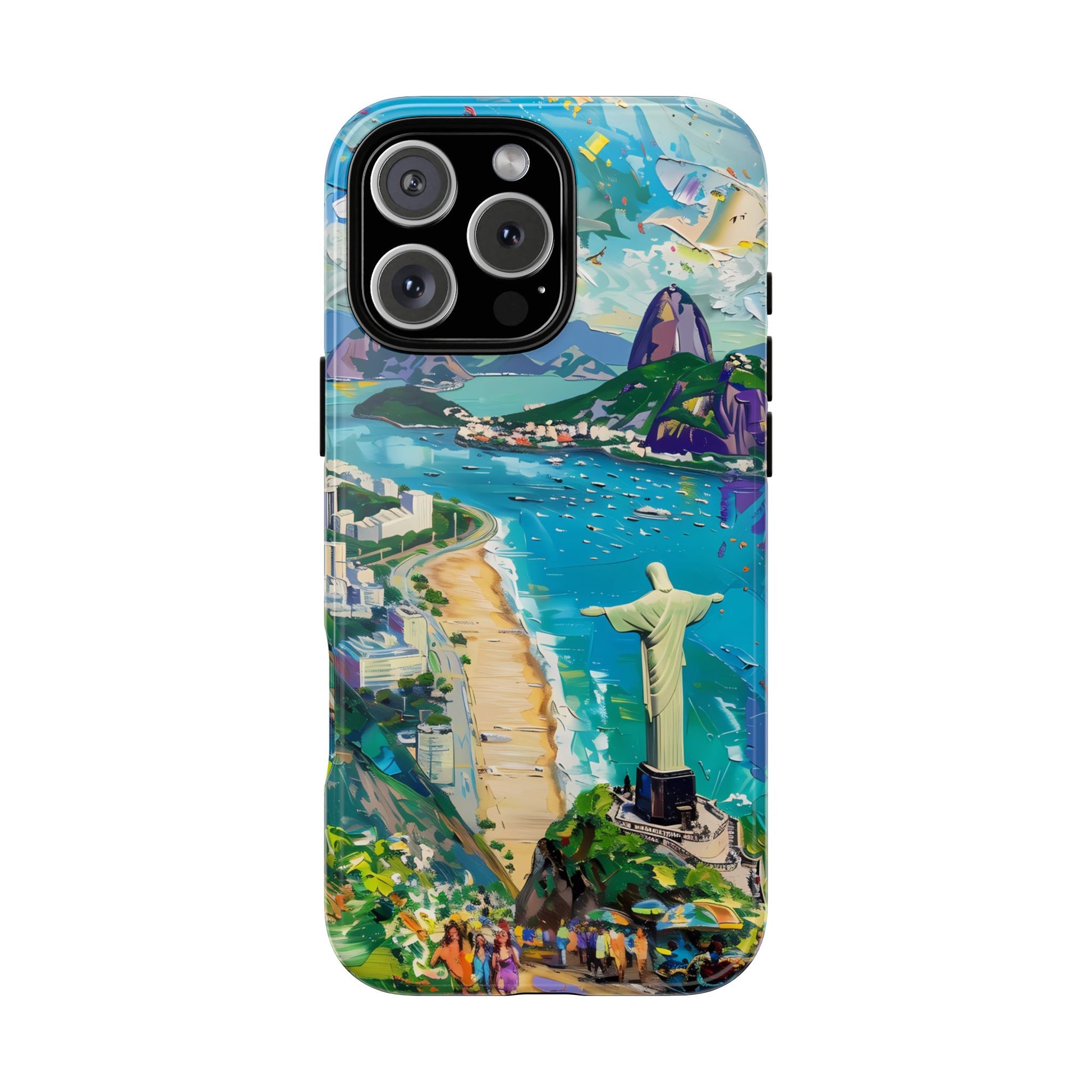 Step into the sun-drenched world of Rio de Janeiro with the "Copacabana Dreams" phone cover. This cover showcases a beautiful oil painting of the Christ the Redeemer statue overlooking the bustling Copacabana Beach, with vibrant Carnival scenes adding a splash of color and joy.