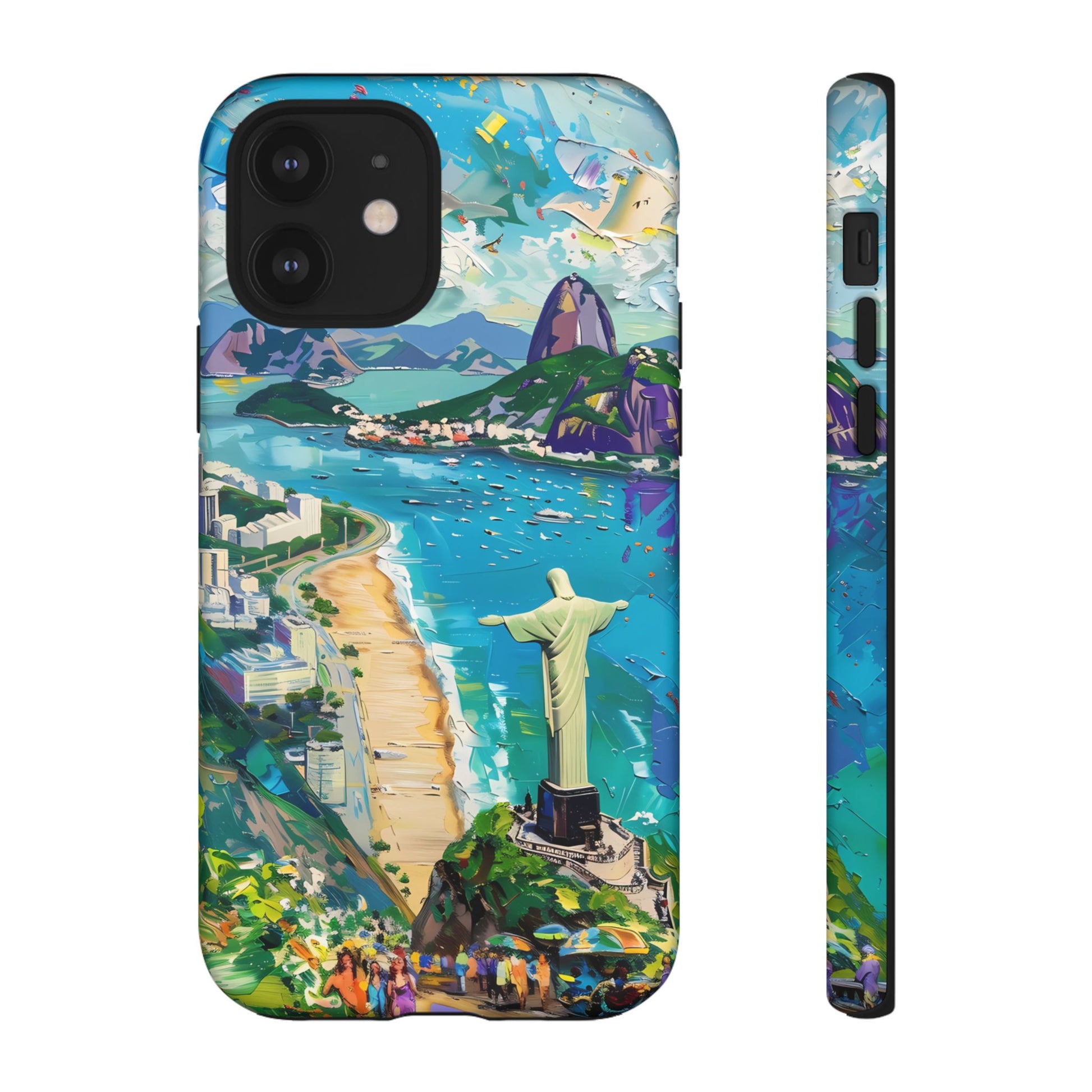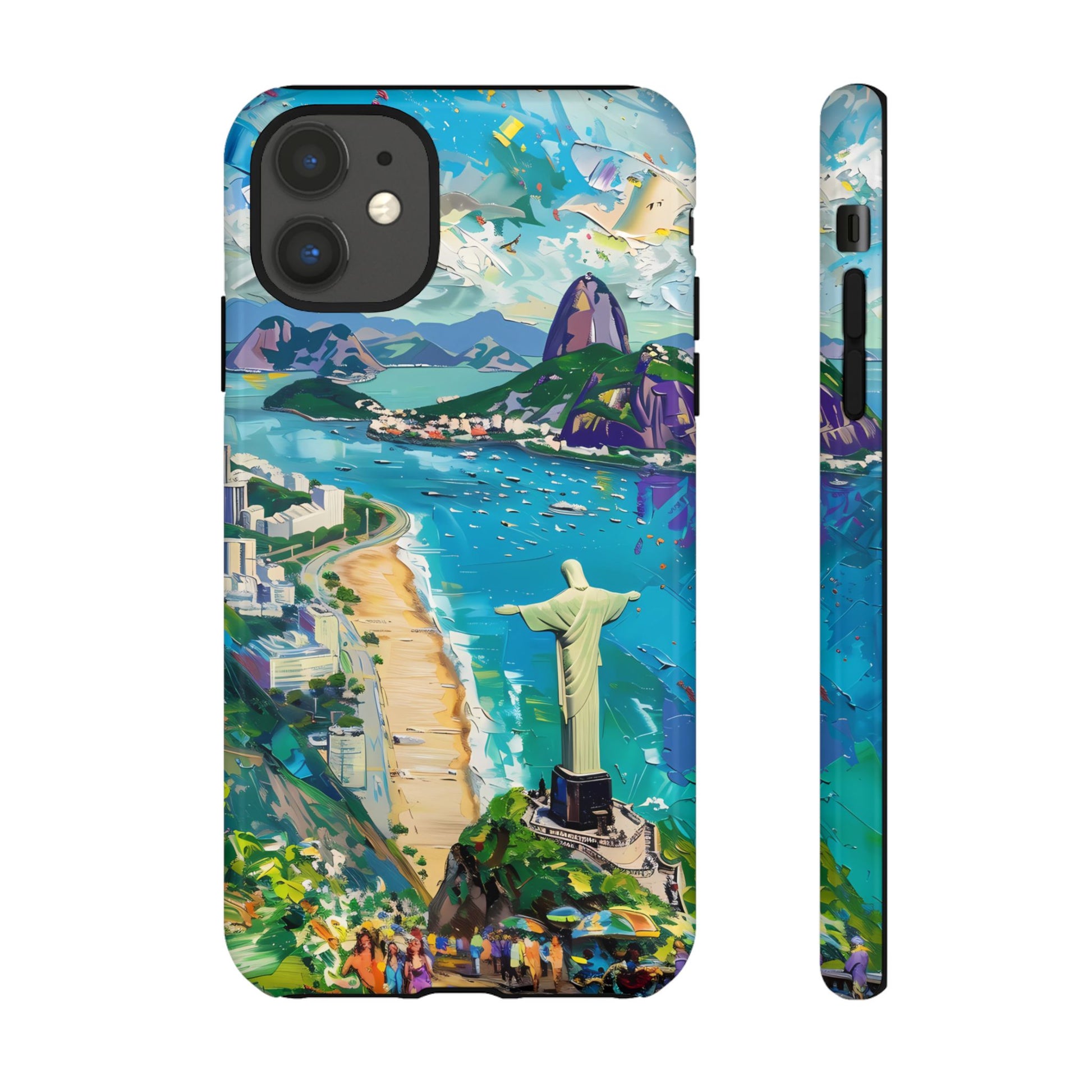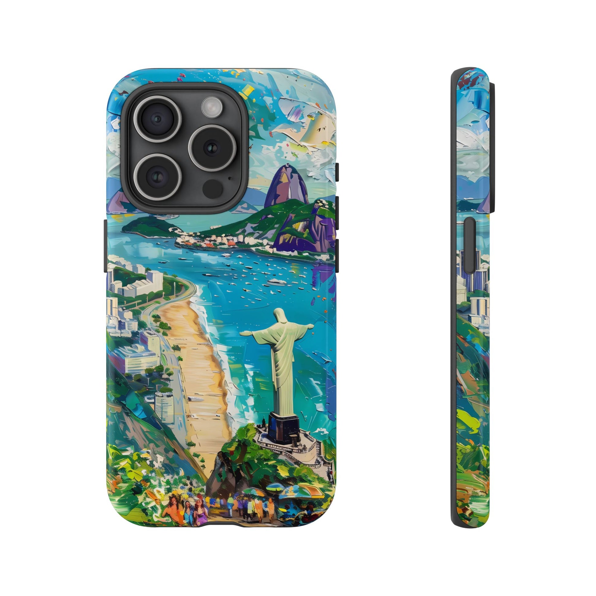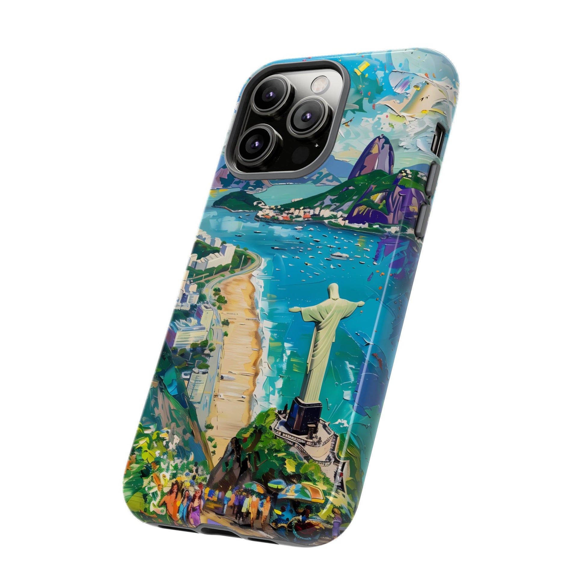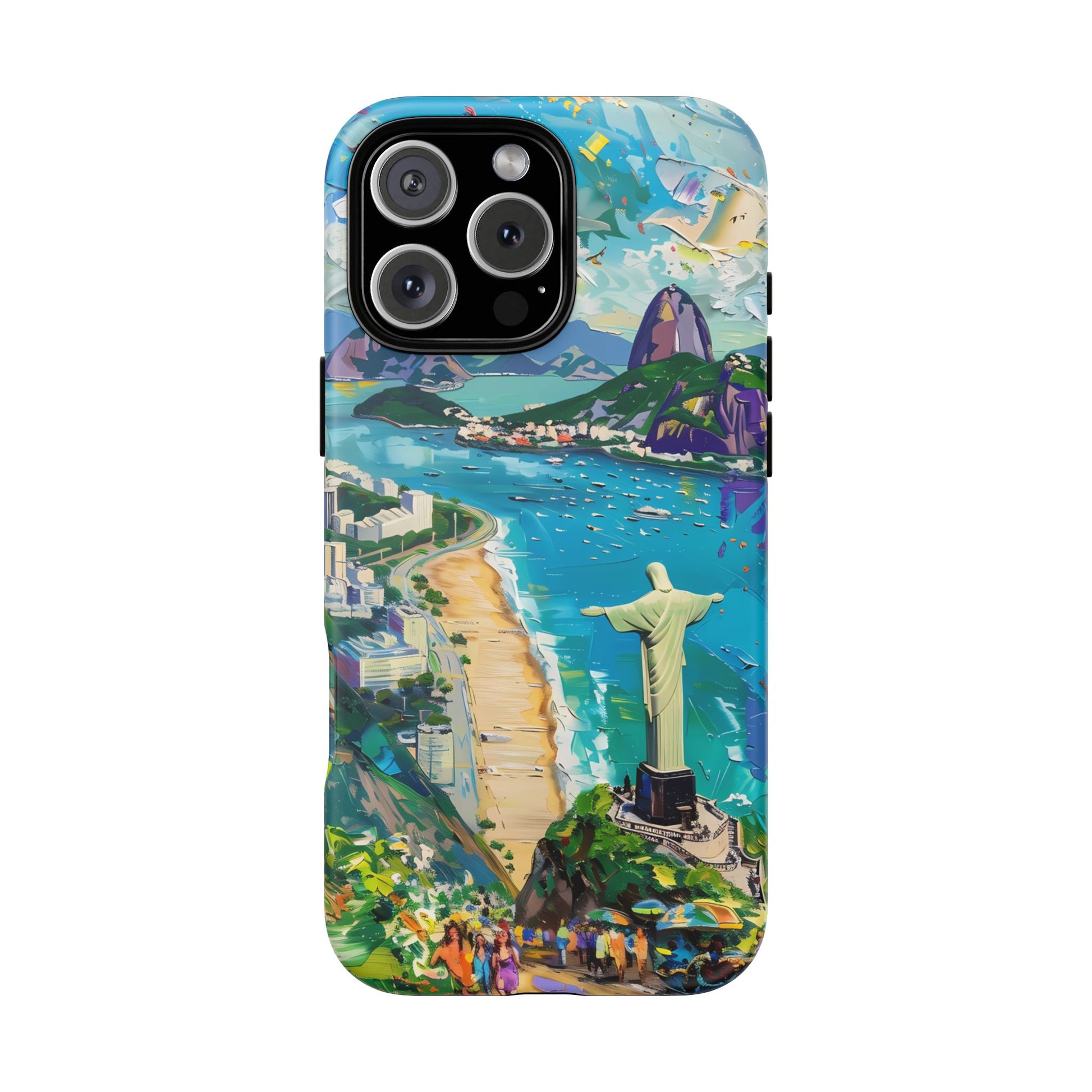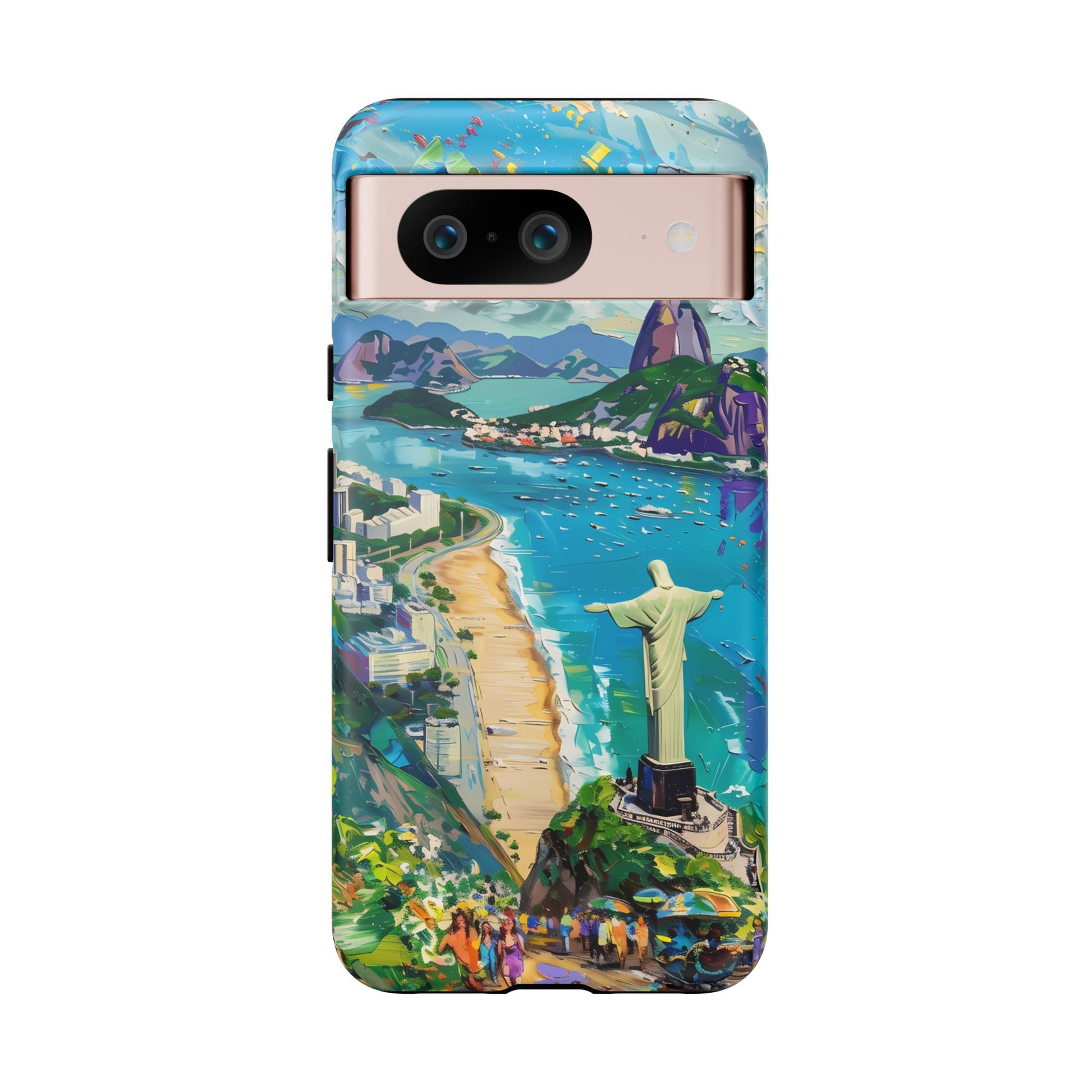 Step into the sun-drenched world of Rio de Janeiro with the "Copacabana Dreams" phone cover. This cover showcases a beautiful oil painting of the Christ the Redeemer statue overlooking the bustling Copacabana Beach, with vibrant Carnival scenes adding a splash of color and joy.