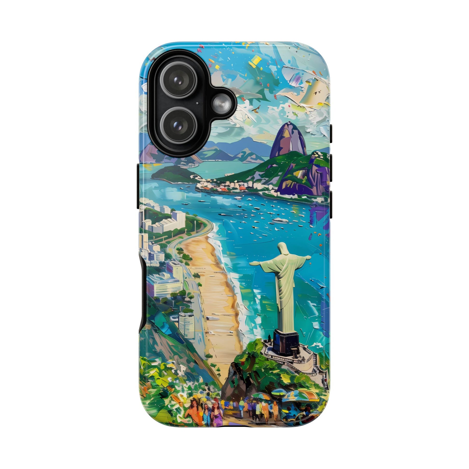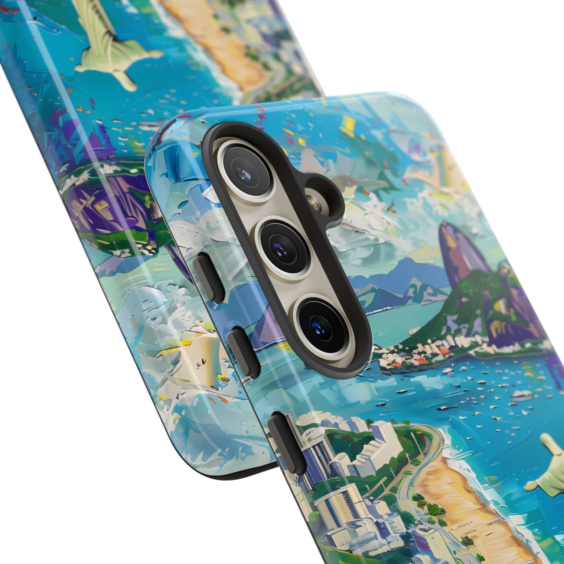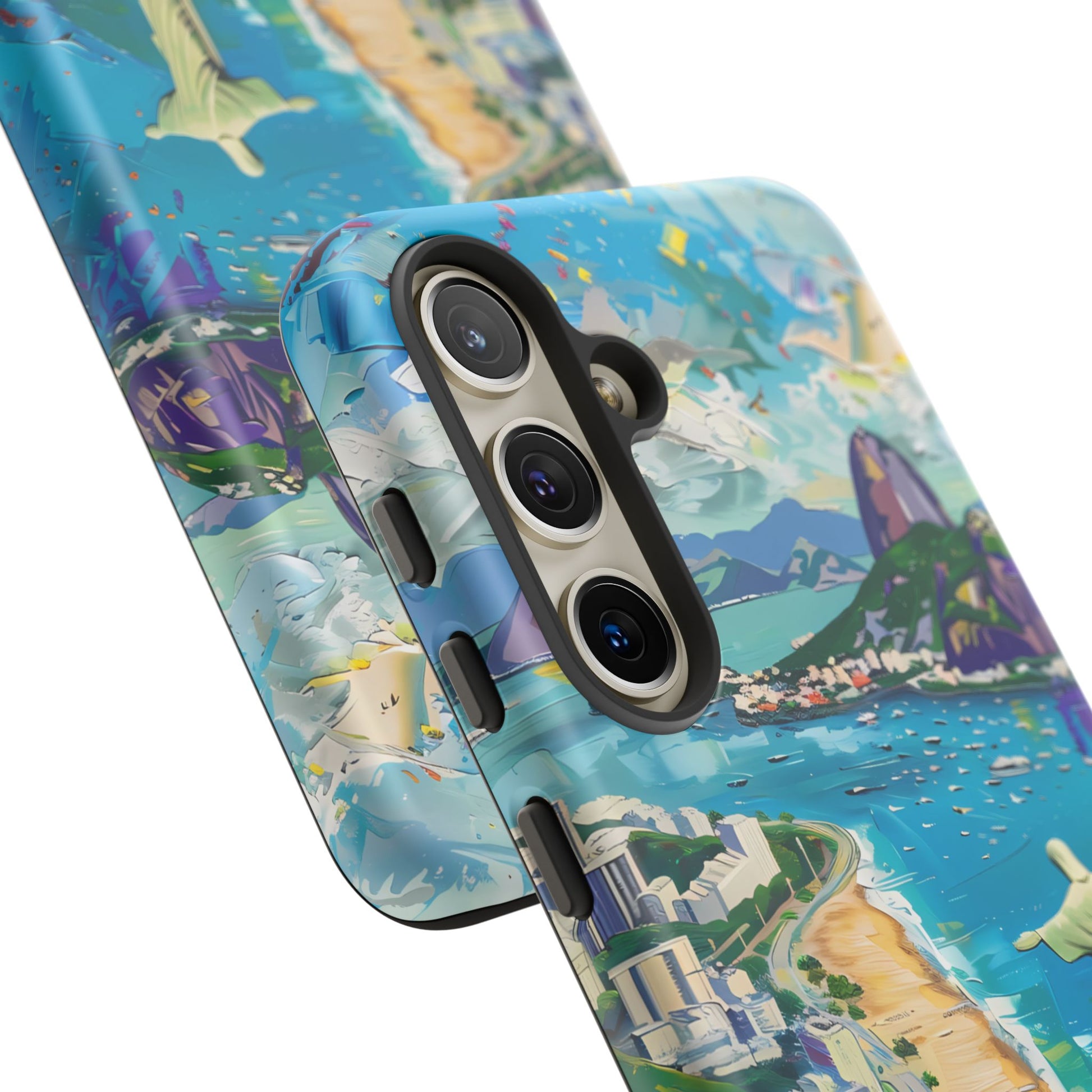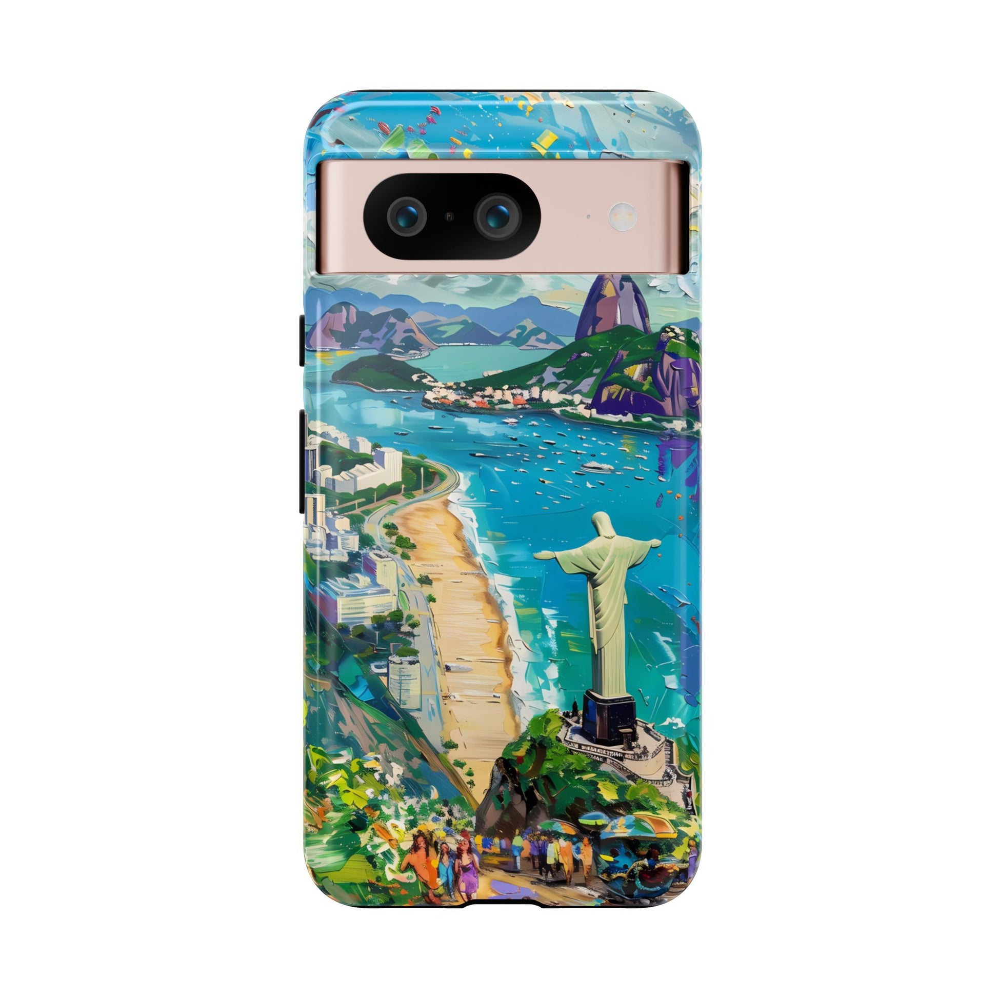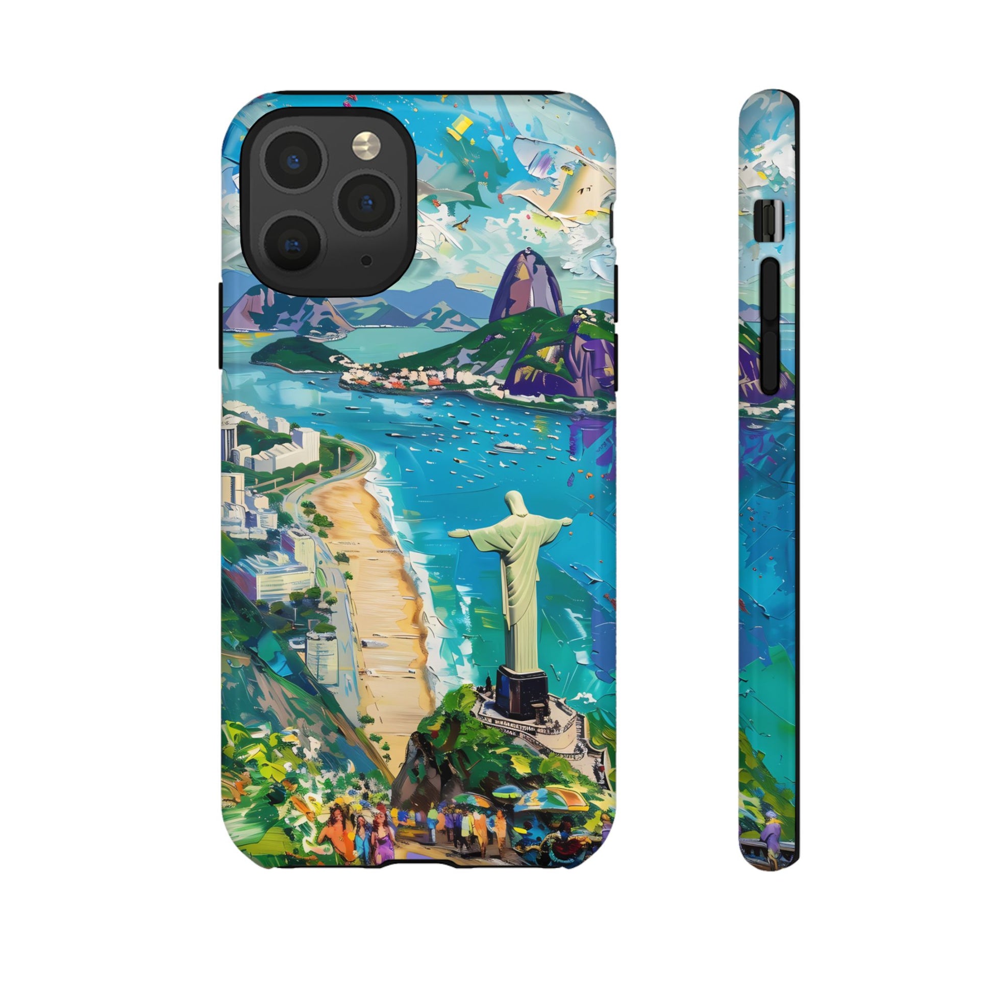 Step into the sun-drenched world of Rio de Janeiro with the "Copacabana Dreams" phone cover. This cover showcases a beautiful oil painting of the Christ the Redeemer statue overlooking the bustling Copacabana Beach, with vibrant Carnival scenes adding a splash of color and joy.