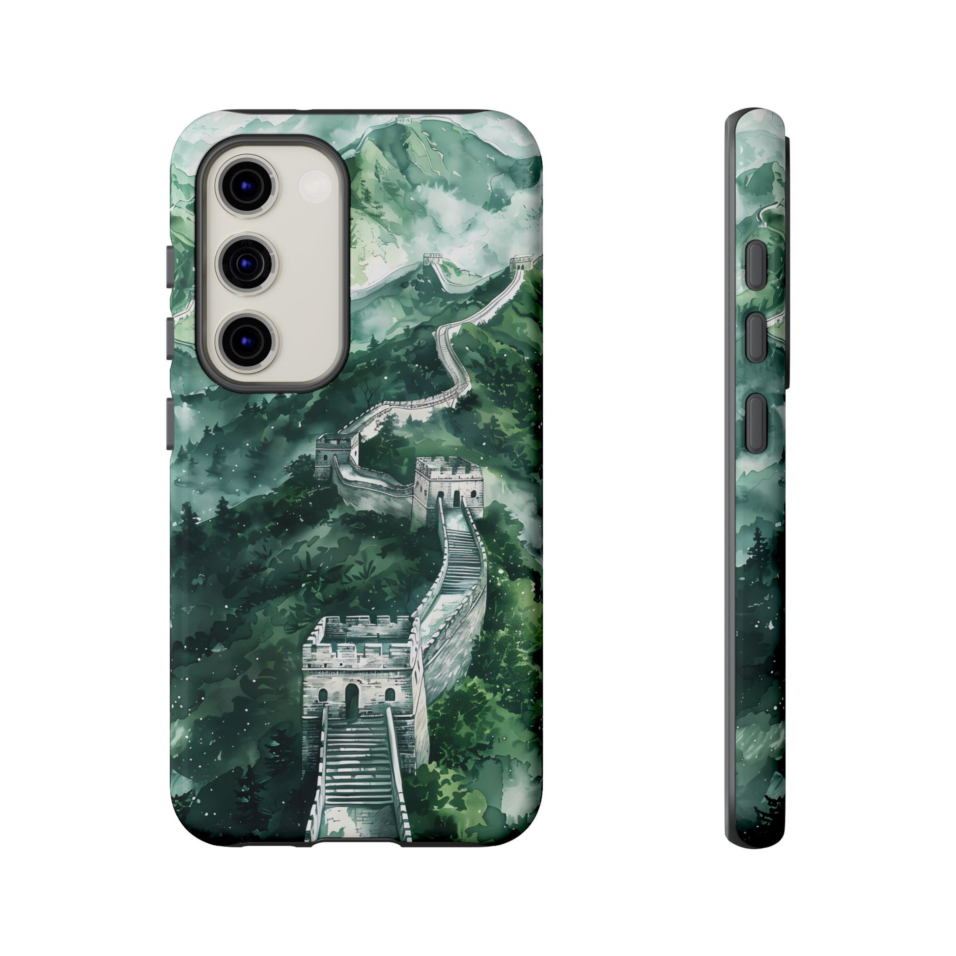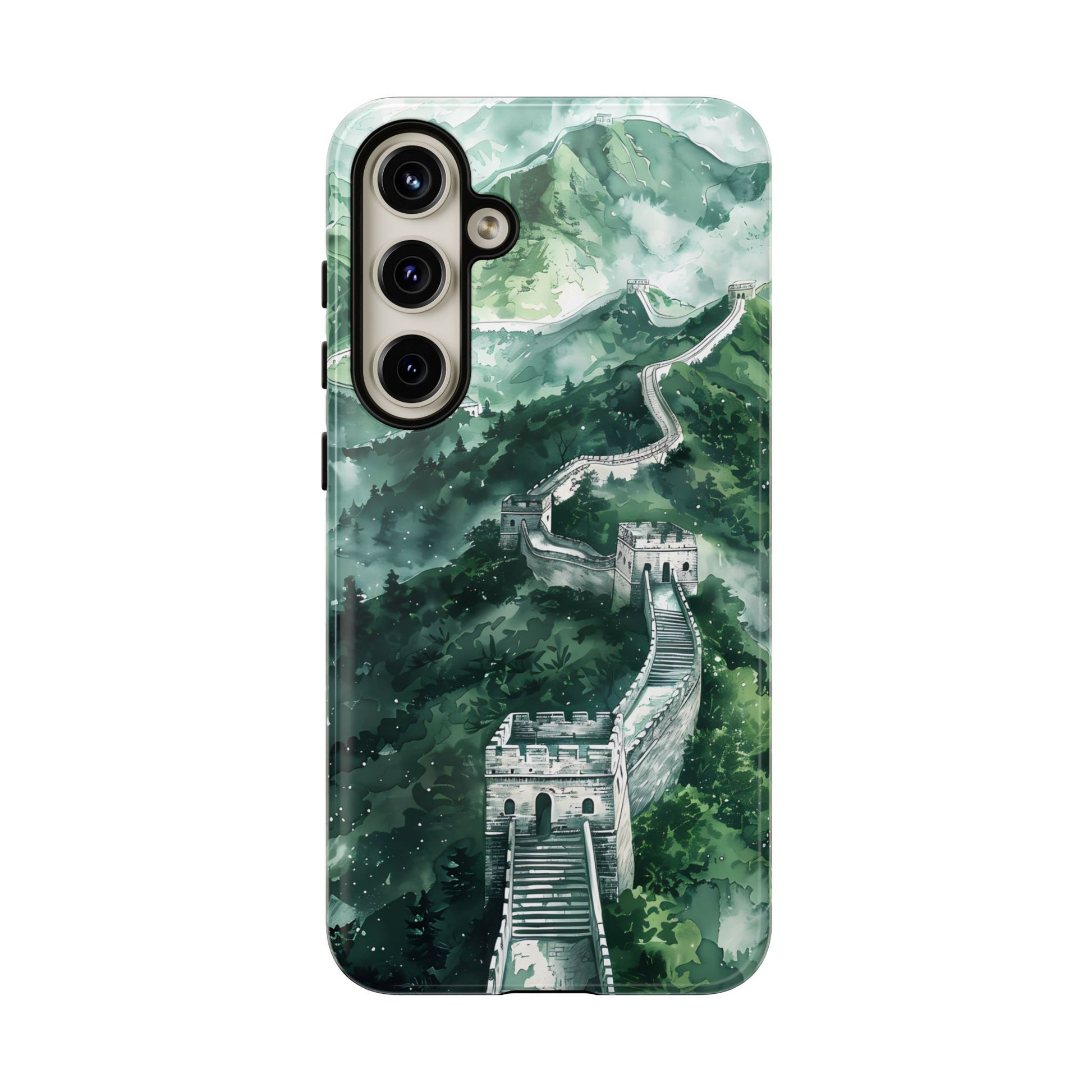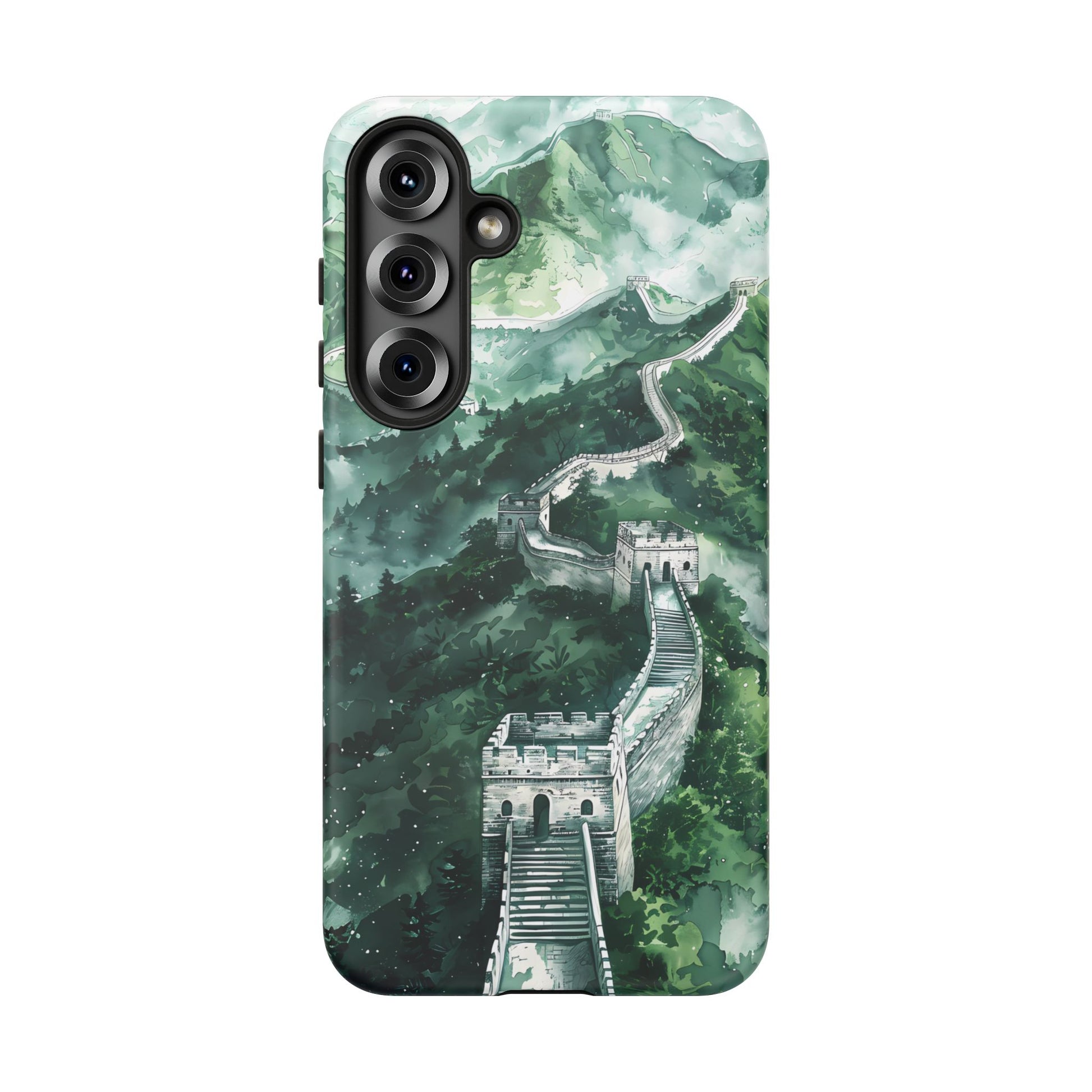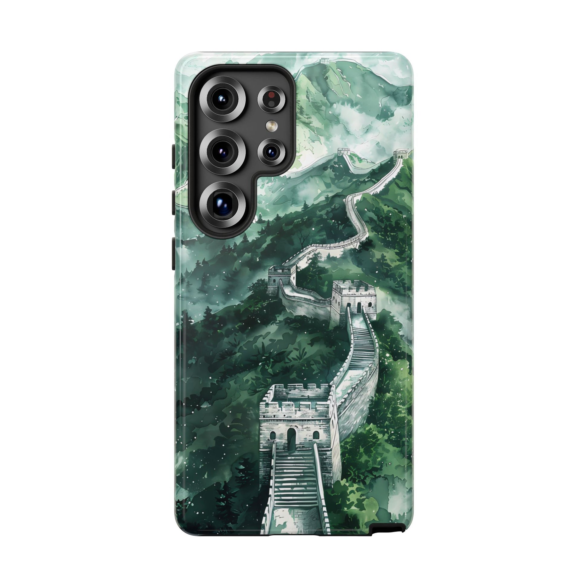 Capture the timeless allure of the Great Wall of China with this striking cell phone cover. The design features a sweeping view of the wall as it winds through the rolling green mountains, embodying the endless journey and rich history of this ancient wonder.