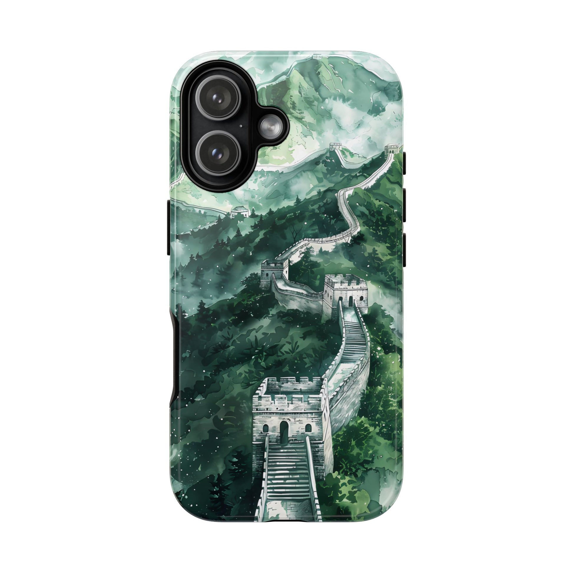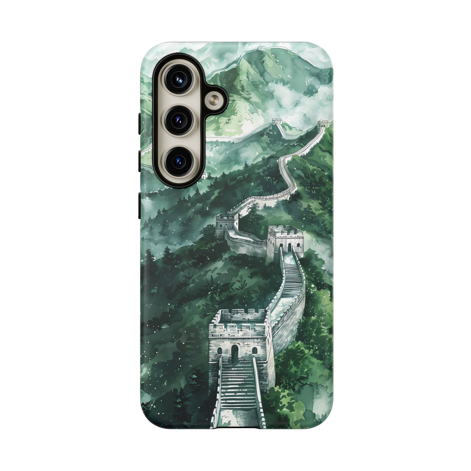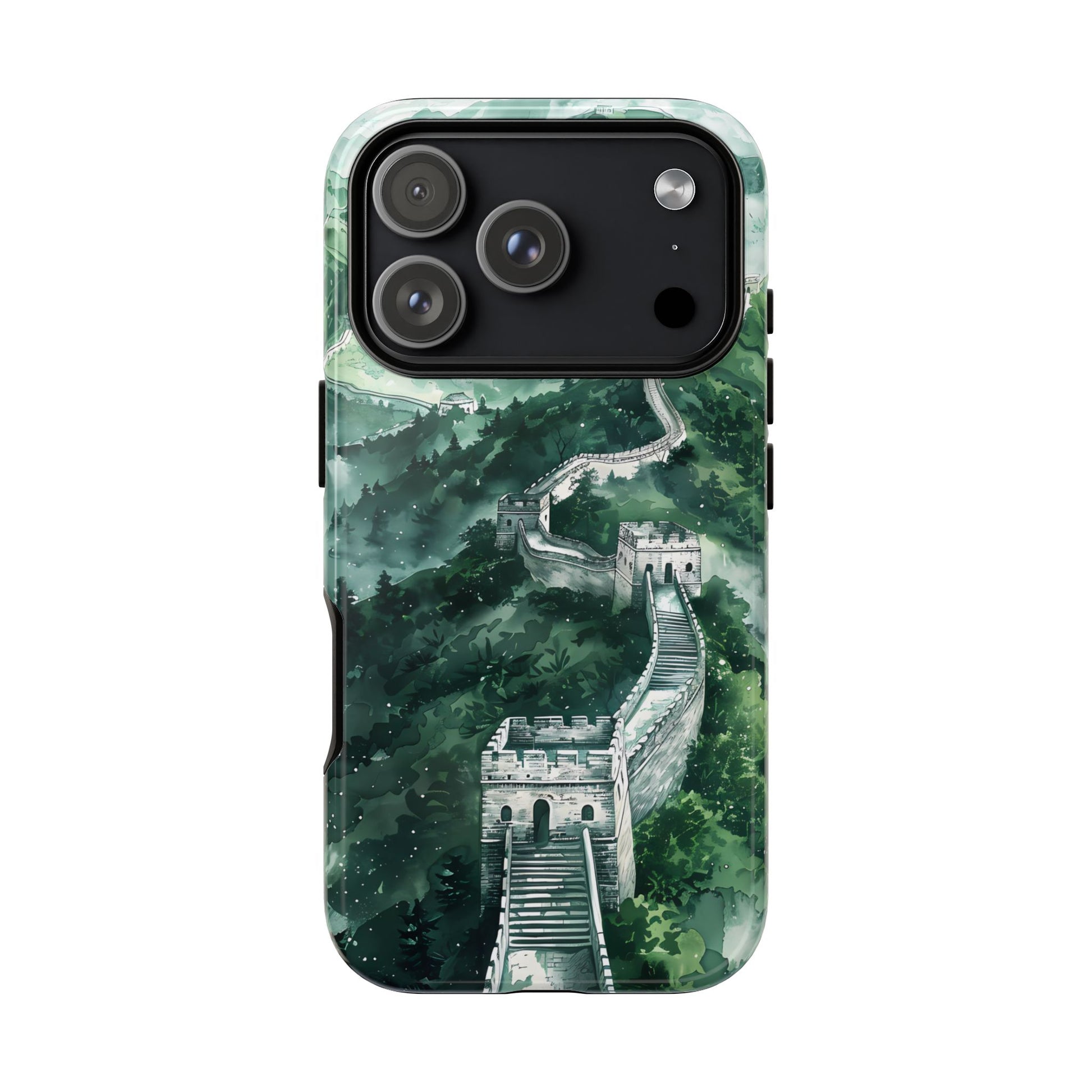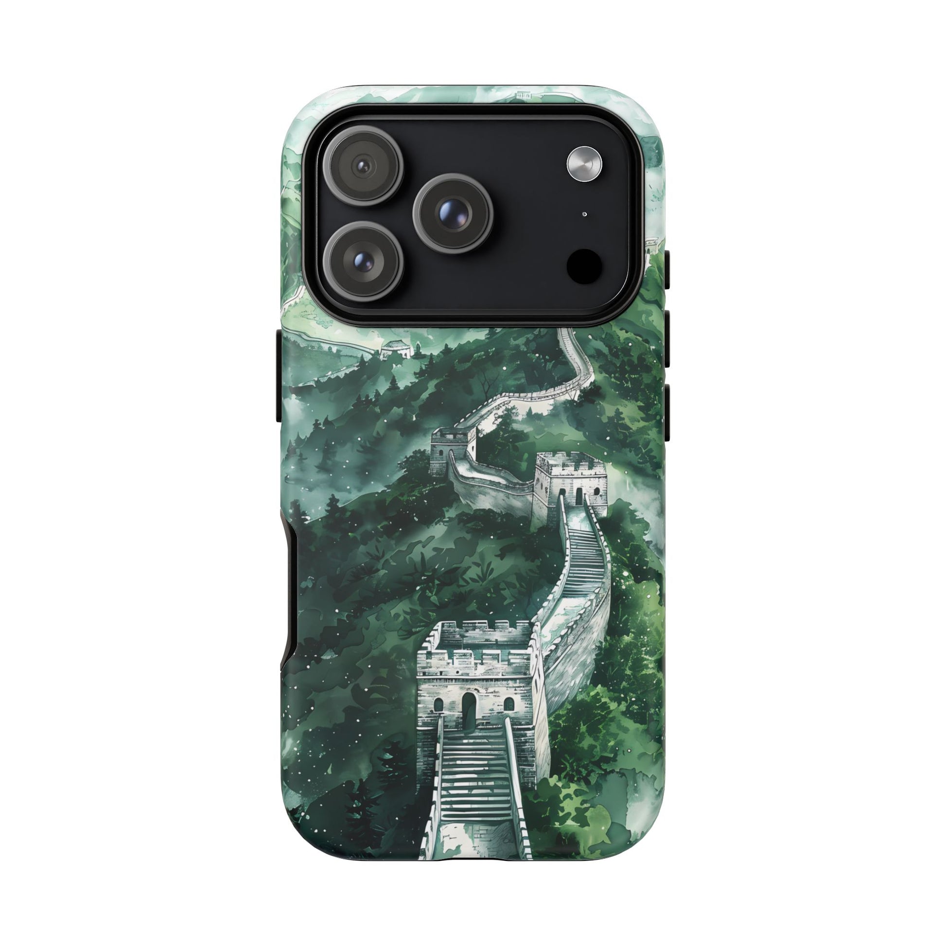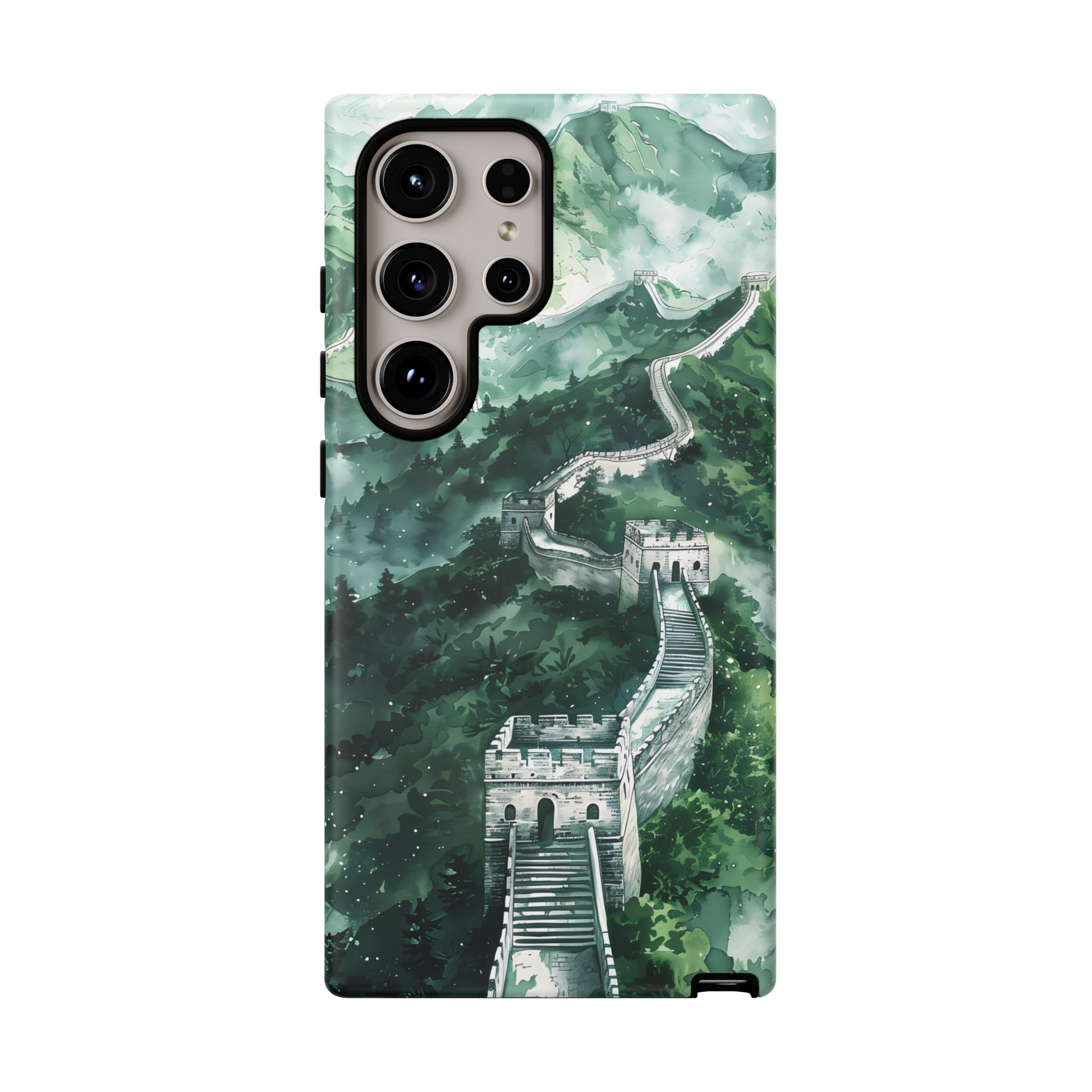 Capture the timeless allure of the Great Wall of China with this striking cell phone cover. The design features a sweeping view of the wall as it winds through the rolling green mountains, embodying the endless journey and rich history of this ancient wonder.