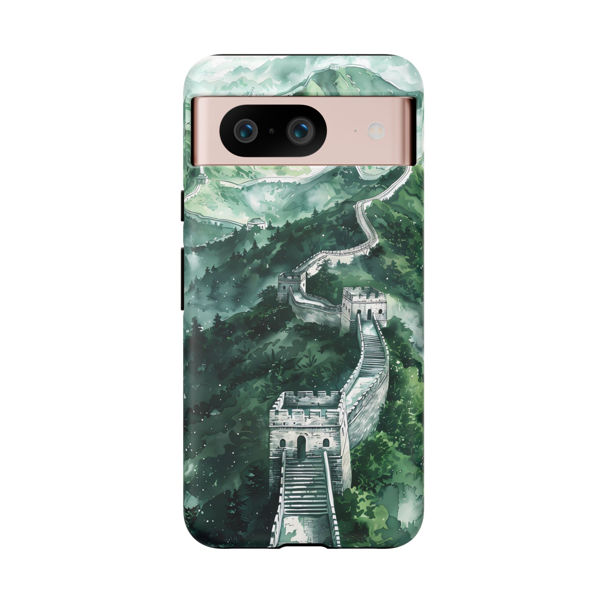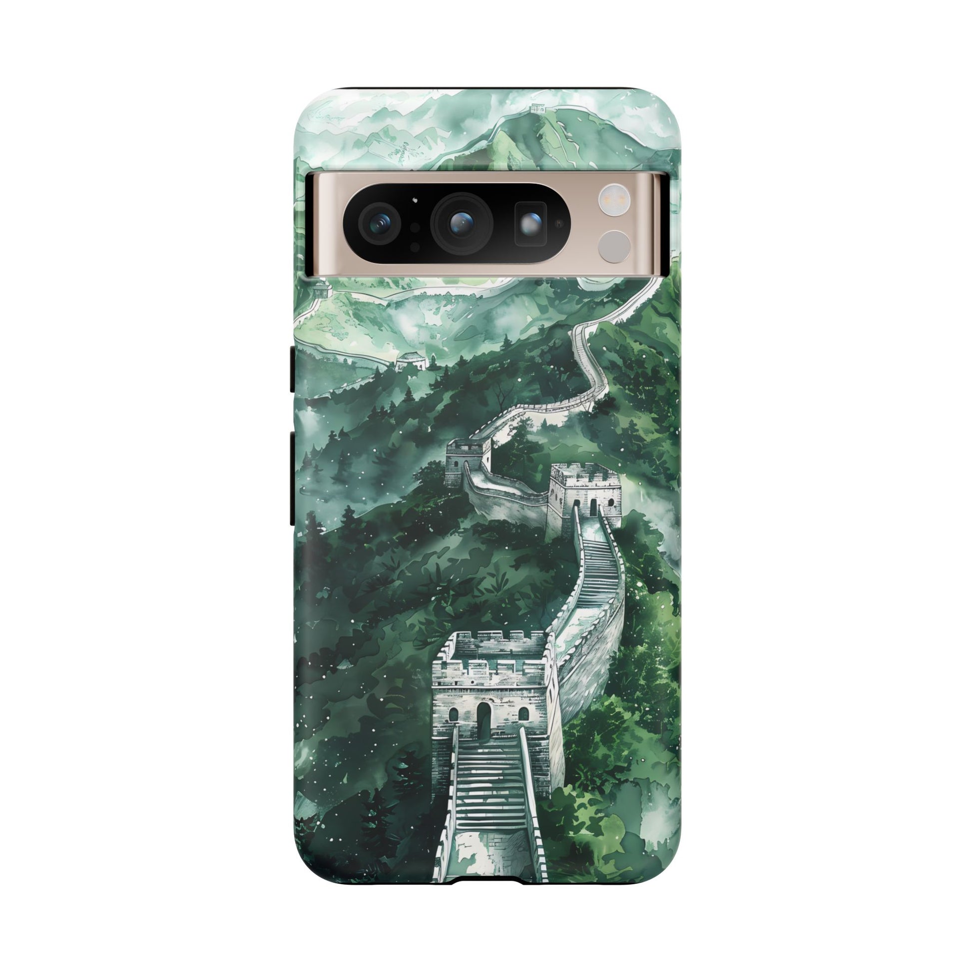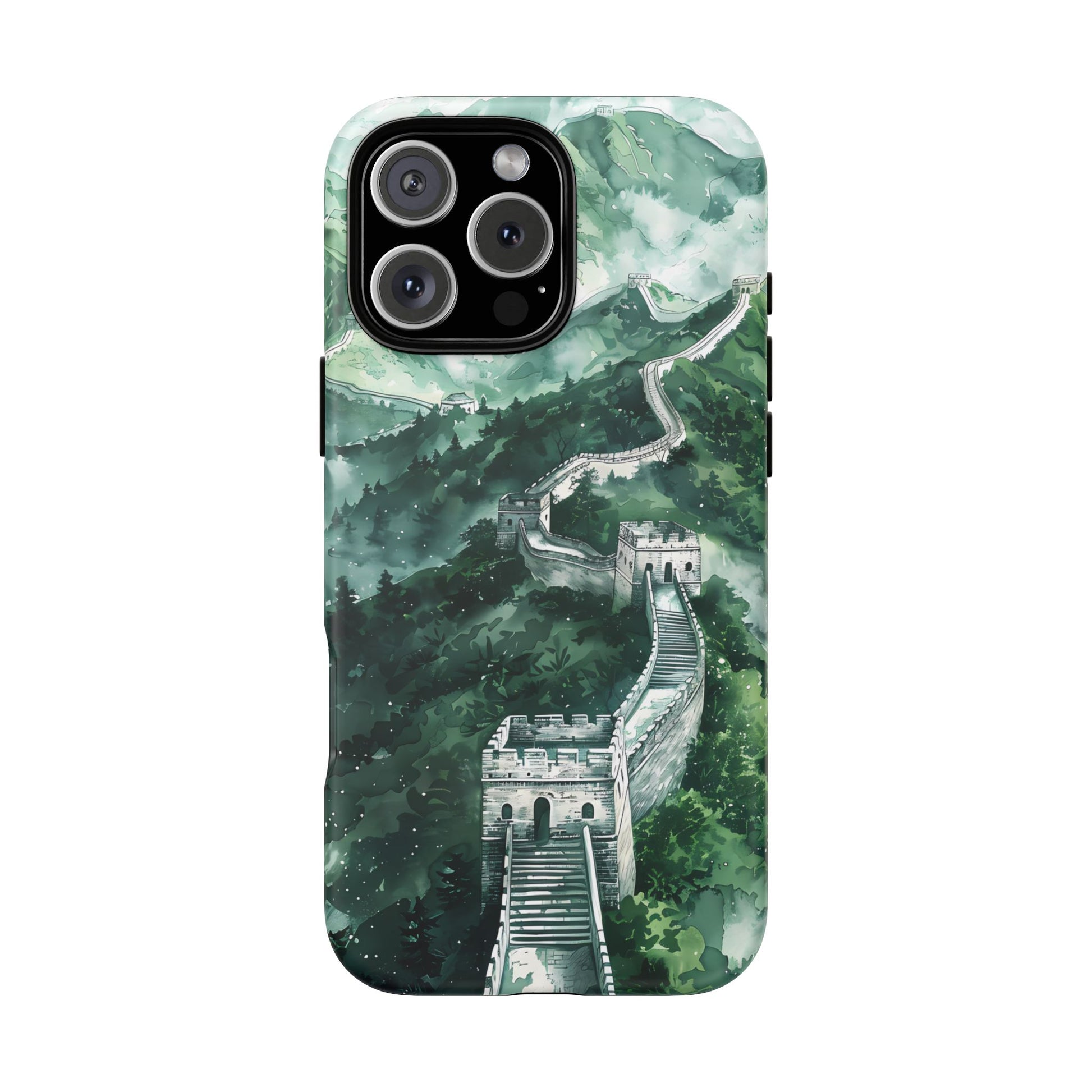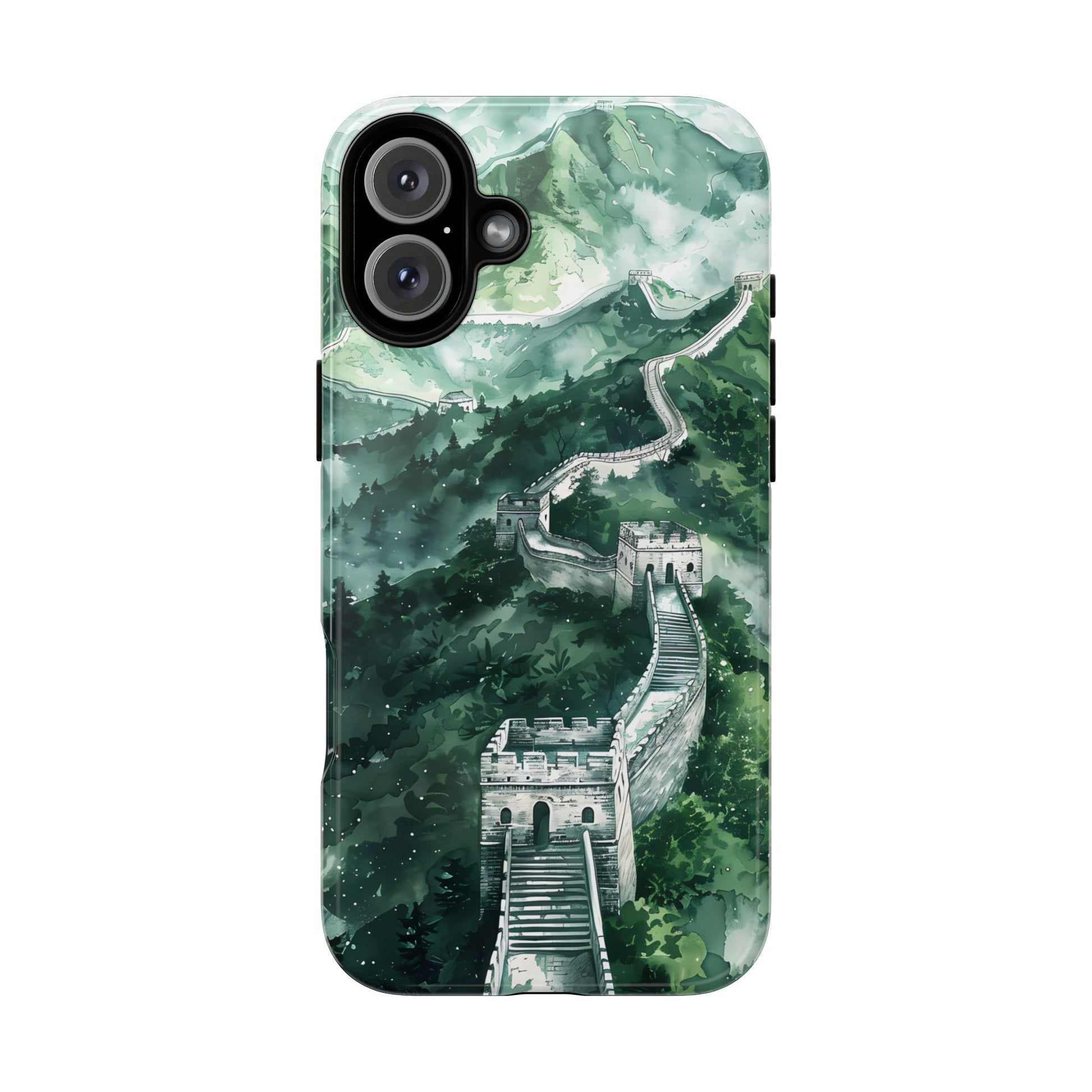 Capture the timeless allure of the Great Wall of China with this striking cell phone cover. The design features a sweeping view of the wall as it winds through the rolling green mountains, embodying the endless journey and rich history of this ancient wonder.