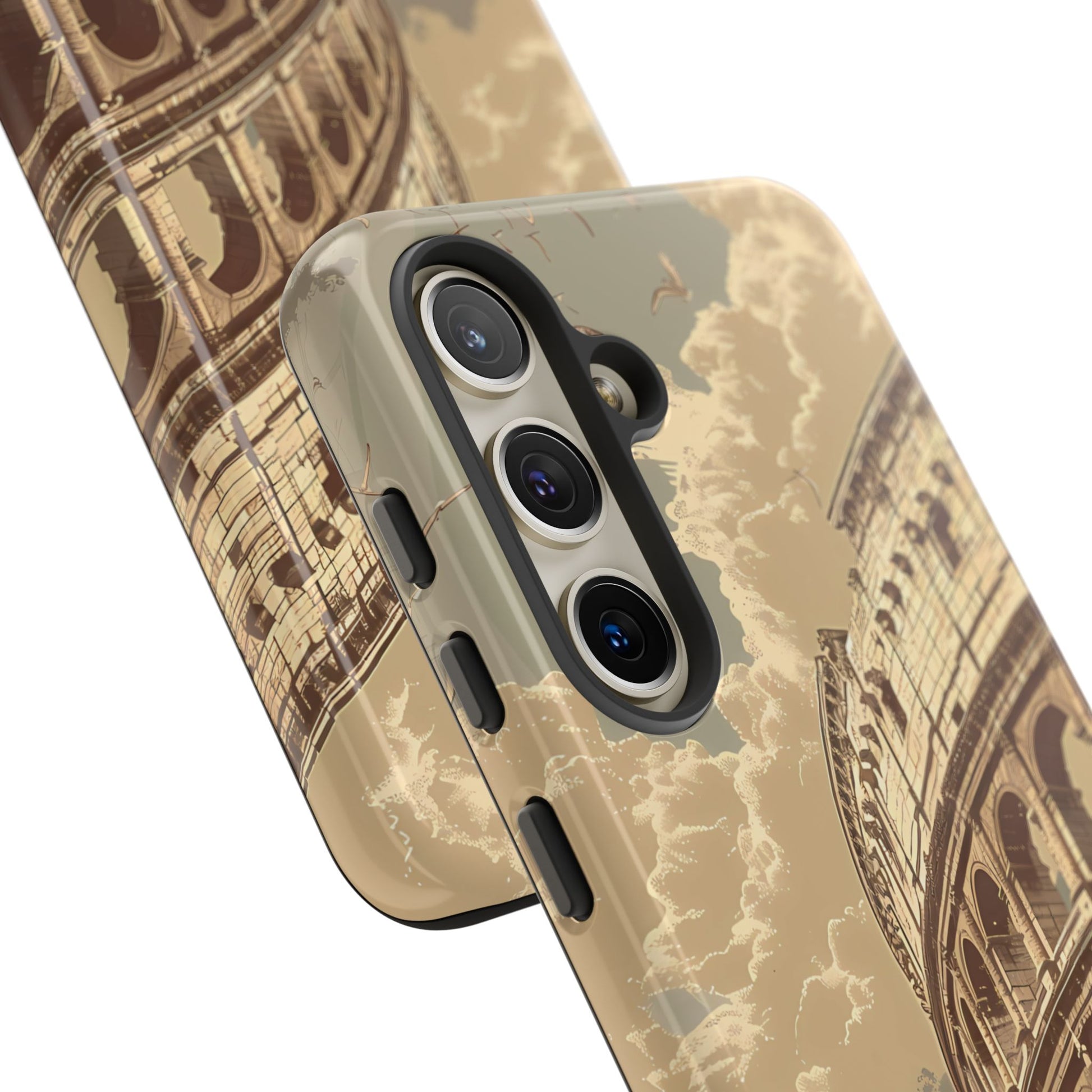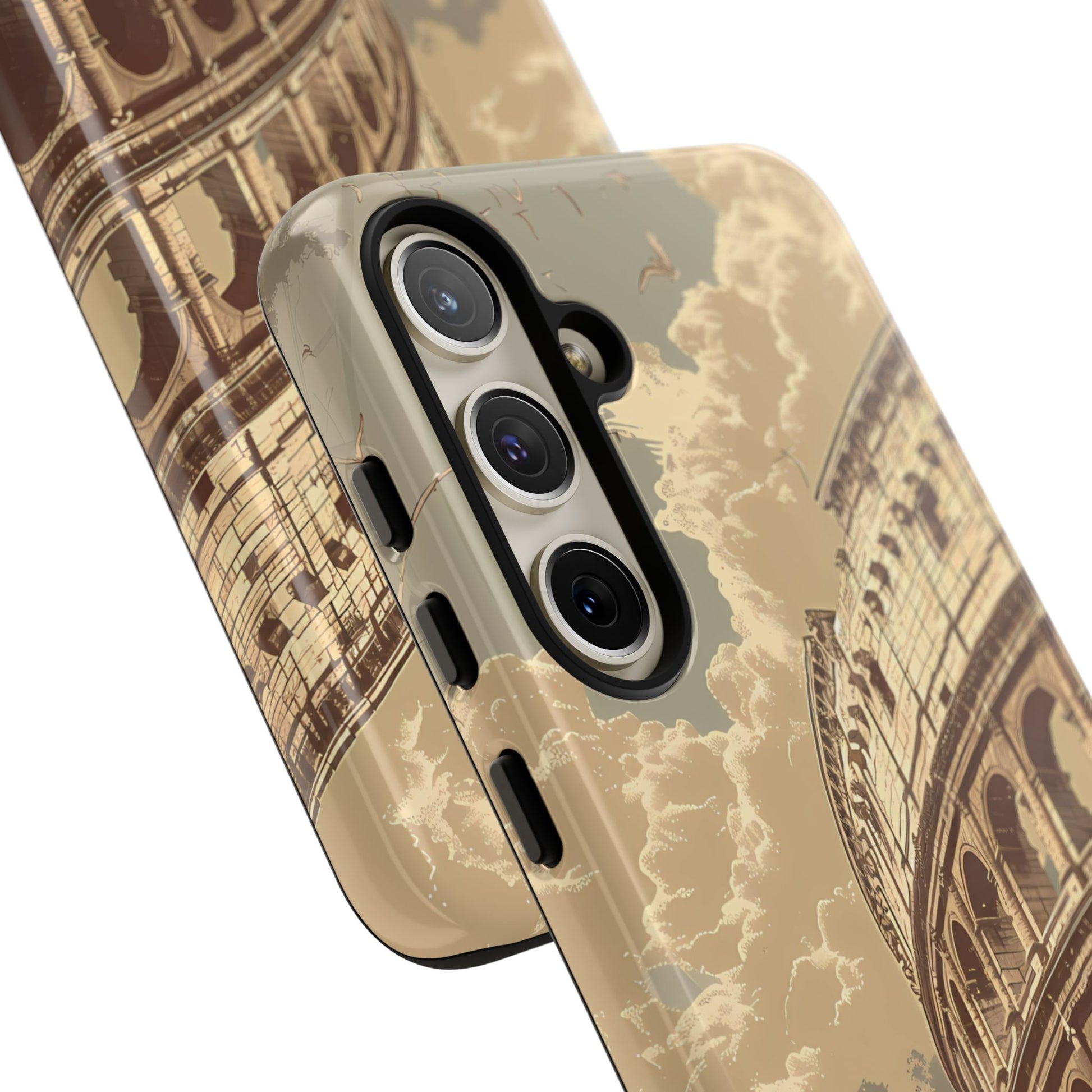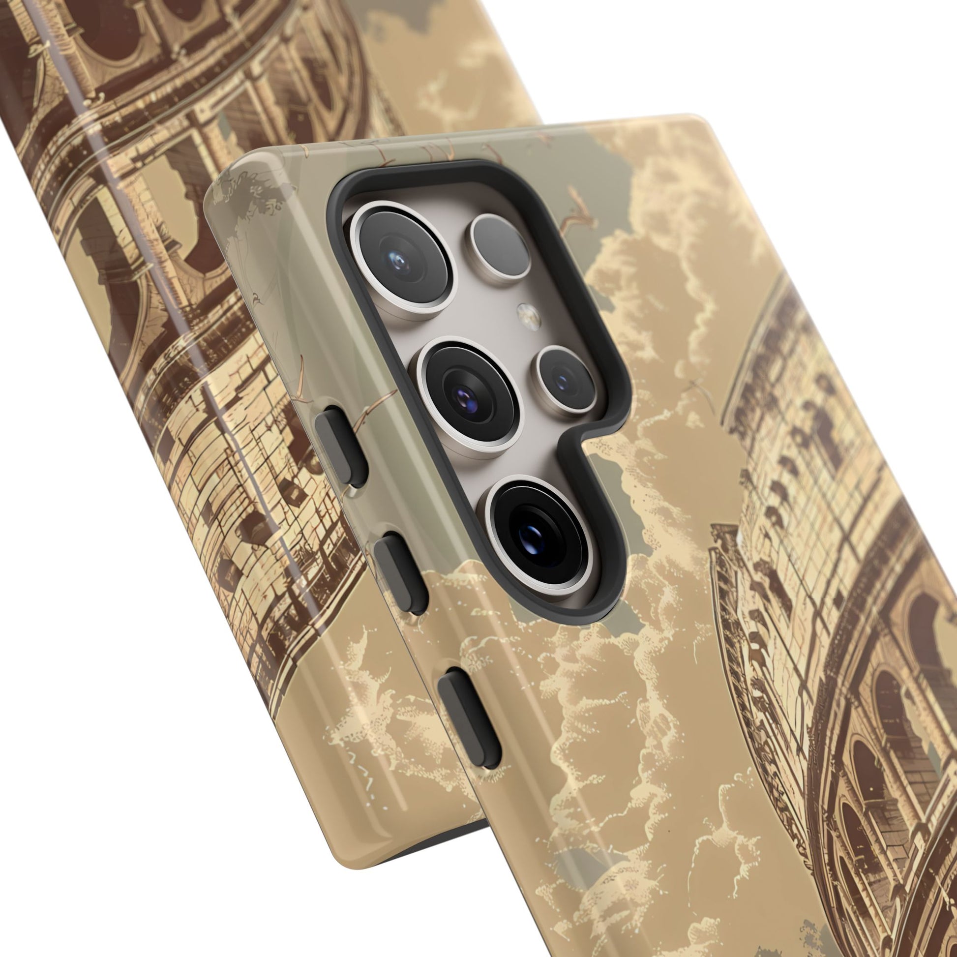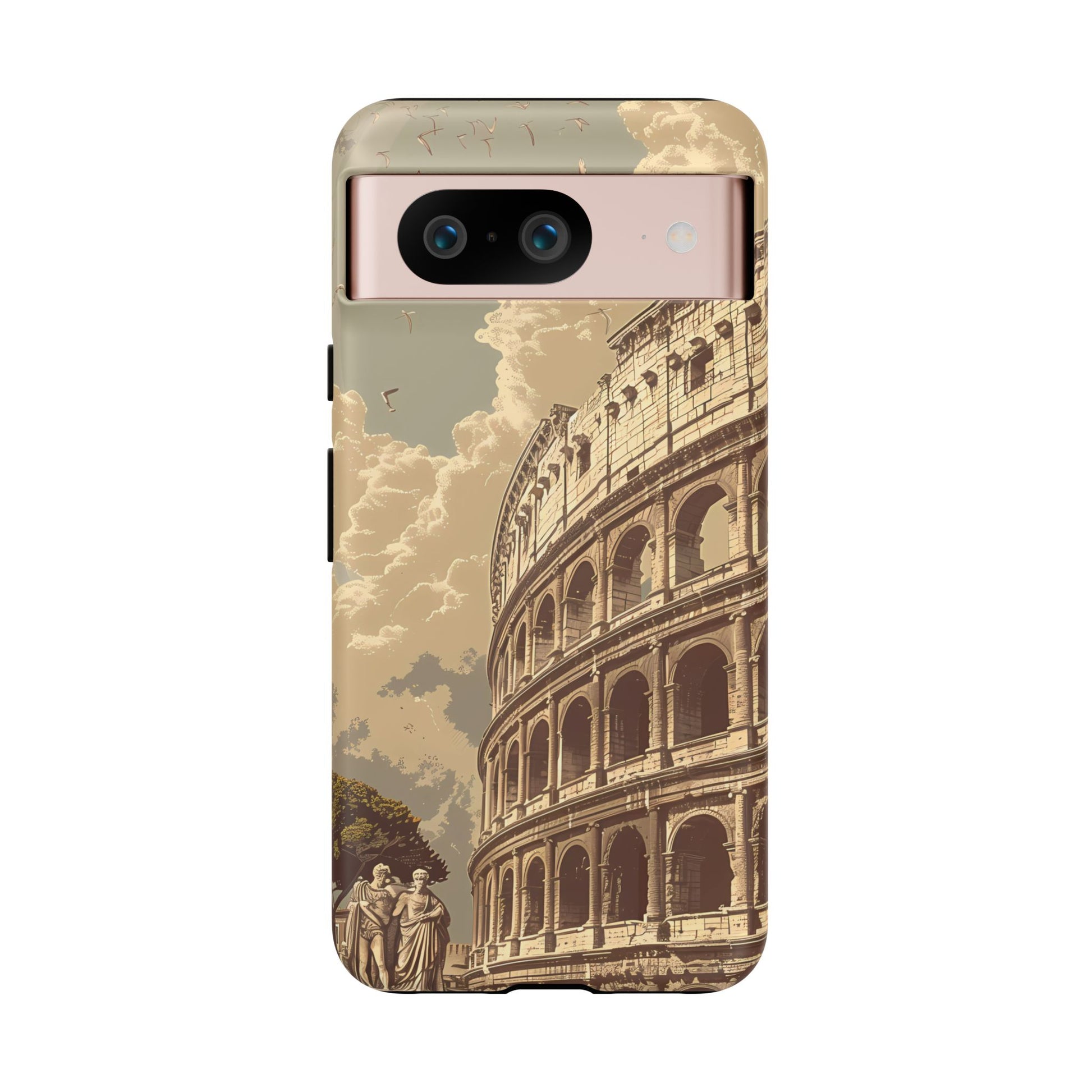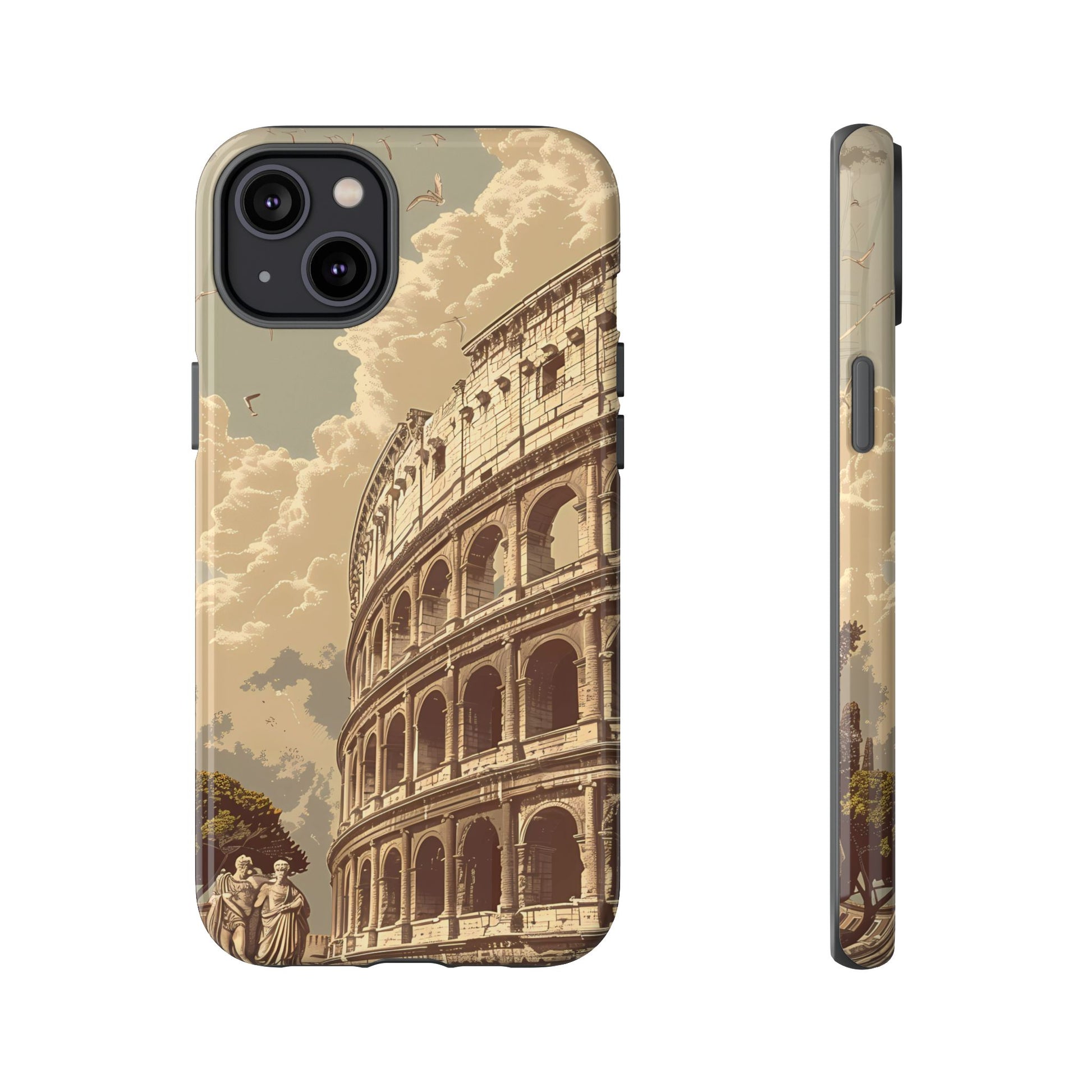 Experience the glory of ancient Rome with this elegant cell phone cover, featuring a classic illustration of the Colosseum. Sepia tones and detailed depictions of Roman statues and architectural elements add depth, creating a design that resonates with historical charm and sophistication.