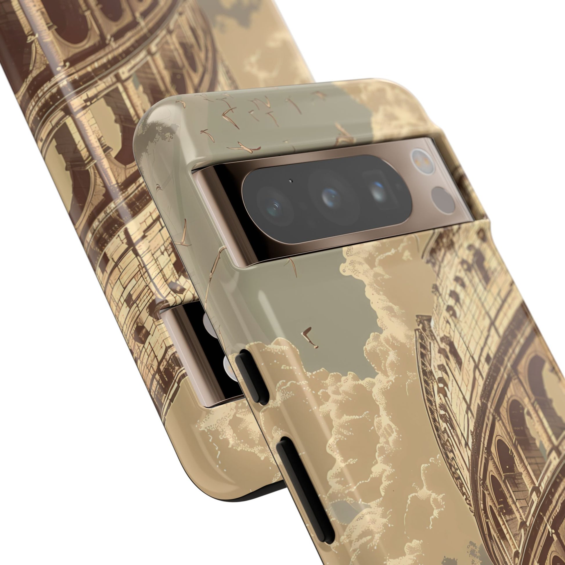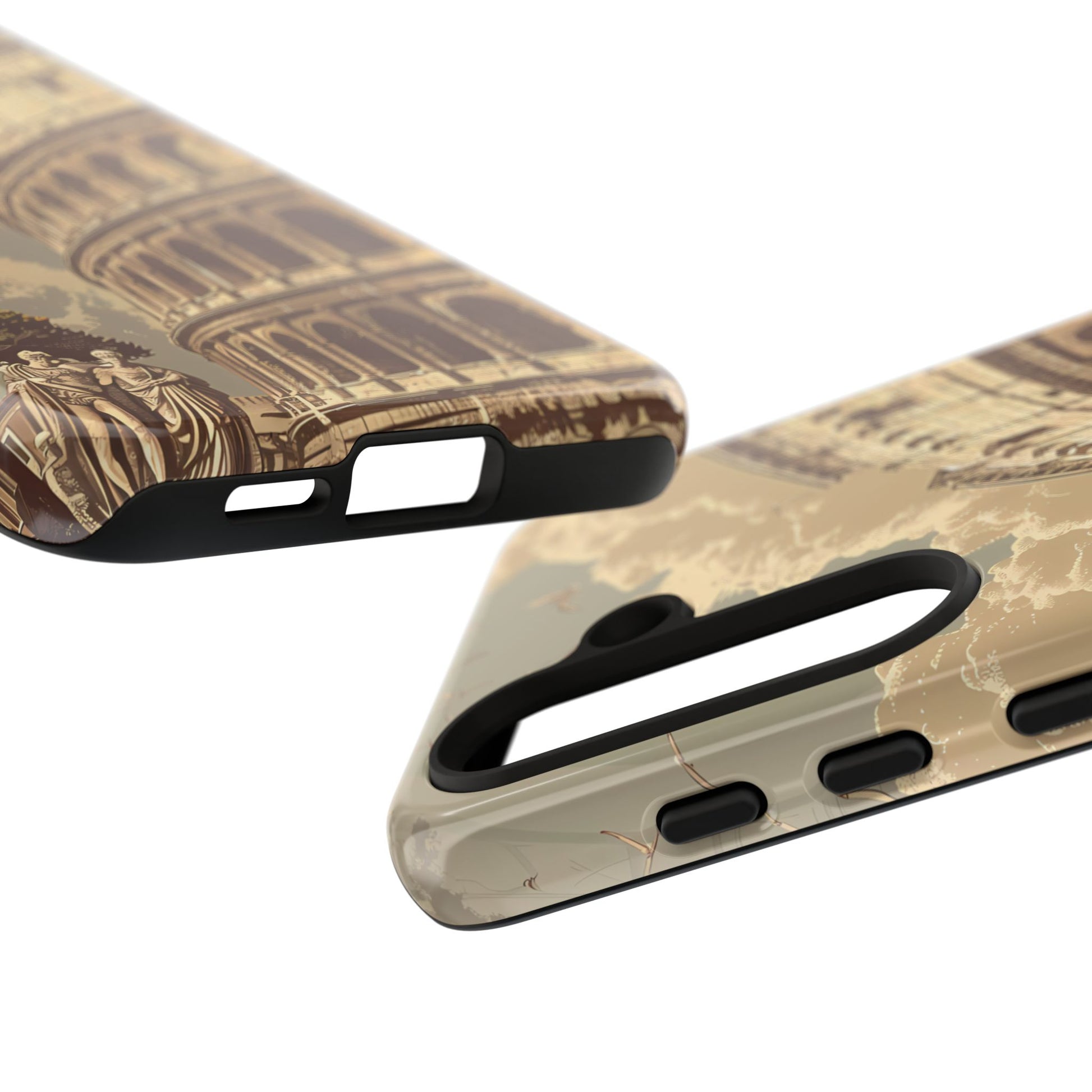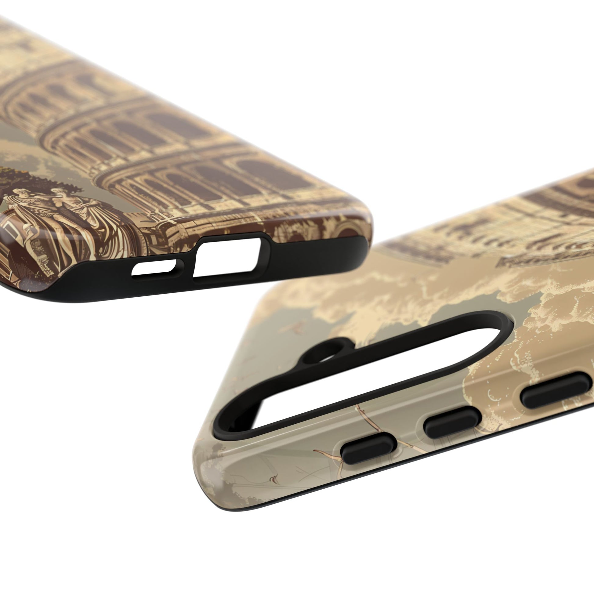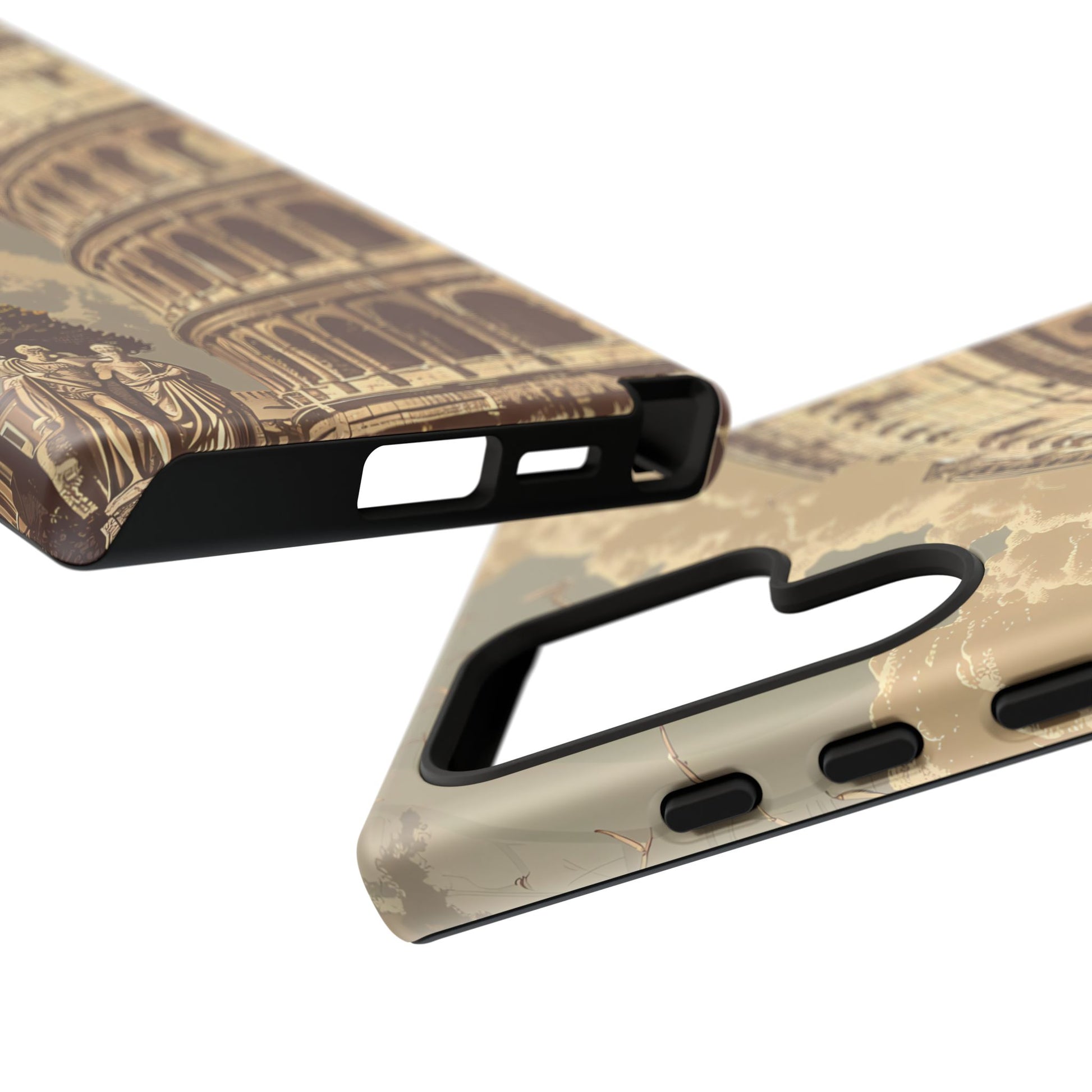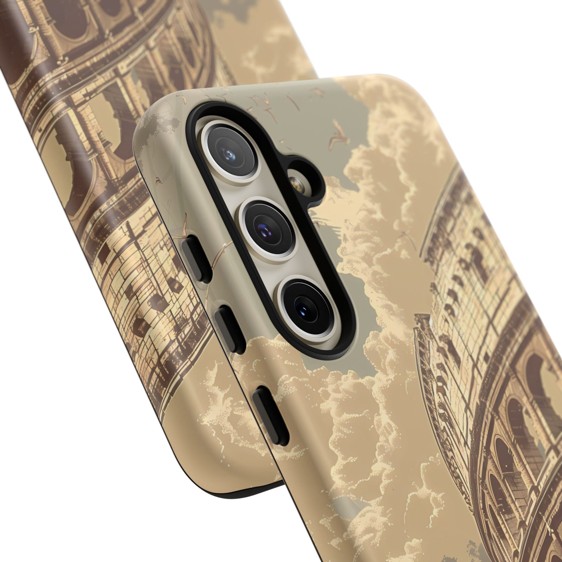 Experience the glory of ancient Rome with this elegant cell phone cover, featuring a classic illustration of the Colosseum. Sepia tones and detailed depictions of Roman statues and architectural elements add depth, creating a design that resonates with historical charm and sophistication.