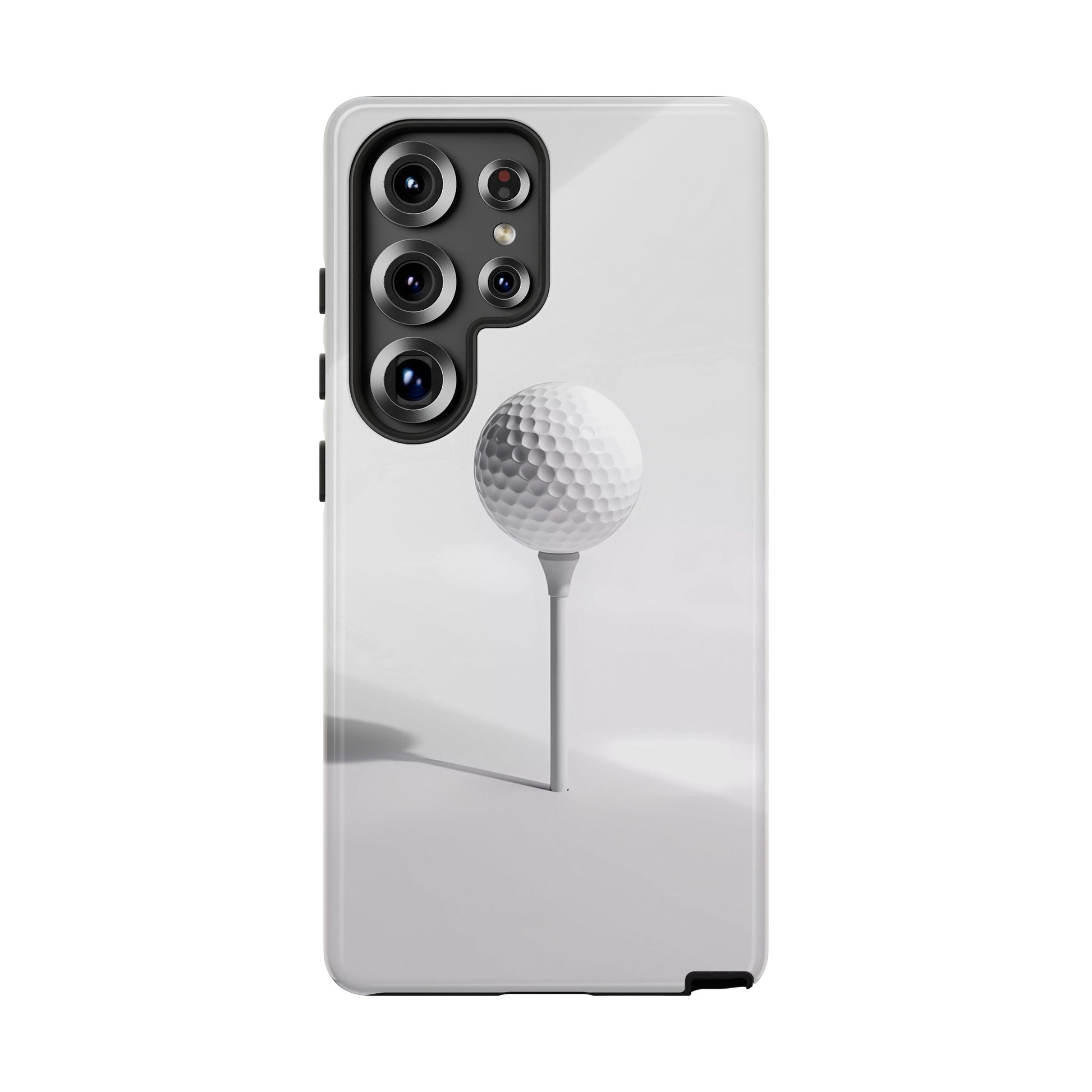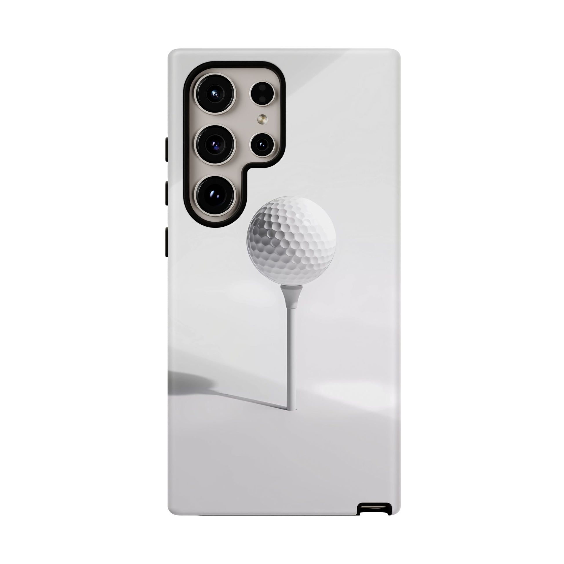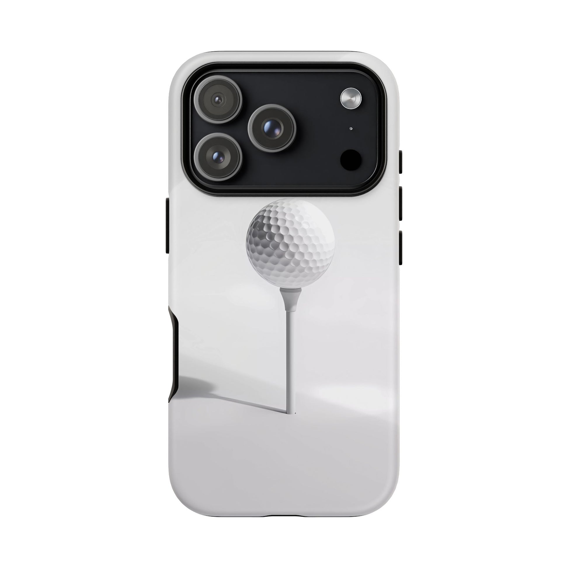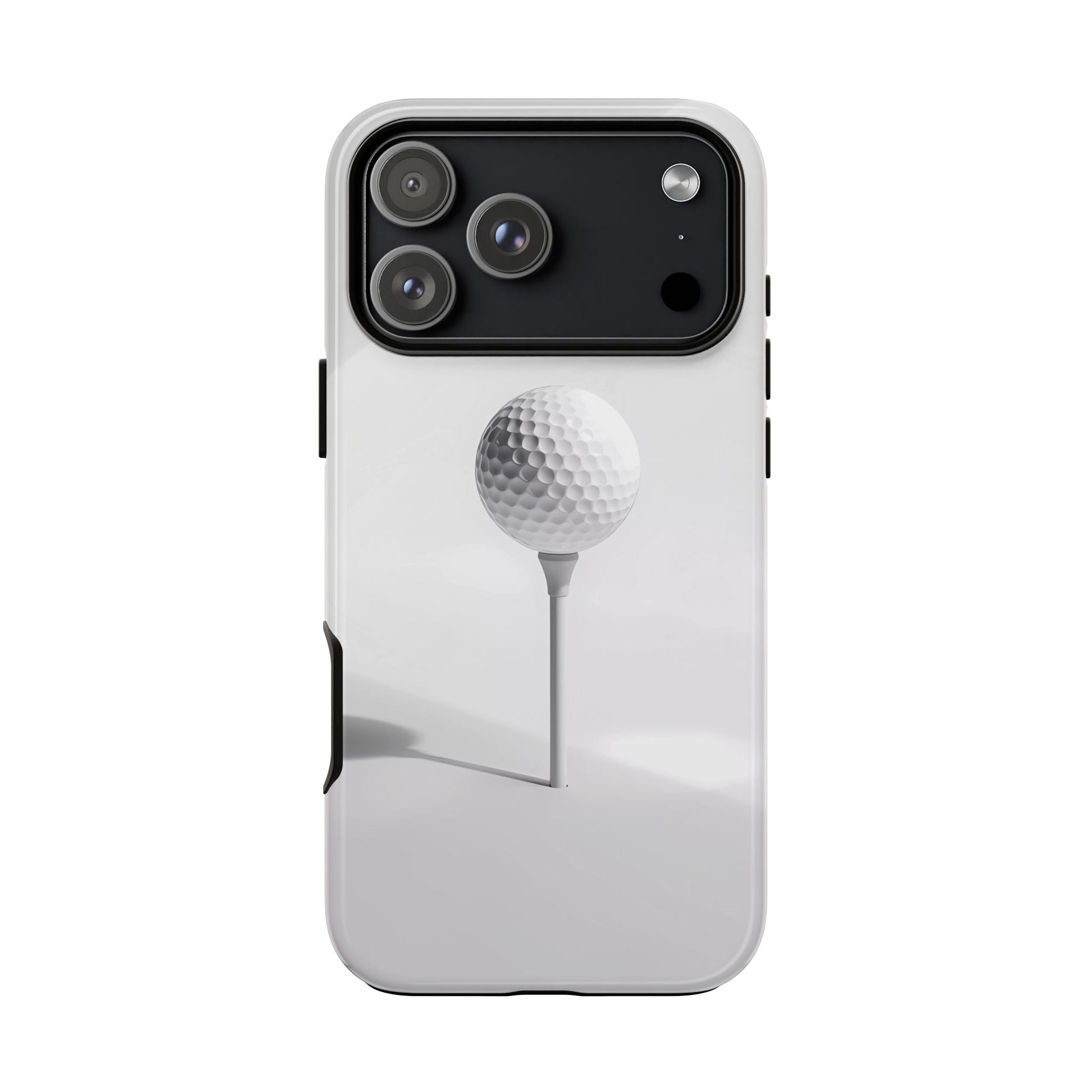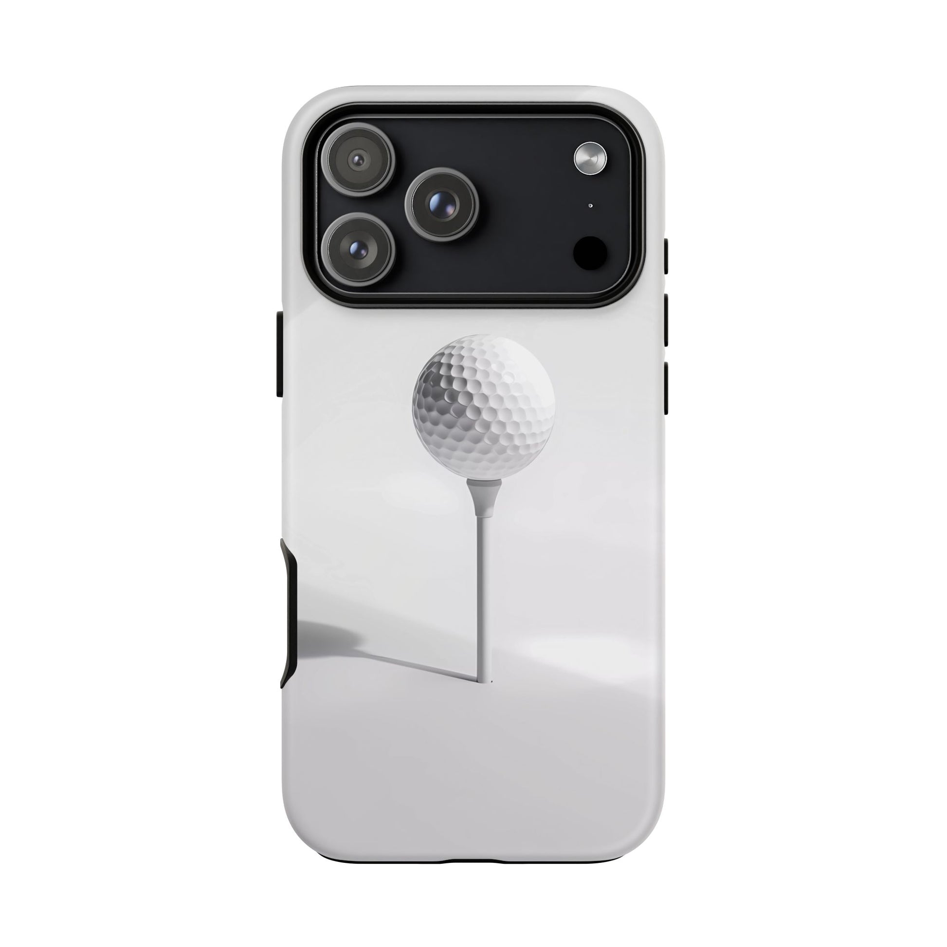This sleek, minimalist design captures the essence of golf with a focused image of a lone golf ball on a tee.