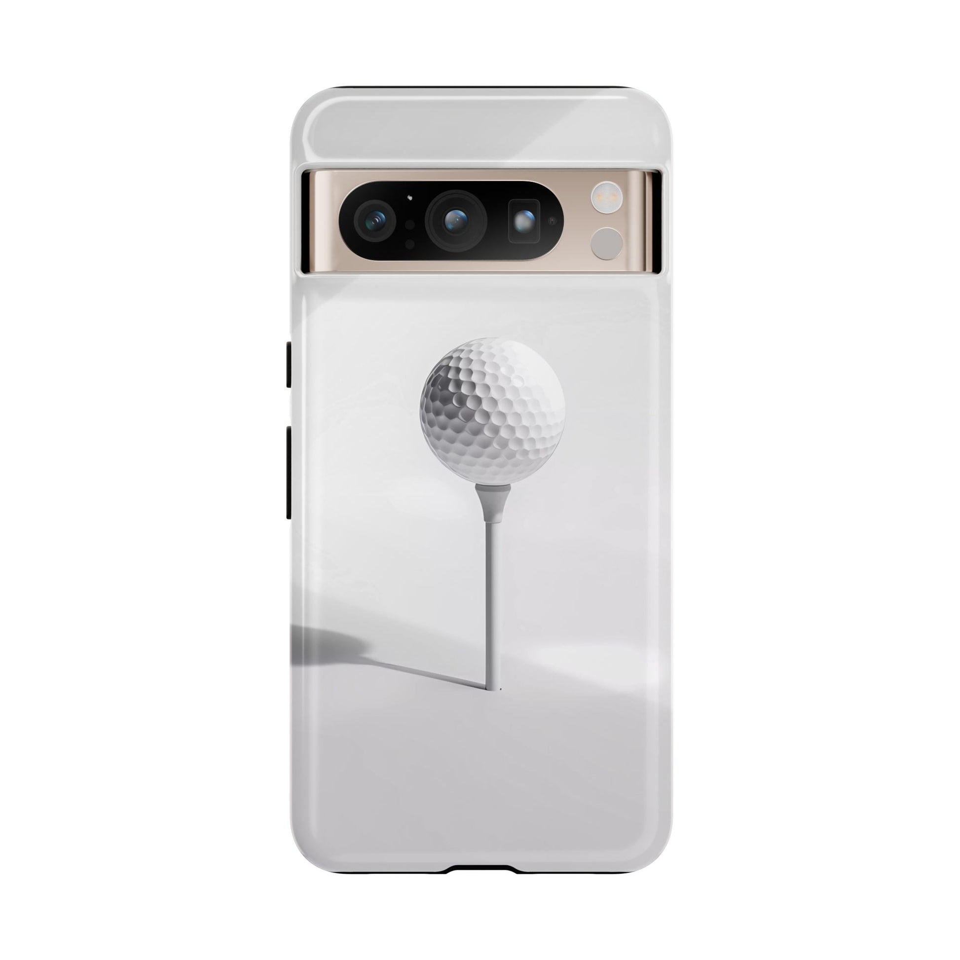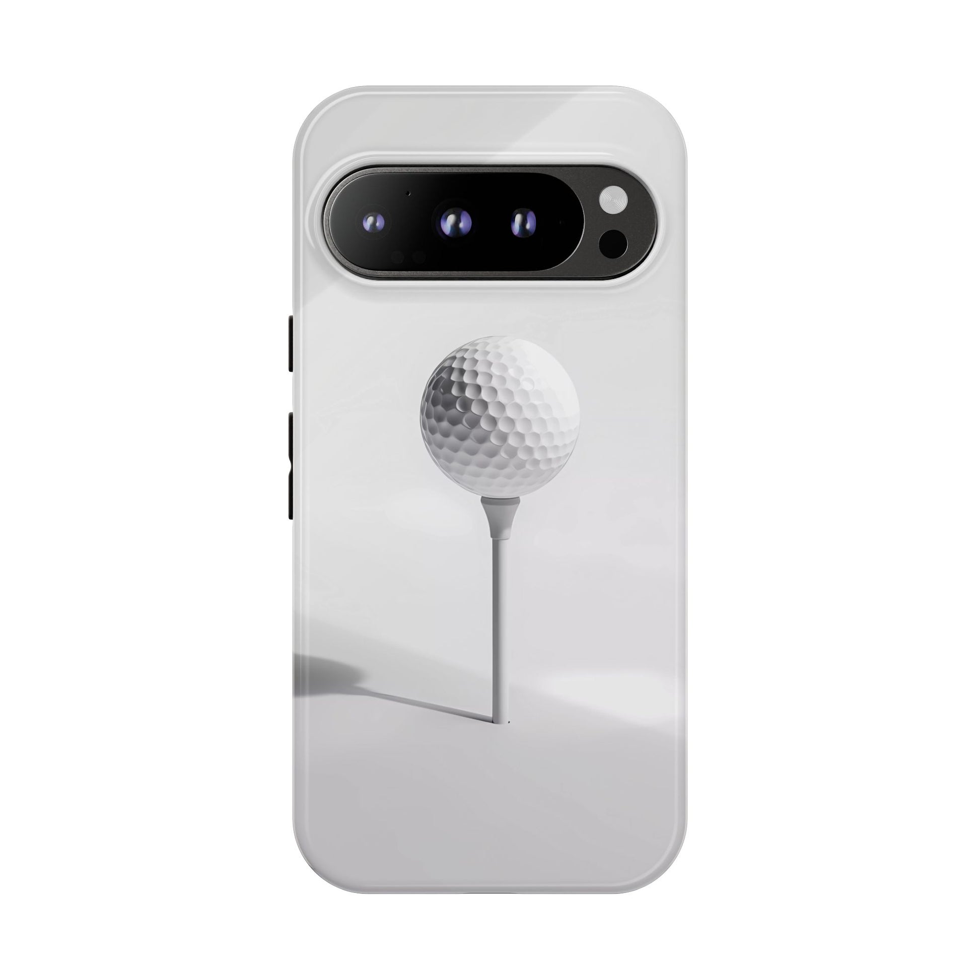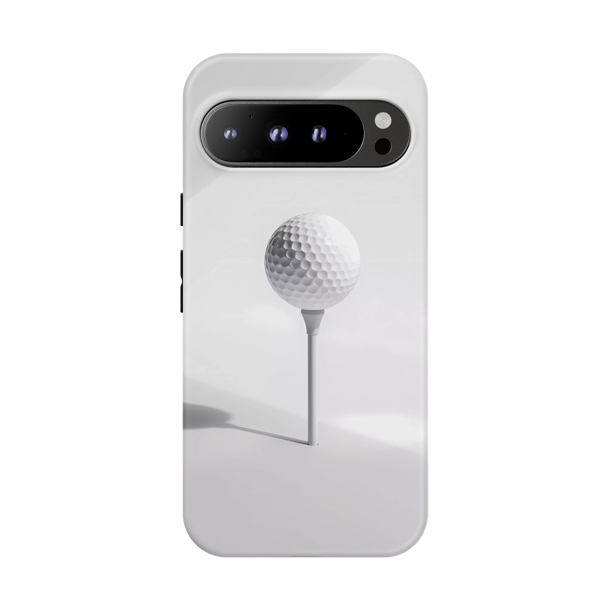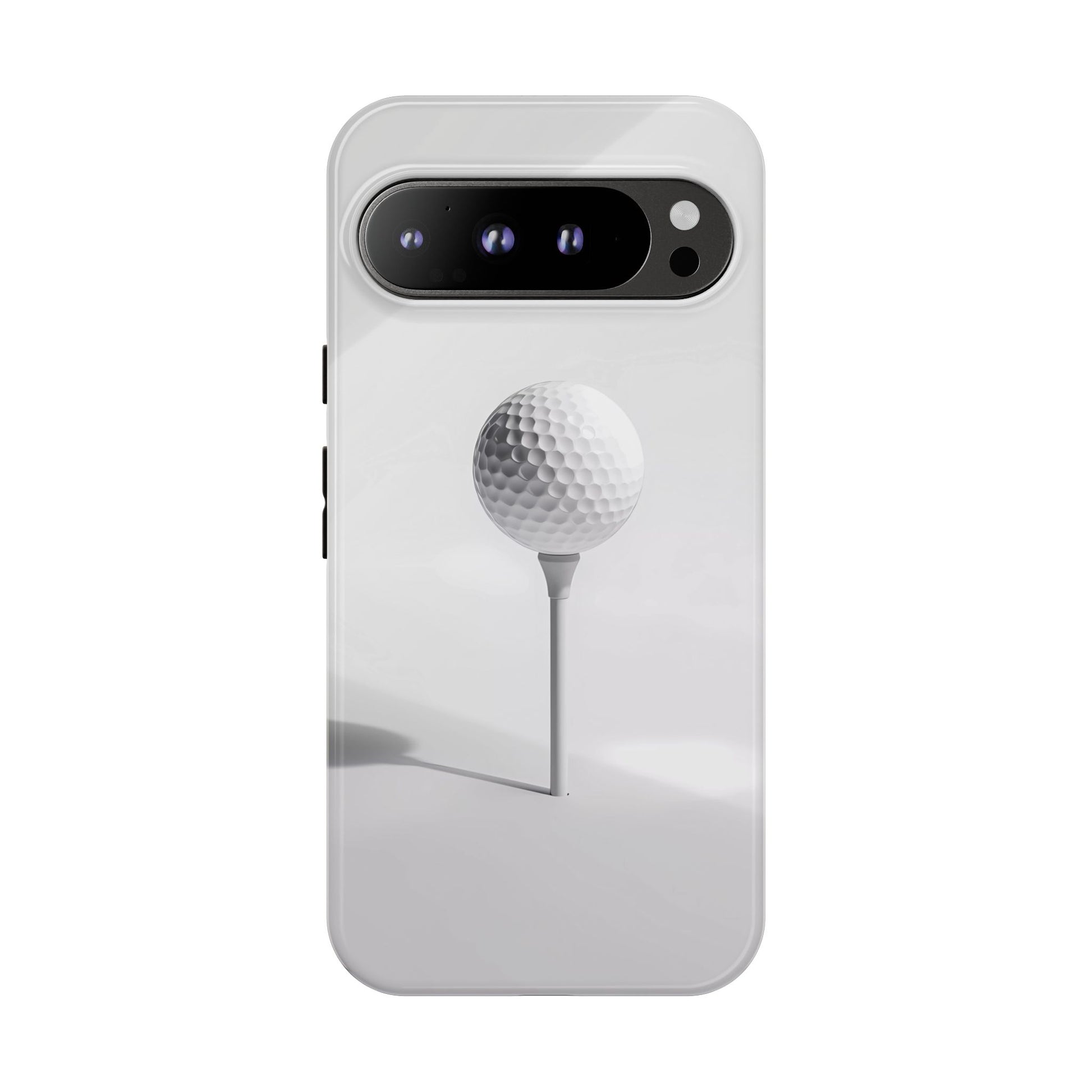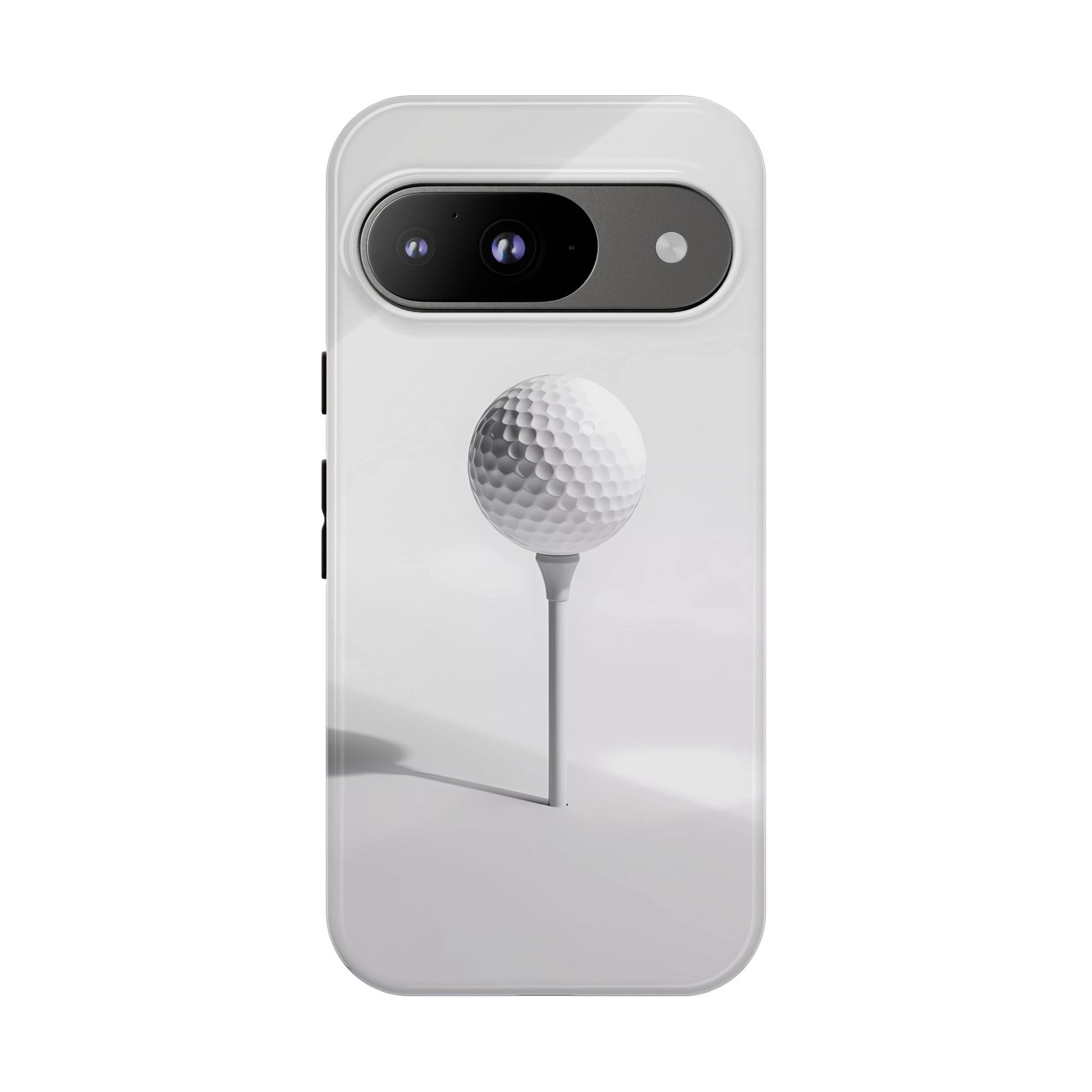 This sleek, minimalist design captures the essence of golf with a focused image of a lone golf ball on a tee.