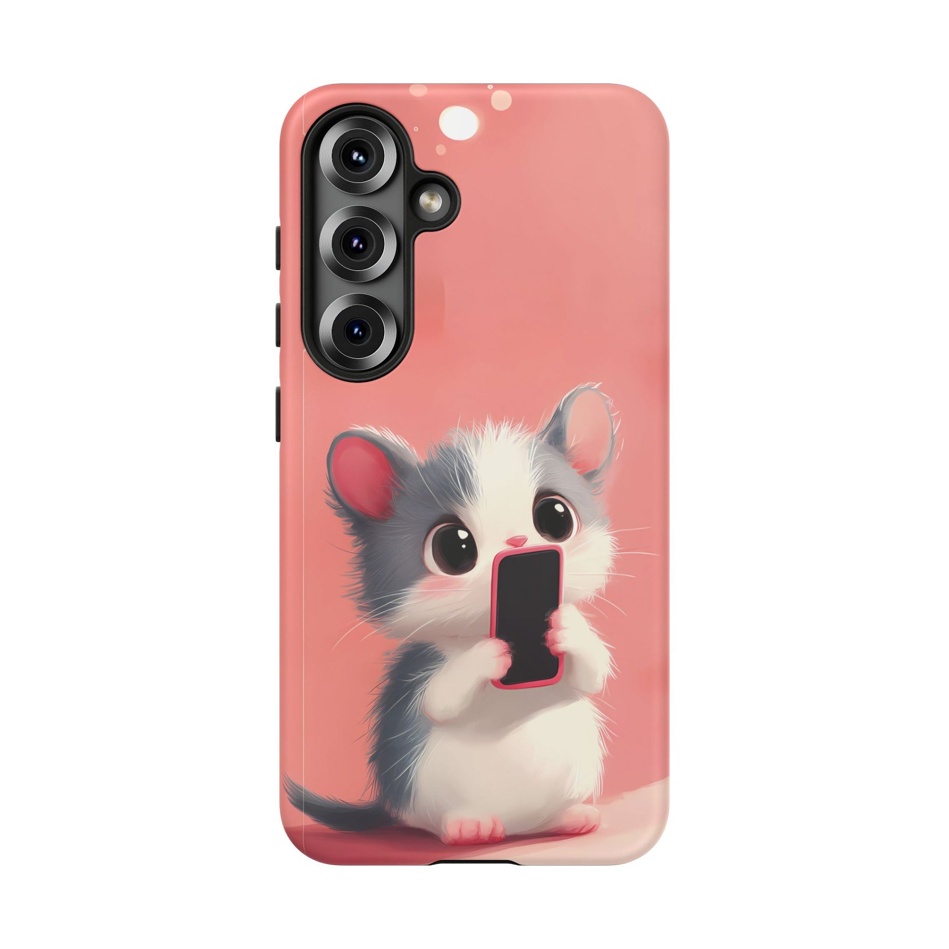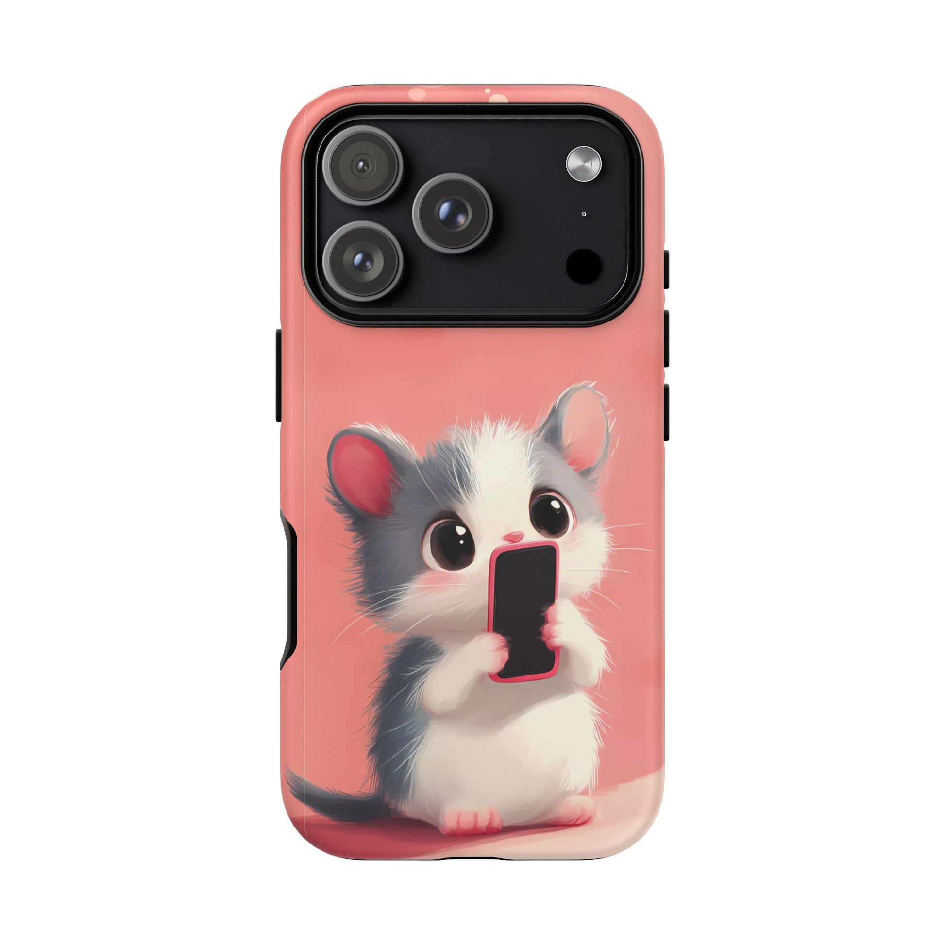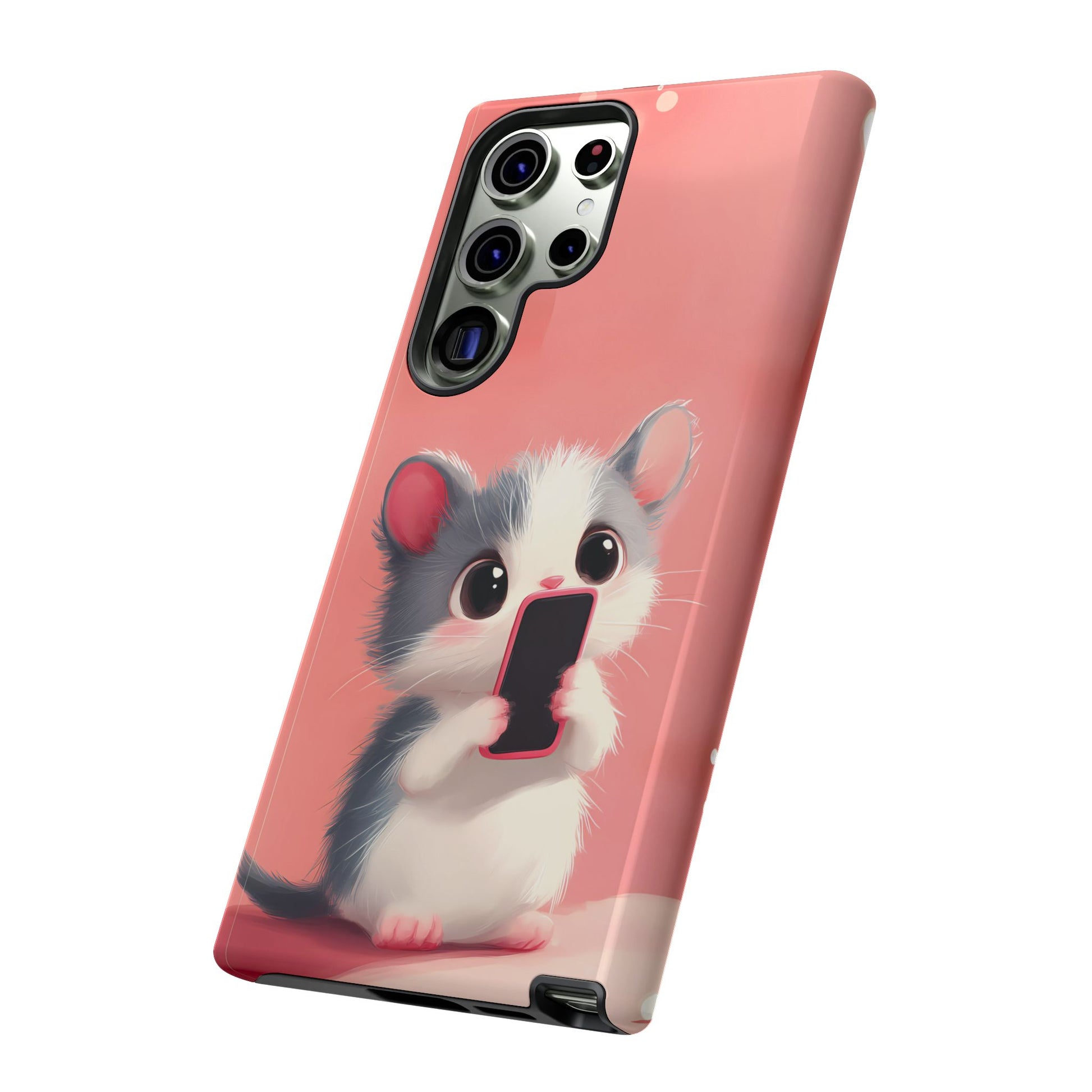 Even cats love their screen time! This whimsical phone case features a cartoon cat holding and looking at a cell phone, capturing a funny and relatable moment. Ideal for those who adore tech-loving felines!