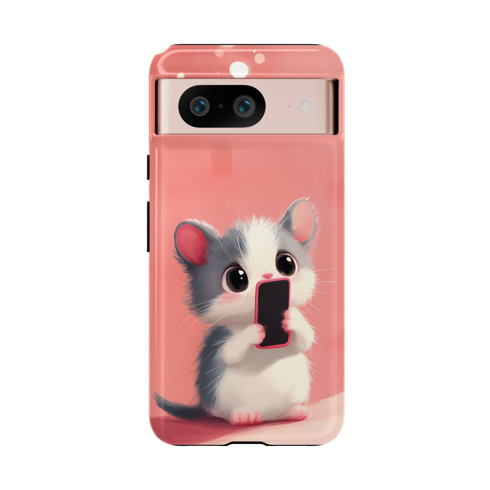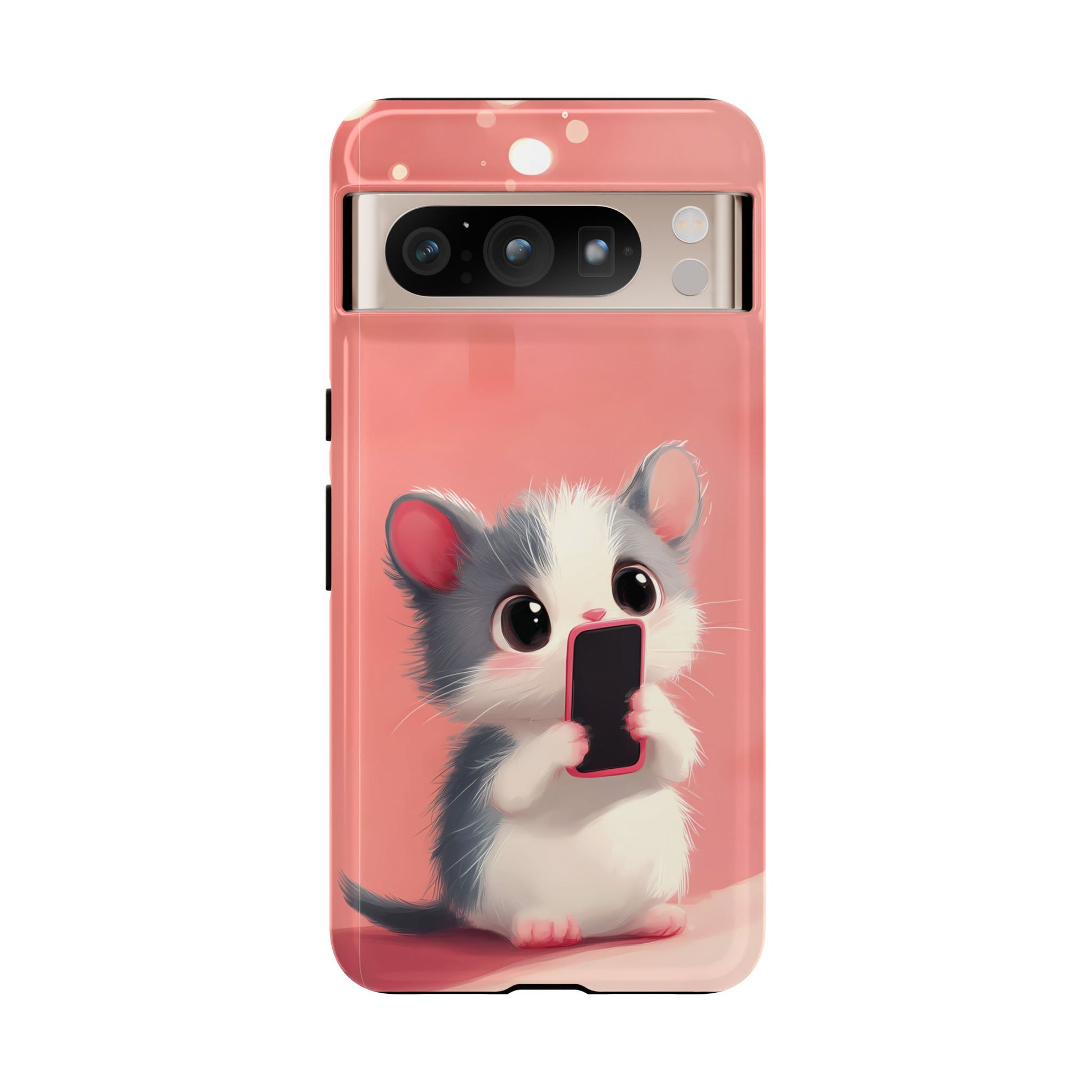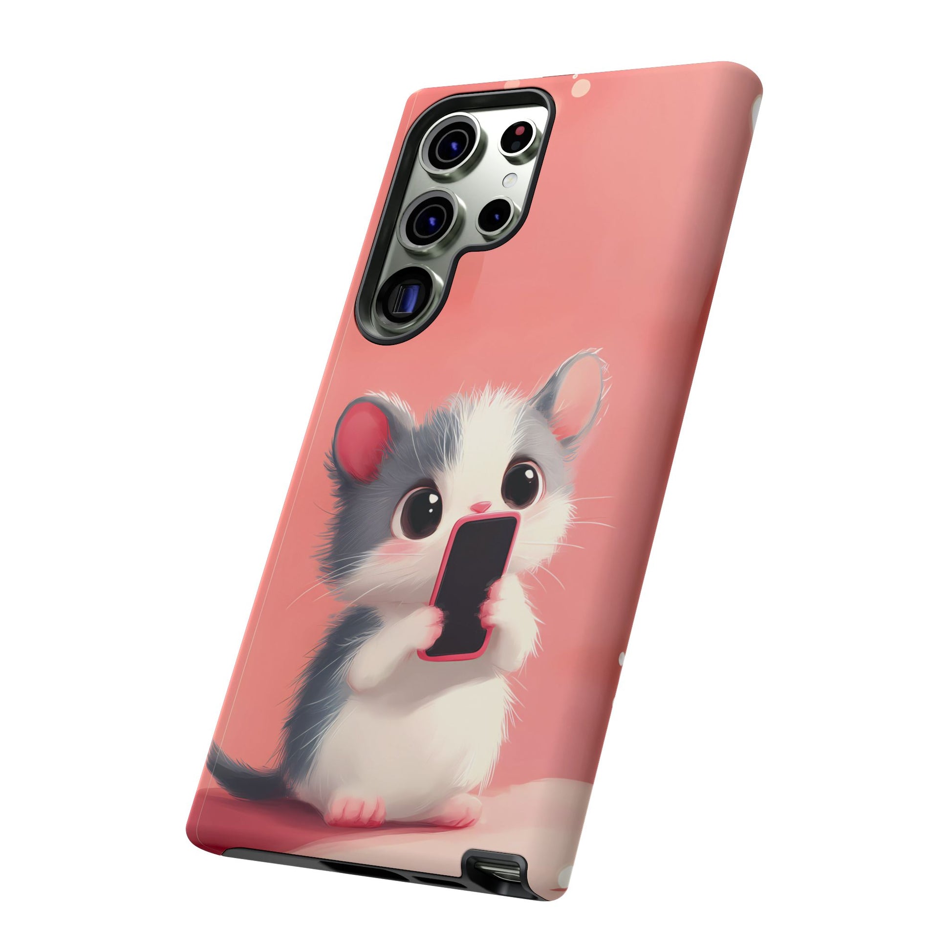 Even cats love their screen time! This whimsical phone case features a cartoon cat holding and looking at a cell phone, capturing a funny and relatable moment. Ideal for those who adore tech-loving felines!
