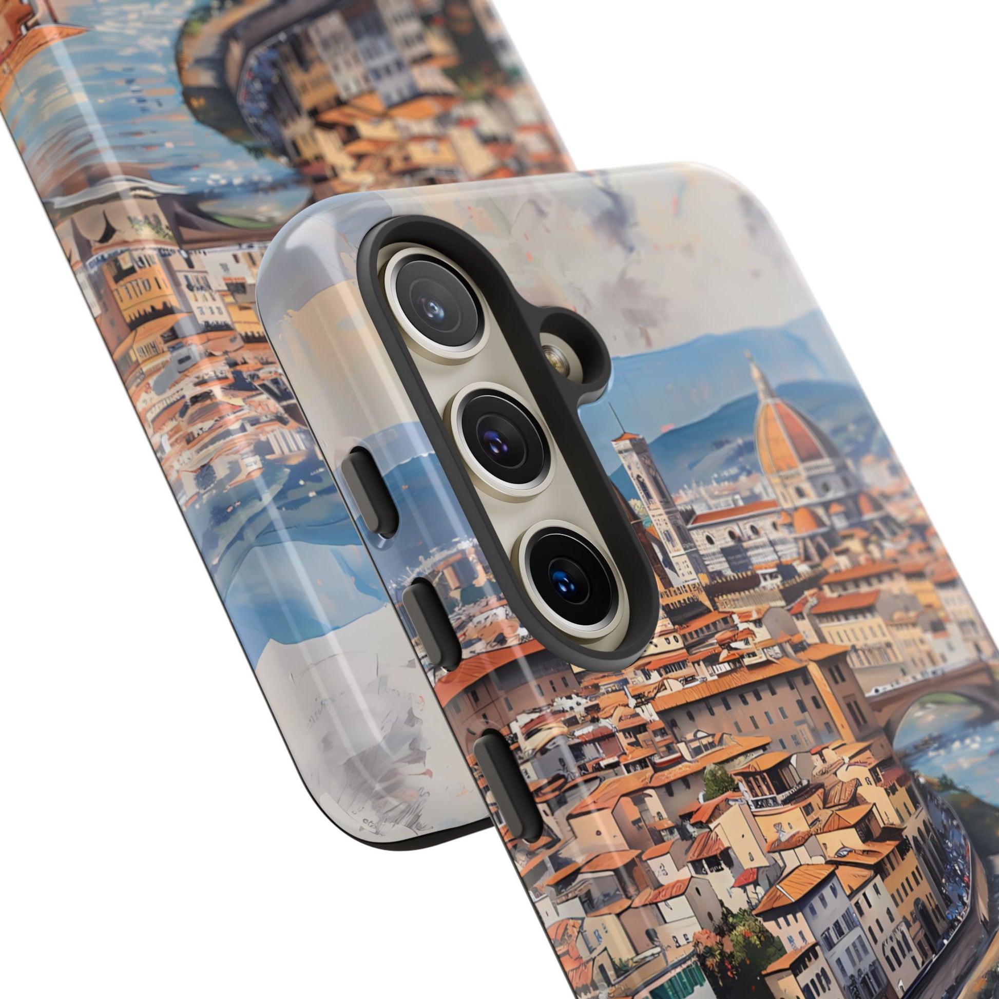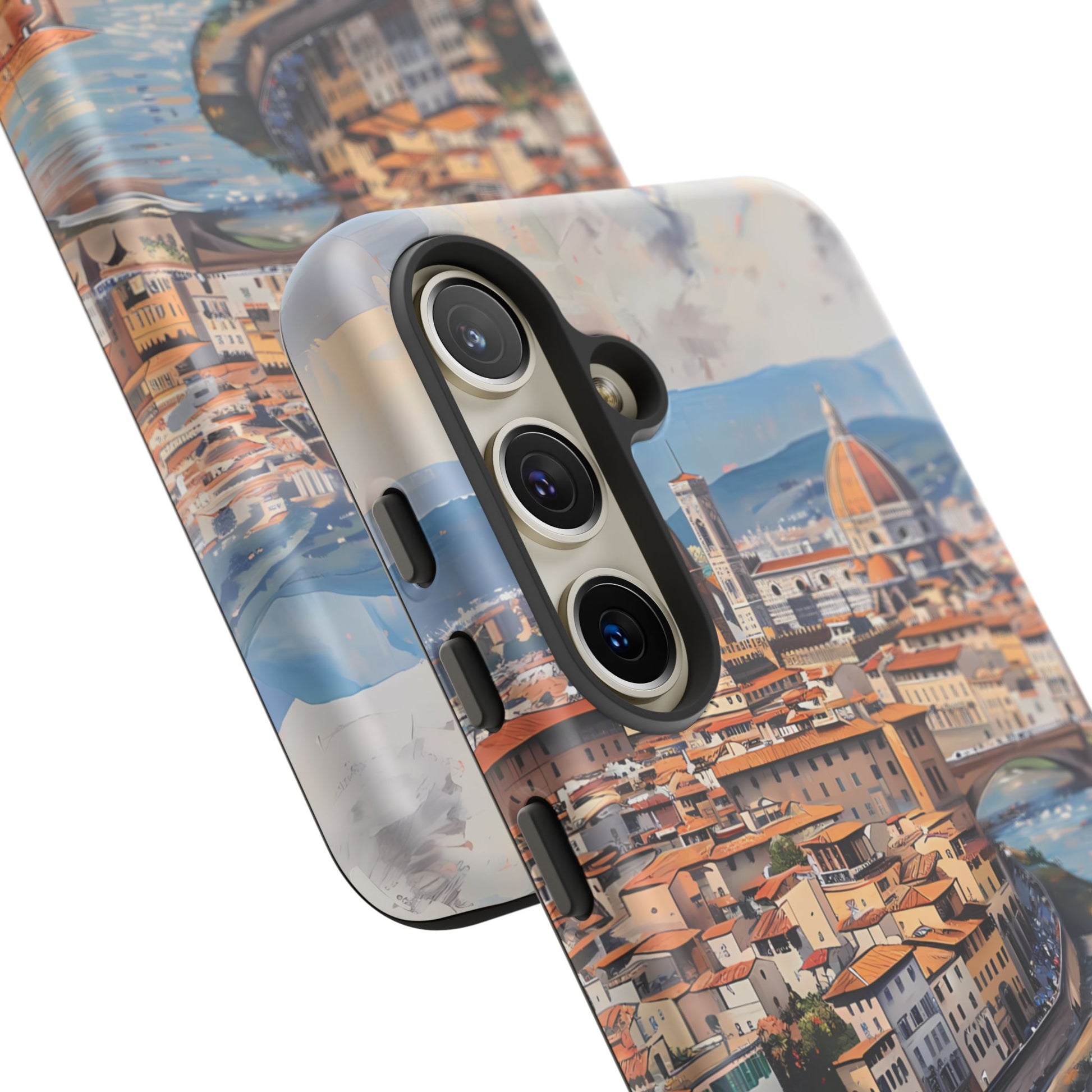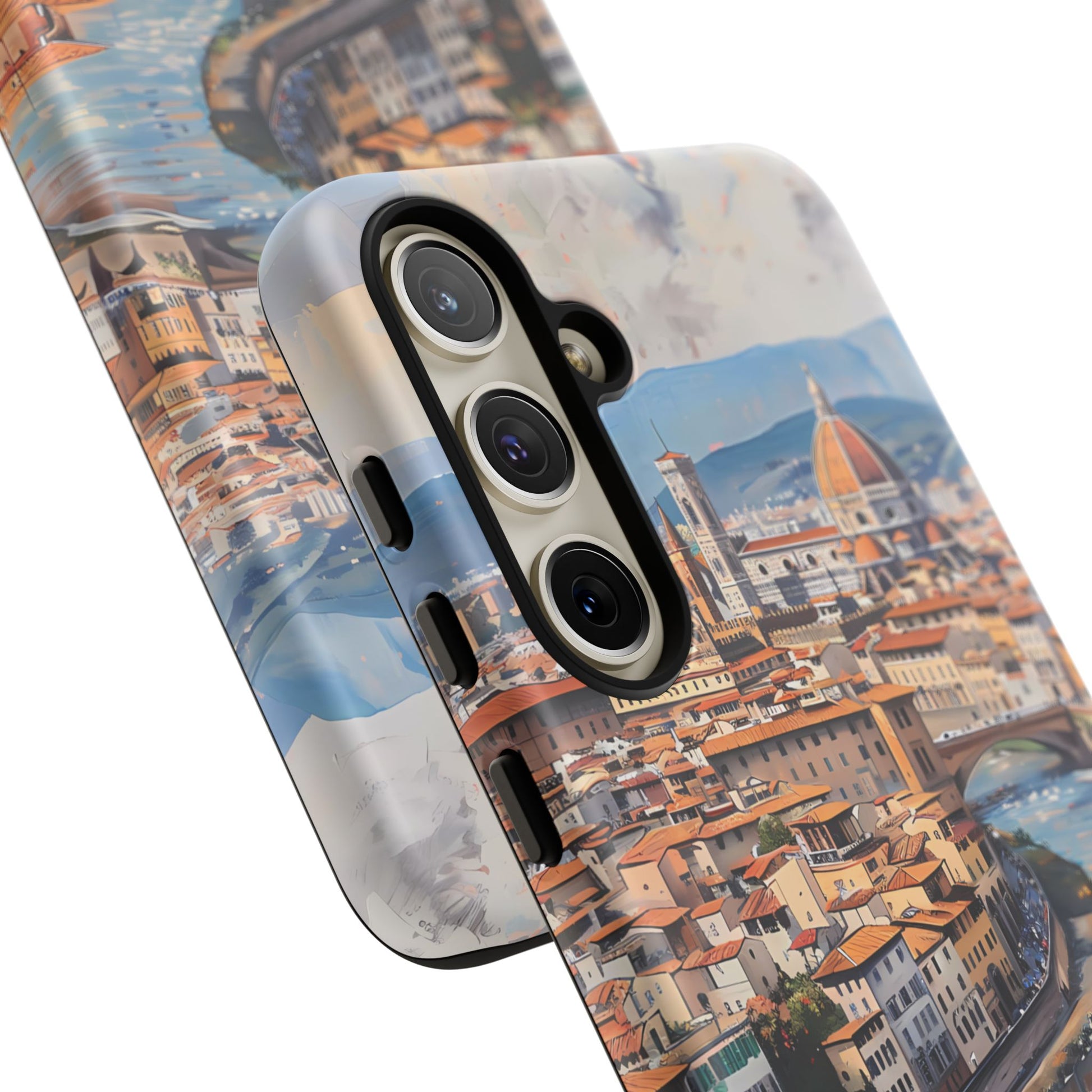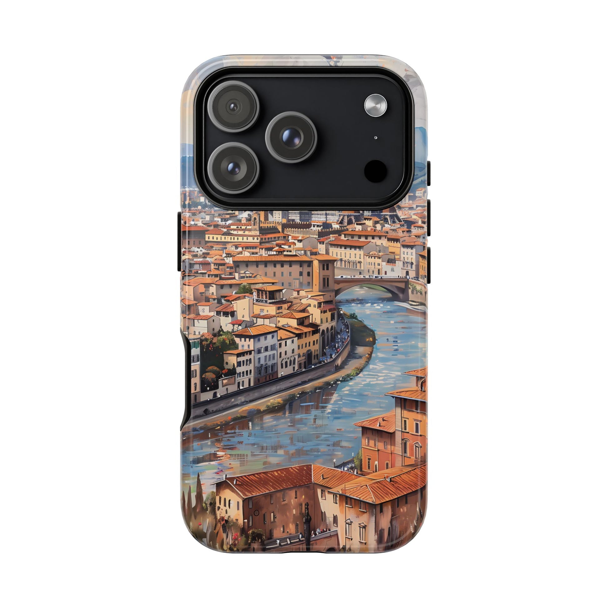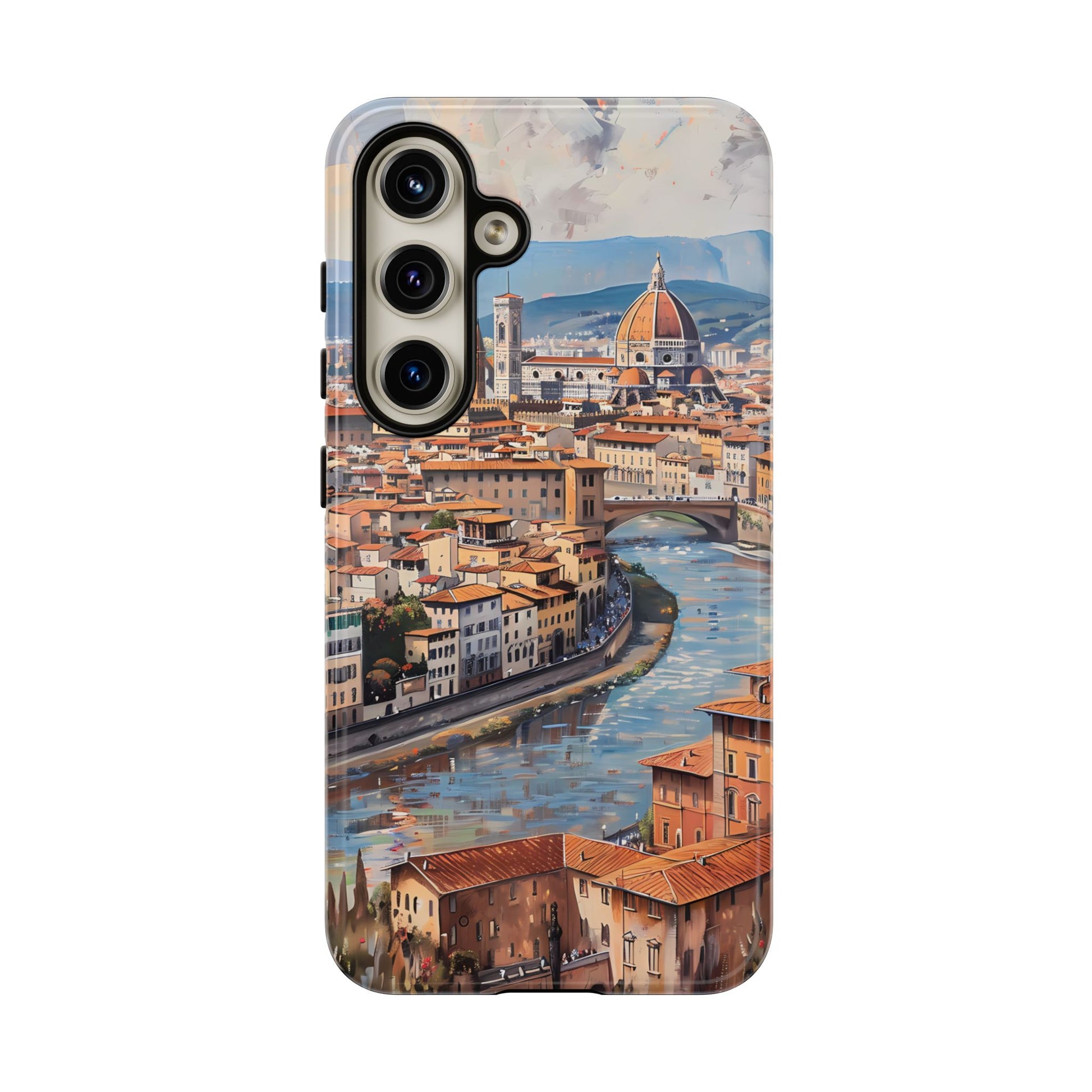 Immerse yourself in the rich history of Florence with the "Florence Reverie" phone cover. This design captures the timeless beauty of Renaissance art, historic cathedrals, and the iconic Ponte Vecchio in a stunning oil painting. Perfect for lovers of art and Italian culture, this cover brings a piece of the Renaissance to your everyday life.