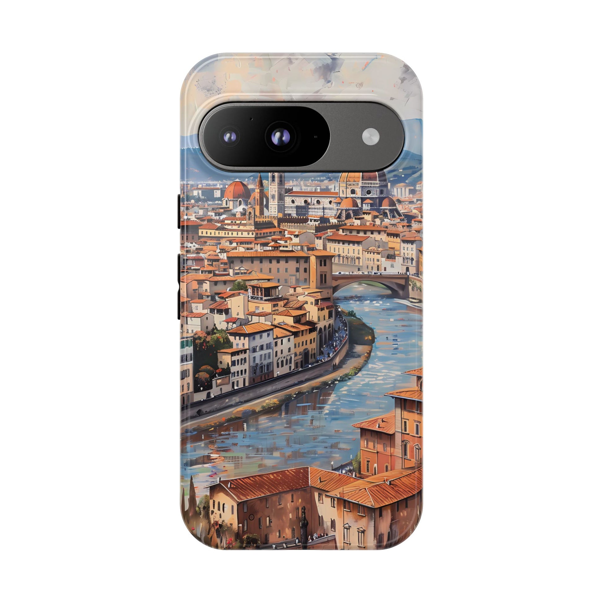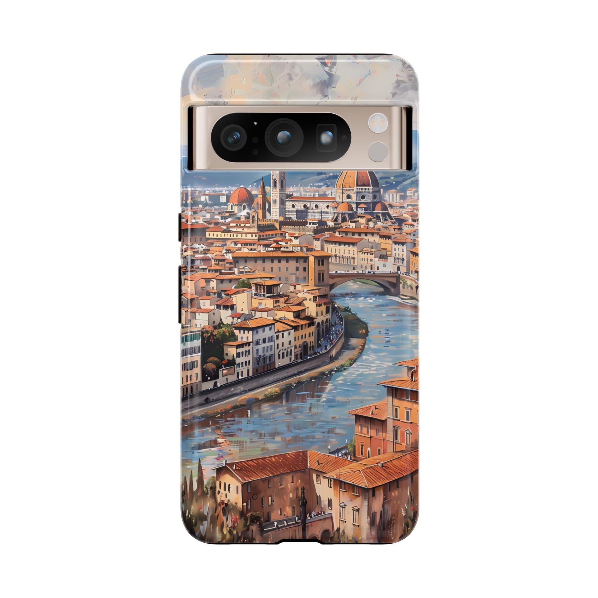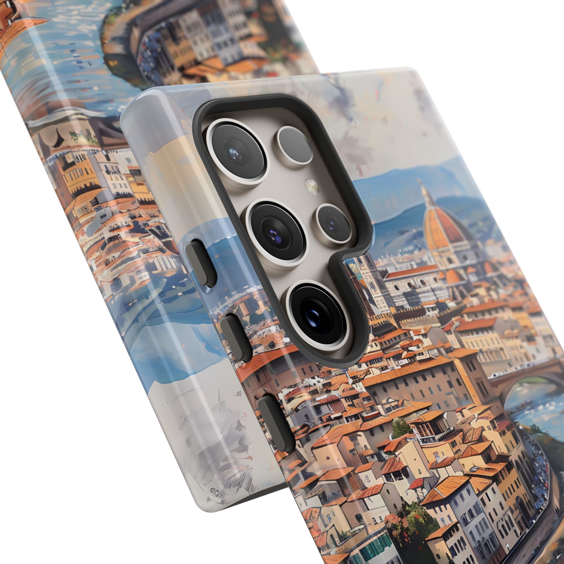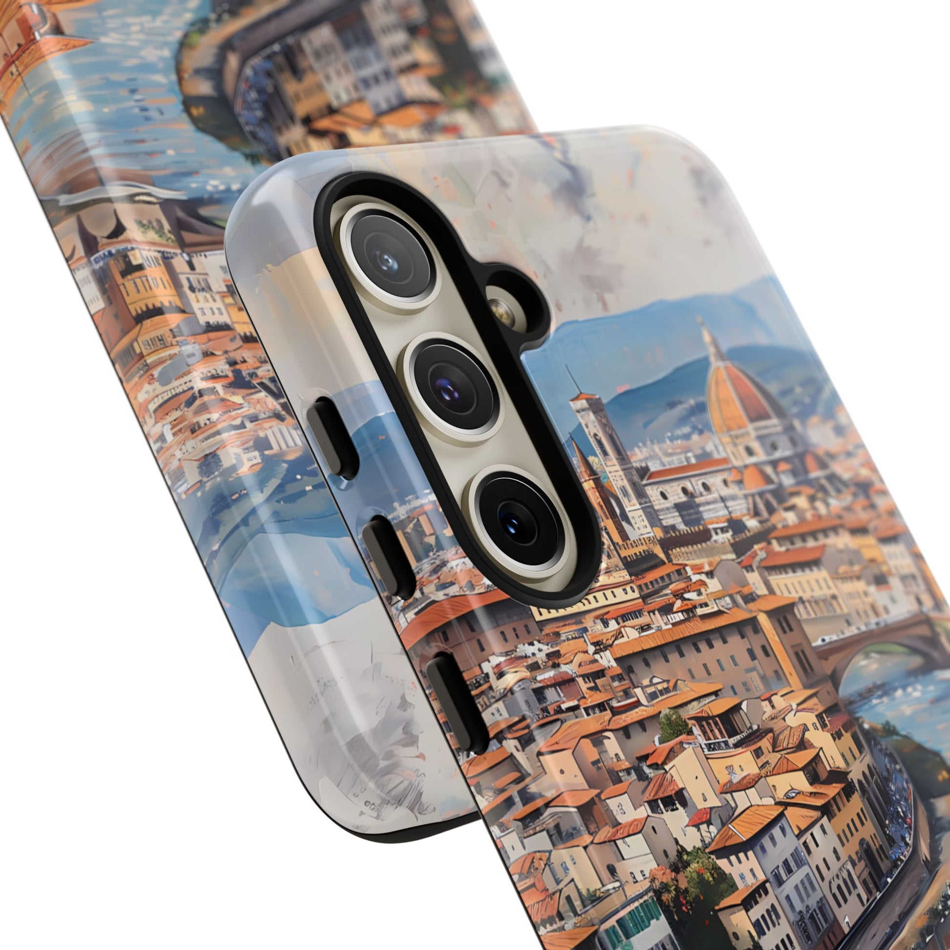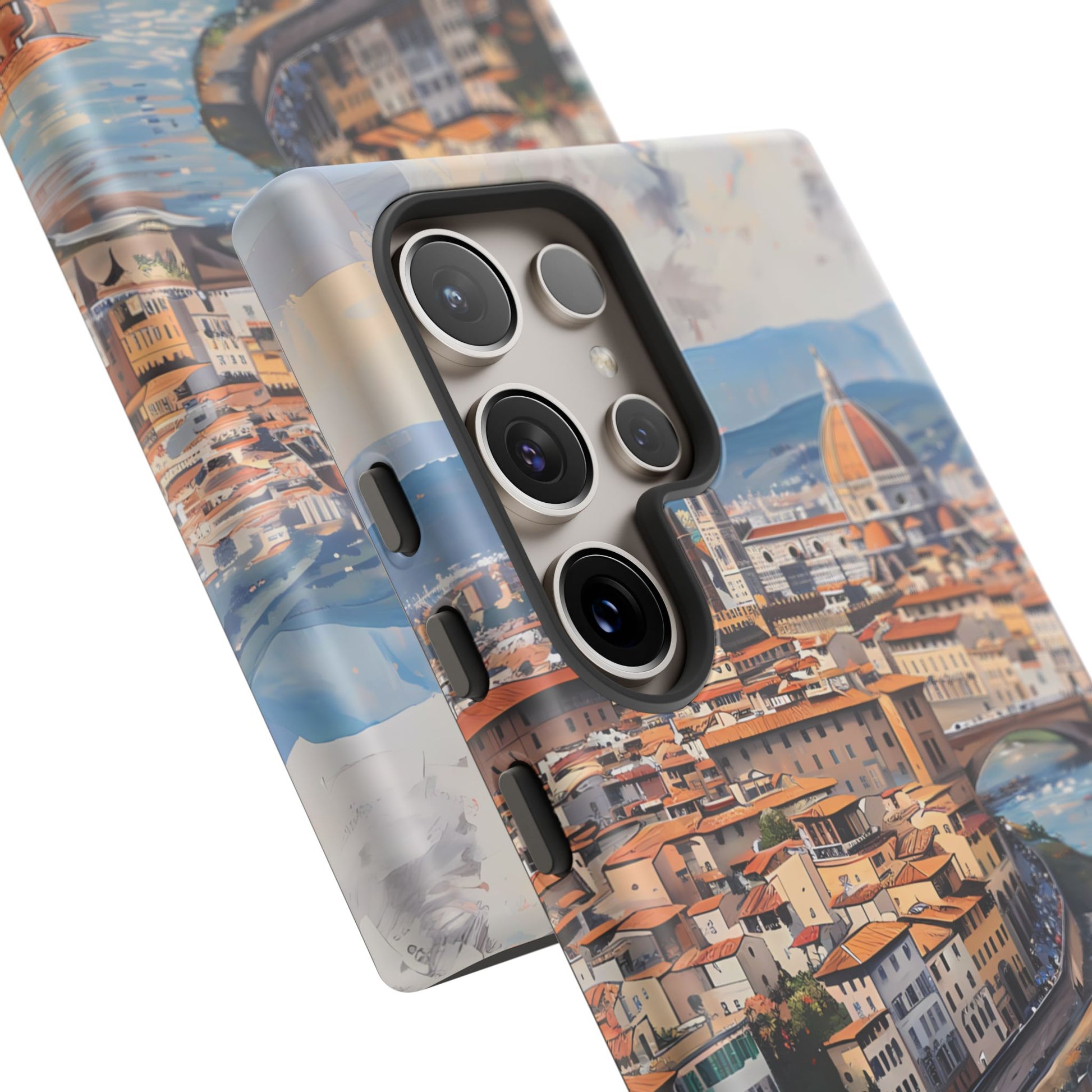 Immerse yourself in the rich history of Florence with the "Florence Reverie" phone cover. This design captures the timeless beauty of Renaissance art, historic cathedrals, and the iconic Ponte Vecchio in a stunning oil painting. Perfect for lovers of art and Italian culture, this cover brings a piece of the Renaissance to your everyday life.