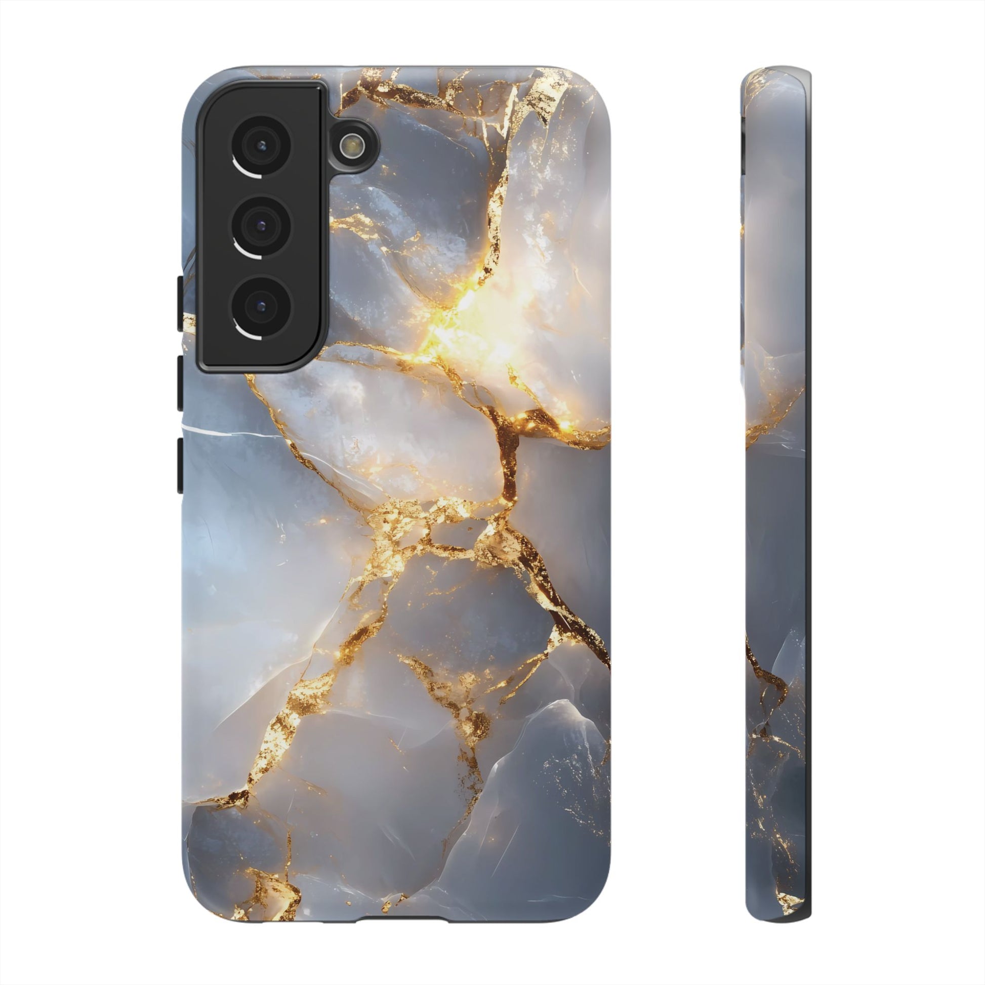 Inspired by natural crystal formations, this phone case showcases a subtle, frosted translucency with intricate gold veins. The combination of soft lighting and high-detail textures makes this design both modern and timeless
