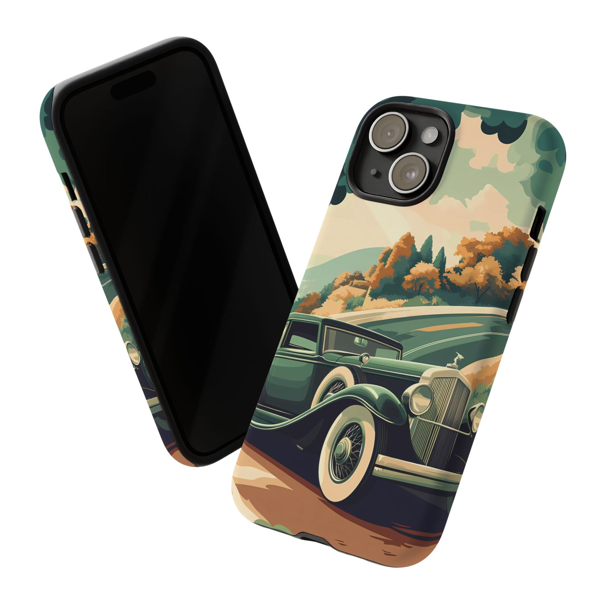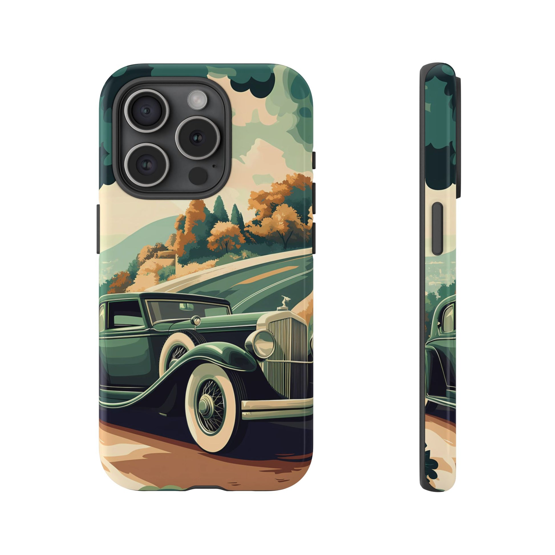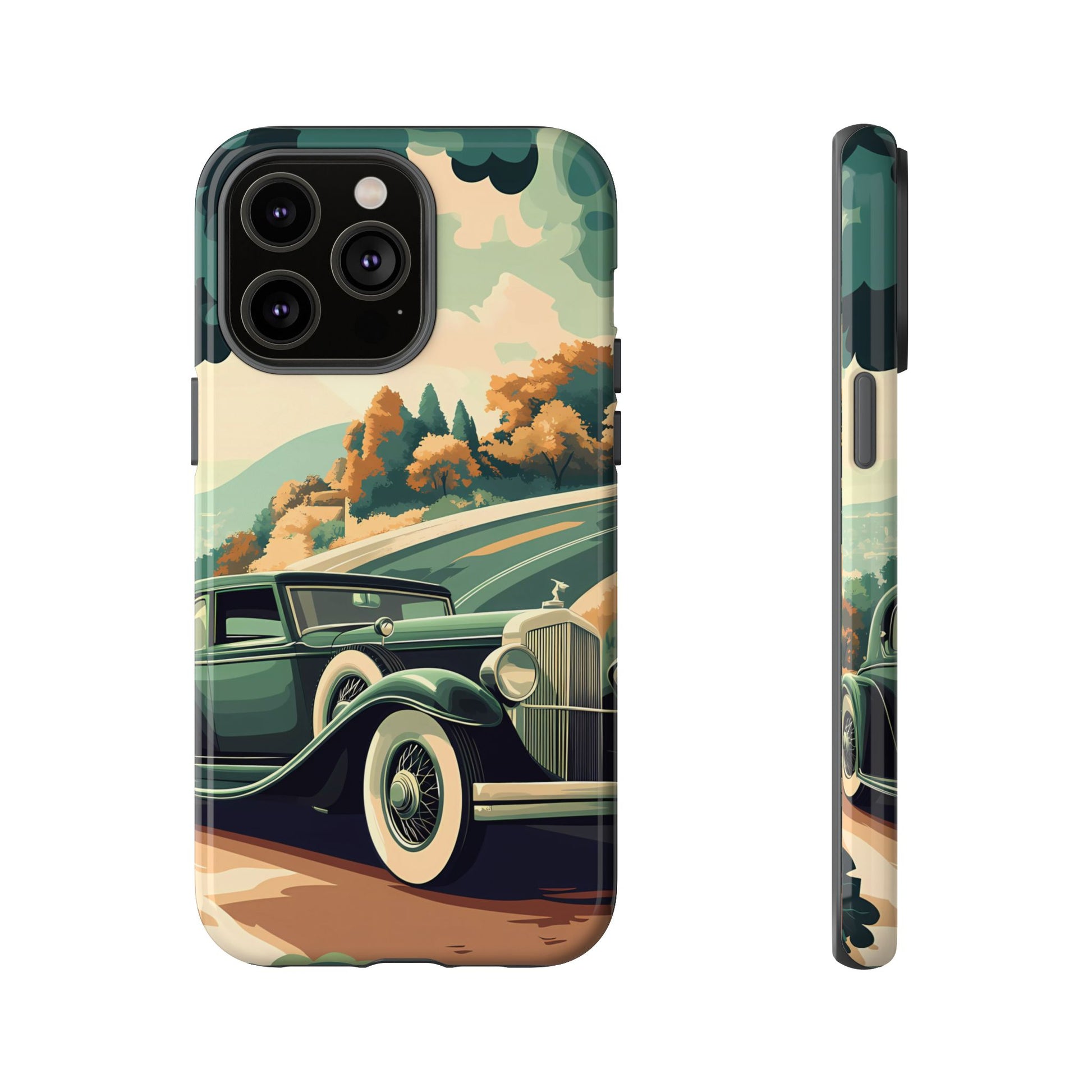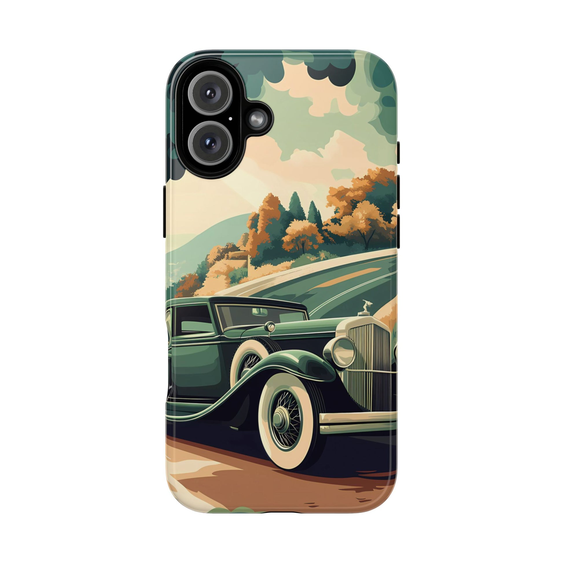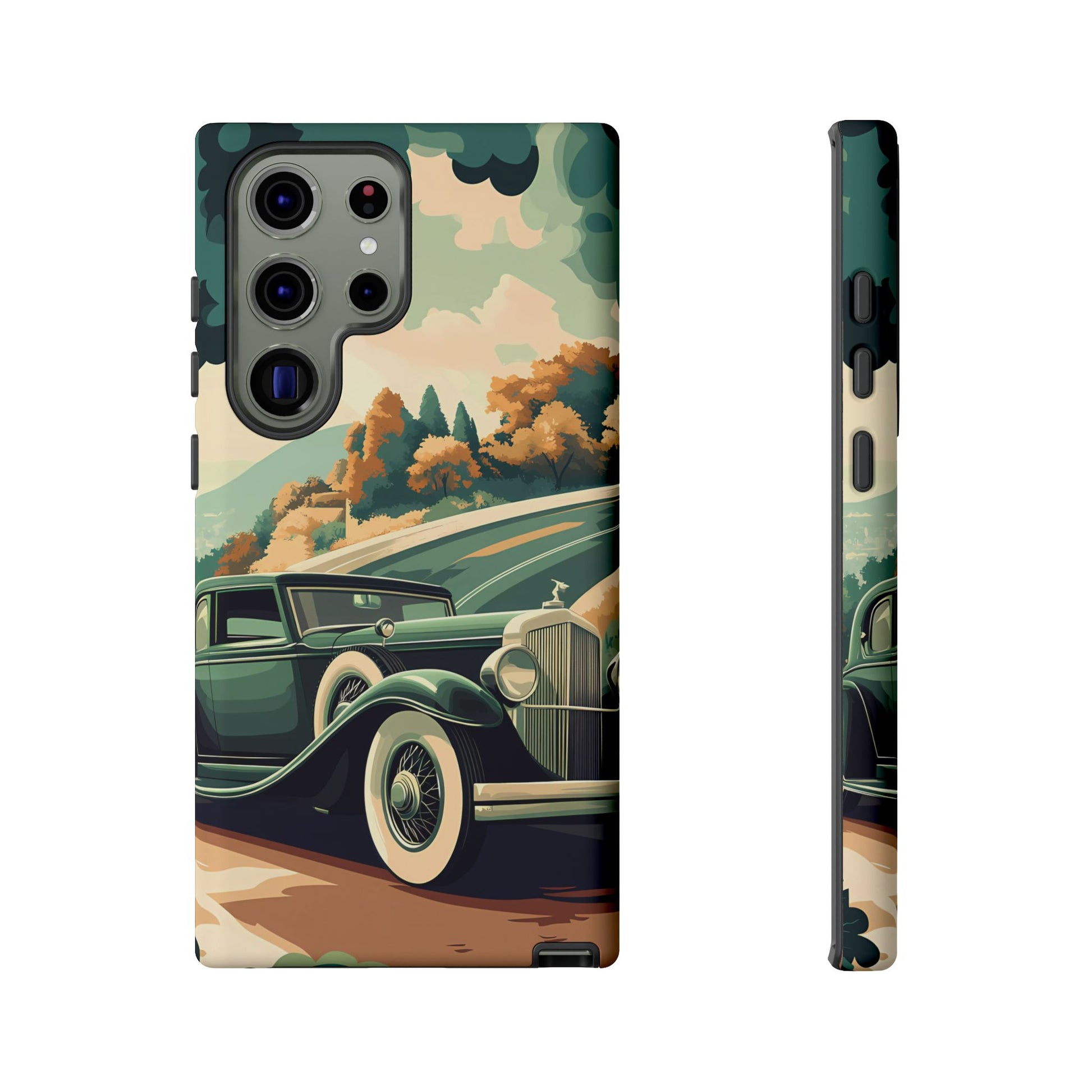Evoke the glamour of early automobile advertisements with this vintage-inspired design, featuring opulent 1920s and 1930s classic cars, polished chrome details, and white-wall tires, all set against a stylish Art Deco backdrop.