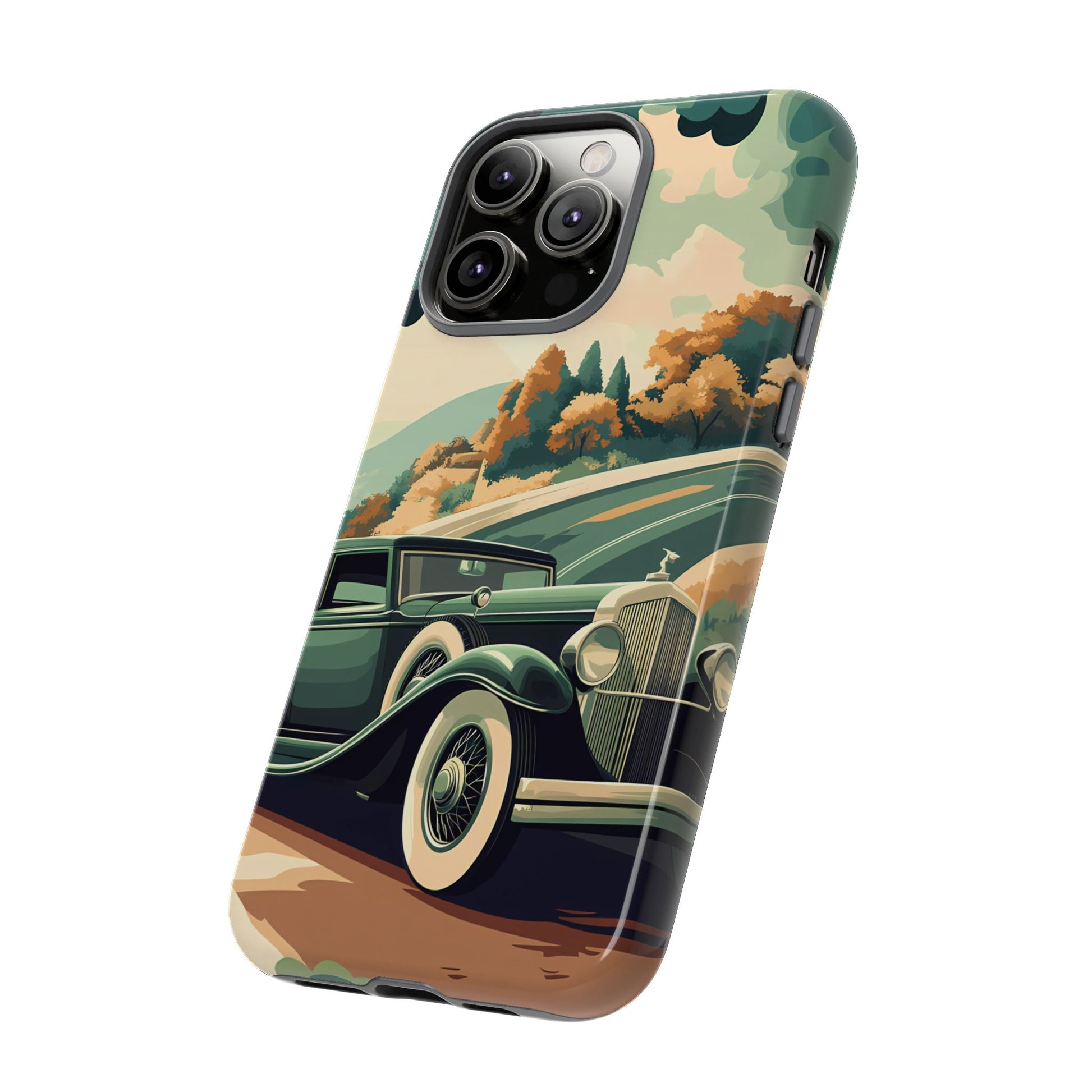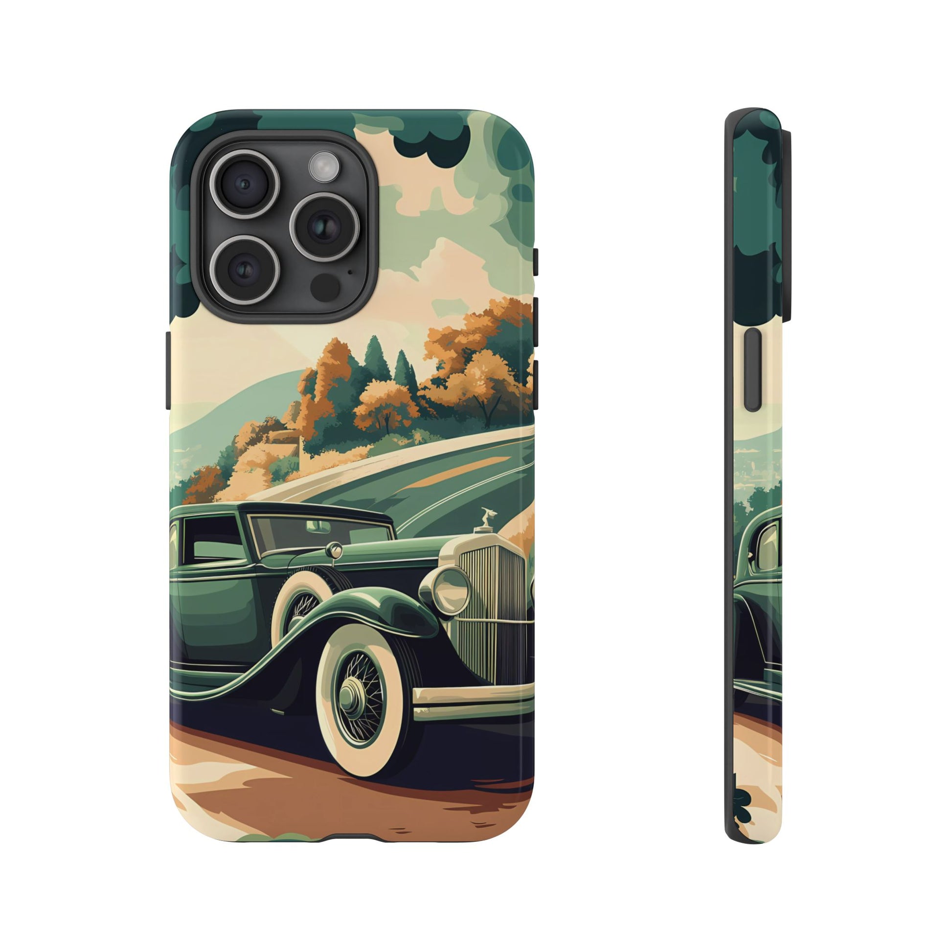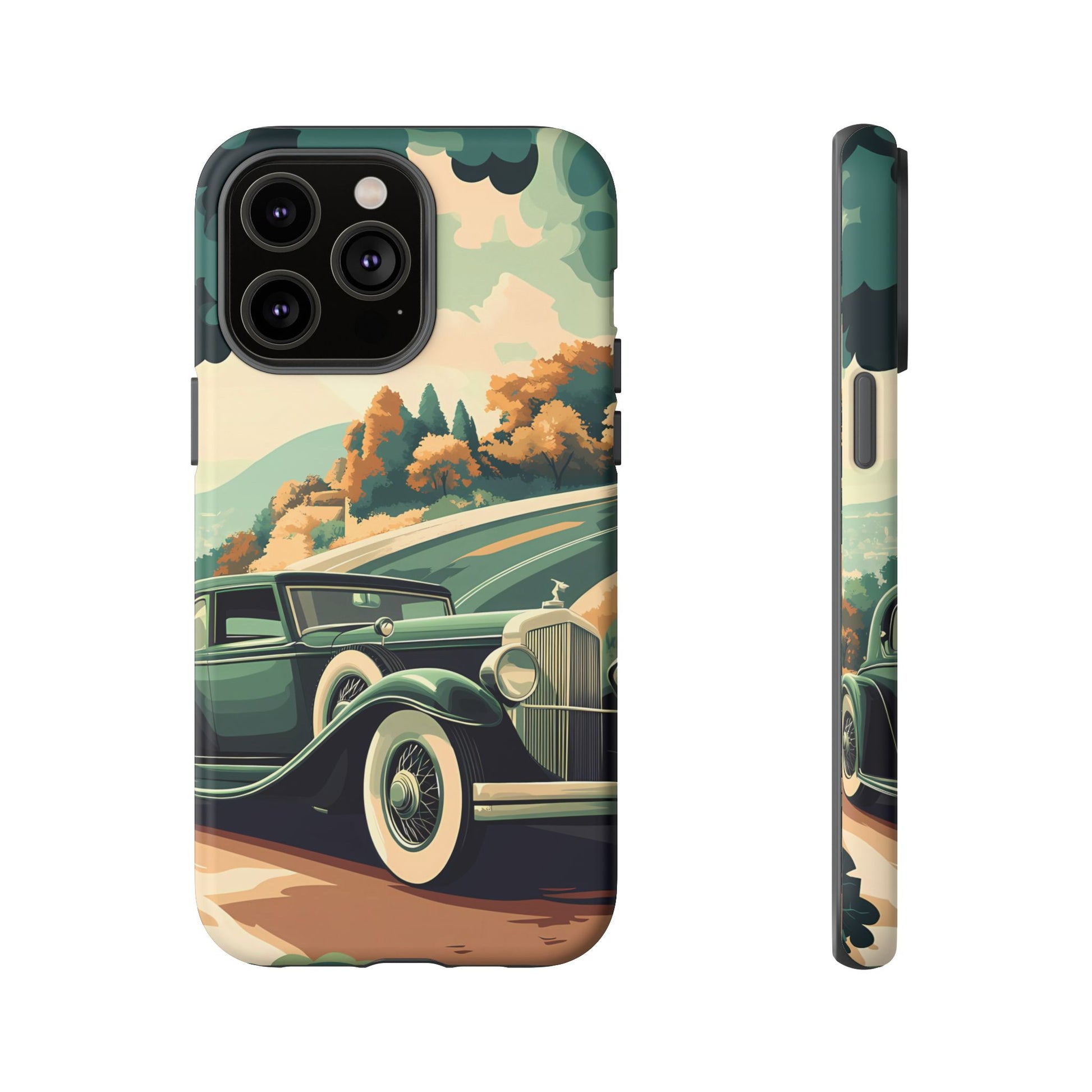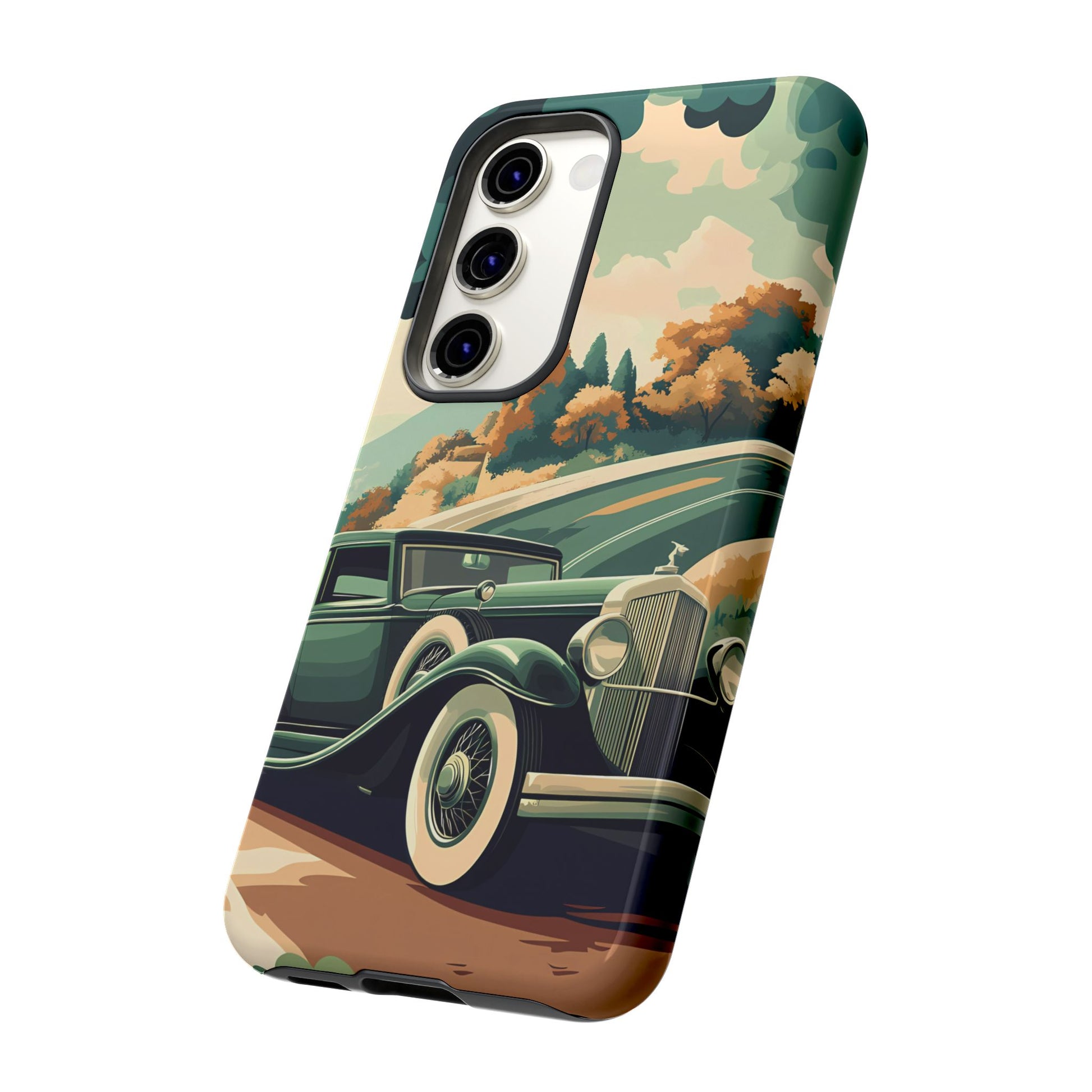 Evoke the glamour of early automobile advertisements with this vintage-inspired design, featuring opulent 1920s and 1930s classic cars, polished chrome details, and white-wall tires, all set against a stylish Art Deco backdrop.