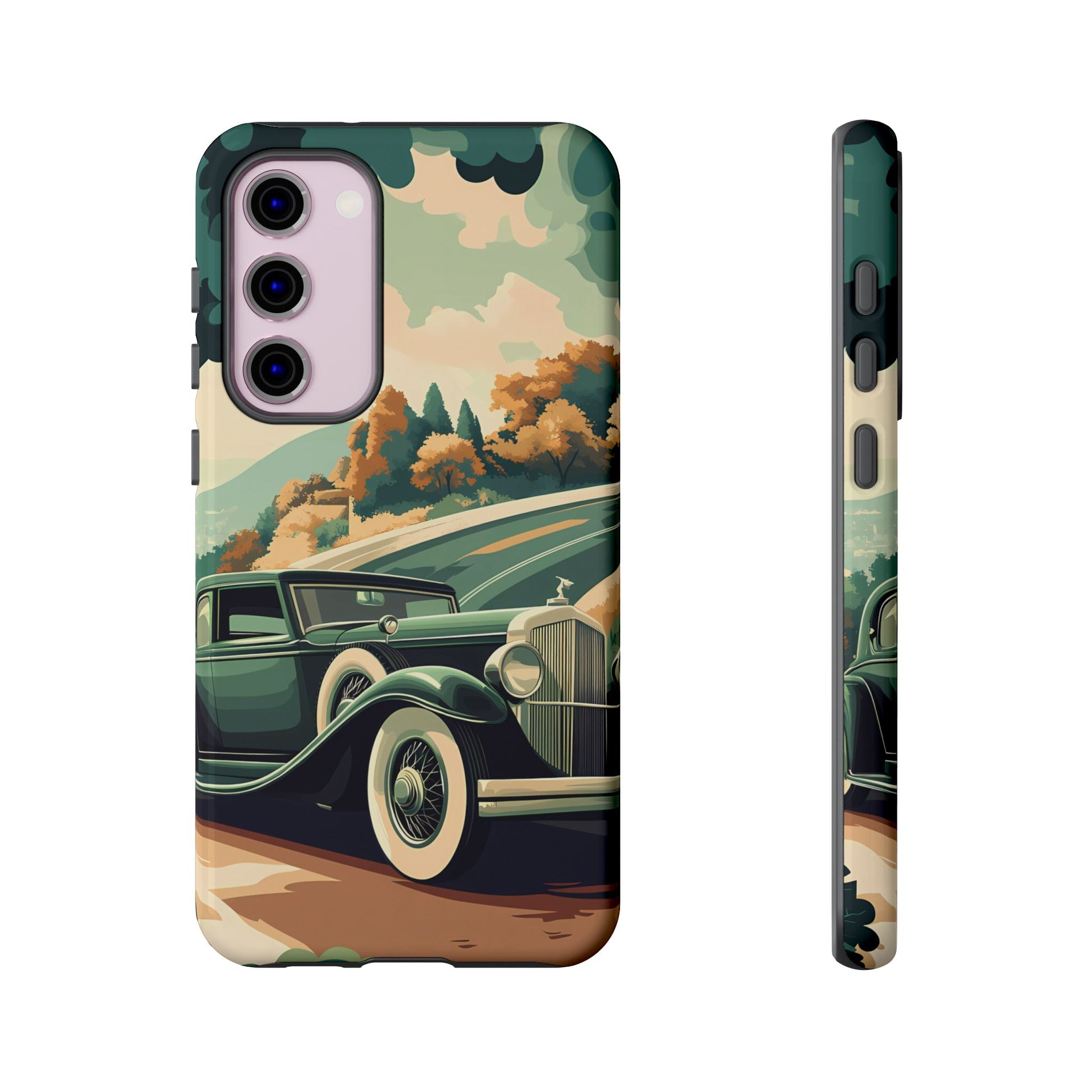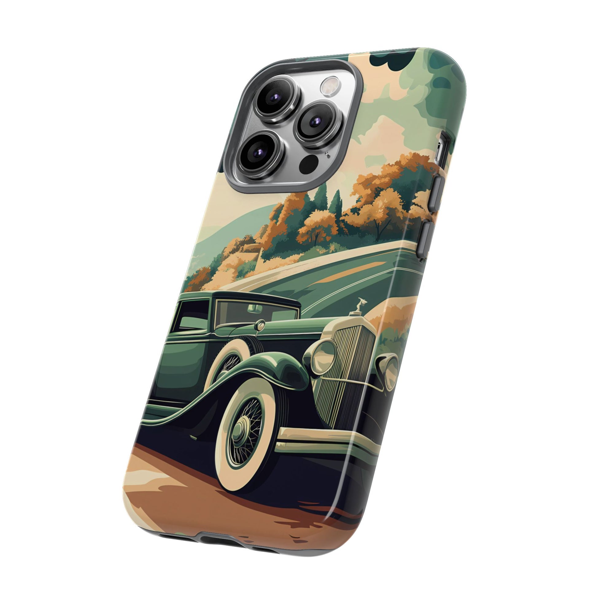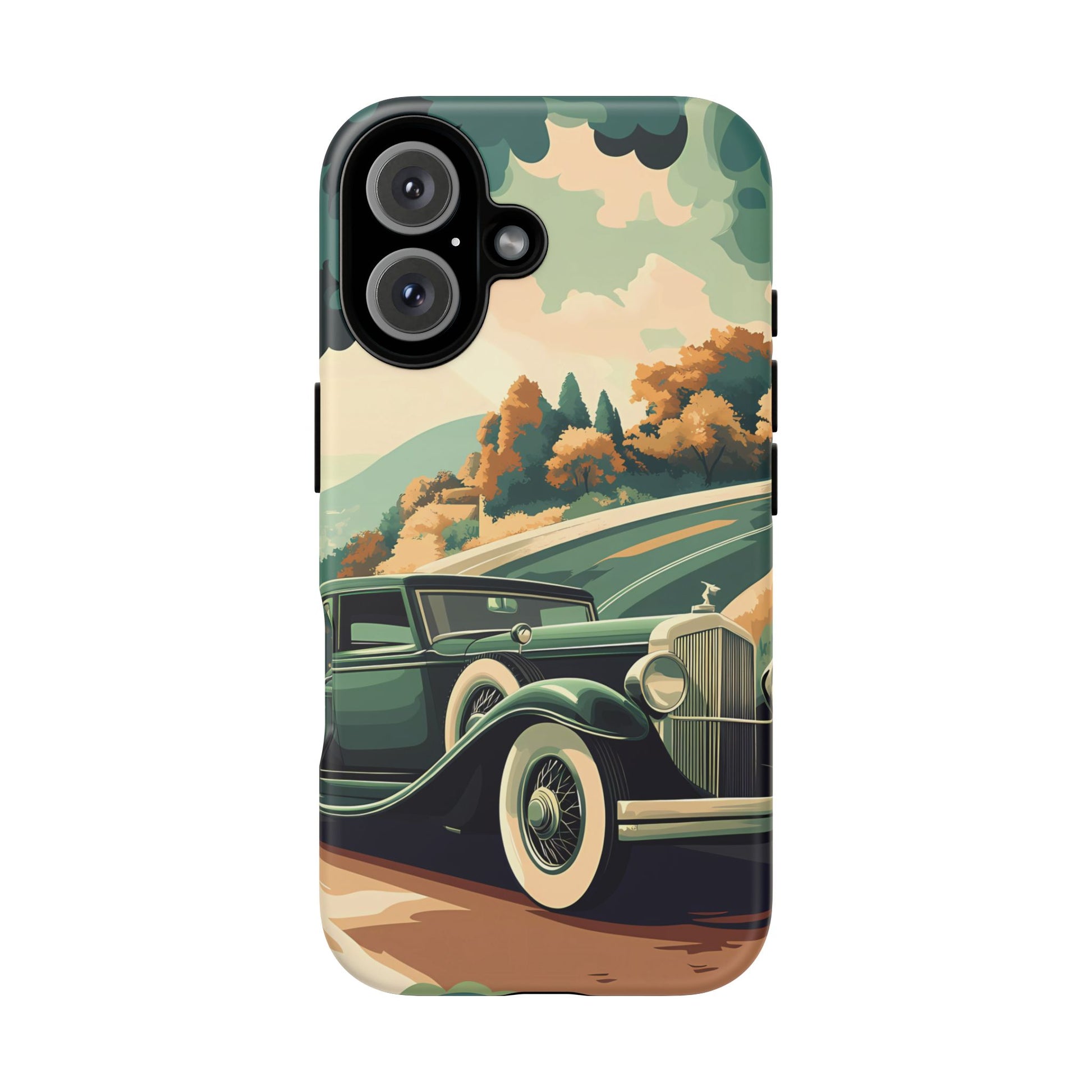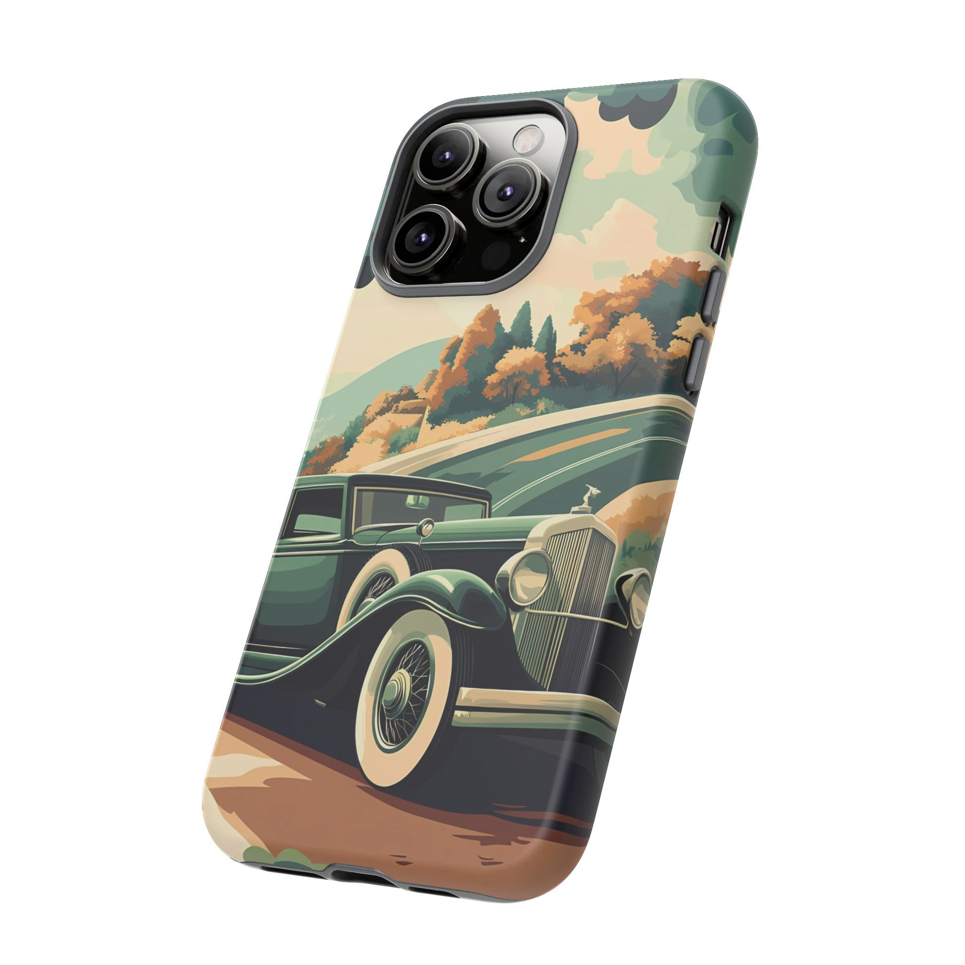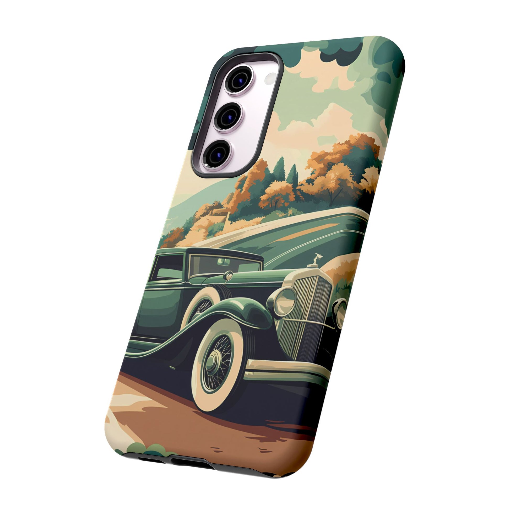 Evoke the glamour of early automobile advertisements with this vintage-inspired design, featuring opulent 1920s and 1930s classic cars, polished chrome details, and white-wall tires, all set against a stylish Art Deco backdrop.
