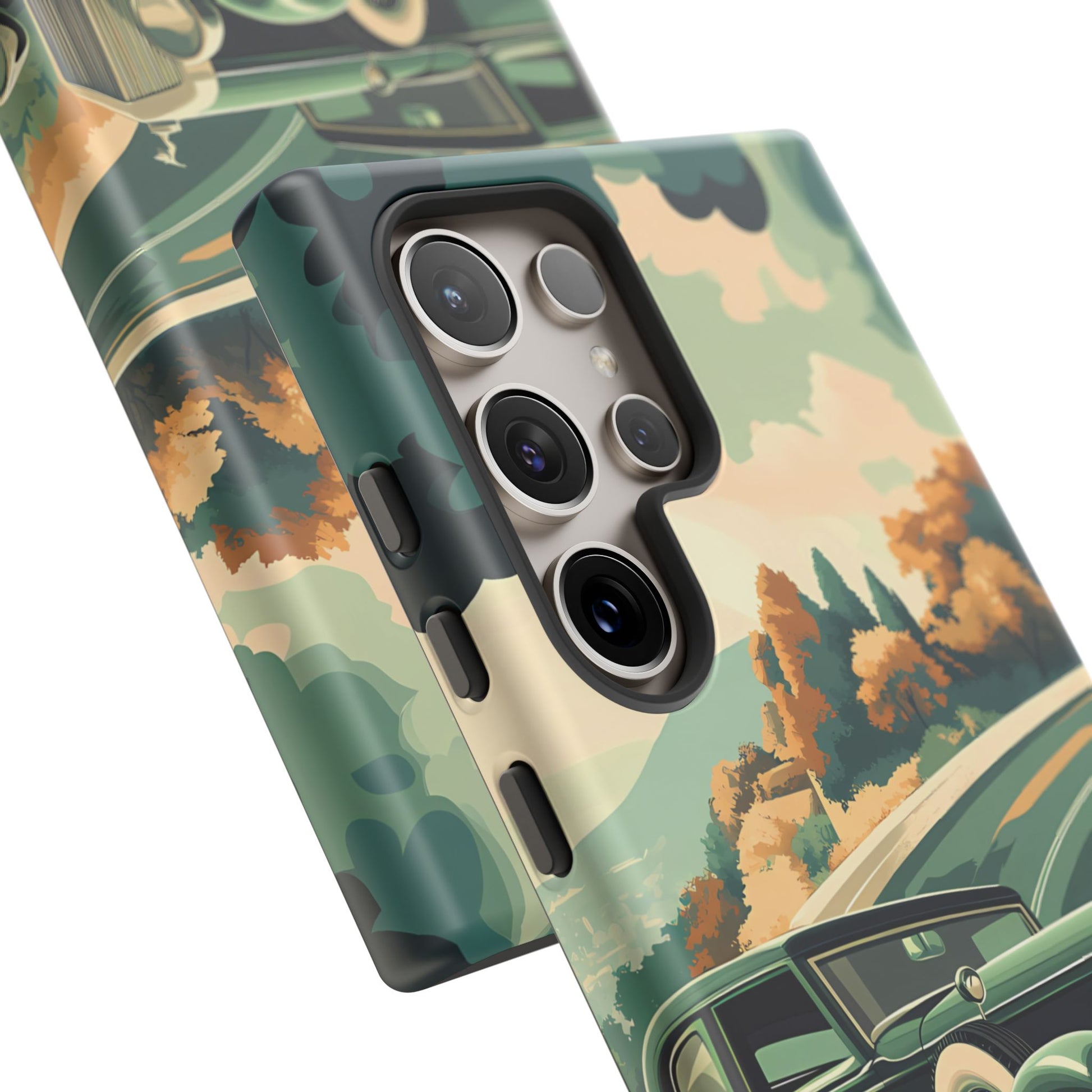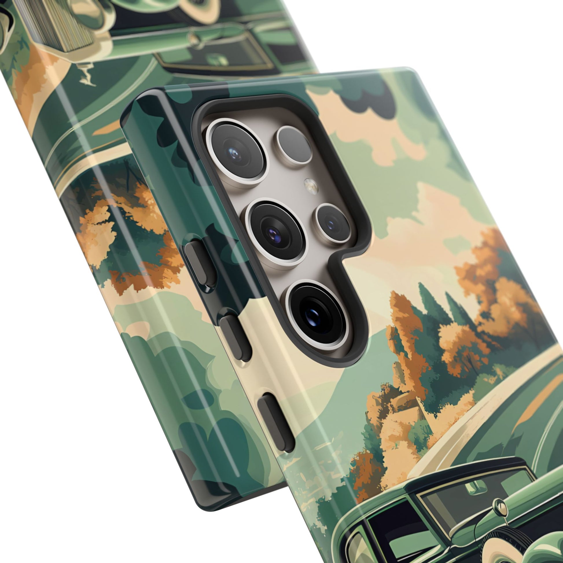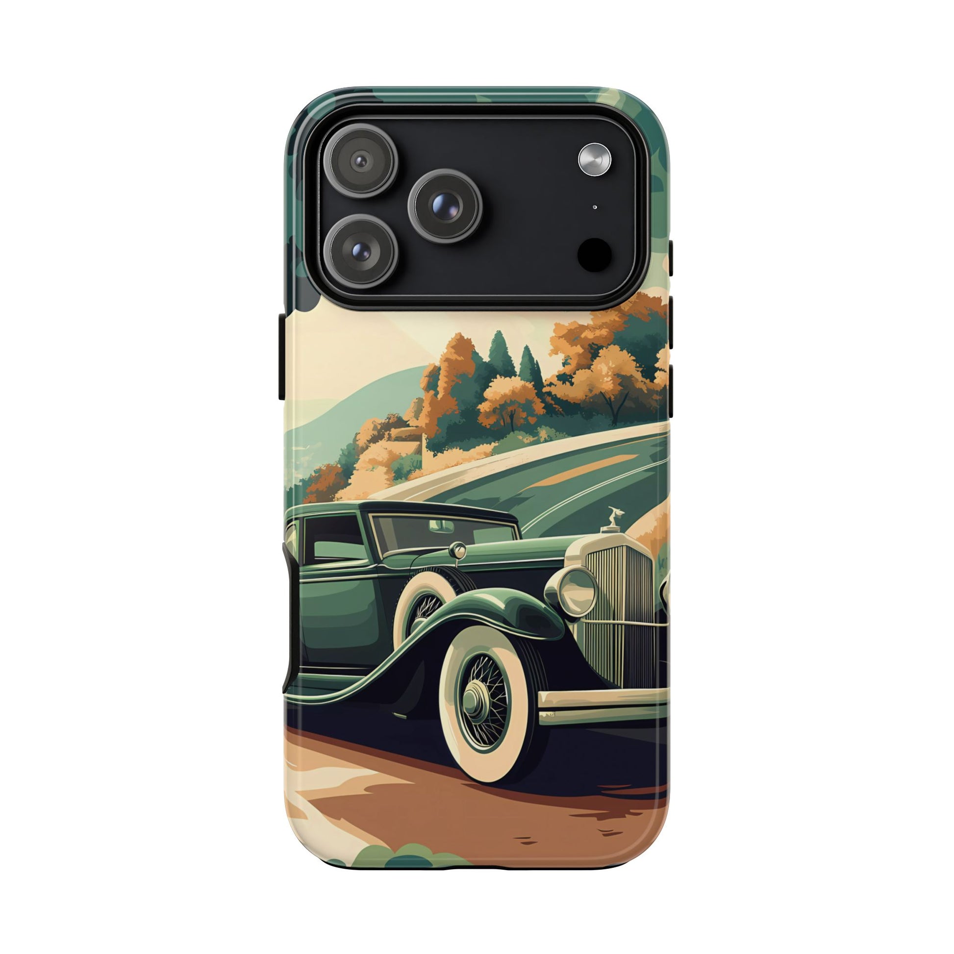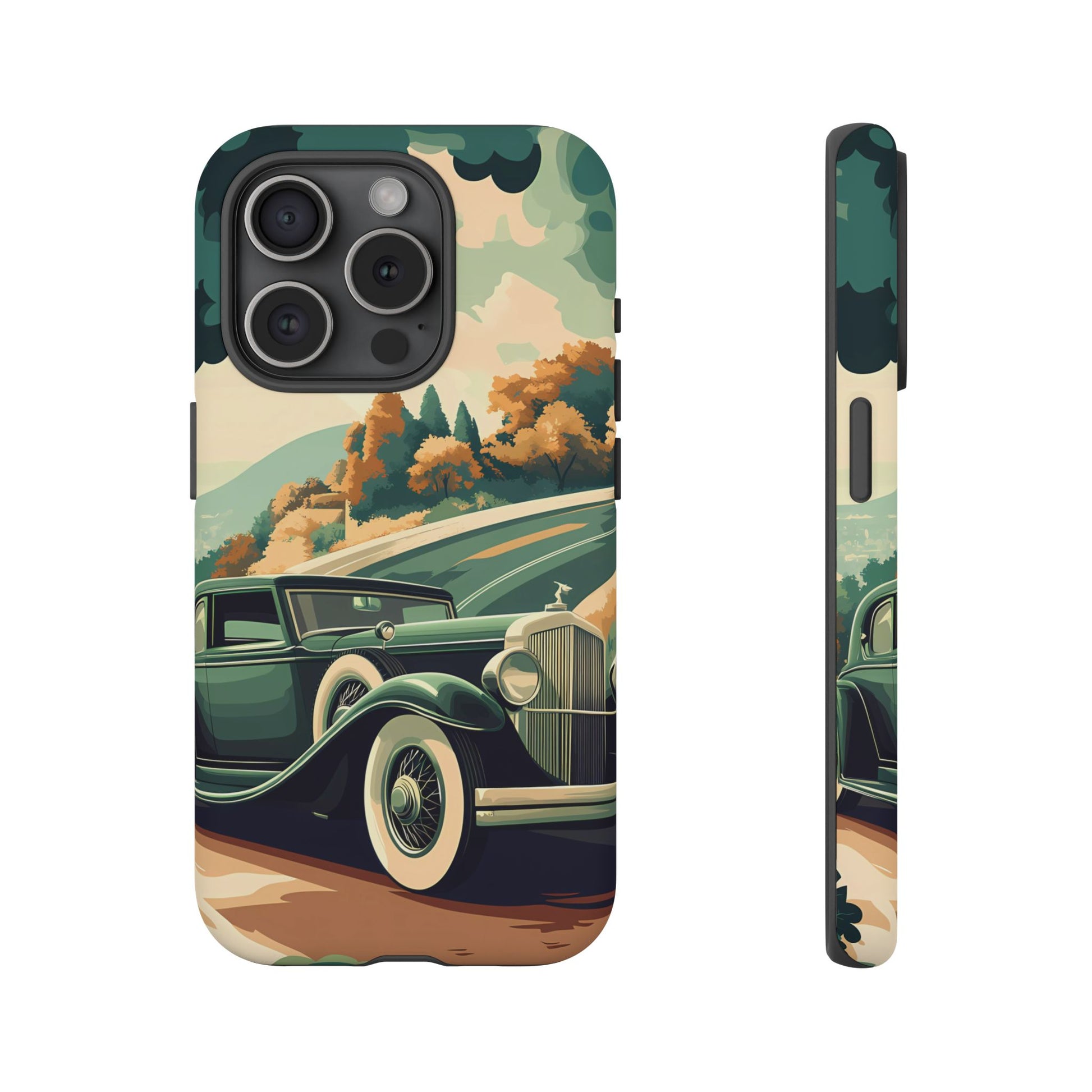 Evoke the glamour of early automobile advertisements with this vintage-inspired design, featuring opulent 1920s and 1930s classic cars, polished chrome details, and white-wall tires, all set against a stylish Art Deco backdrop.