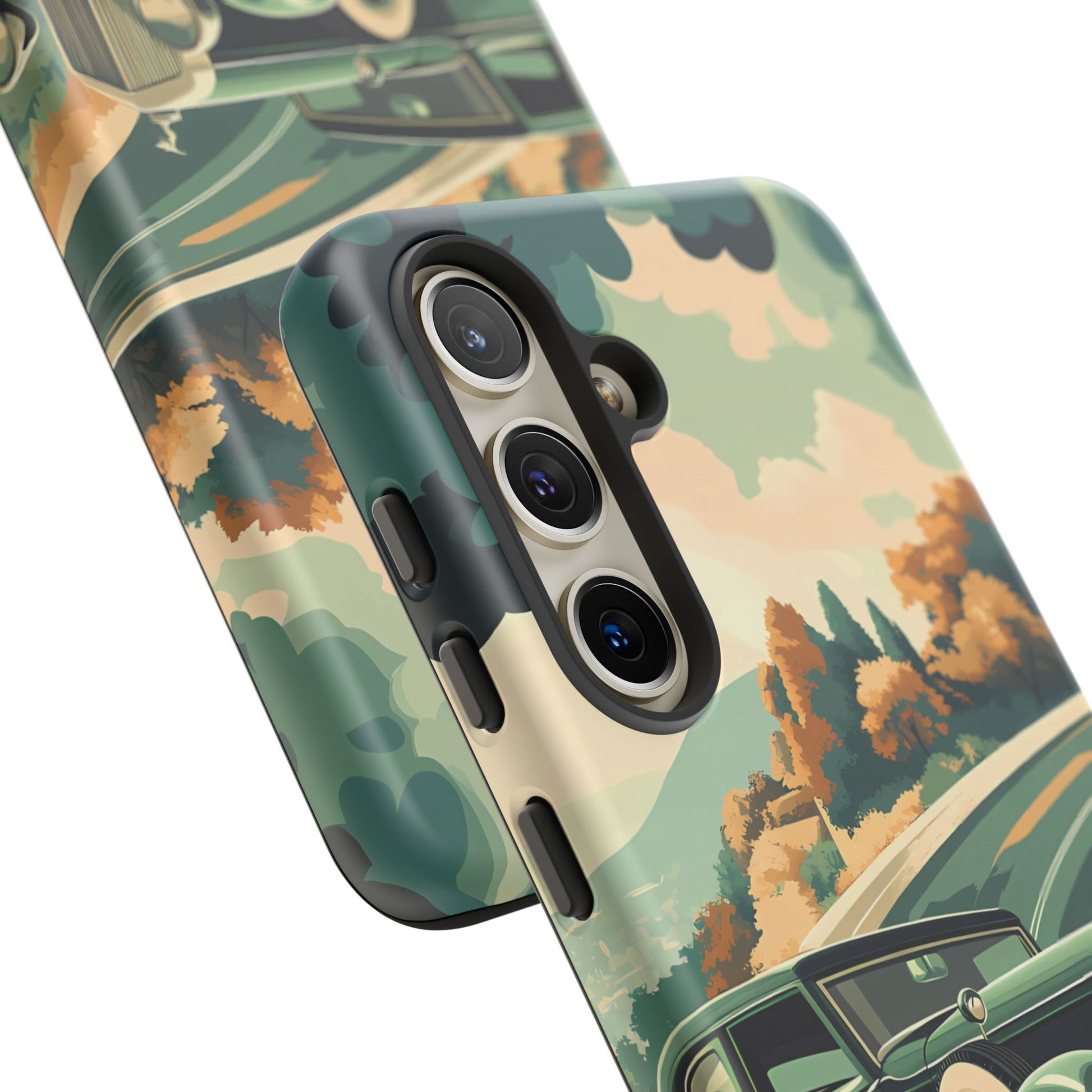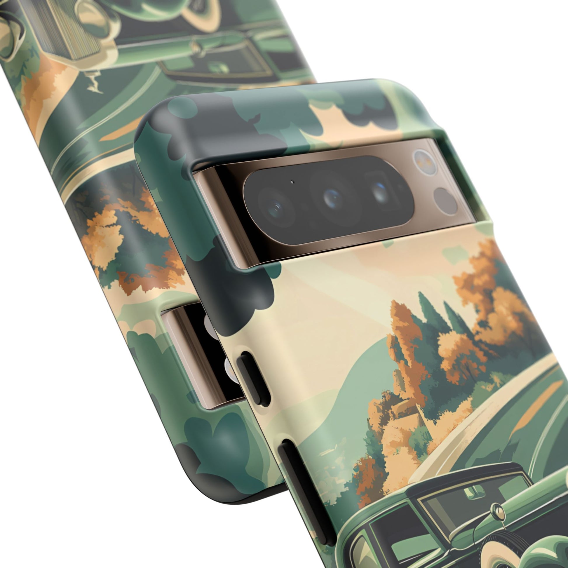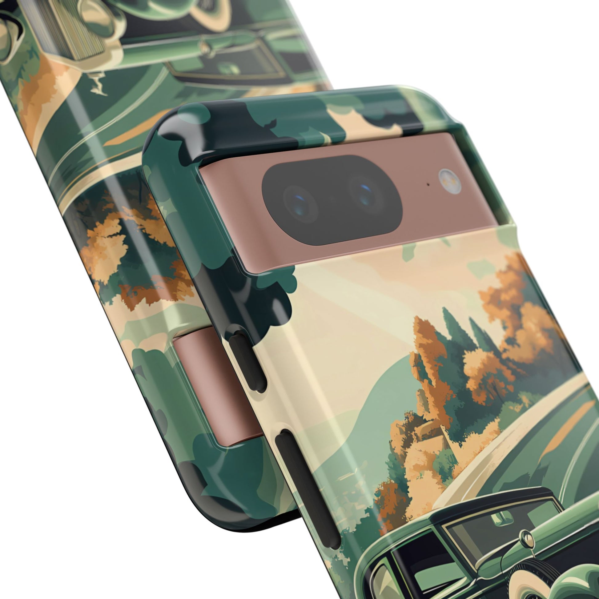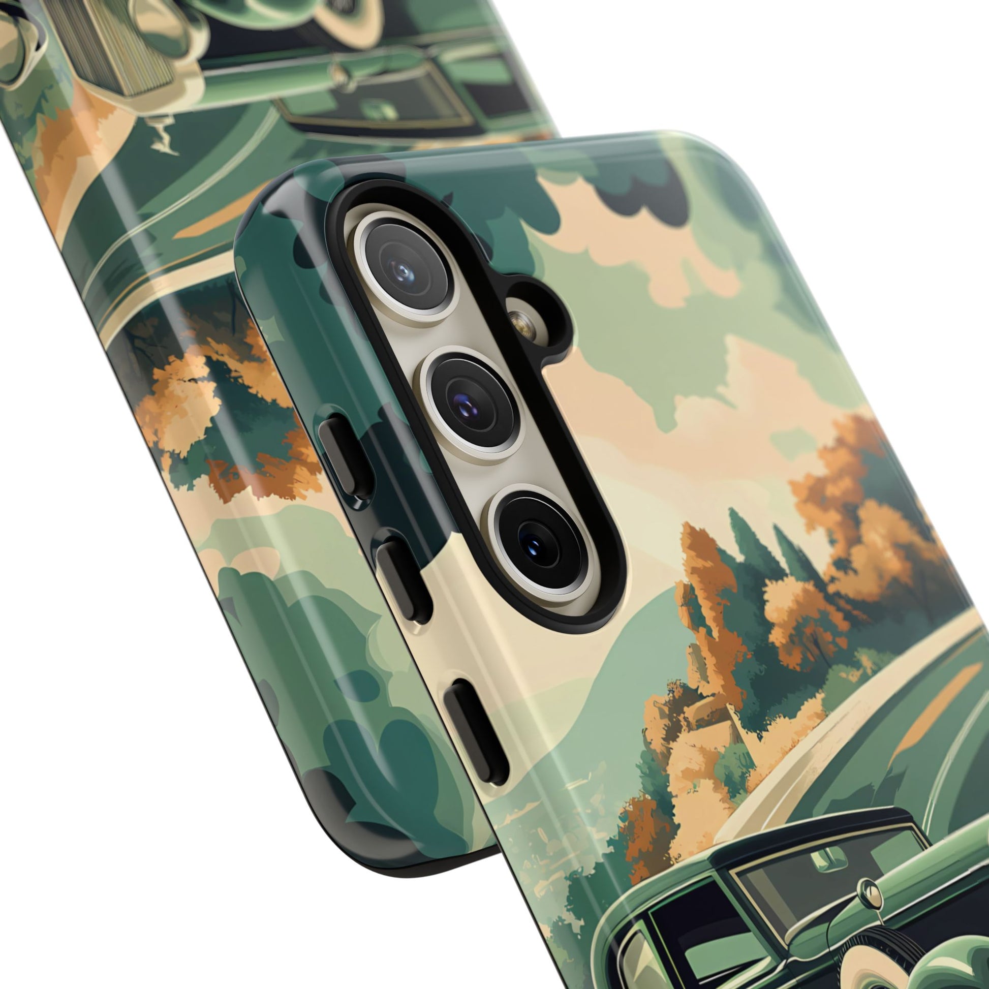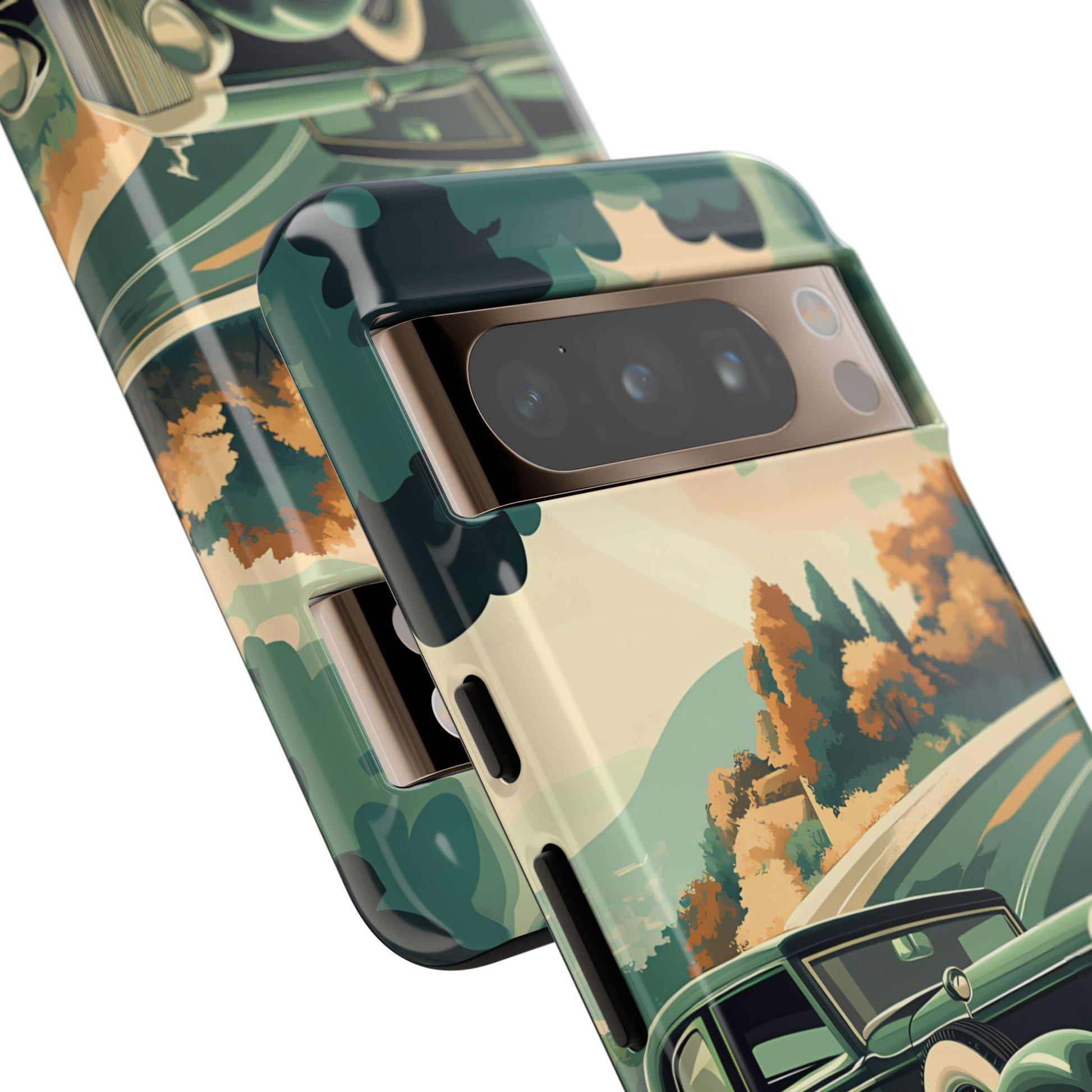 Evoke the glamour of early automobile advertisements with this vintage-inspired design, featuring opulent 1920s and 1930s classic cars, polished chrome details, and white-wall tires, all set against a stylish Art Deco backdrop.