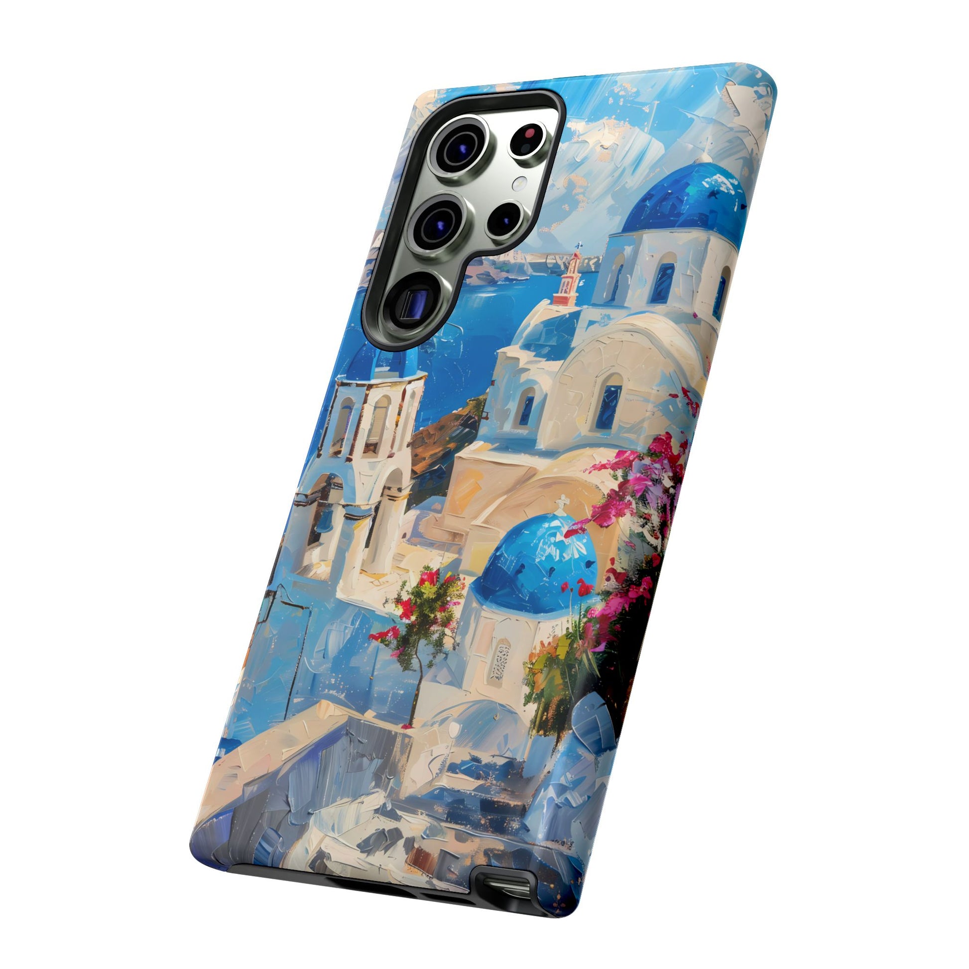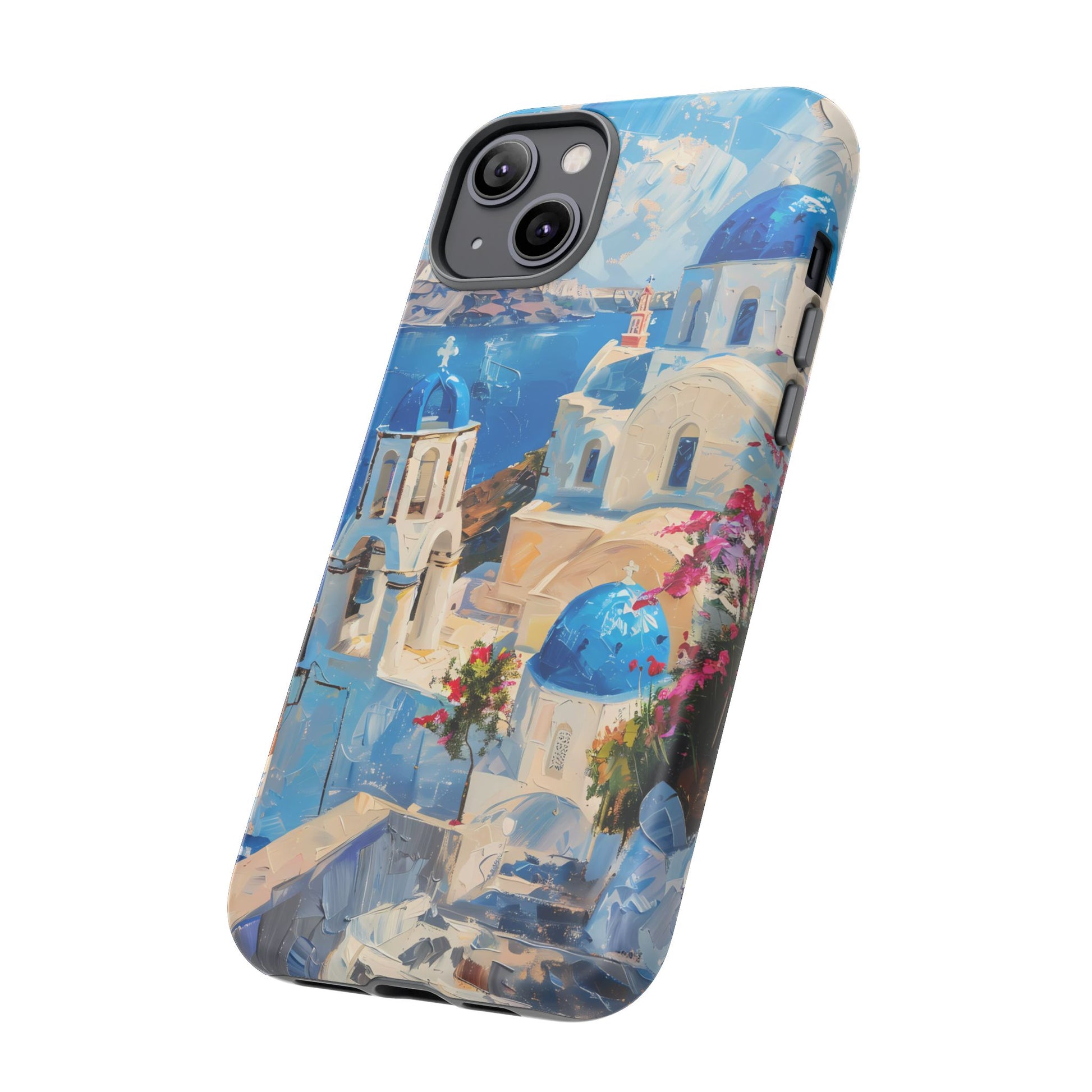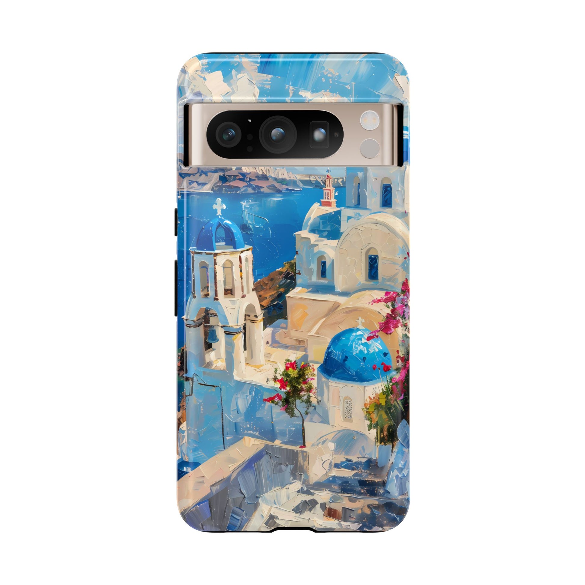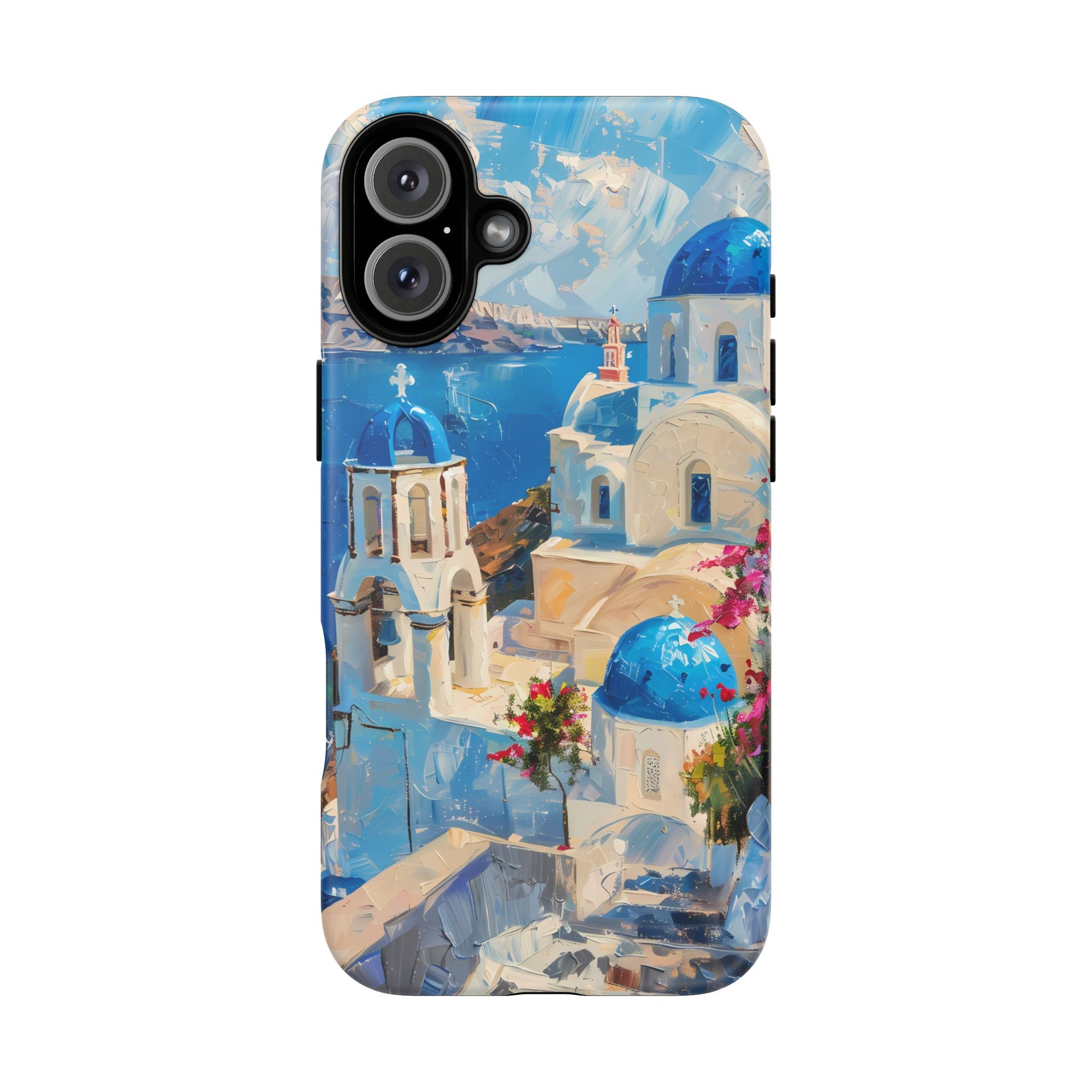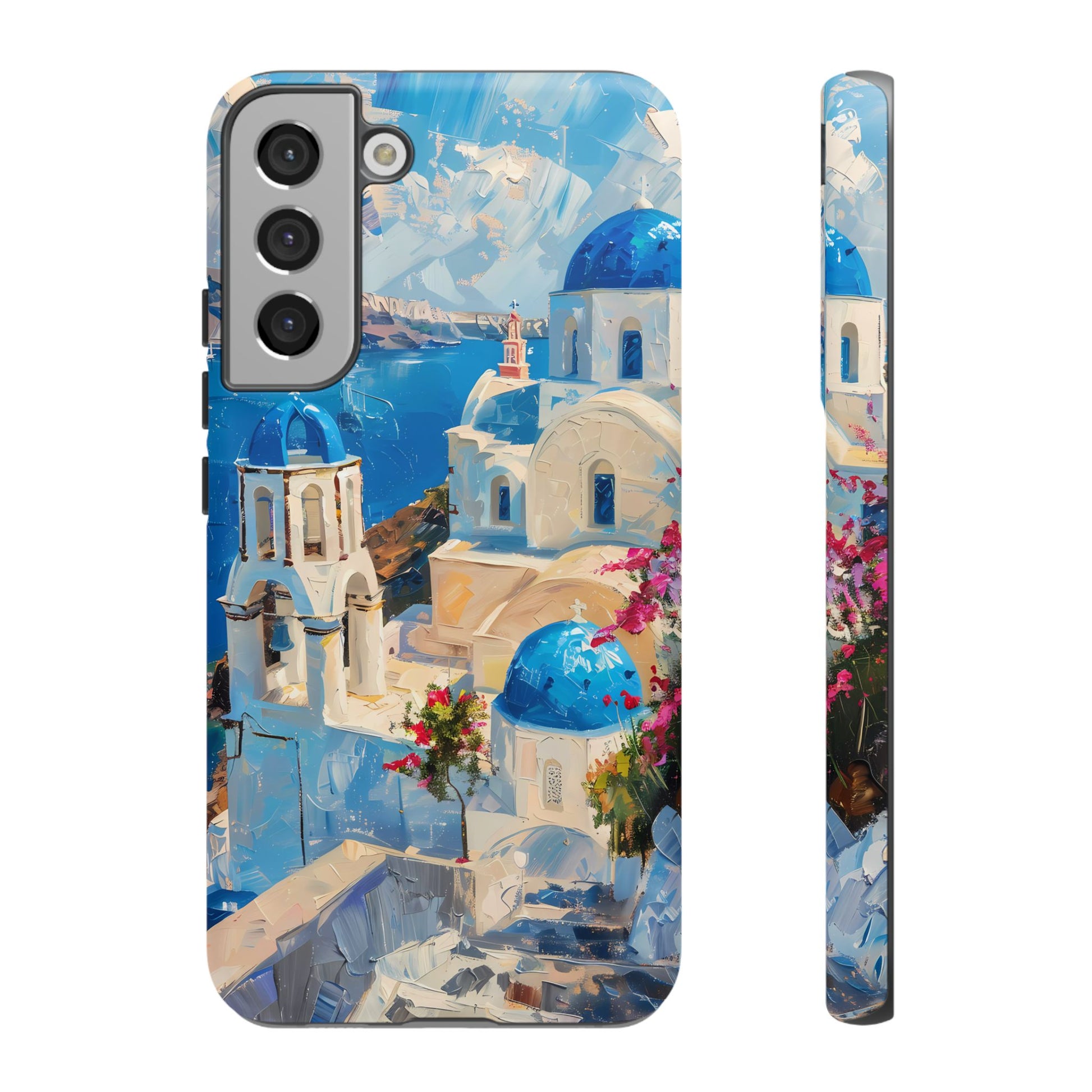 Celebrate the enchanting views of Santorini with this phone cover that features the iconic white-washed buildings and blue domes overlooking the Aegean Sea. The design’s soft pastel tones and serene composition make it a stylish accessory for anyone who loves the elegance of Mediterranean landscapes